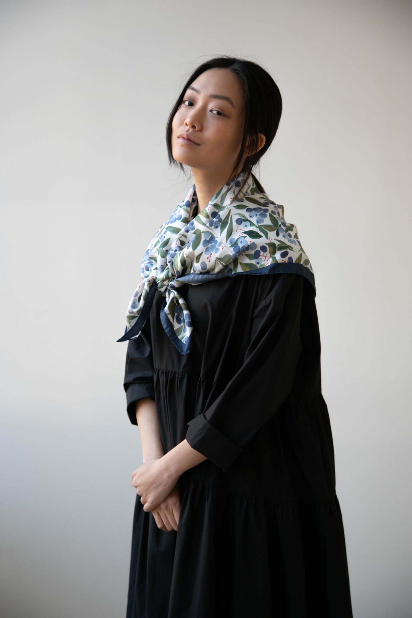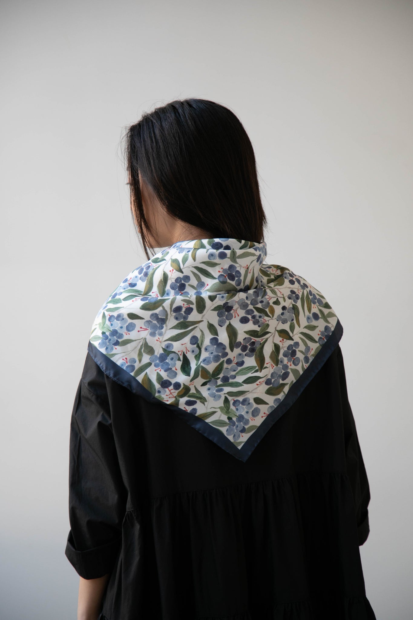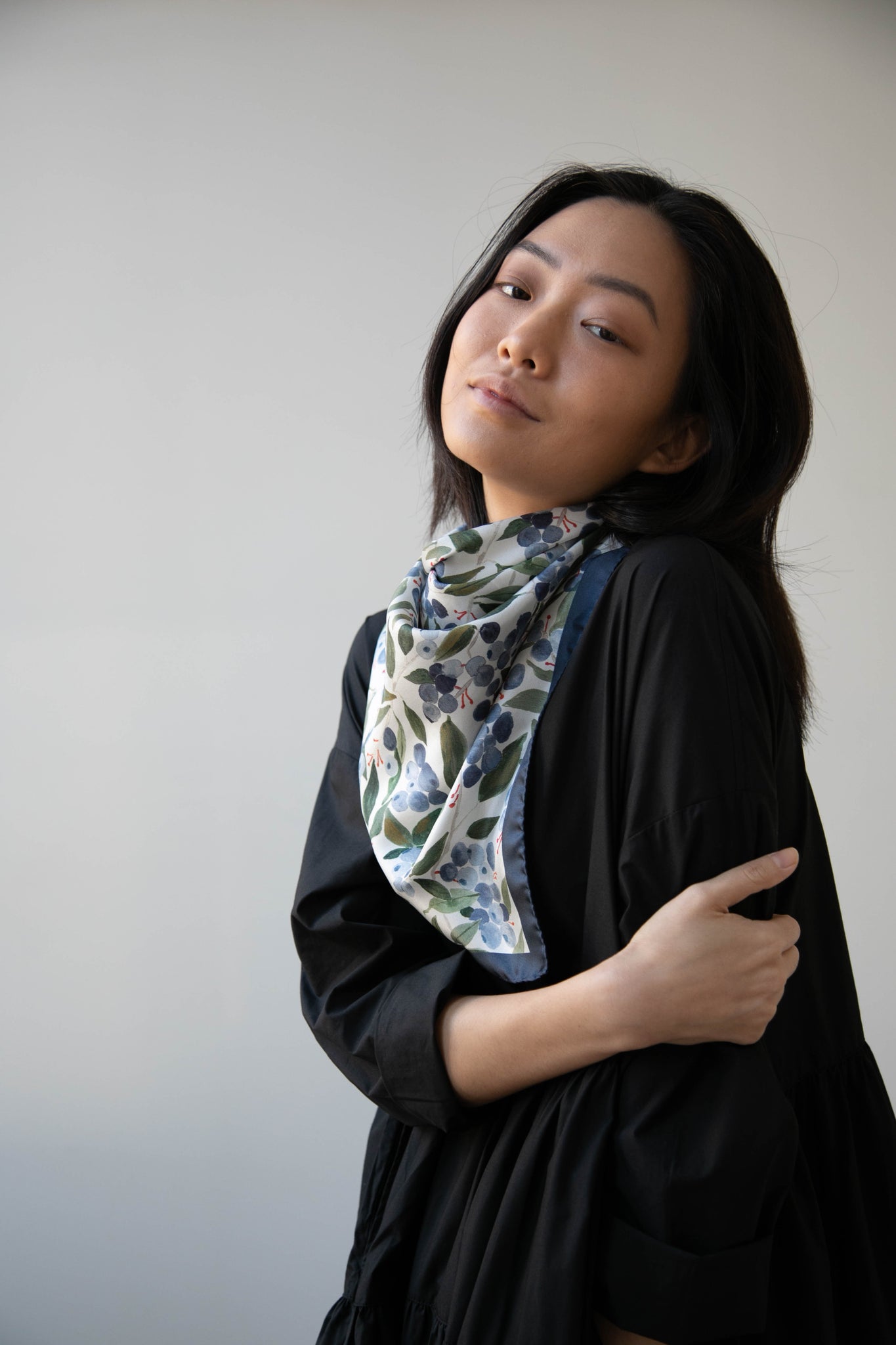 A beautiful scarf from Lettie Brigs in a fun blueberry print. We are over the moon about the designers illustrations and can imagine so many ways to wear and style it. Made of the softest silk and a perfect accent to any look.About Lettie Briggs