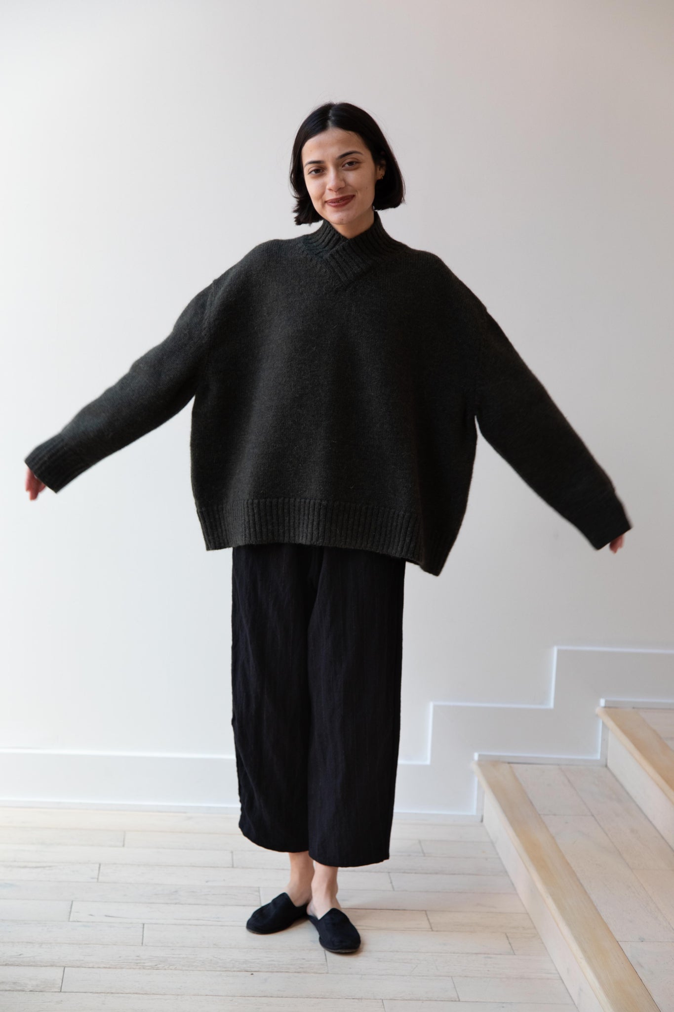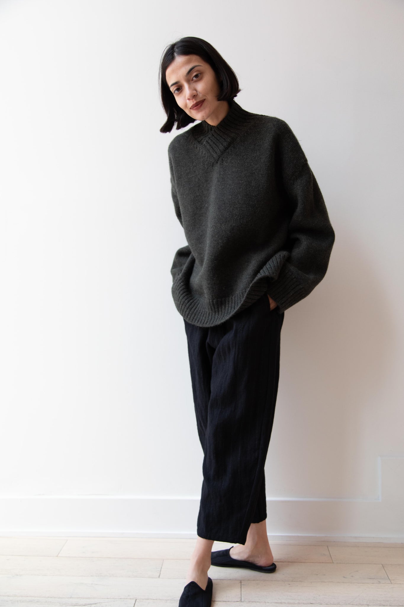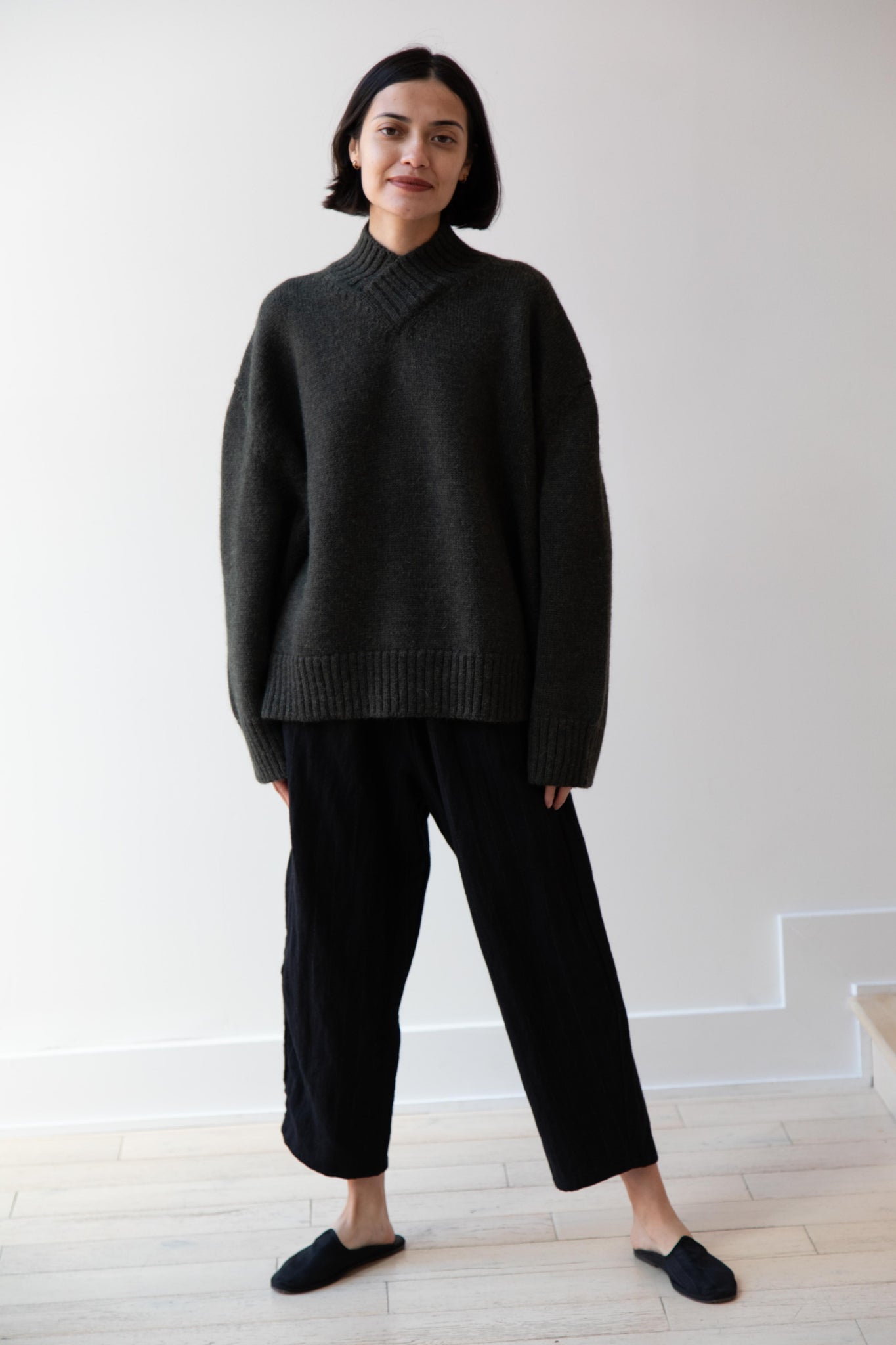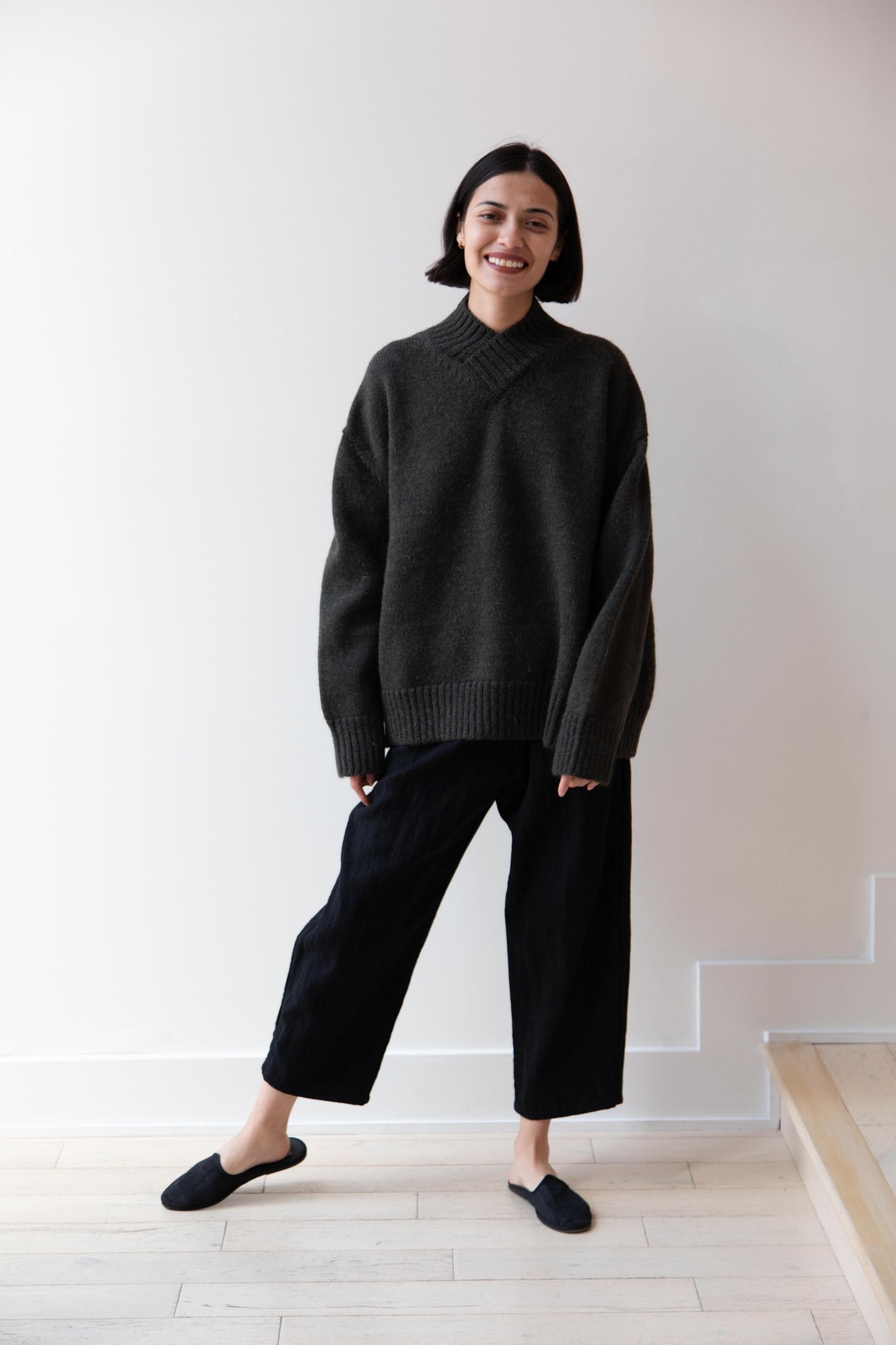 We love these easy pull on trousers, an Apuntob classic. With a slight taper and the perfect crop, they are casual yet elevated. The fabric is a subtle wool linen pin stripe - the pin stripe you can't quite see from a distance, but on closer inspection it's such a nice detail. A great all rounder!