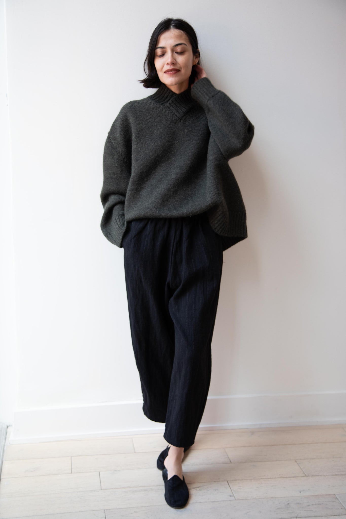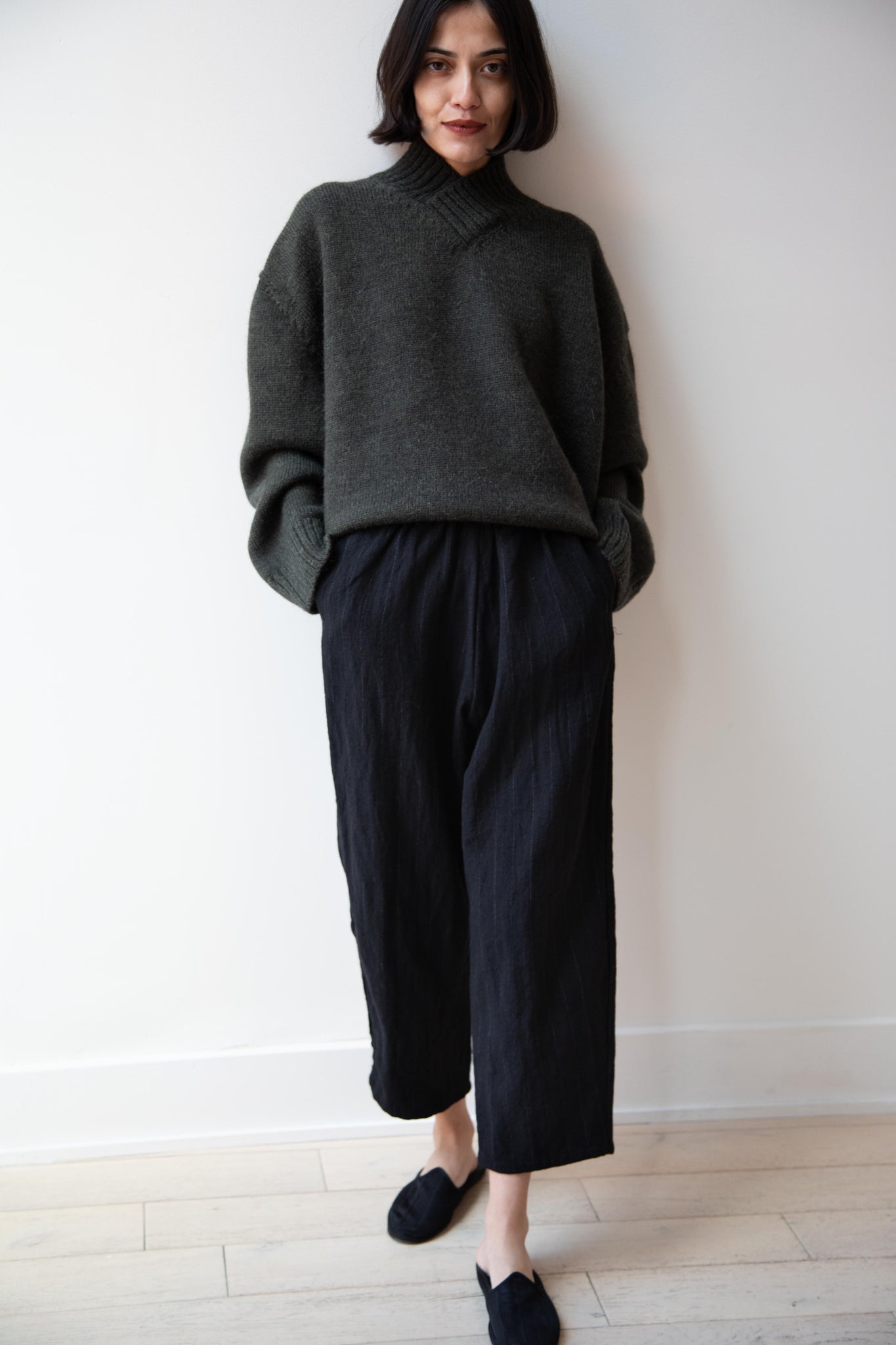 Apuntob | Pinstripe Wool Linen Trouser in Black