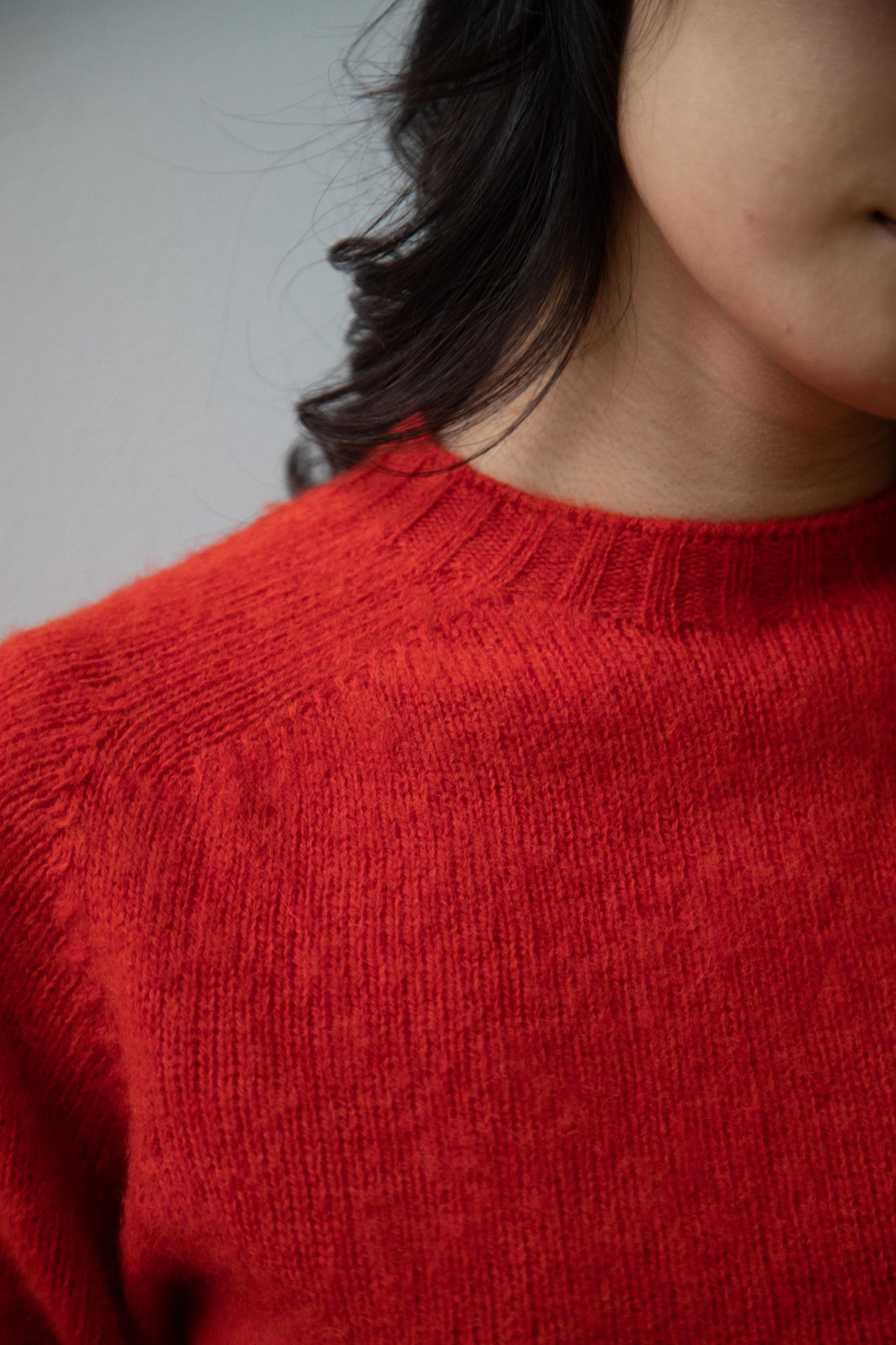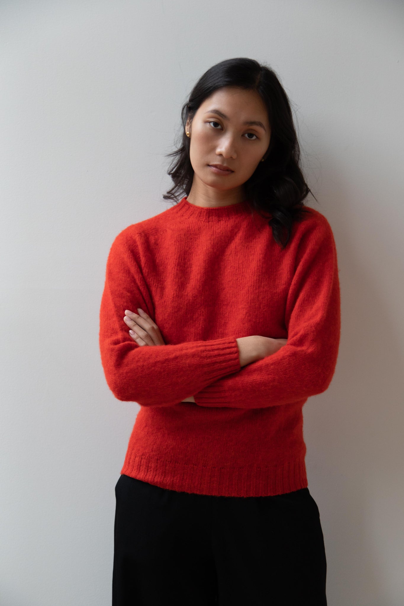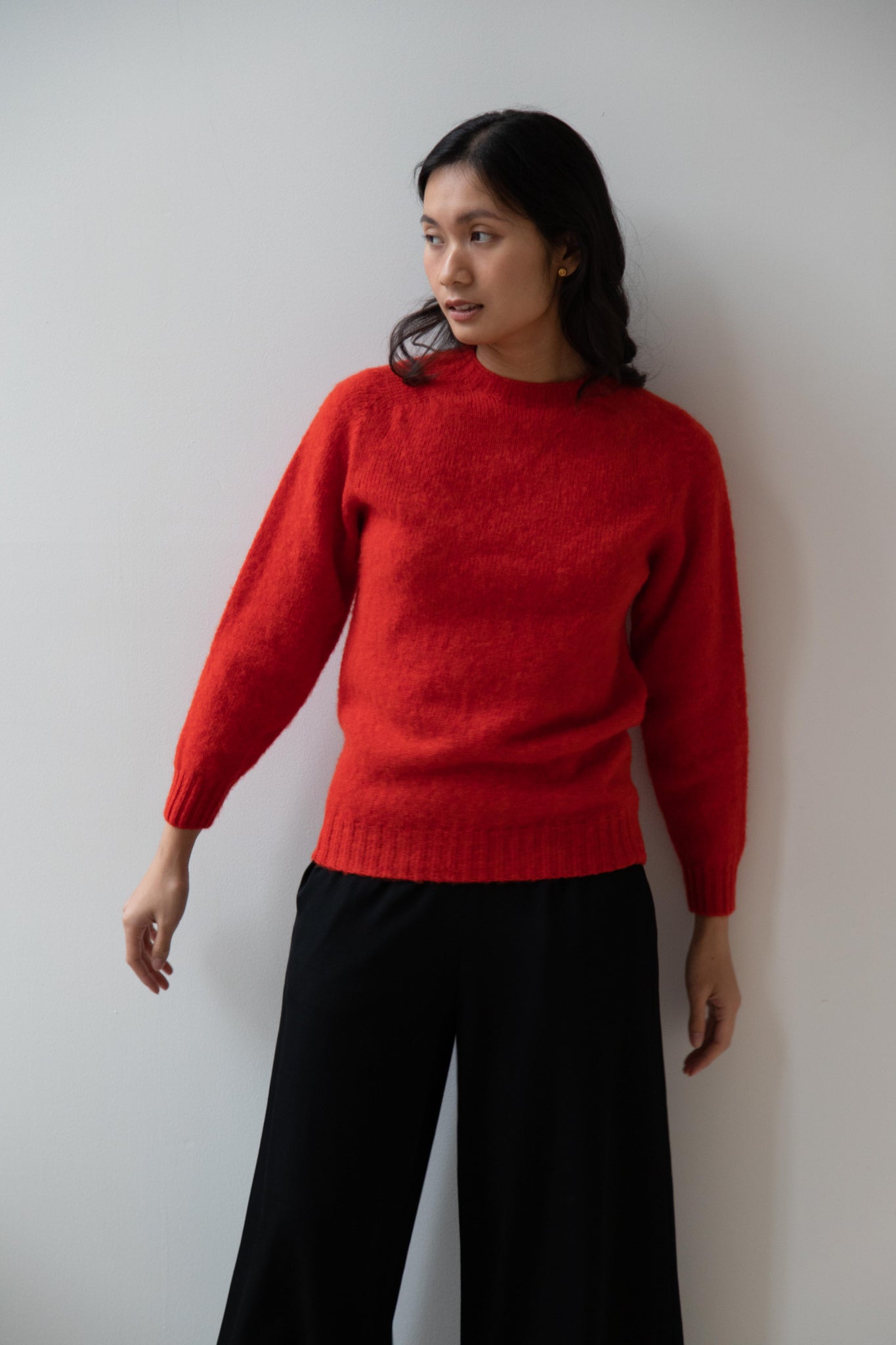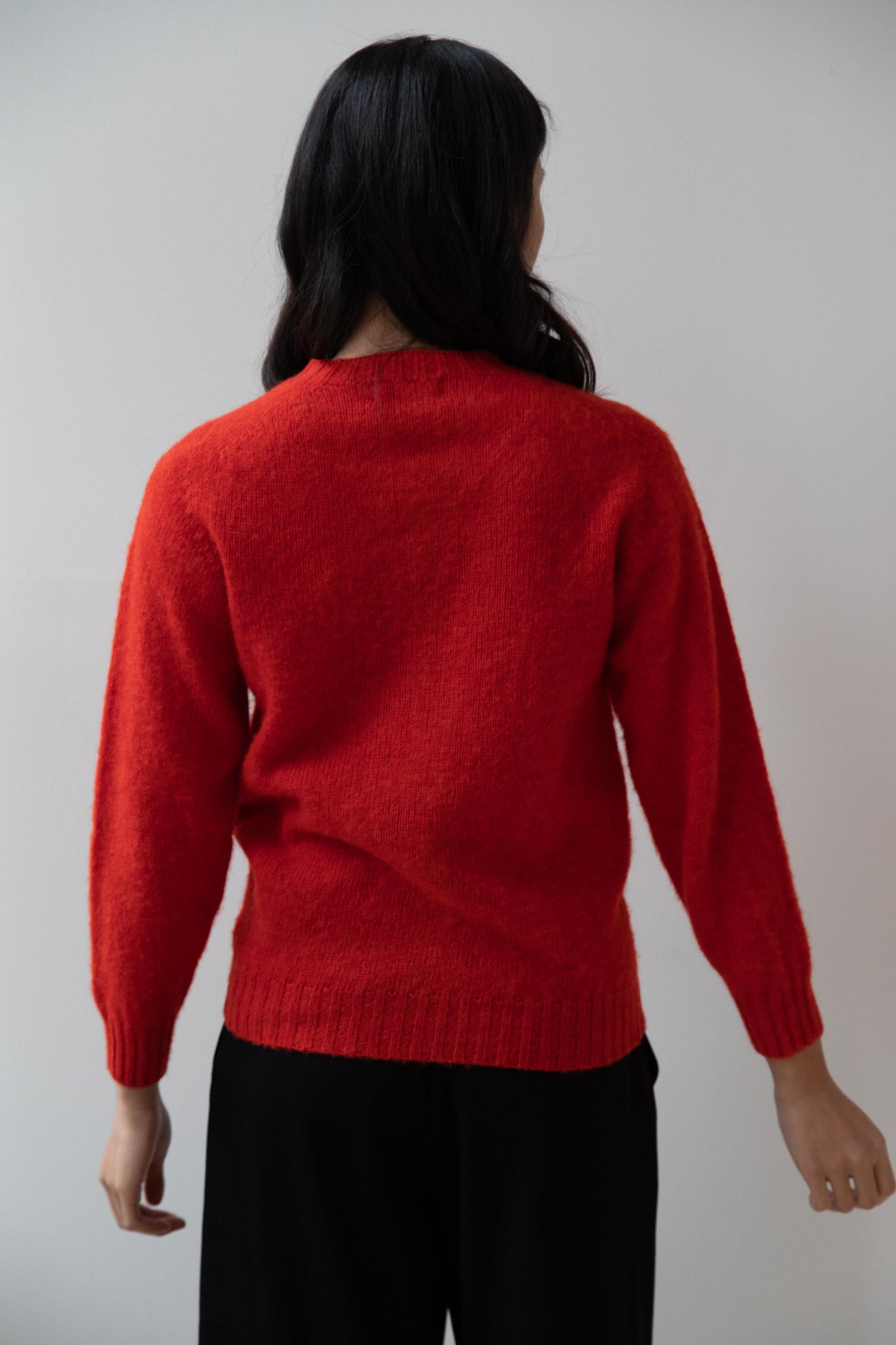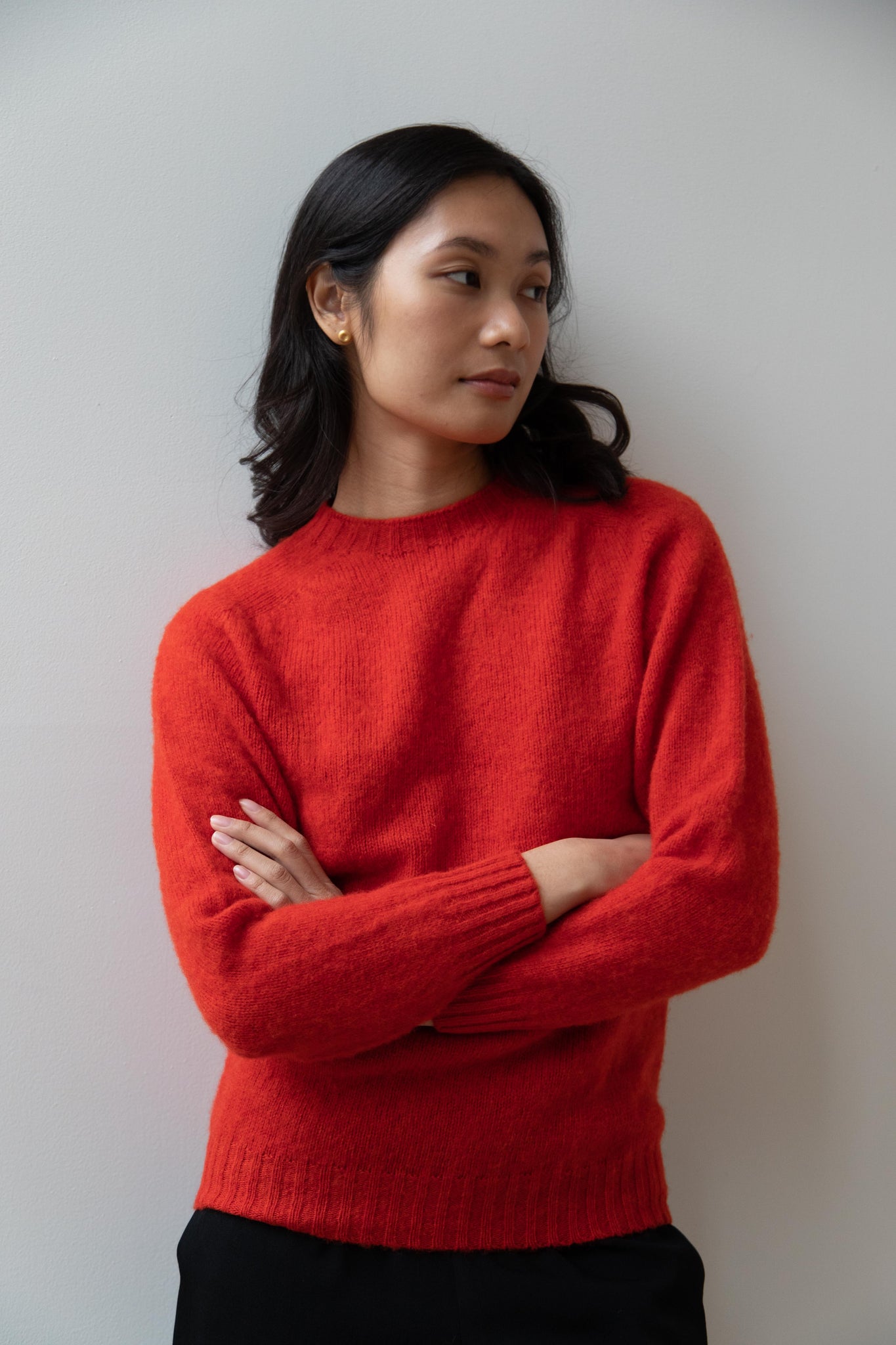 This sweater is so fun! Made of a wonderful soft and almost foamy wool this sweater has the best texture and color. It is a classic crewneck fit and perfect for layering and mixing and matching!