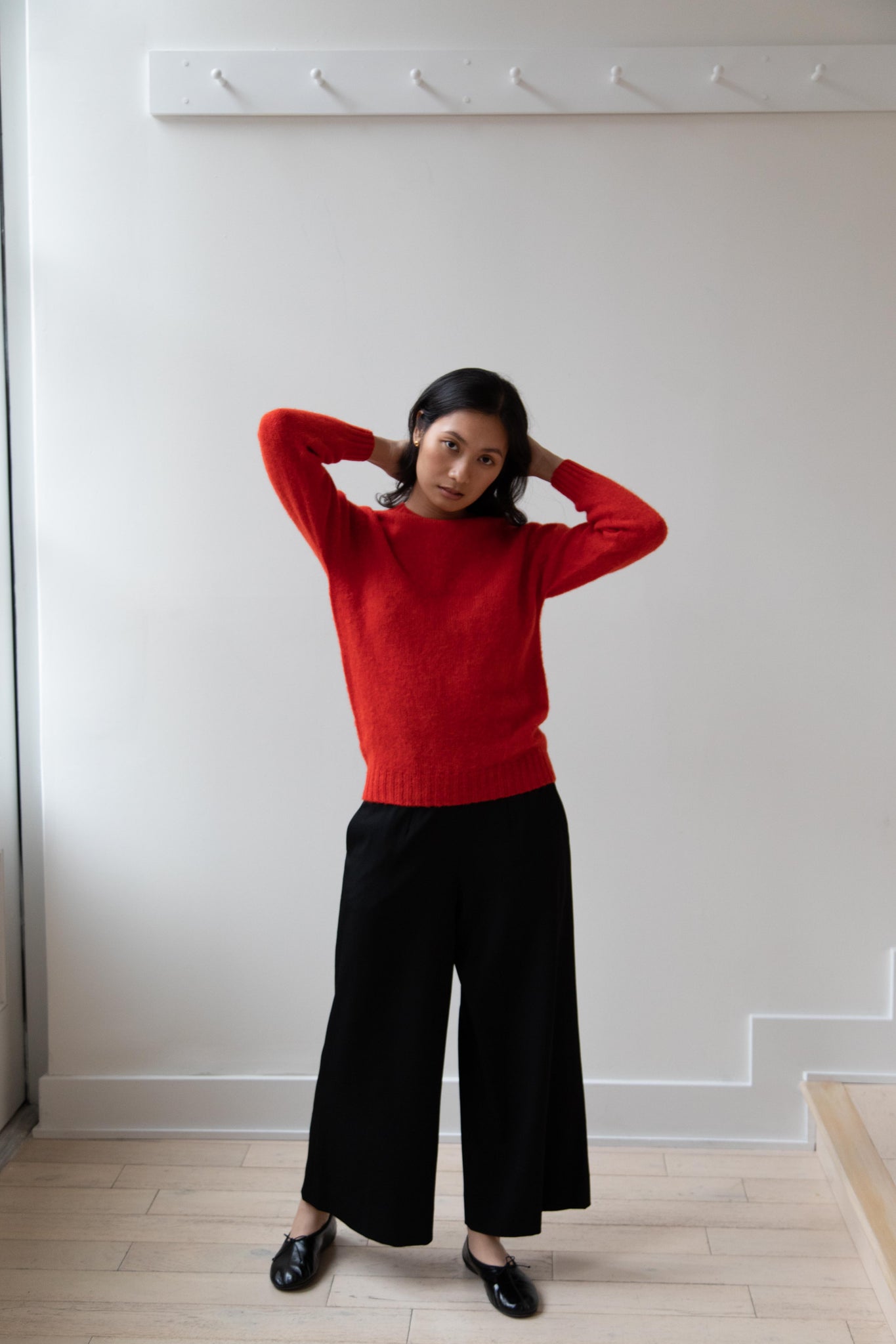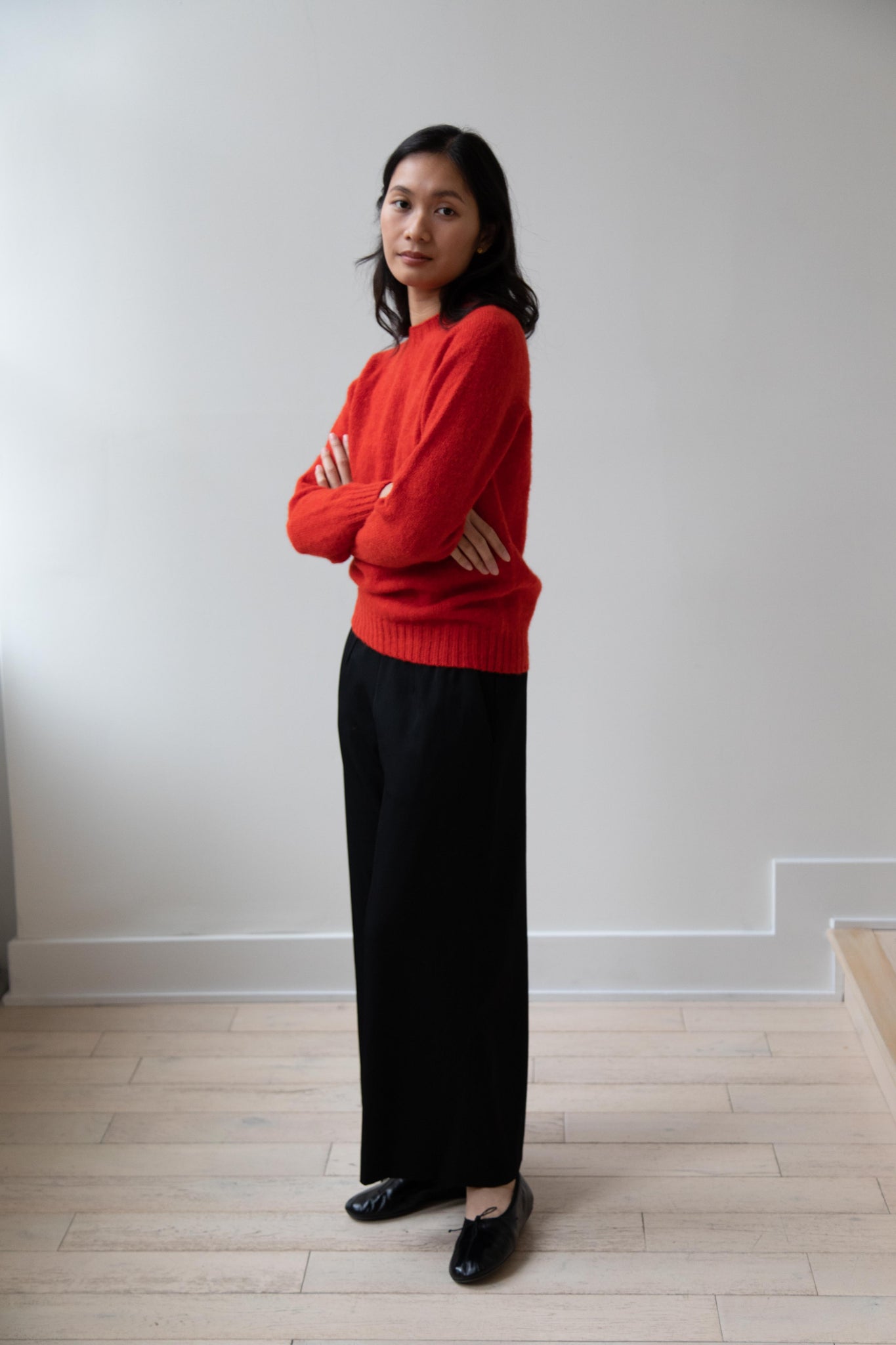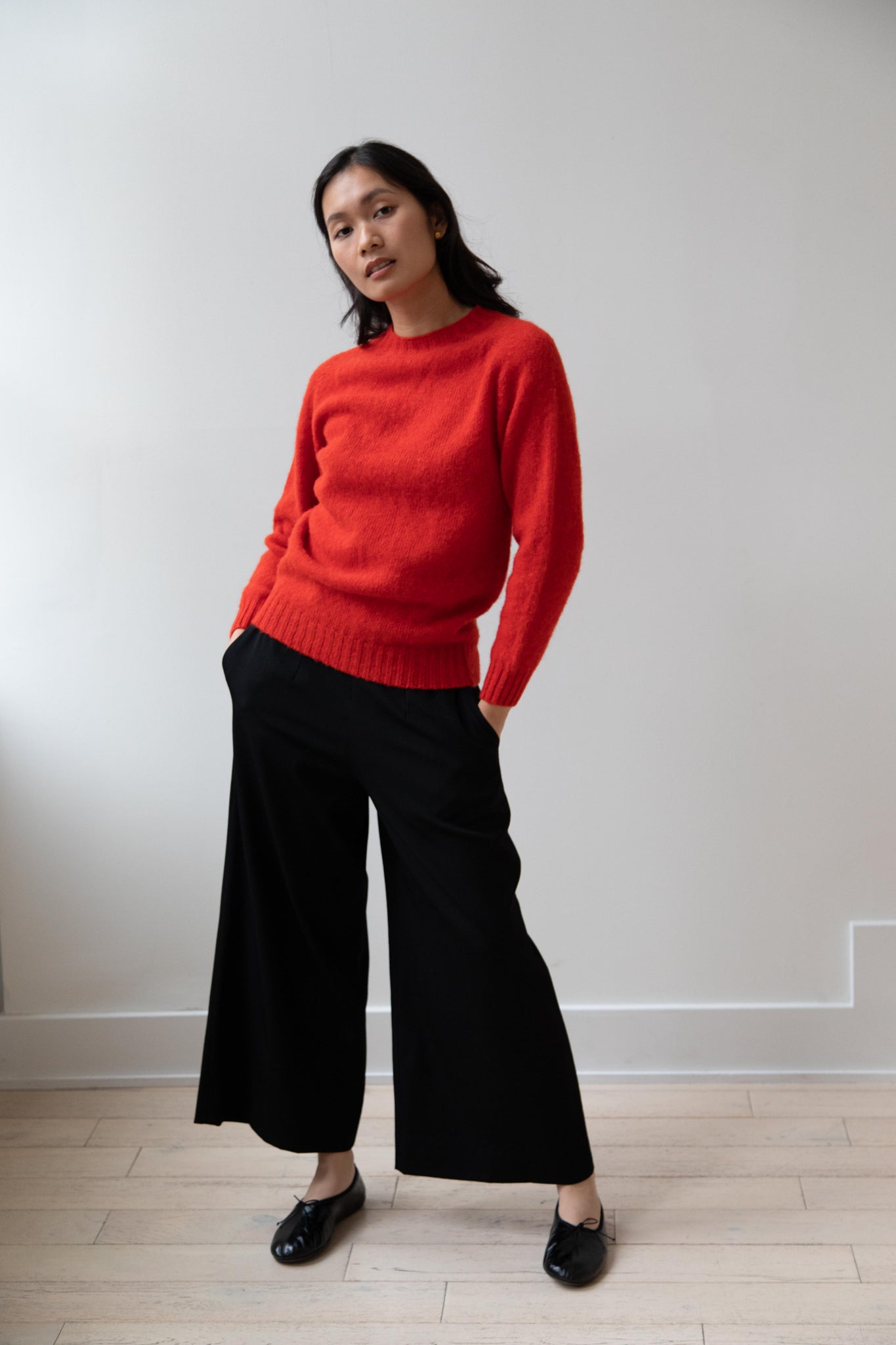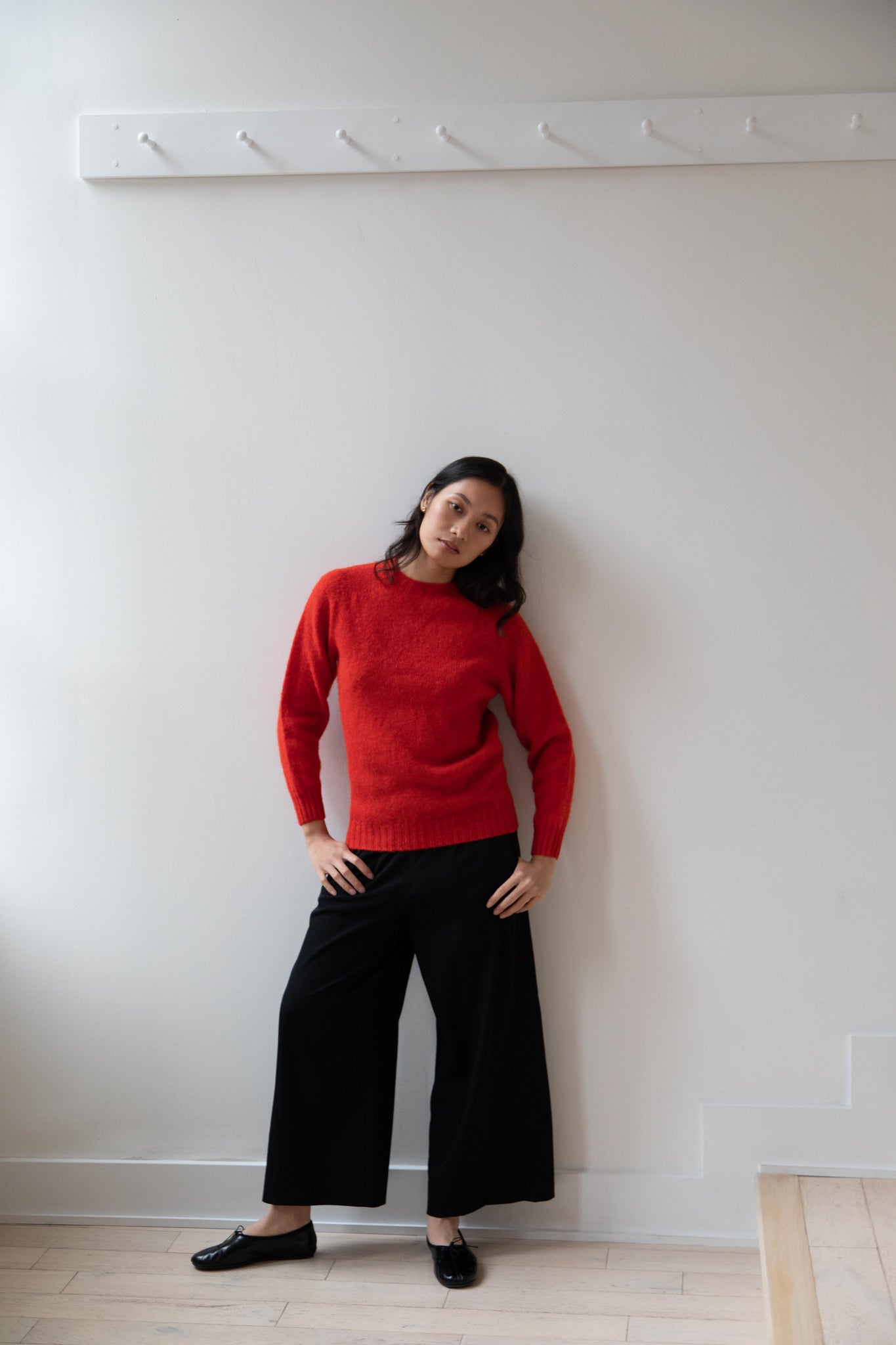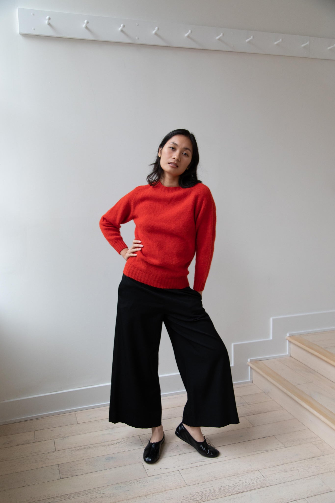 This sweater is so fun! Made of a wonderful soft and almost foamy wool this sweater has the best texture and color. It is a classic crewneck fit and perfect for layering and mixing and matching!