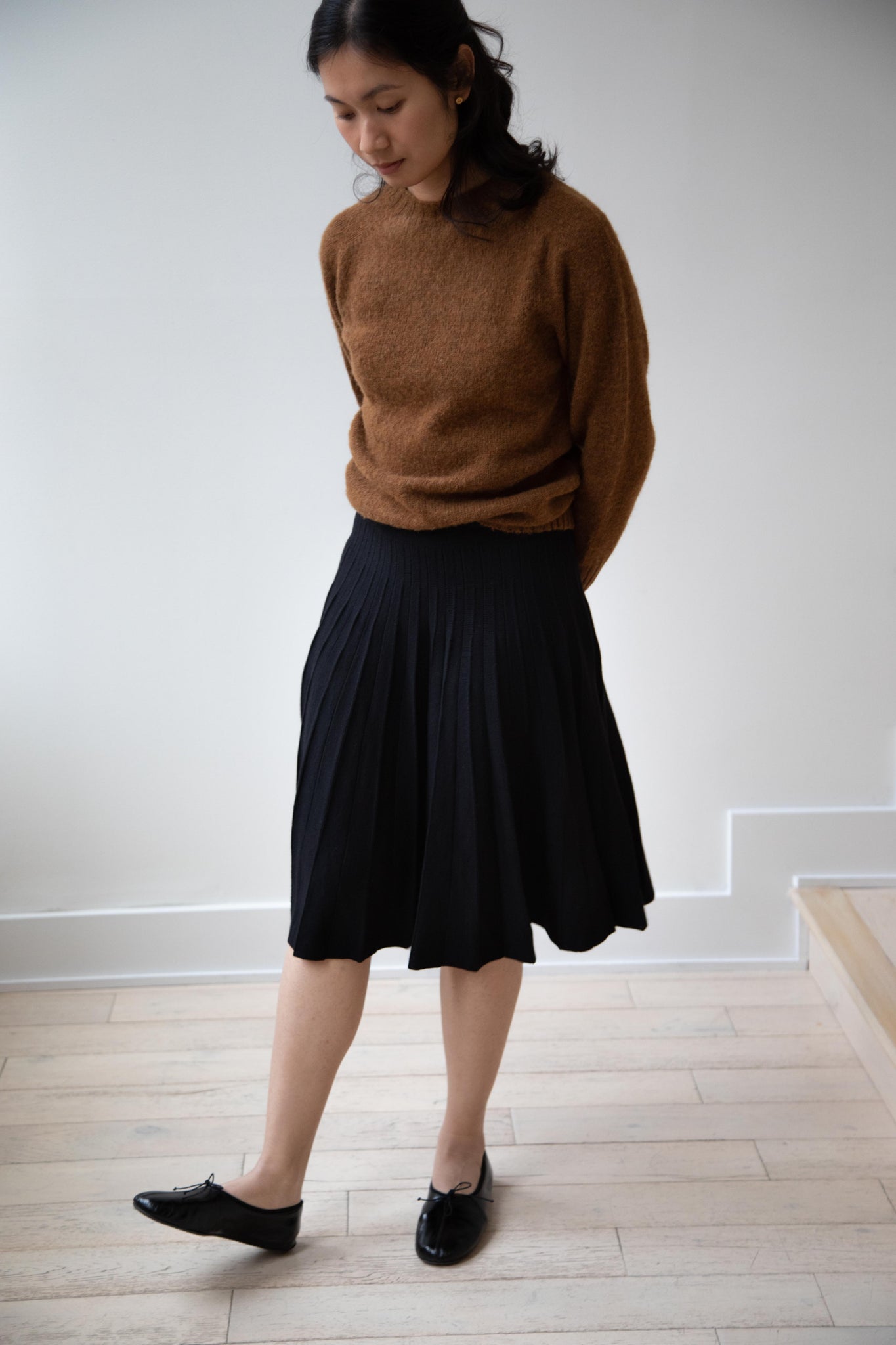 Margaret Howell | Pleated Knit Merino Skirt in Black