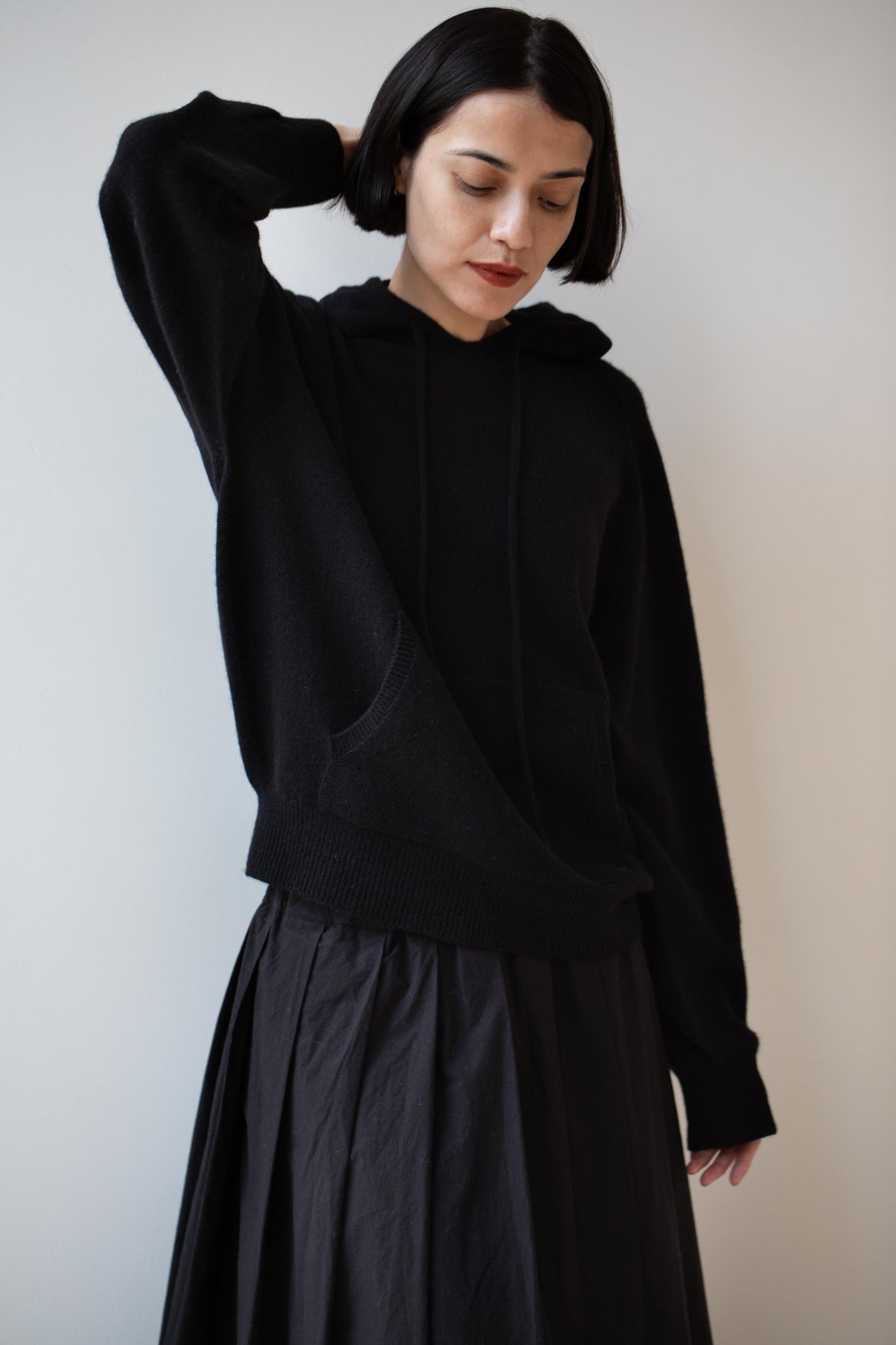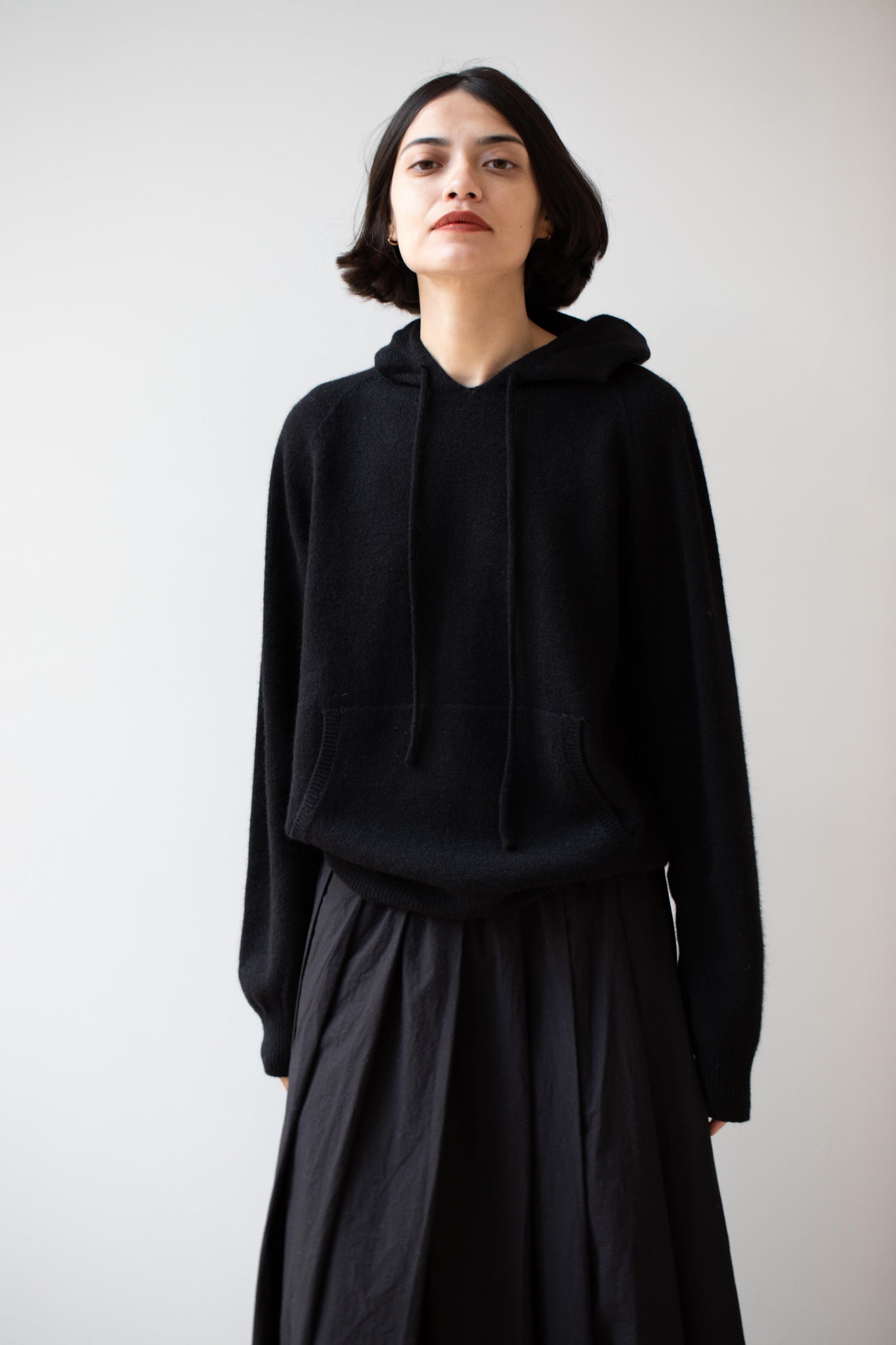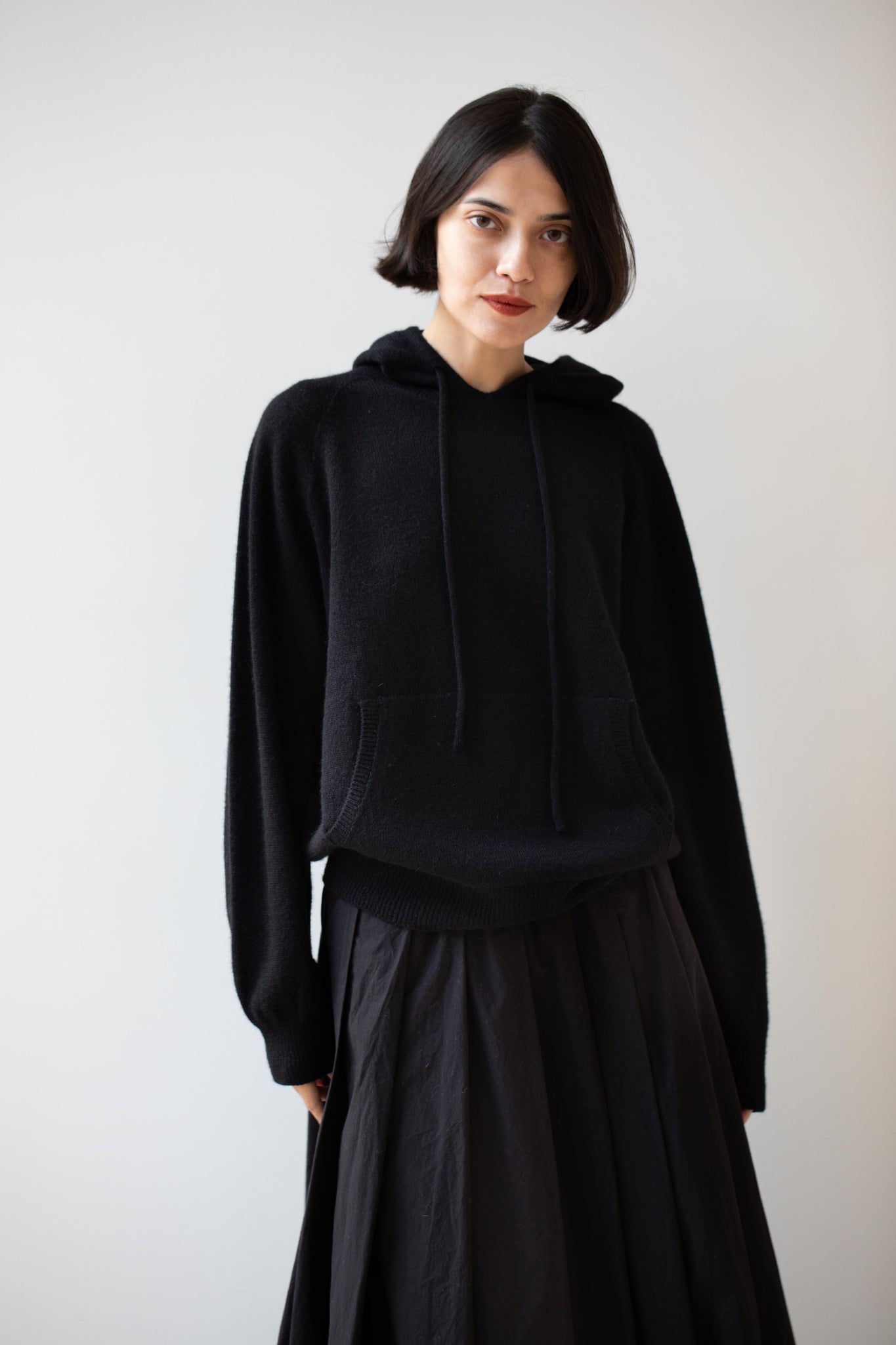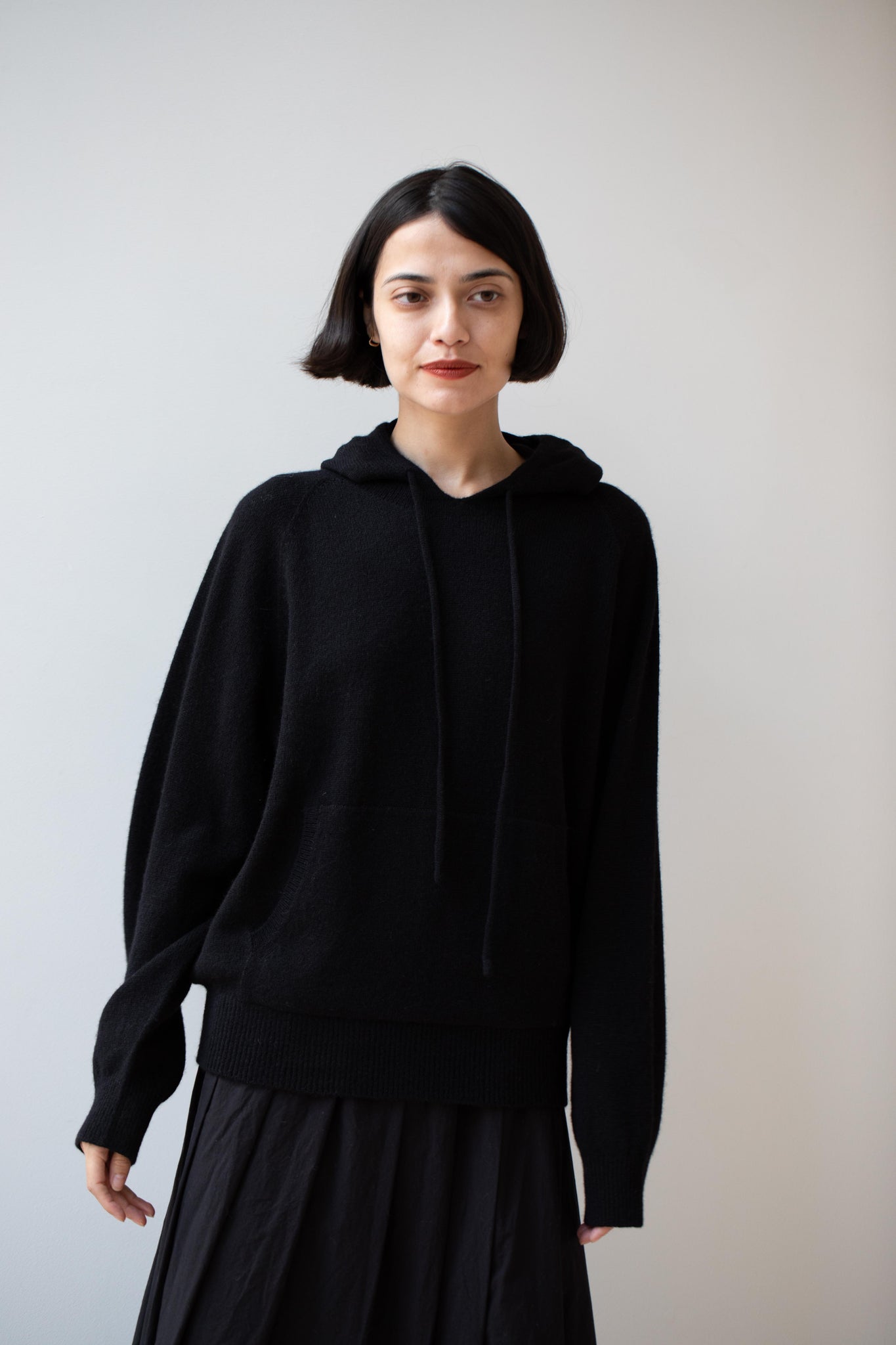 A perfect knit wool hoodie for fall.  It features one large front pocket and a drawstring hood and raglan sleeves.  It's a great layering piece and think it would be great under one of the line's fall chore coats.