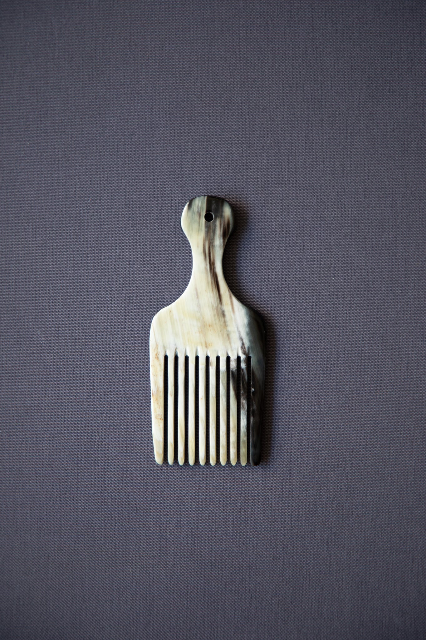 A small comb with a tall handle. Each comb is unique due to natural materials.