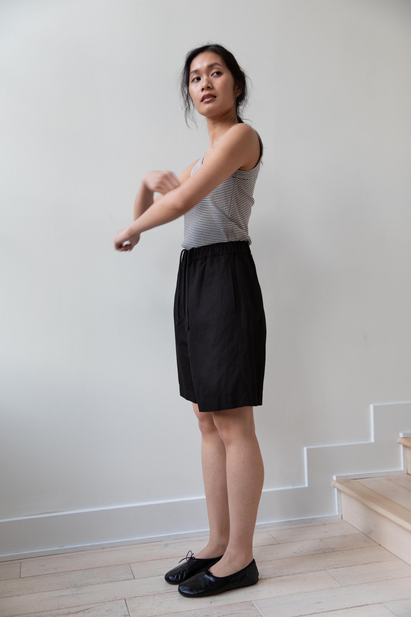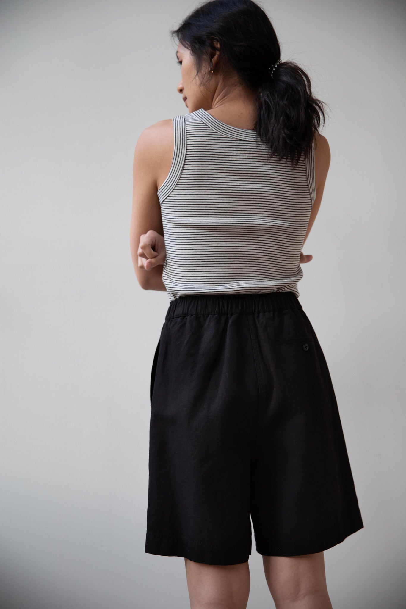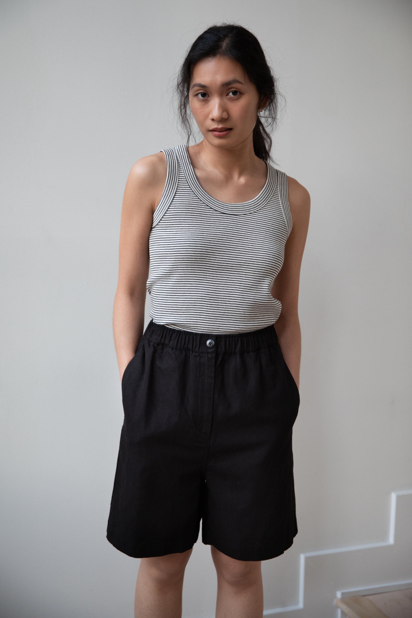 These shorts are made from a cotton linen blend fabric, the perfect lightweight material to run errands.