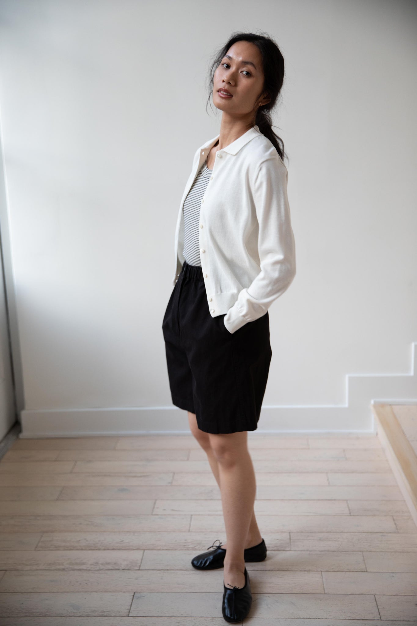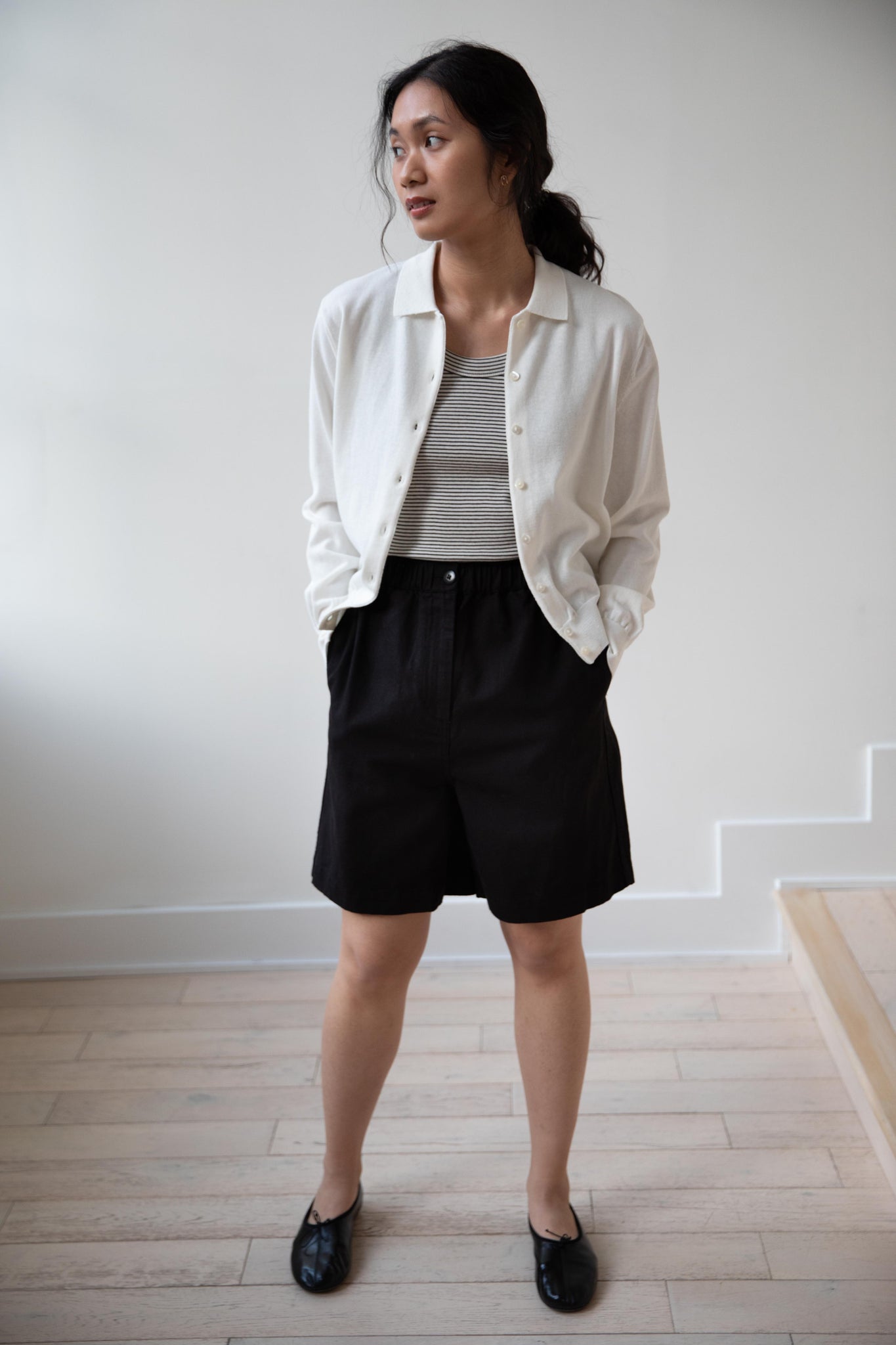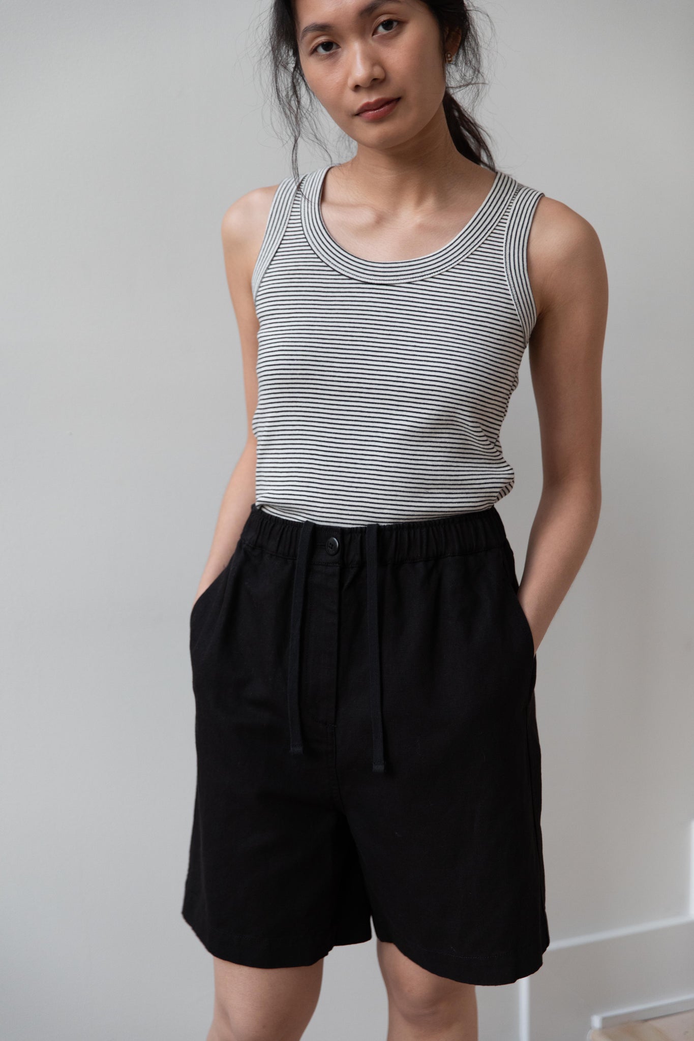 These shorts are made from a cotton linen blend fabric, the perfect lightweight material to run errands.