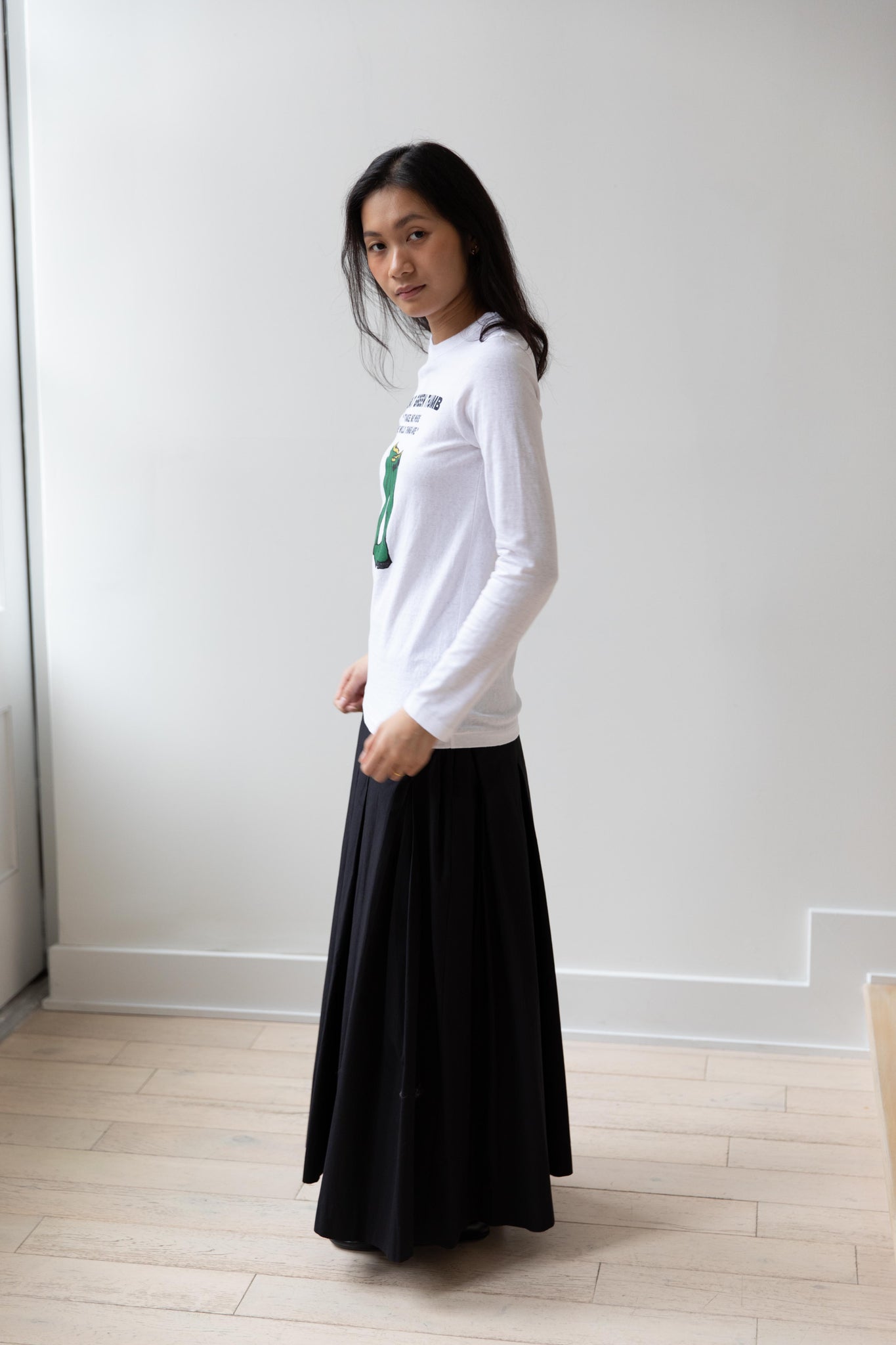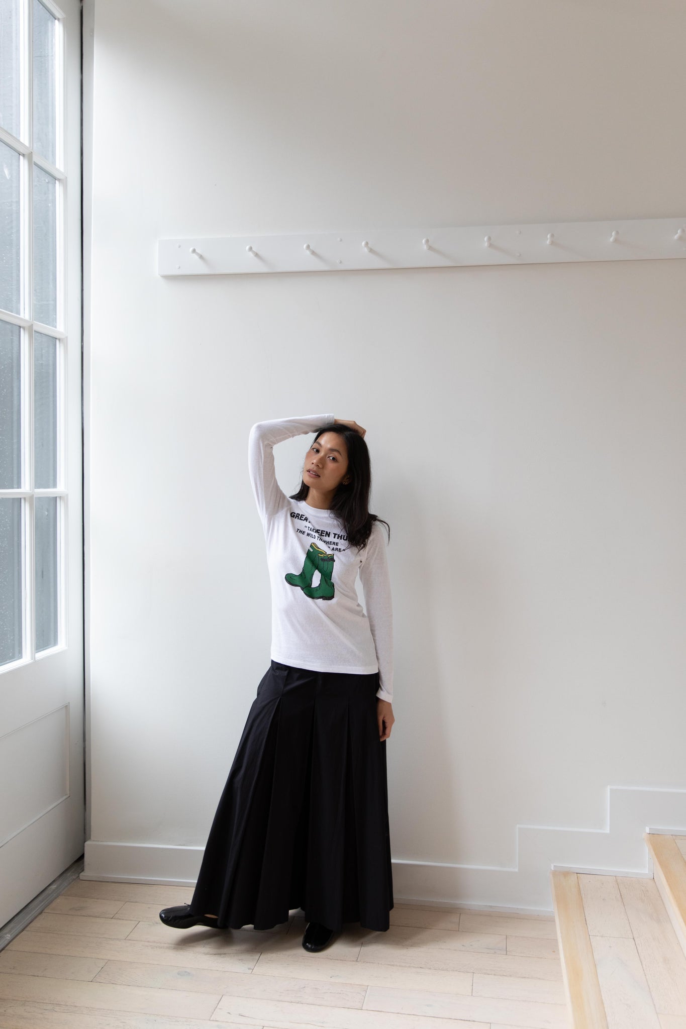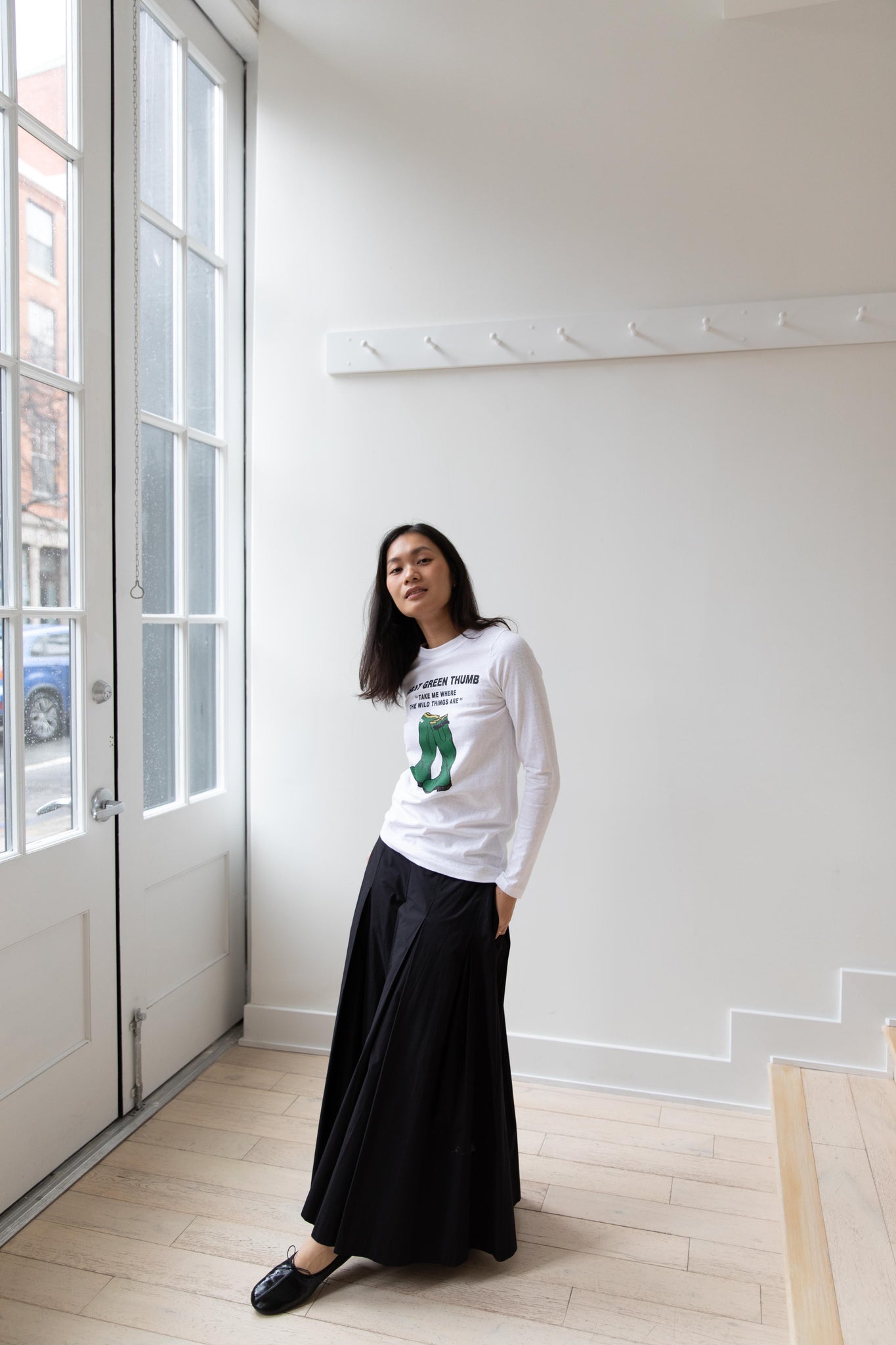 Anna is 5'7" and wears the size small.