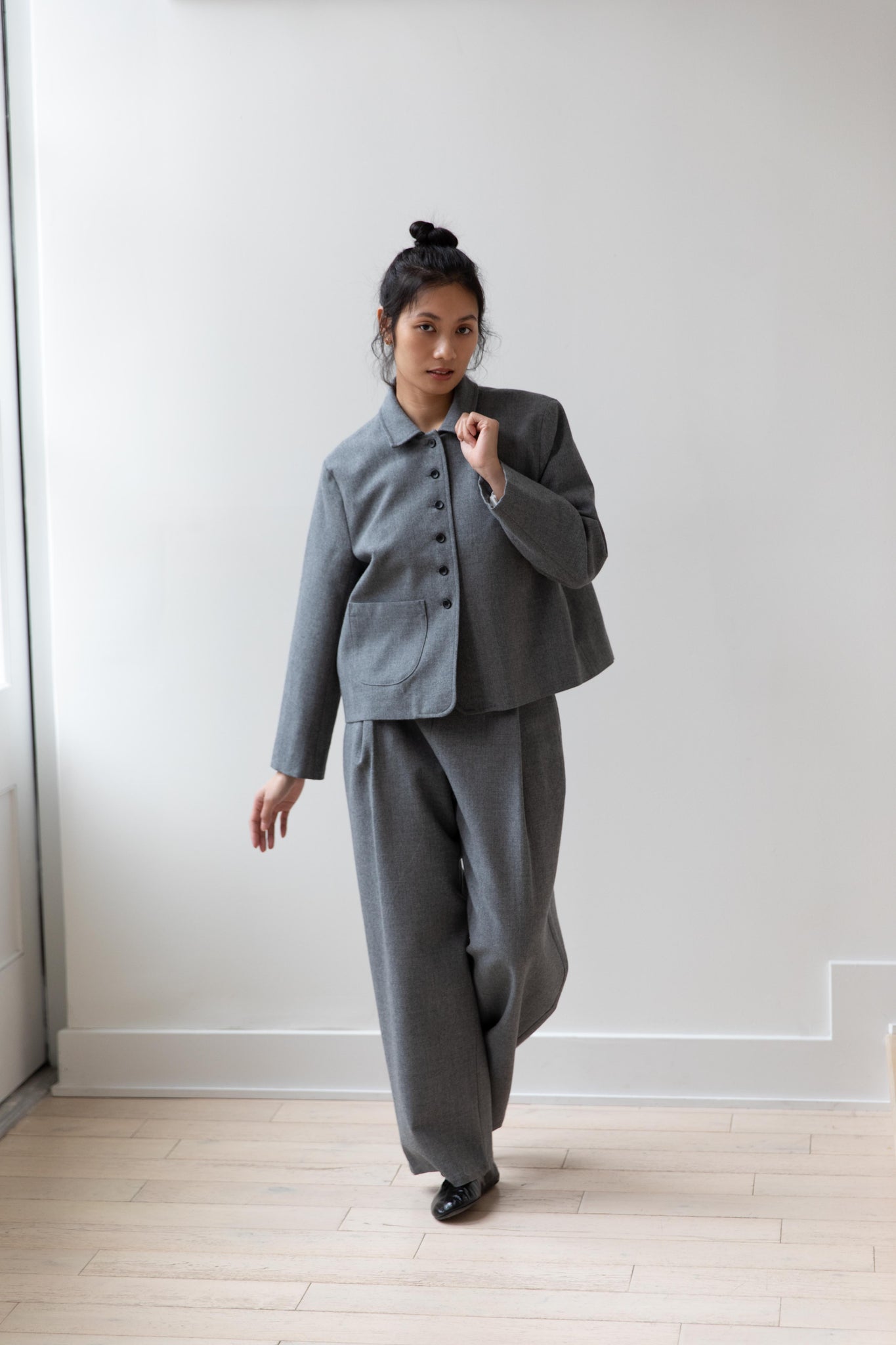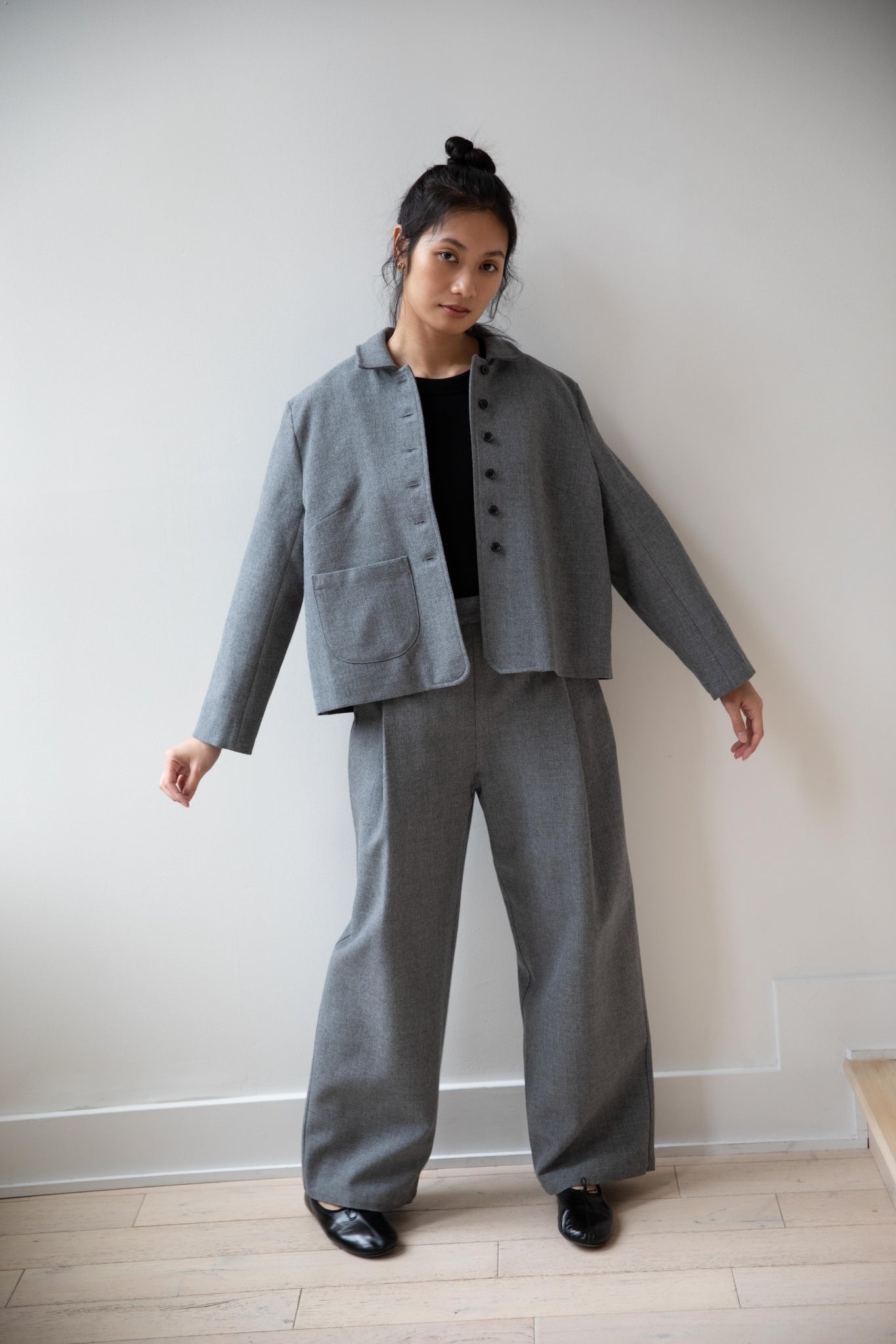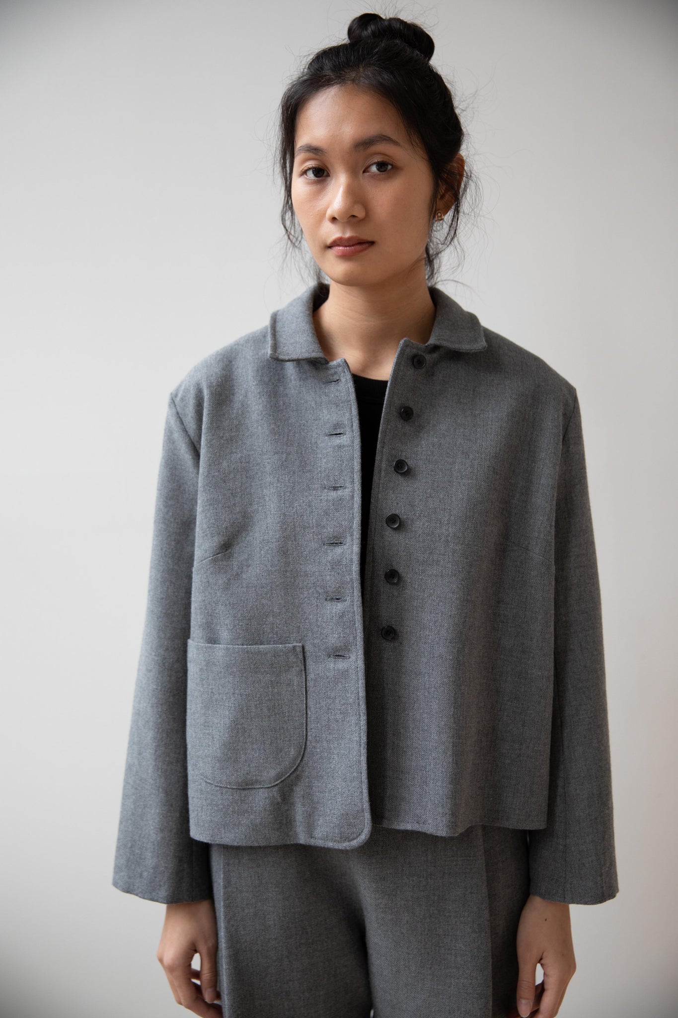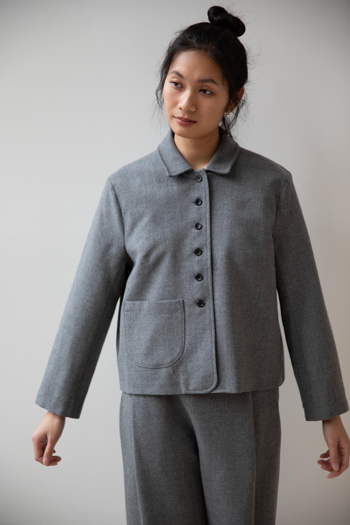 This wool fully-lined jacket features one front pocket, making it super unique. It looks chic when paired with it's matching trousers.