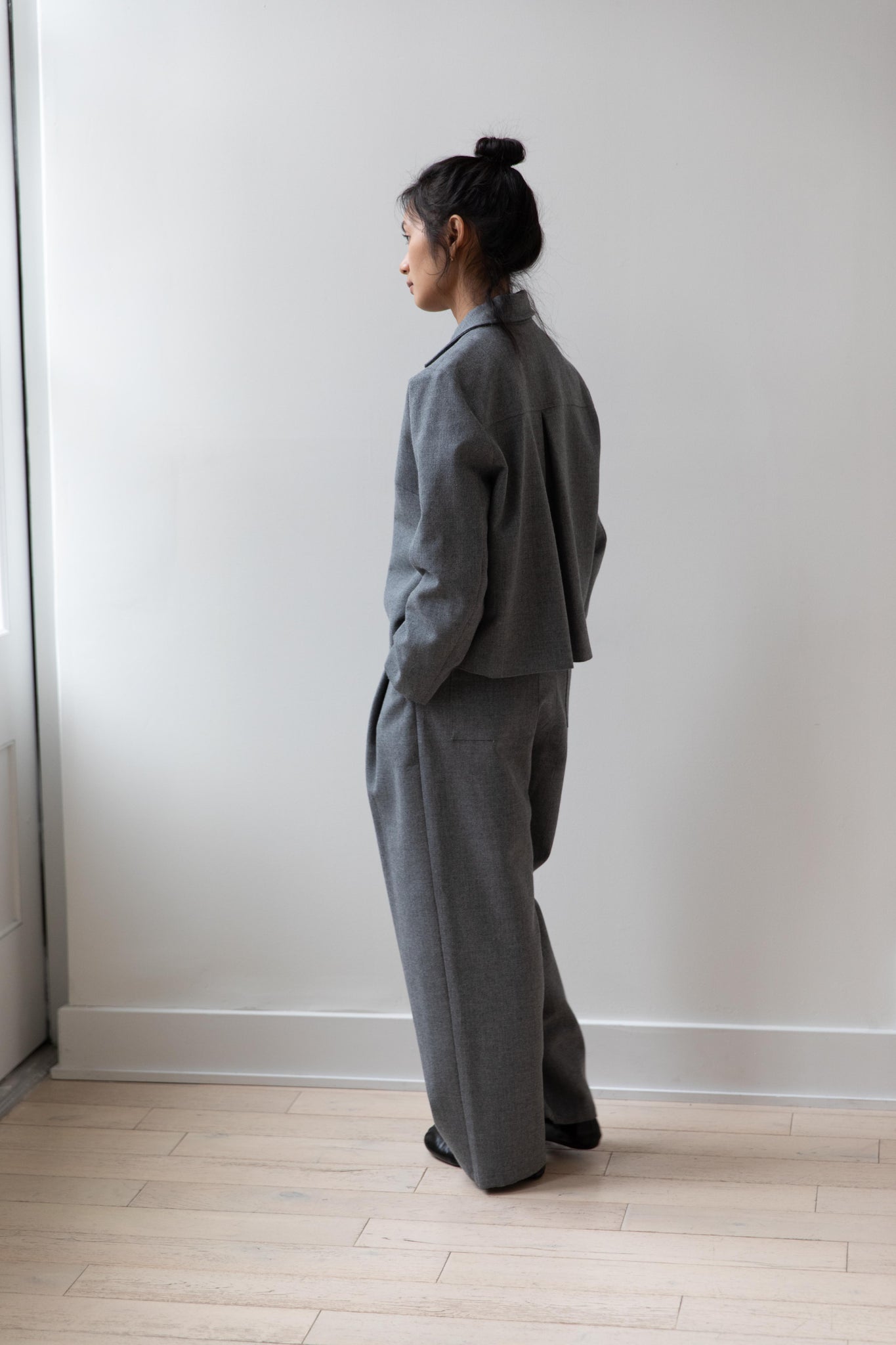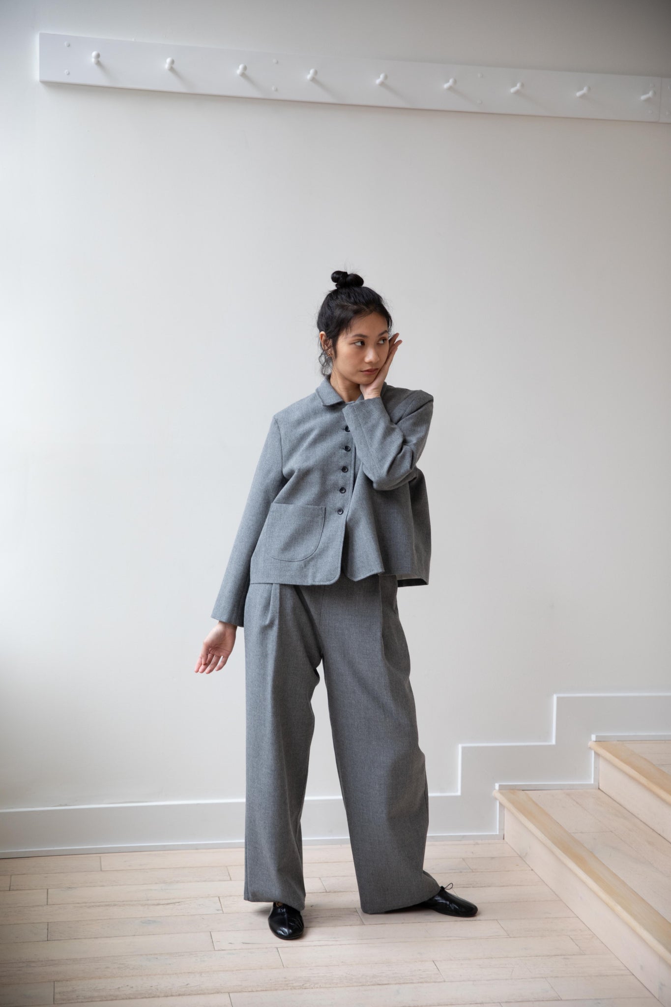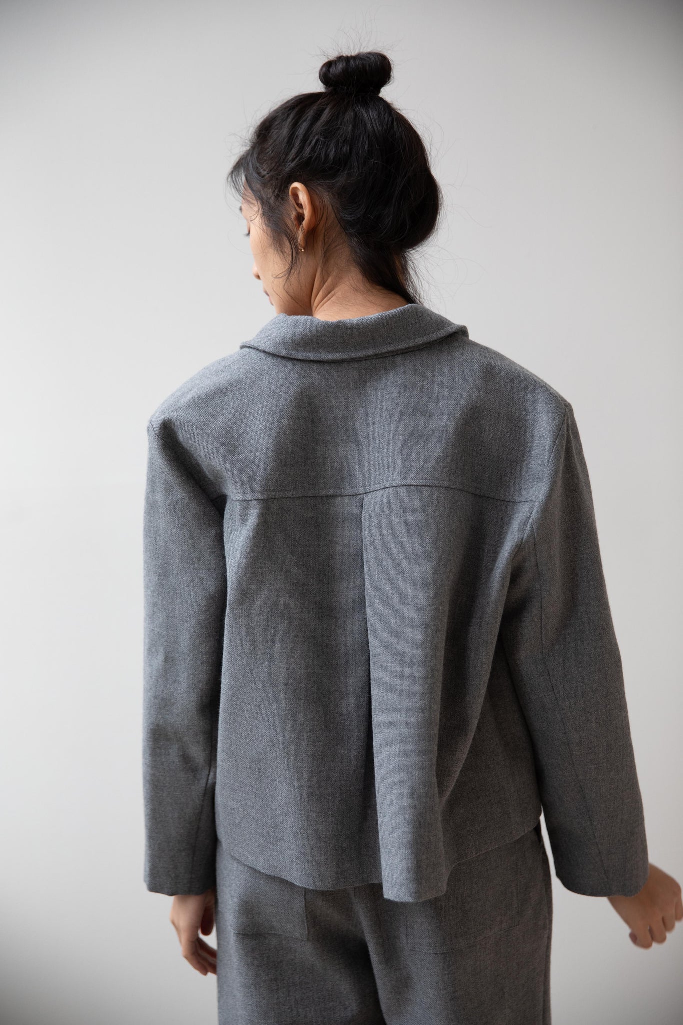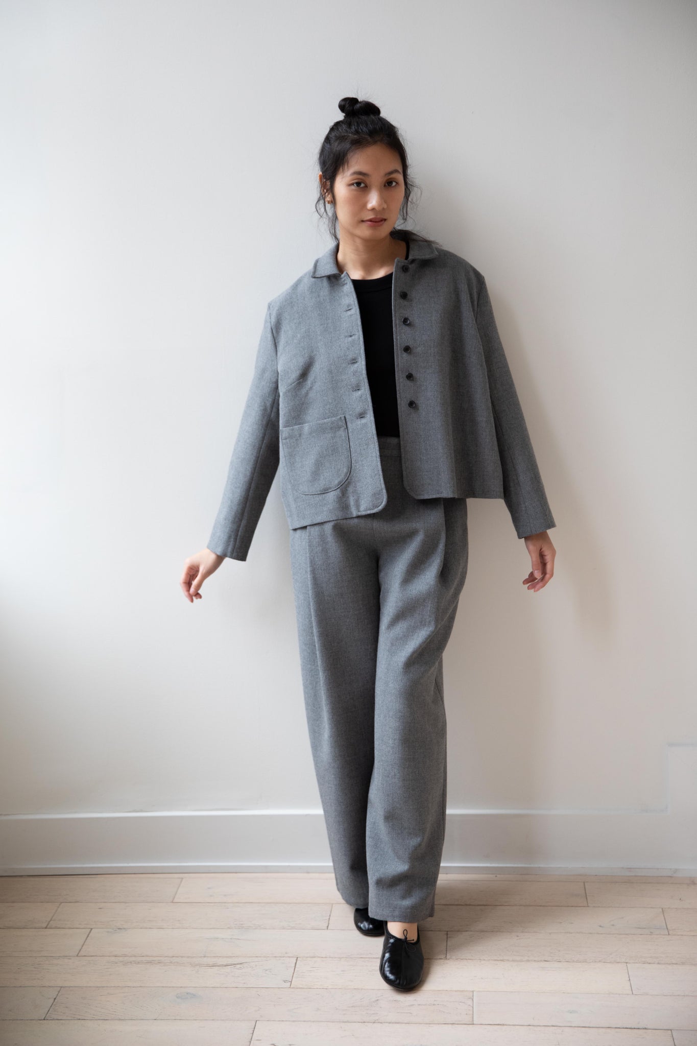 This wool fully-lined jacket features one front pocket, making it super unique. It looks chic when paired with it's matching trousers.