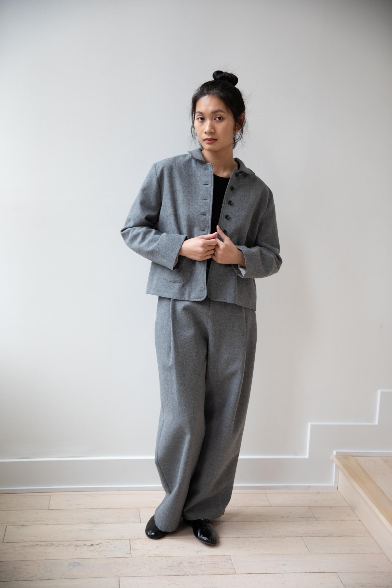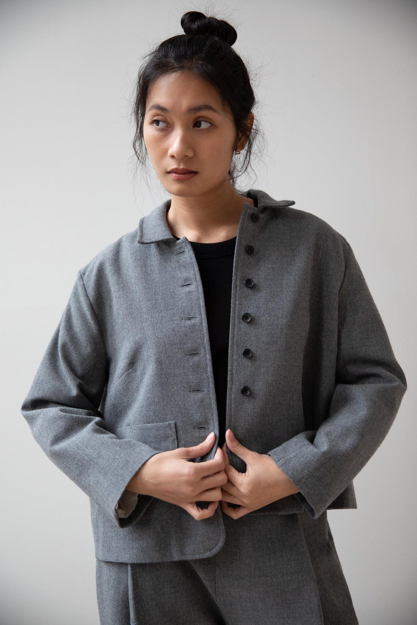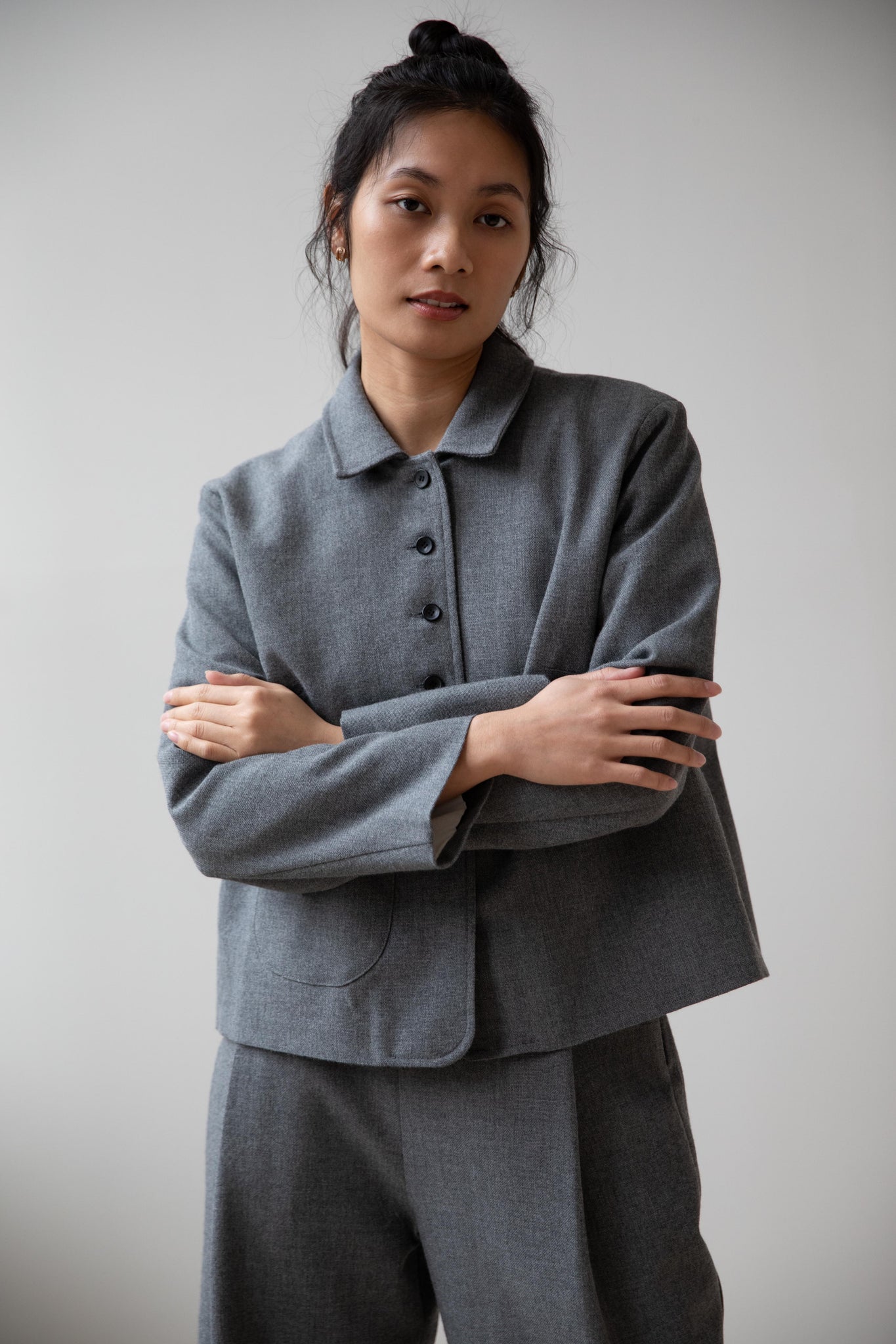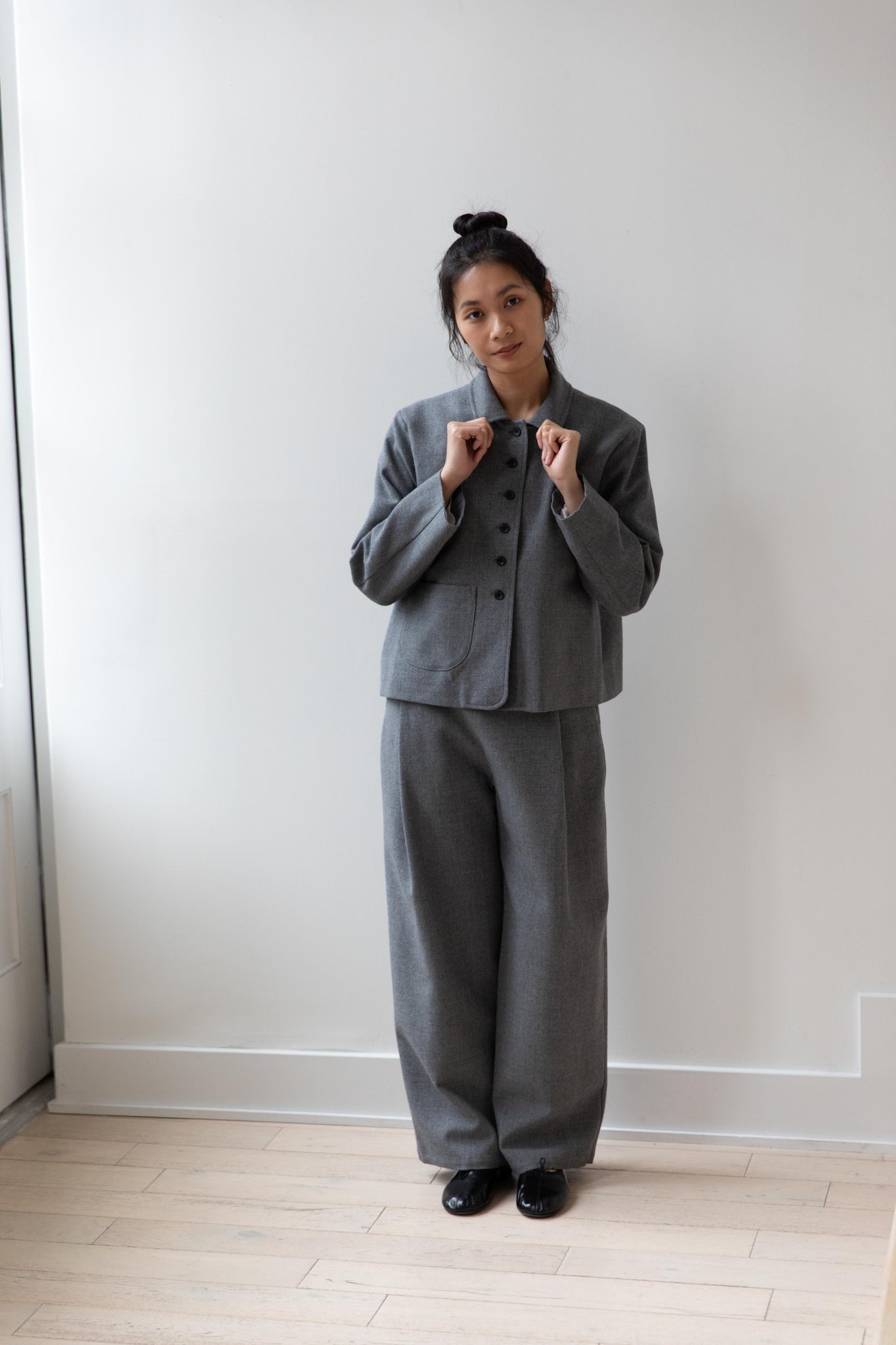 This wool fully-lined jacket features one front pocket, making it super unique. It looks chic when paired with it's matching trousers.