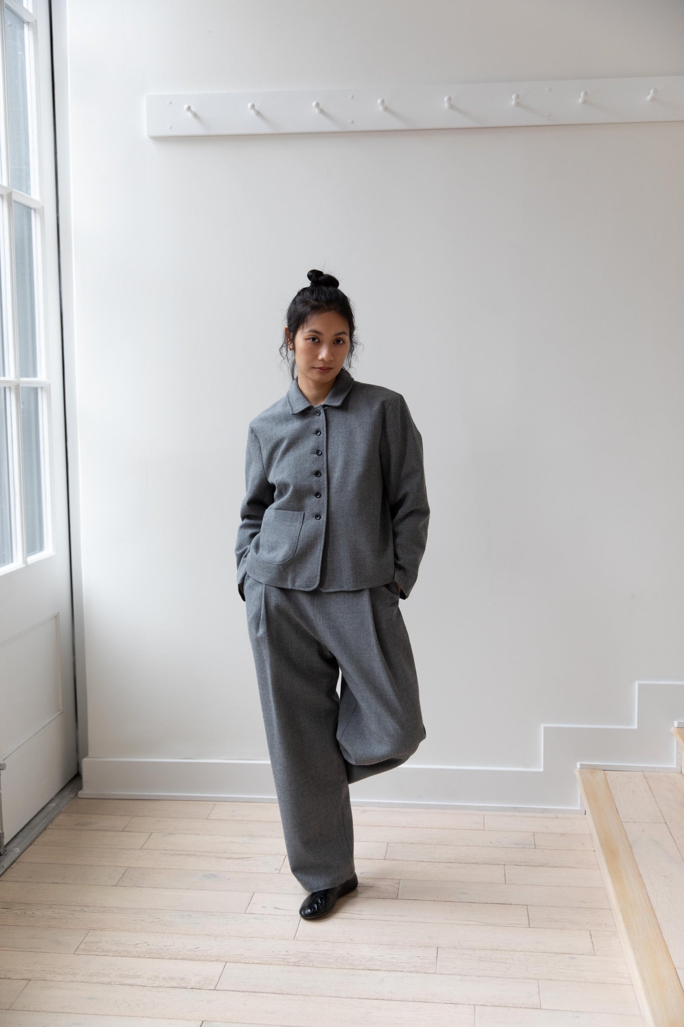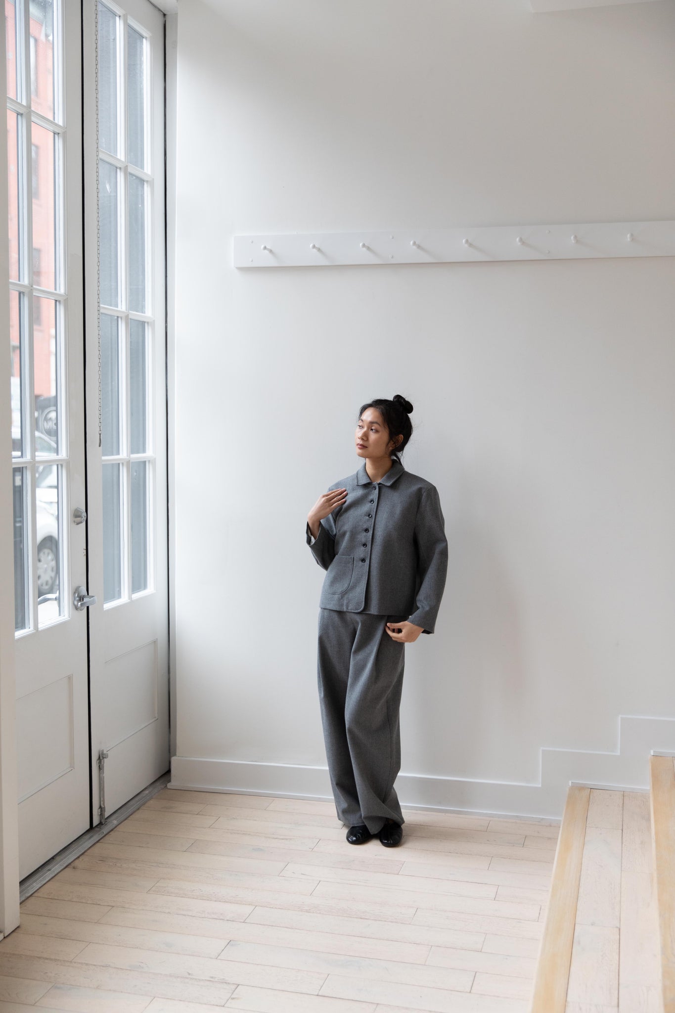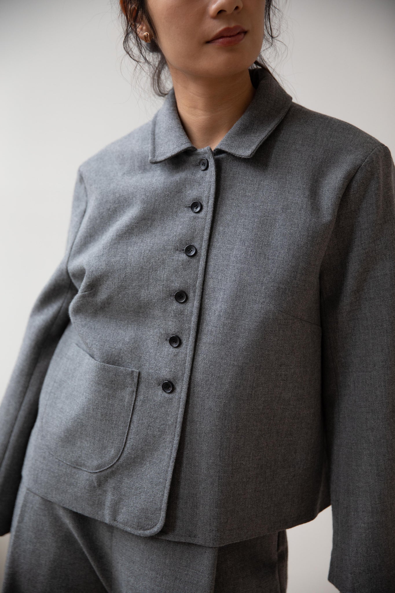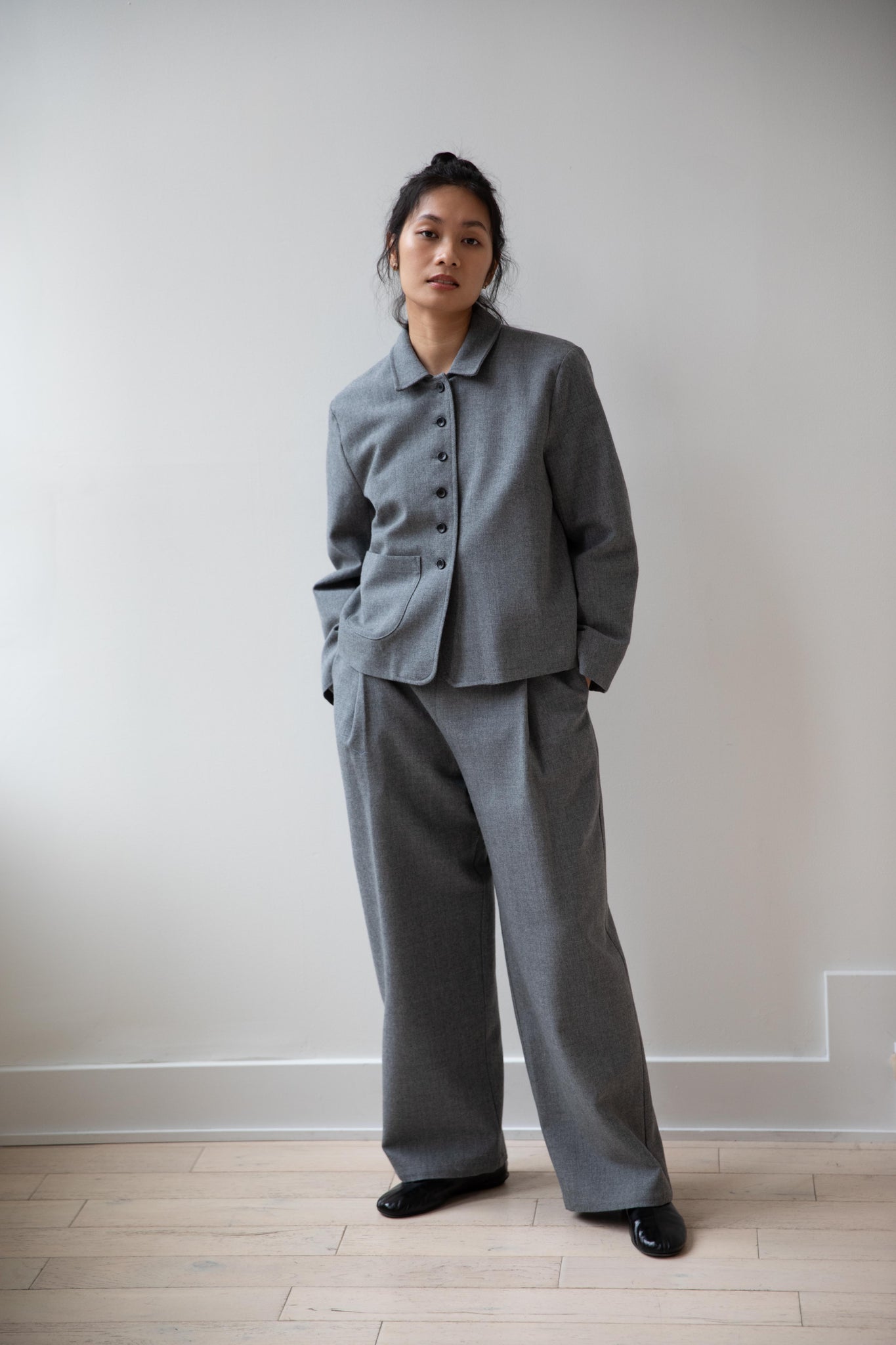This wool fully-lined jacket features one front pocket, making it super unique. It looks chic when paired with it's matching trousers.