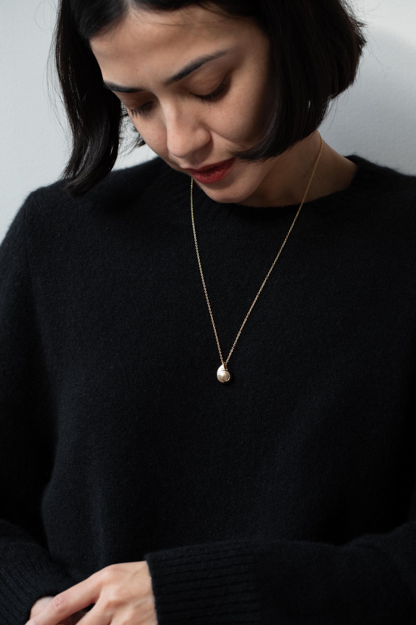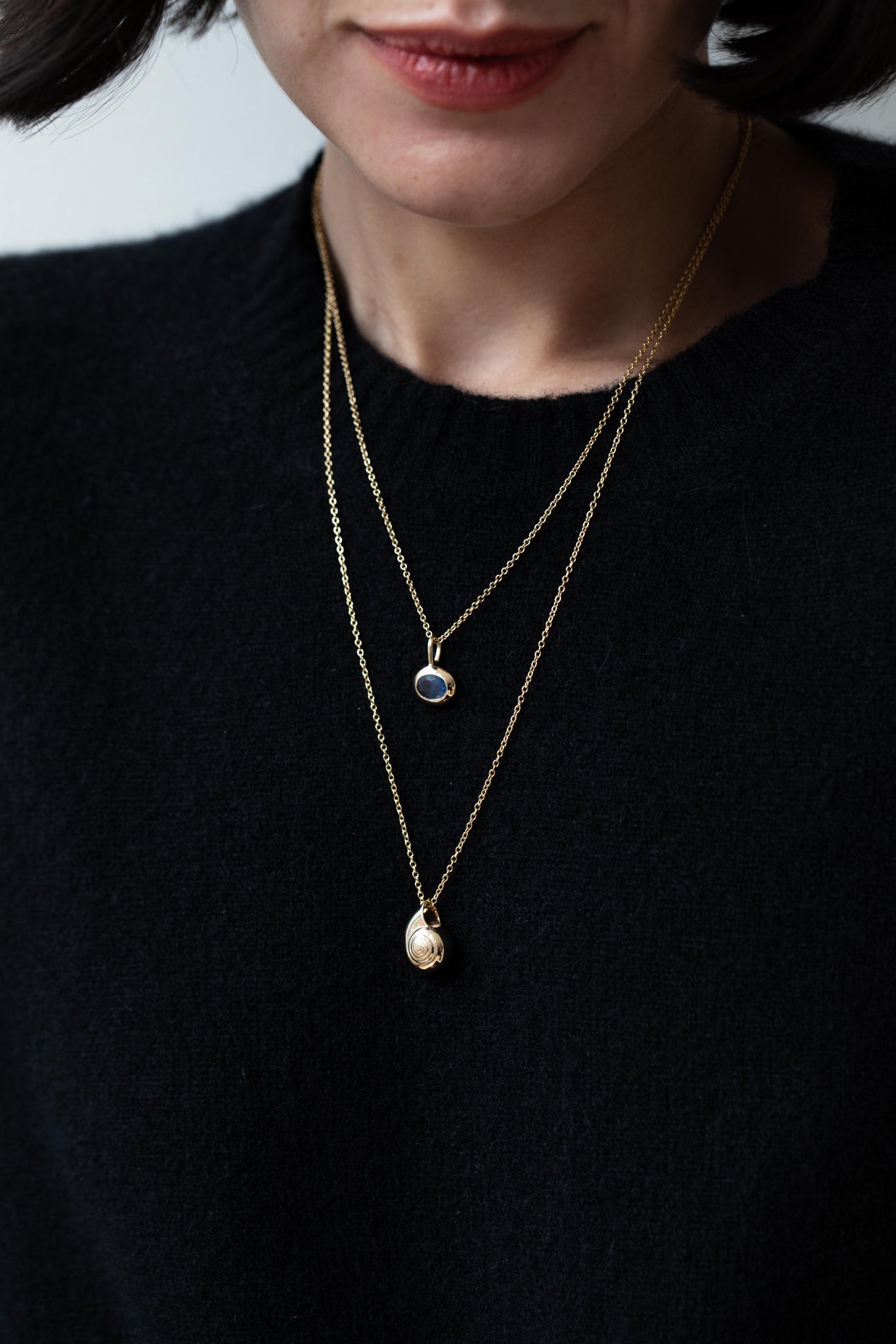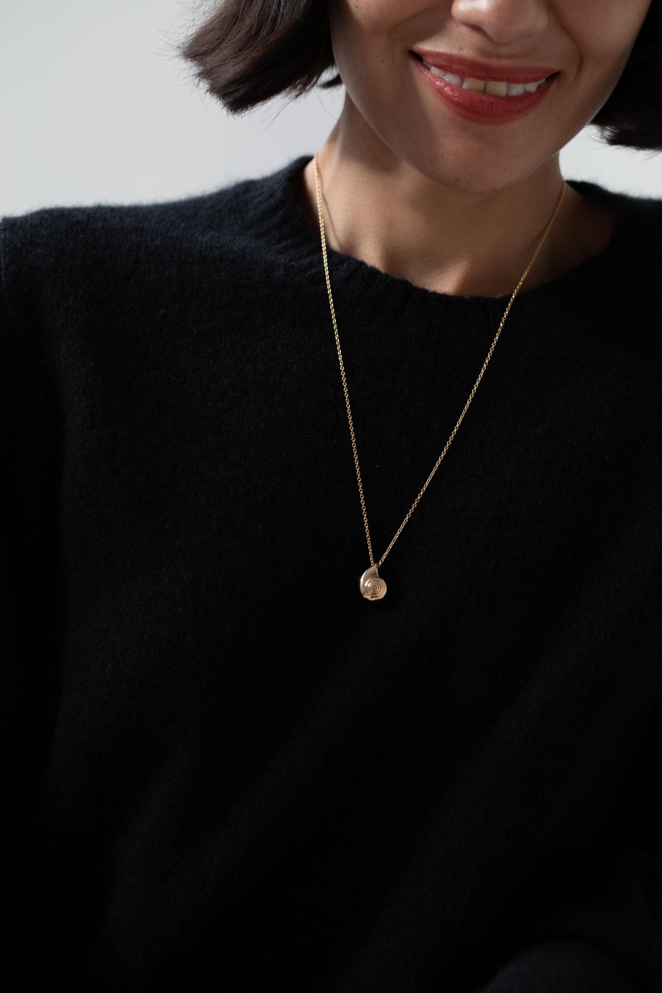 This necklace is stunning. From the entrancing swirl of the nautilus shell to the beautiful warm gold, this necklace is the perfect everyday piece! 22" chain included.