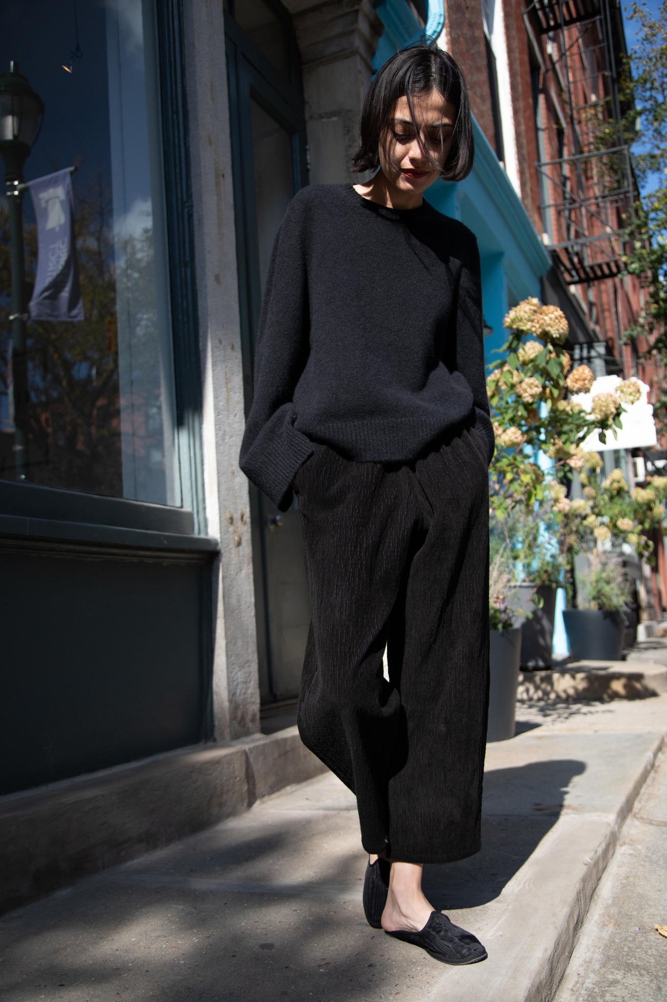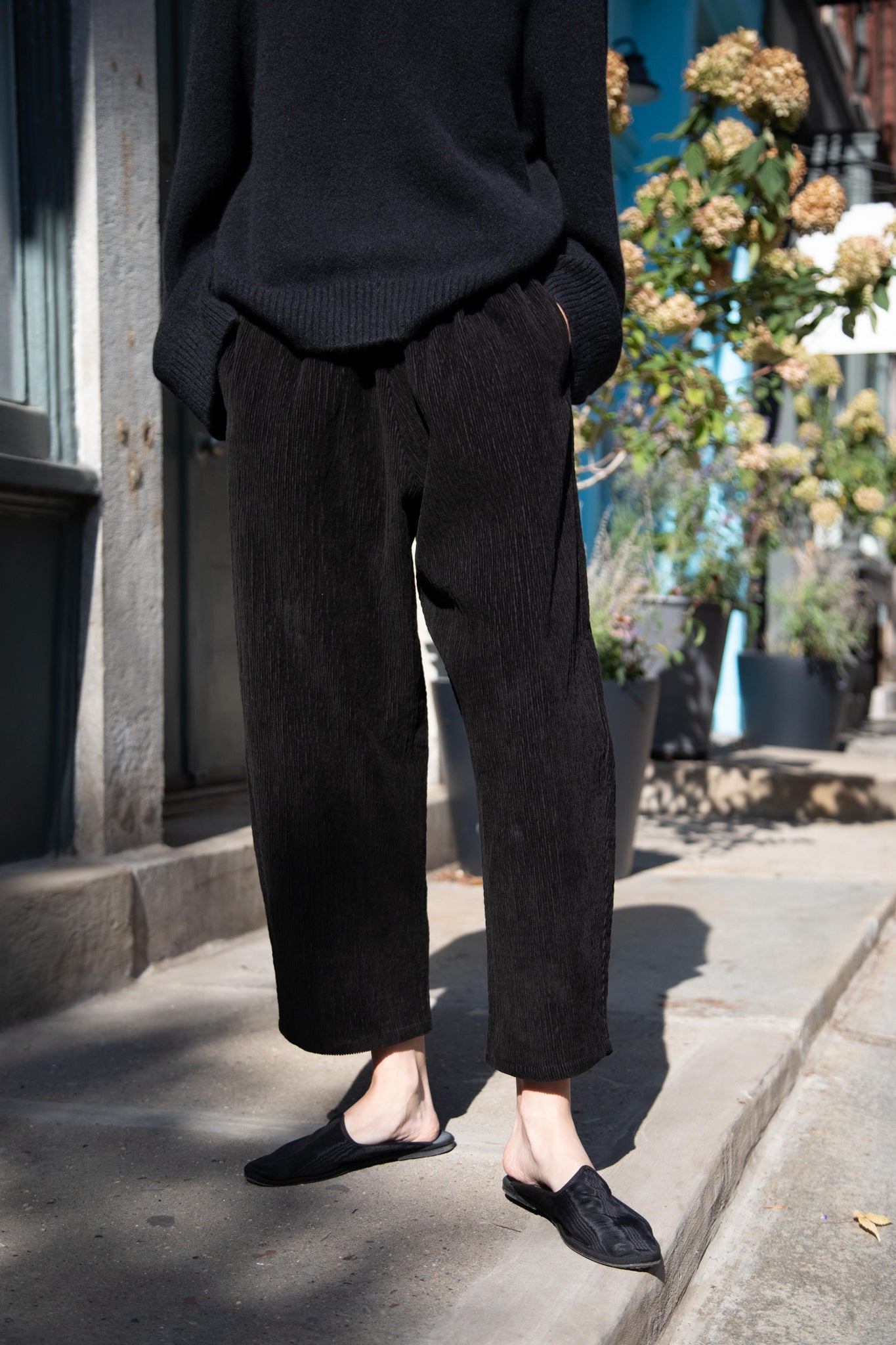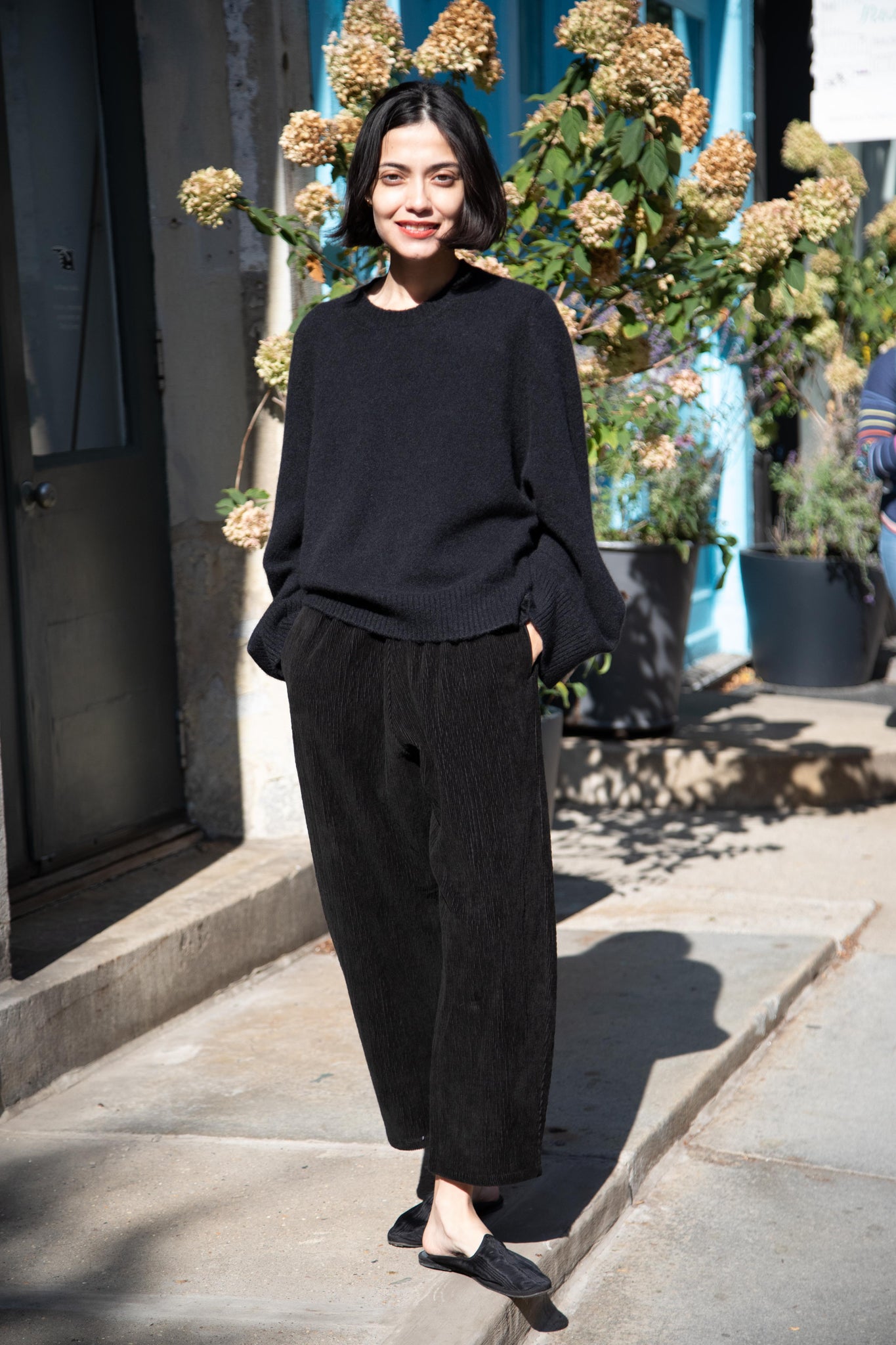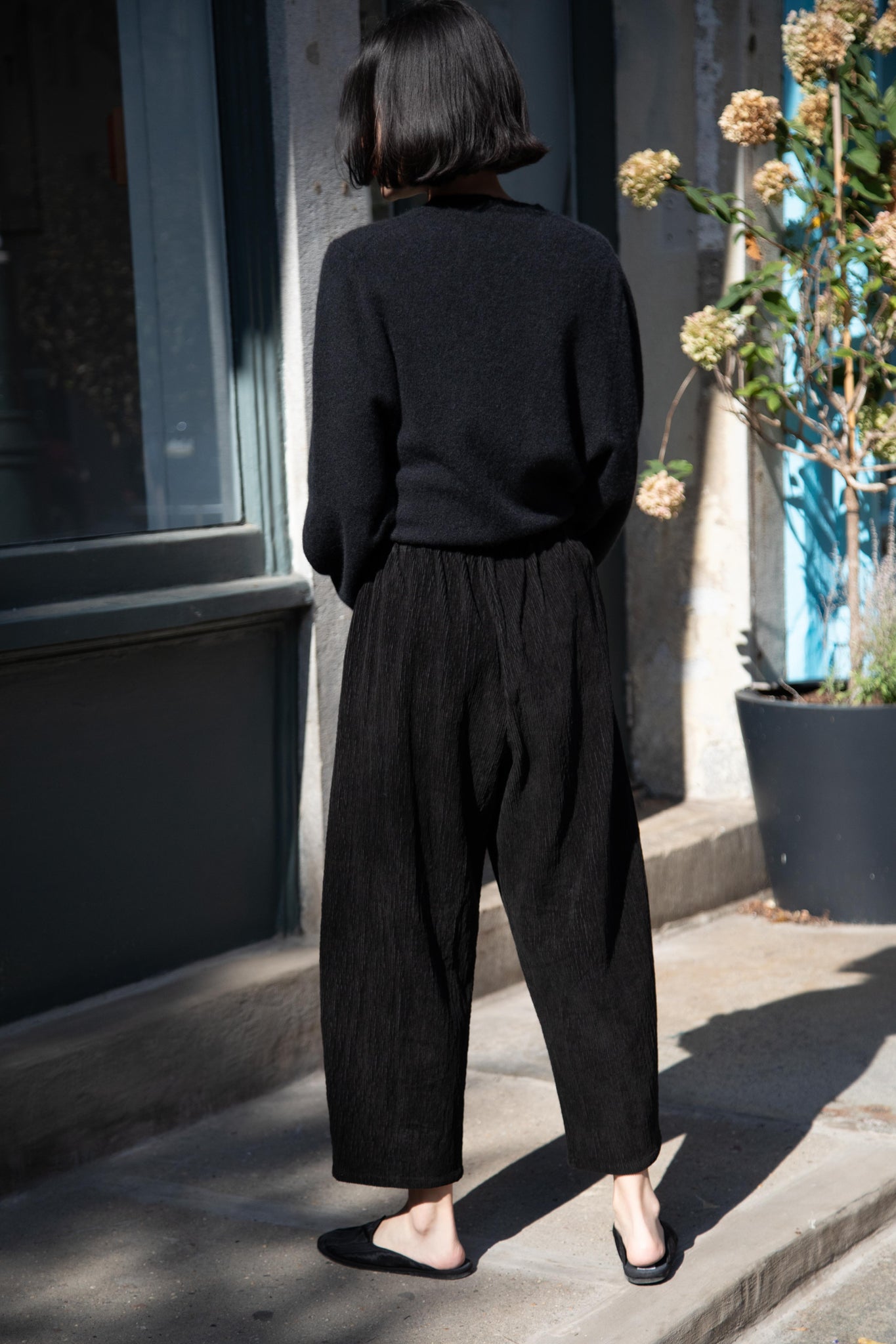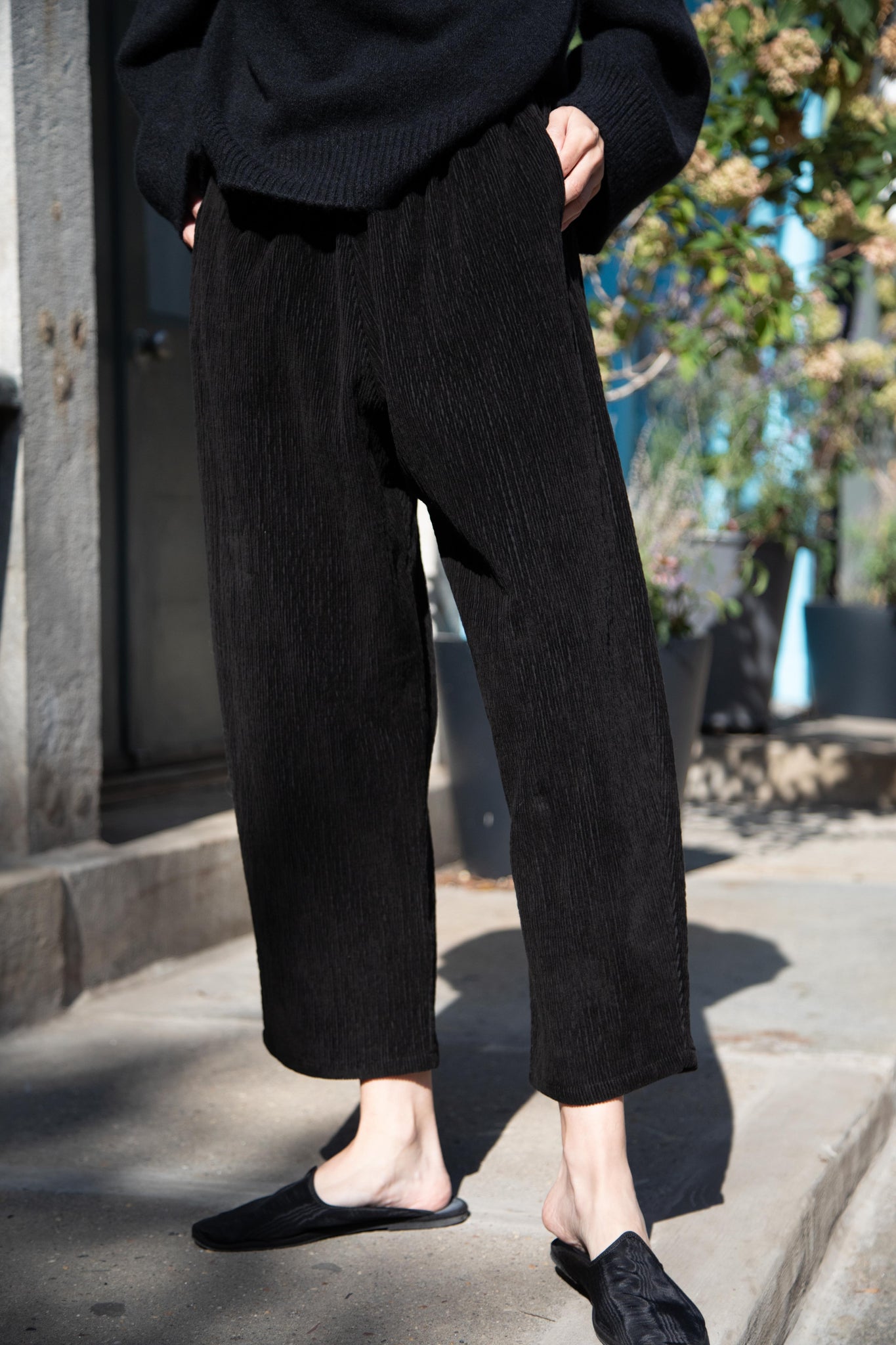 The pant style from Apuntob that everyone can't get enough of! When you ask us, "I want a looser pant, but not too loose - do you have any suggestions?" this is the silhouette we show you - and for good reason! There is a slight bow leg and a little bit of a cropped fit - the proportions seem just right. This season's version is made from a thin waled corduroy and so great we have them in a few fabrics.