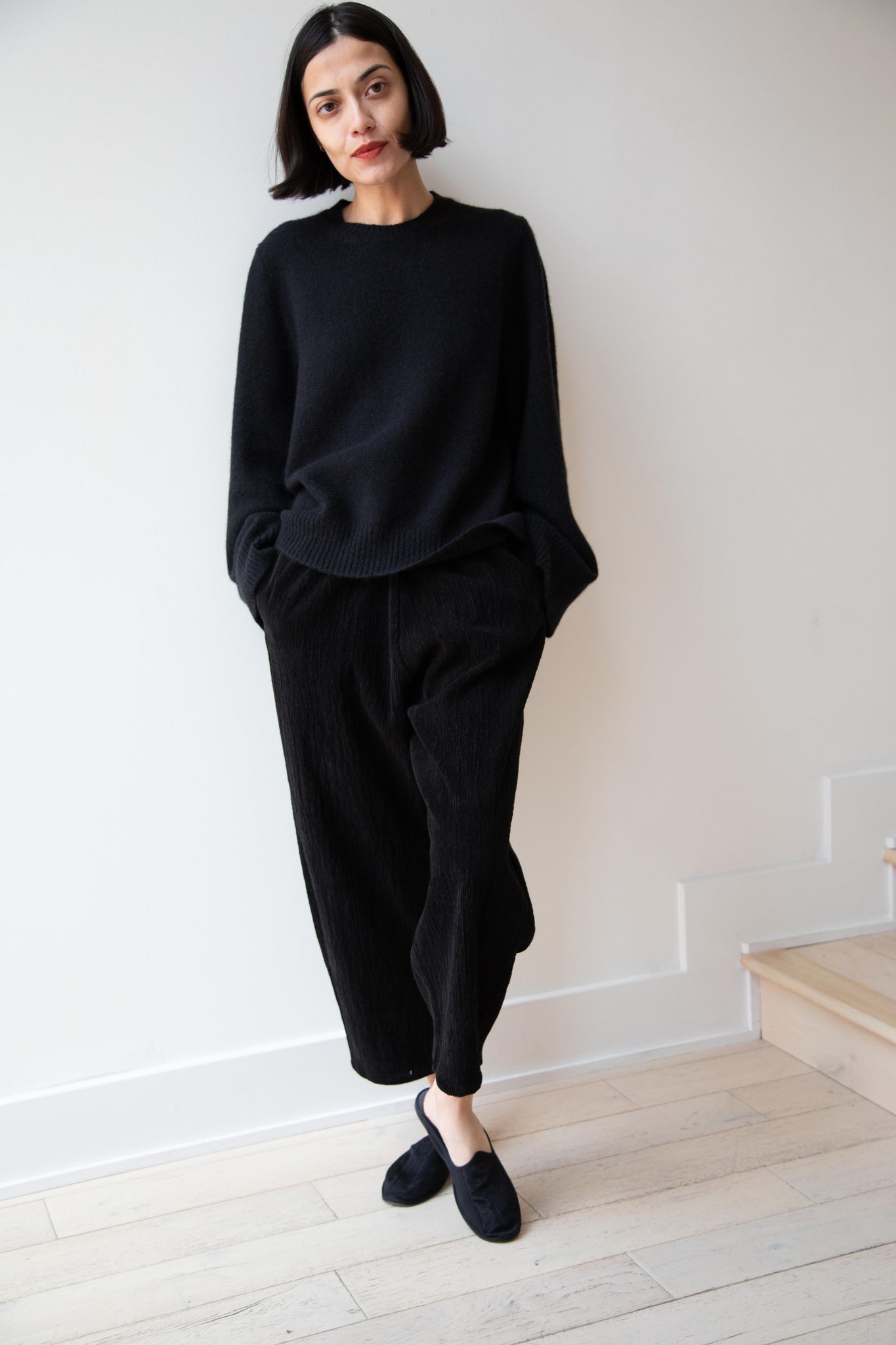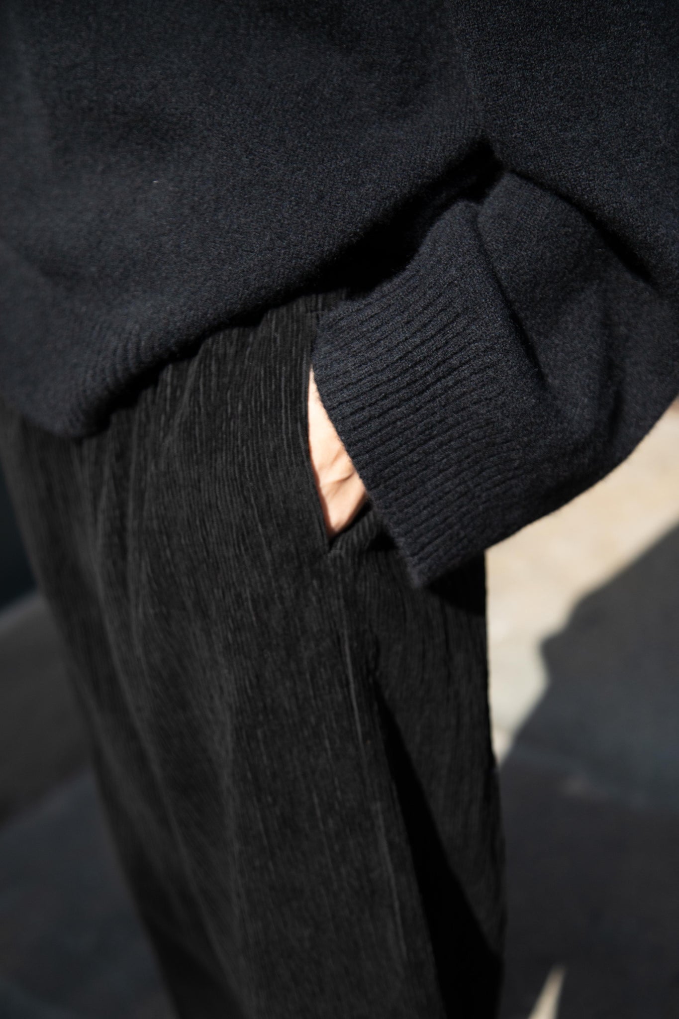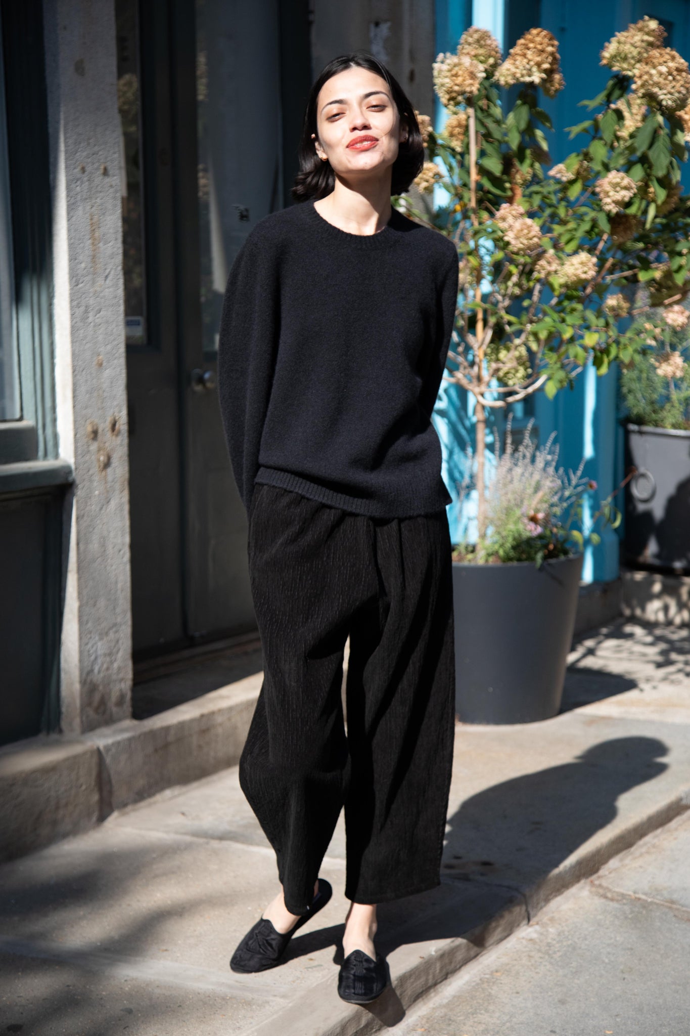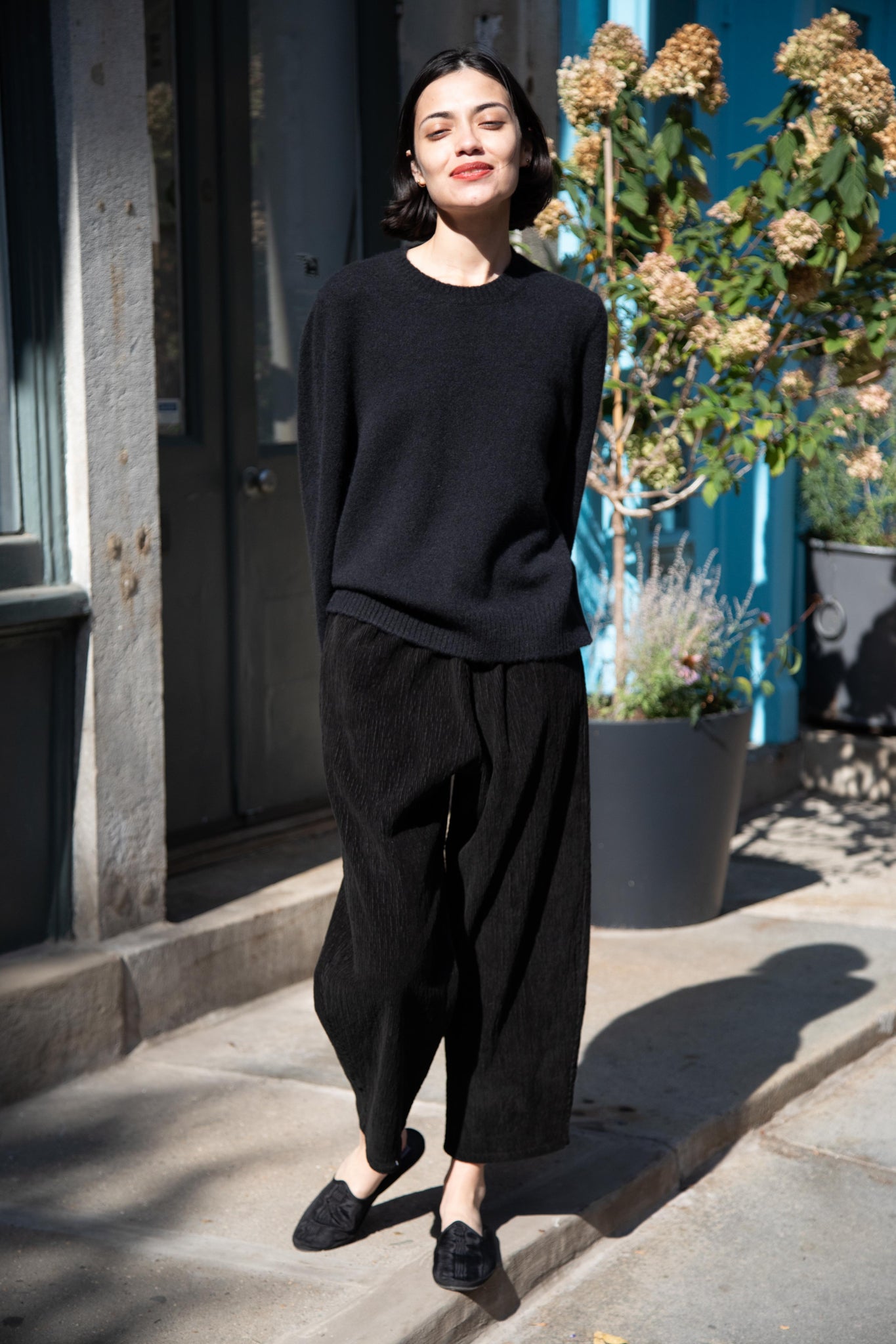 The pant style from Apuntob that everyone can't get enough of! When you ask us, "I want a looser pant, but not too loose - do you have any suggestions?" this is the silhouette we show you - and for good reason! There is a slight bow leg and a little bit of a cropped fit - the proportions seem just right. This season's version is made from a thin waled corduroy and so great we have them in a few fabrics.