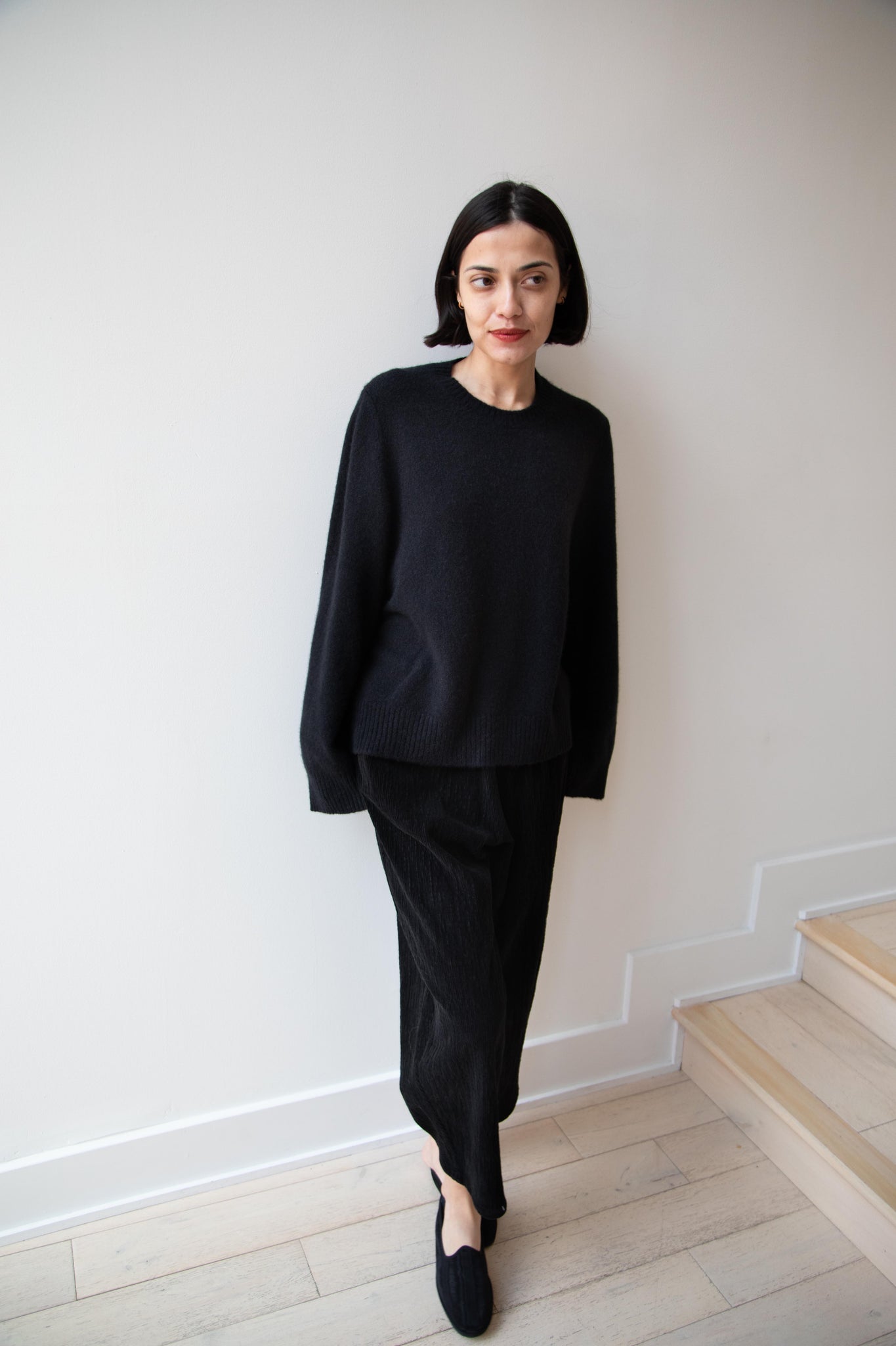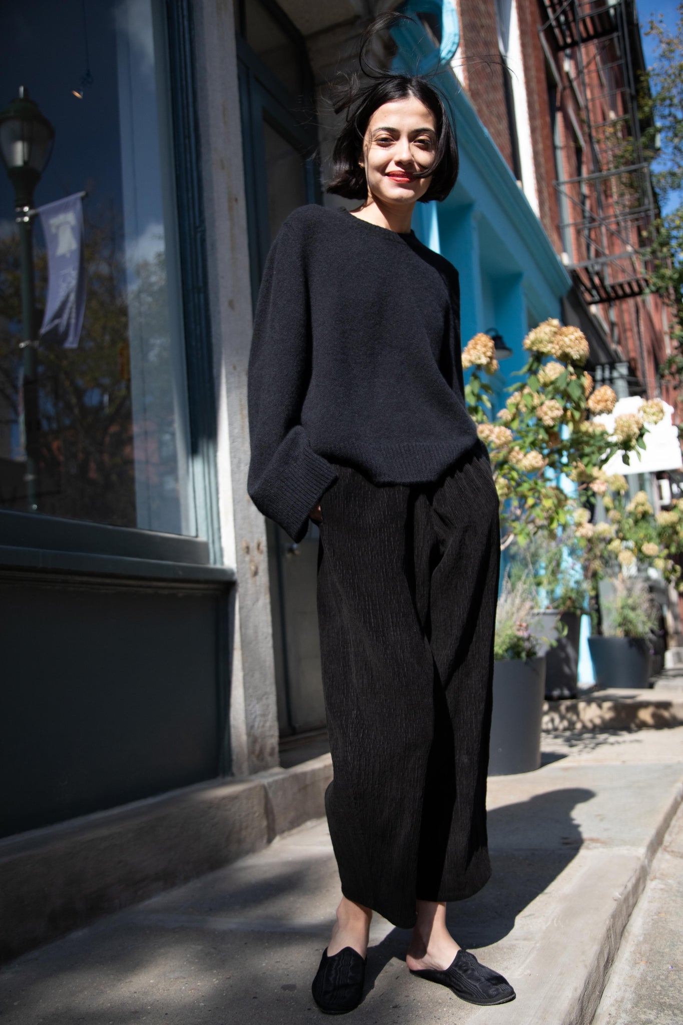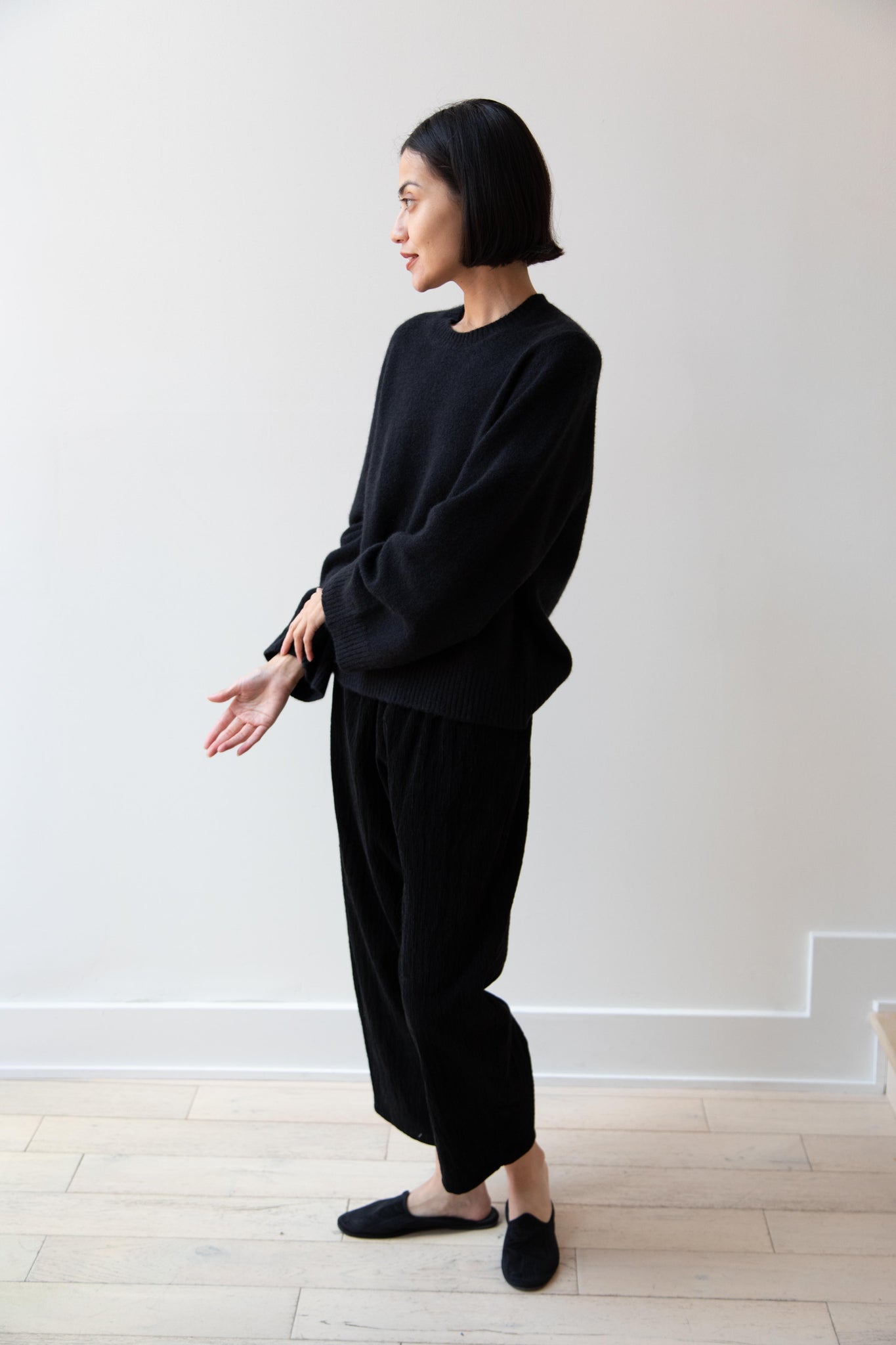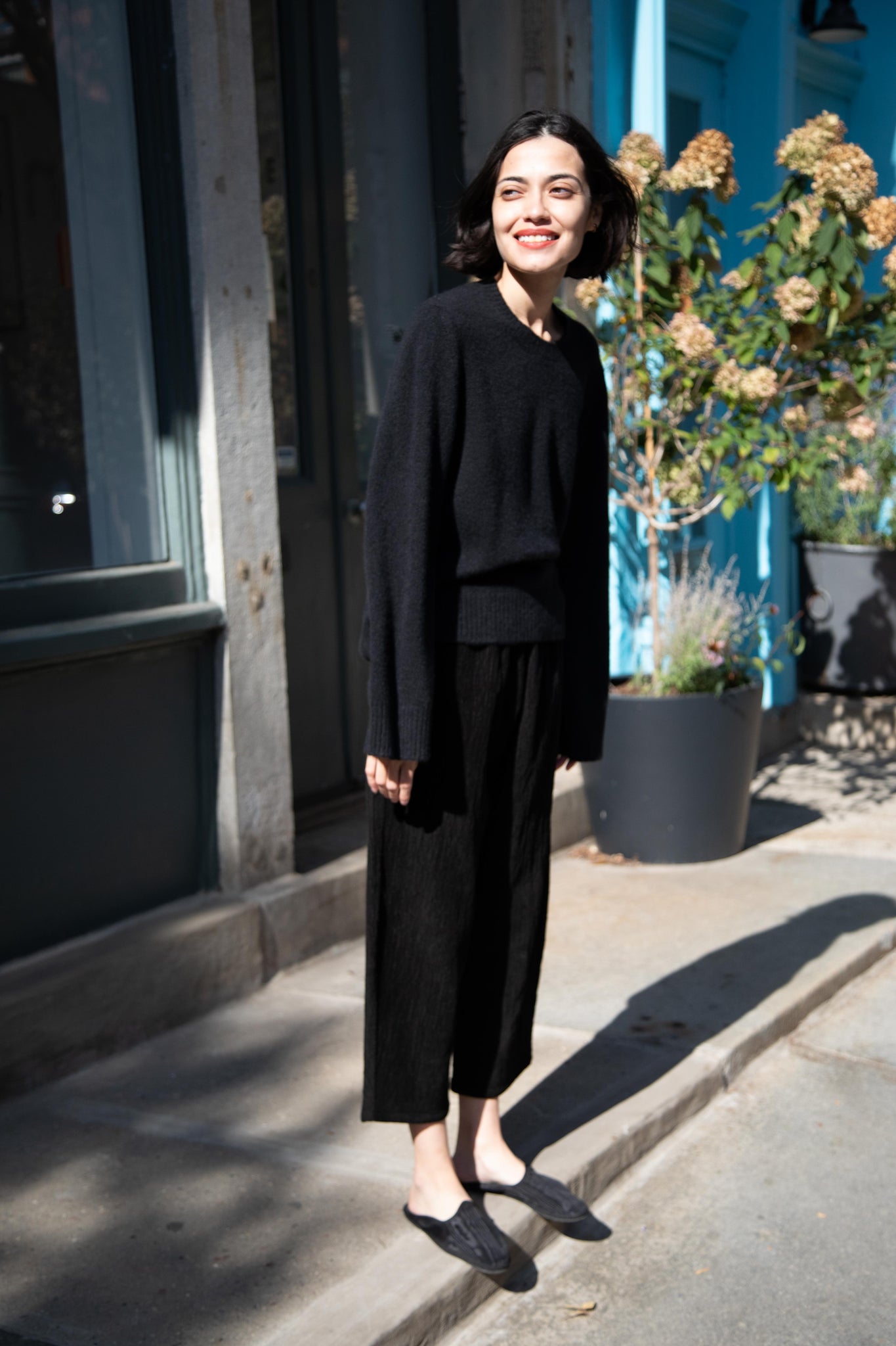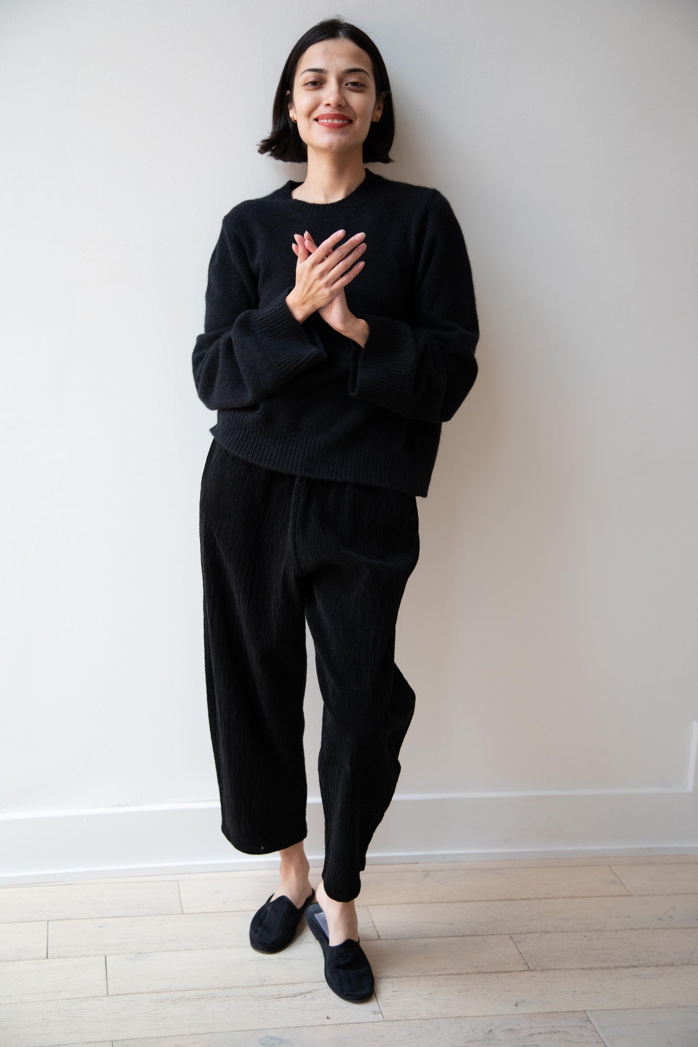 The pant style from Apuntob that everyone can't get enough of! When you ask us, "I want a looser pant, but not too loose - do you have any suggestions?" this is the silhouette we show you - and for good reason! There is a slight bow leg and a little bit of a cropped fit - the proportions seem just right. This season's version is made from a thin waled corduroy and so great we have them in a few fabrics.