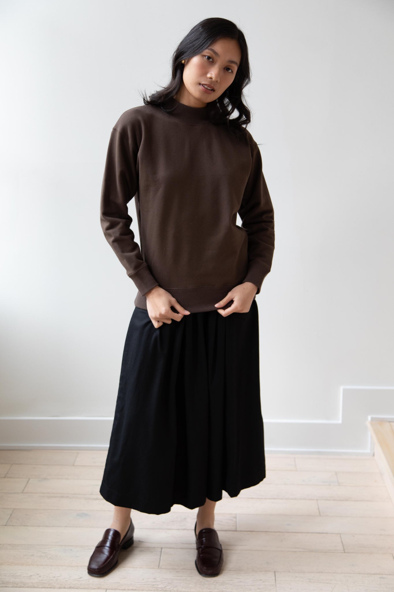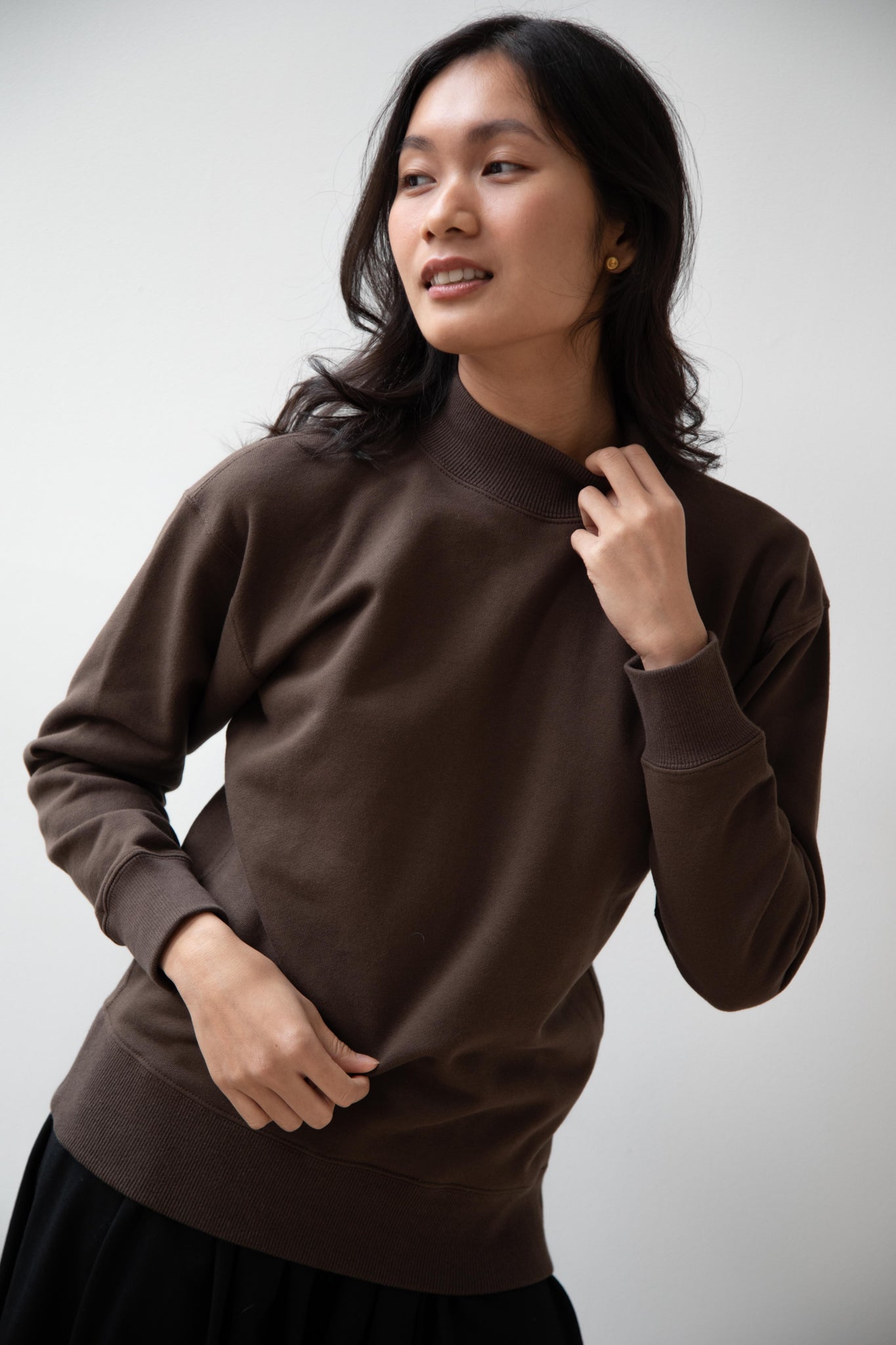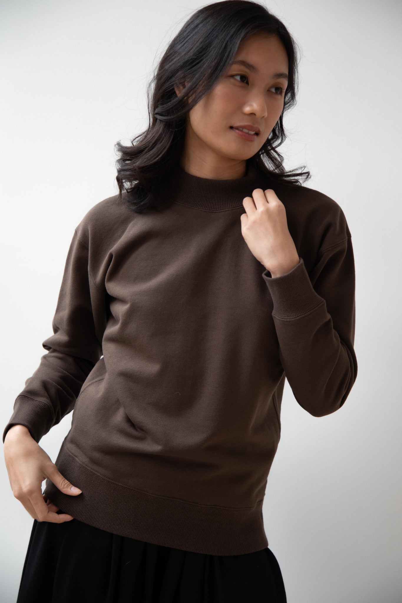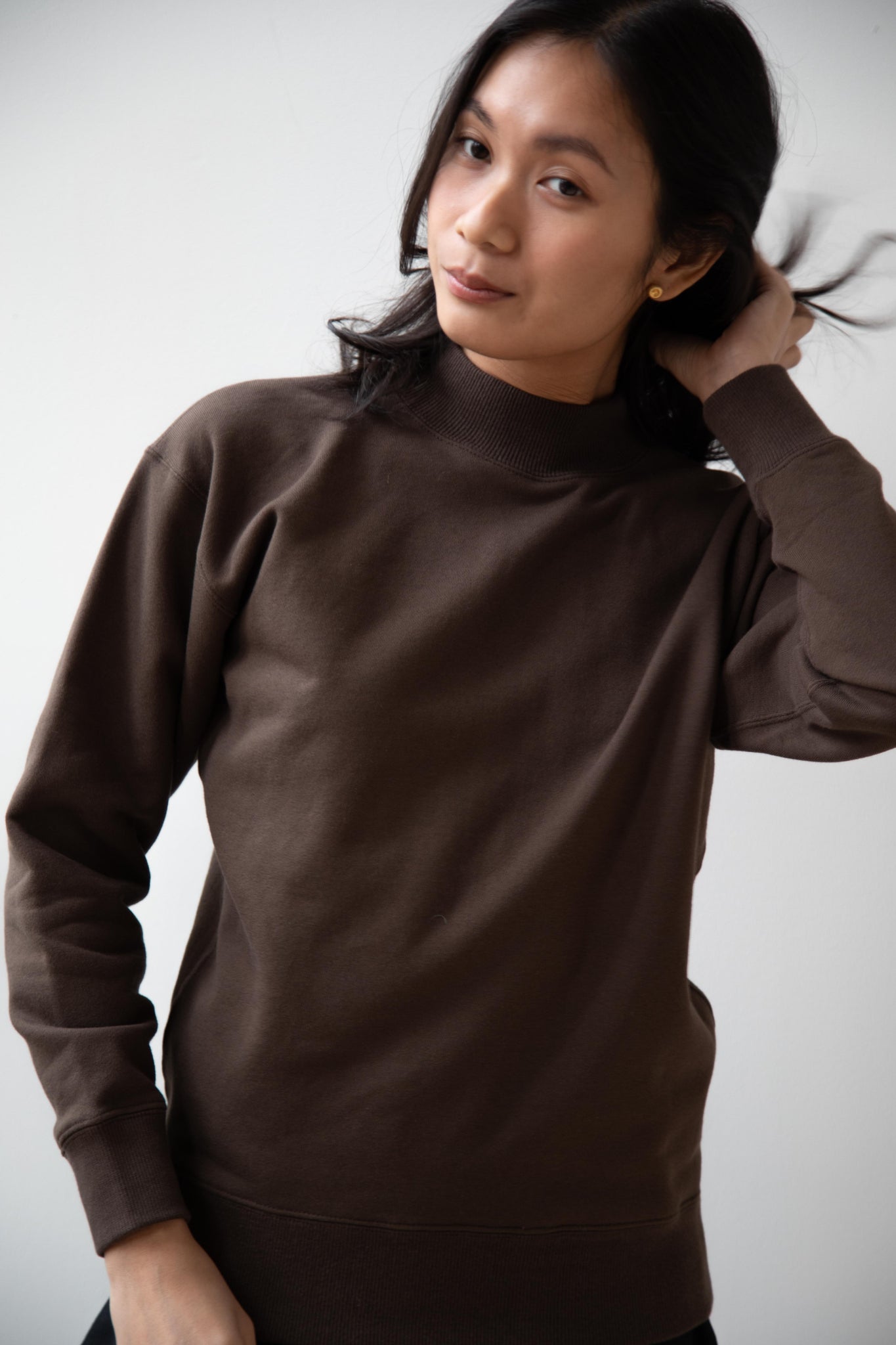 Meet your new favorite sweatshirt which is back again for another season! Made of light/mid-weight cotton this piece is so cozy and chic. We love the mock neck style and how easy it is to layer. It is longer through the body and can easily be tucked in.
