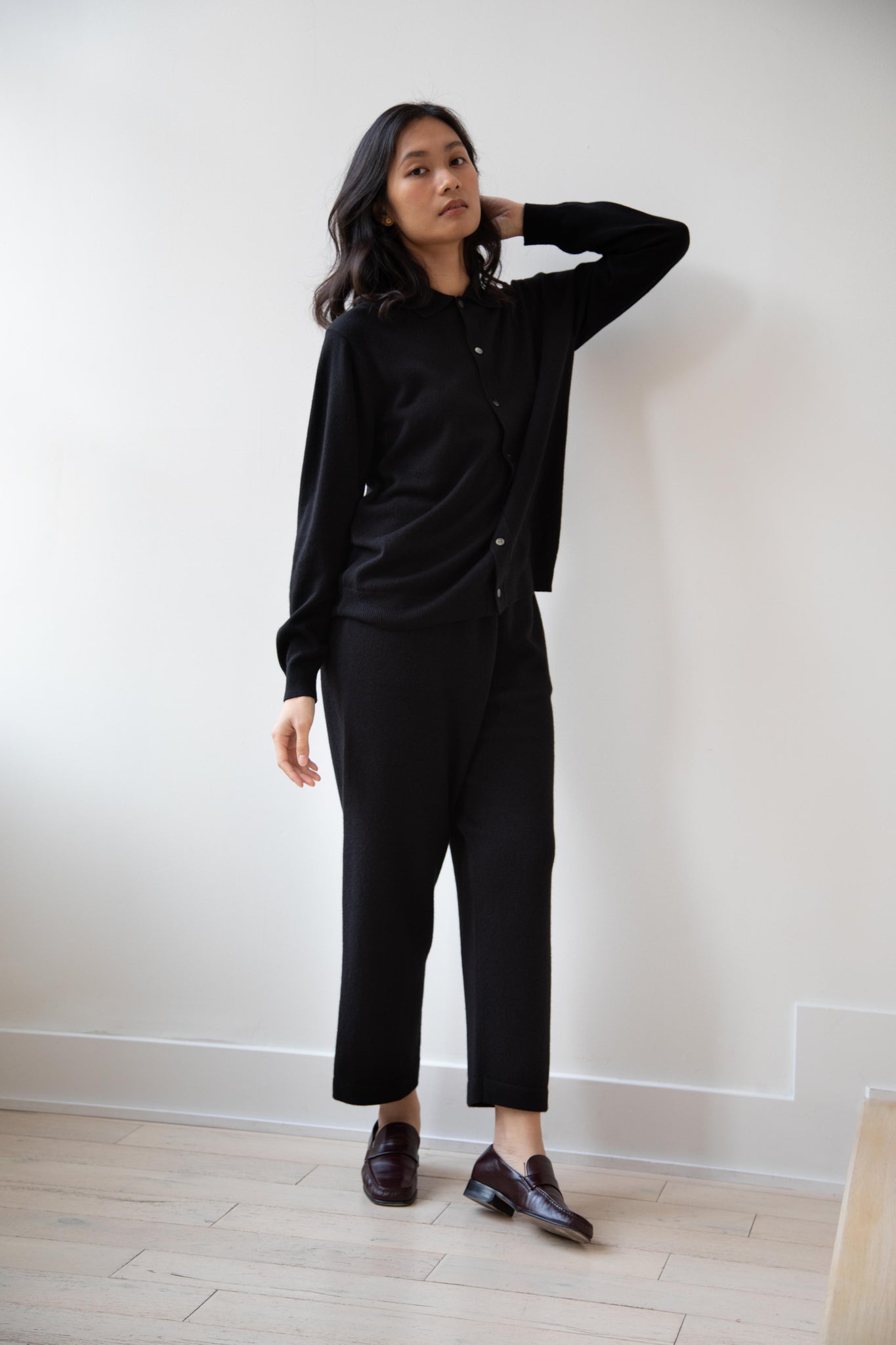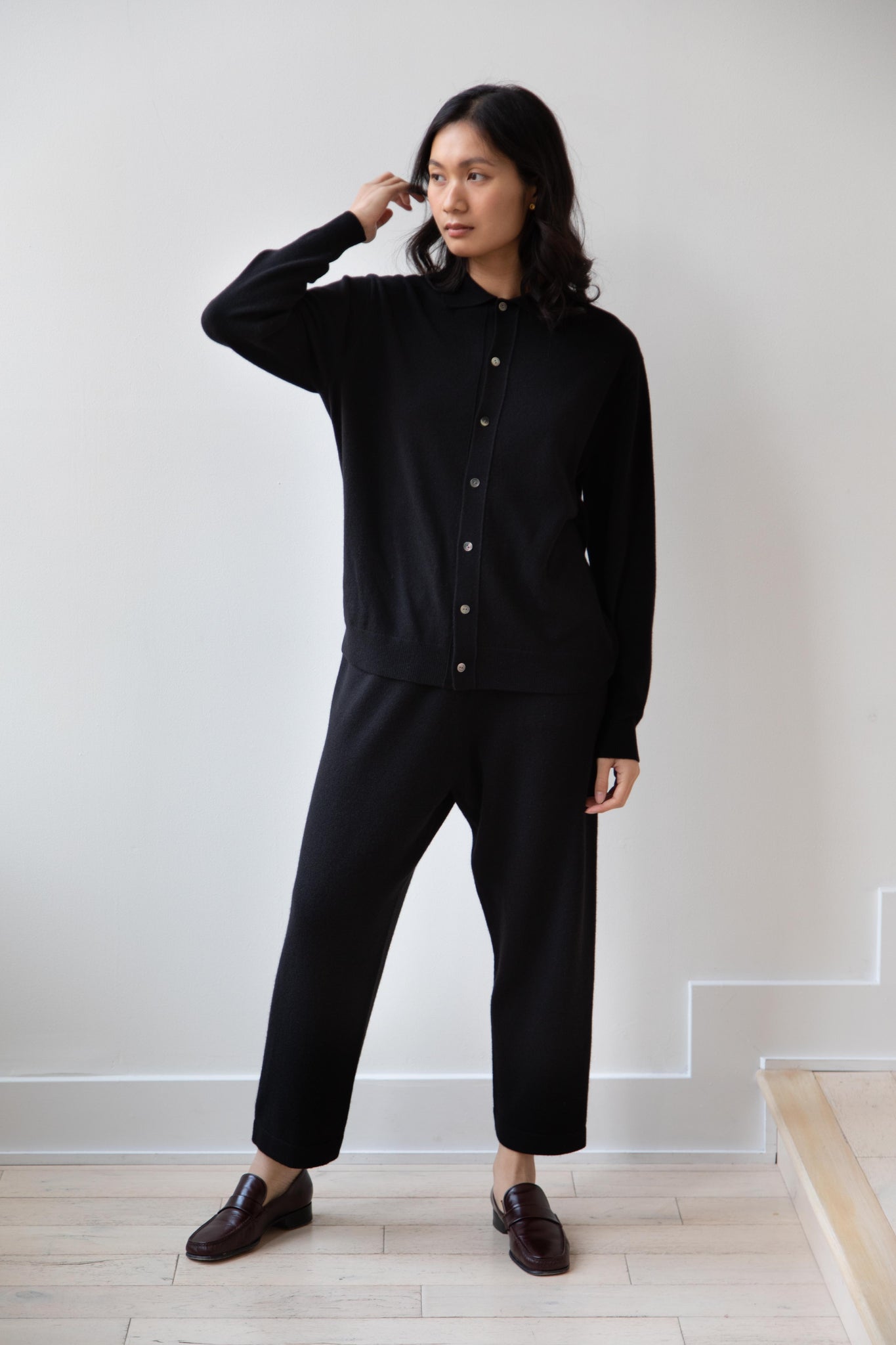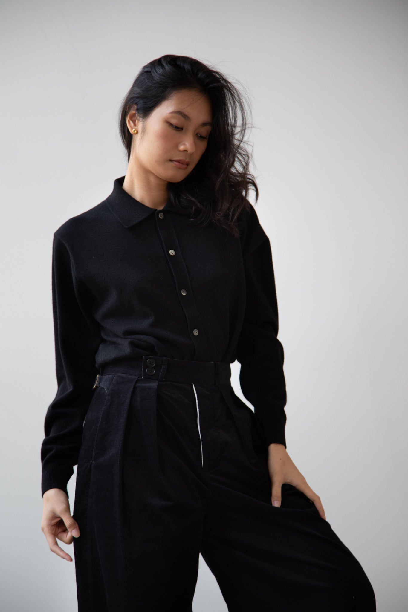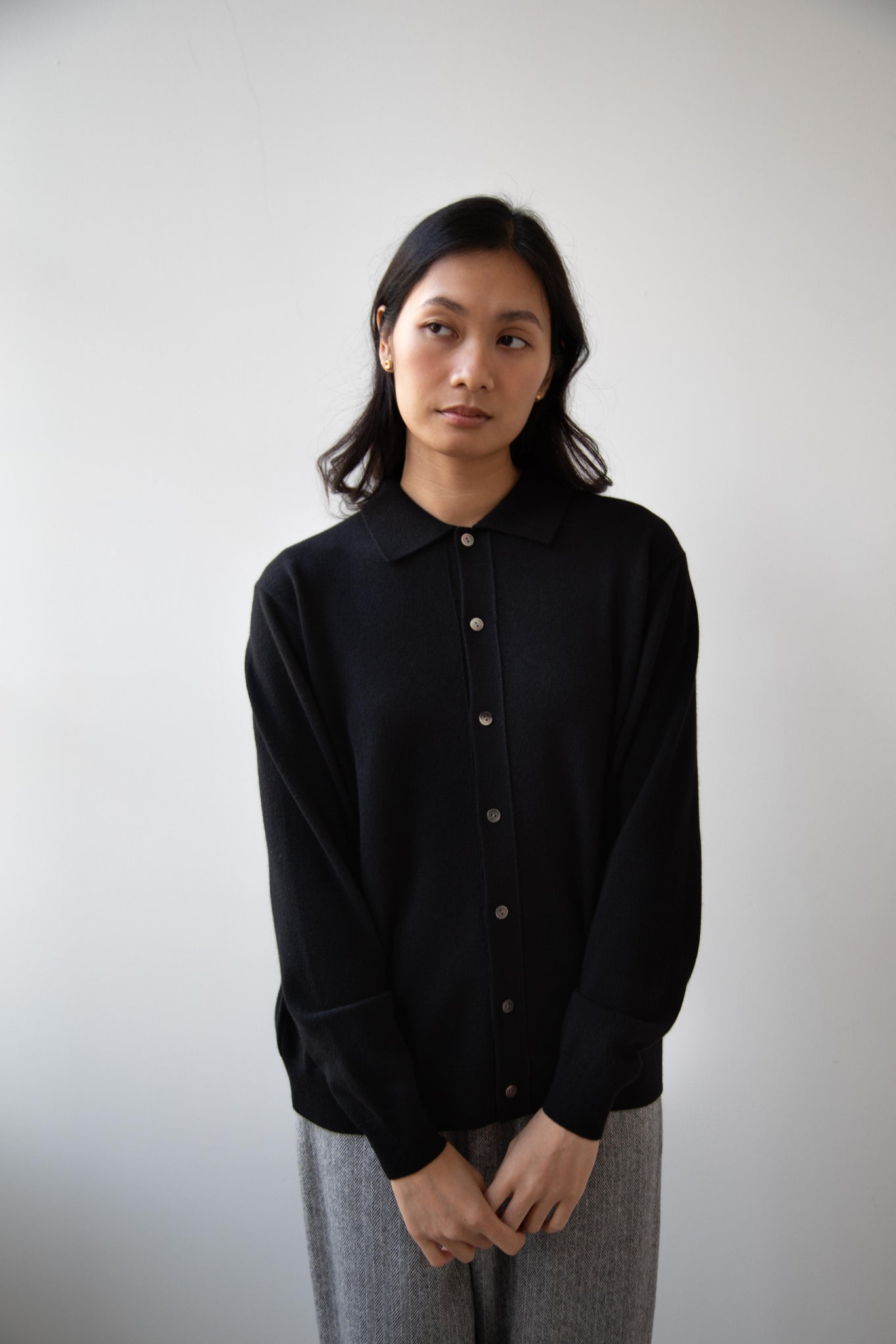 This polo sweater is simple and very special. Made from a soft cashmere, this style features a button up front so you can wear this as a shirt or a cardigan. This medium weight knit is also perfect for tucking into trousers or skirts, so it's a great layering piece.