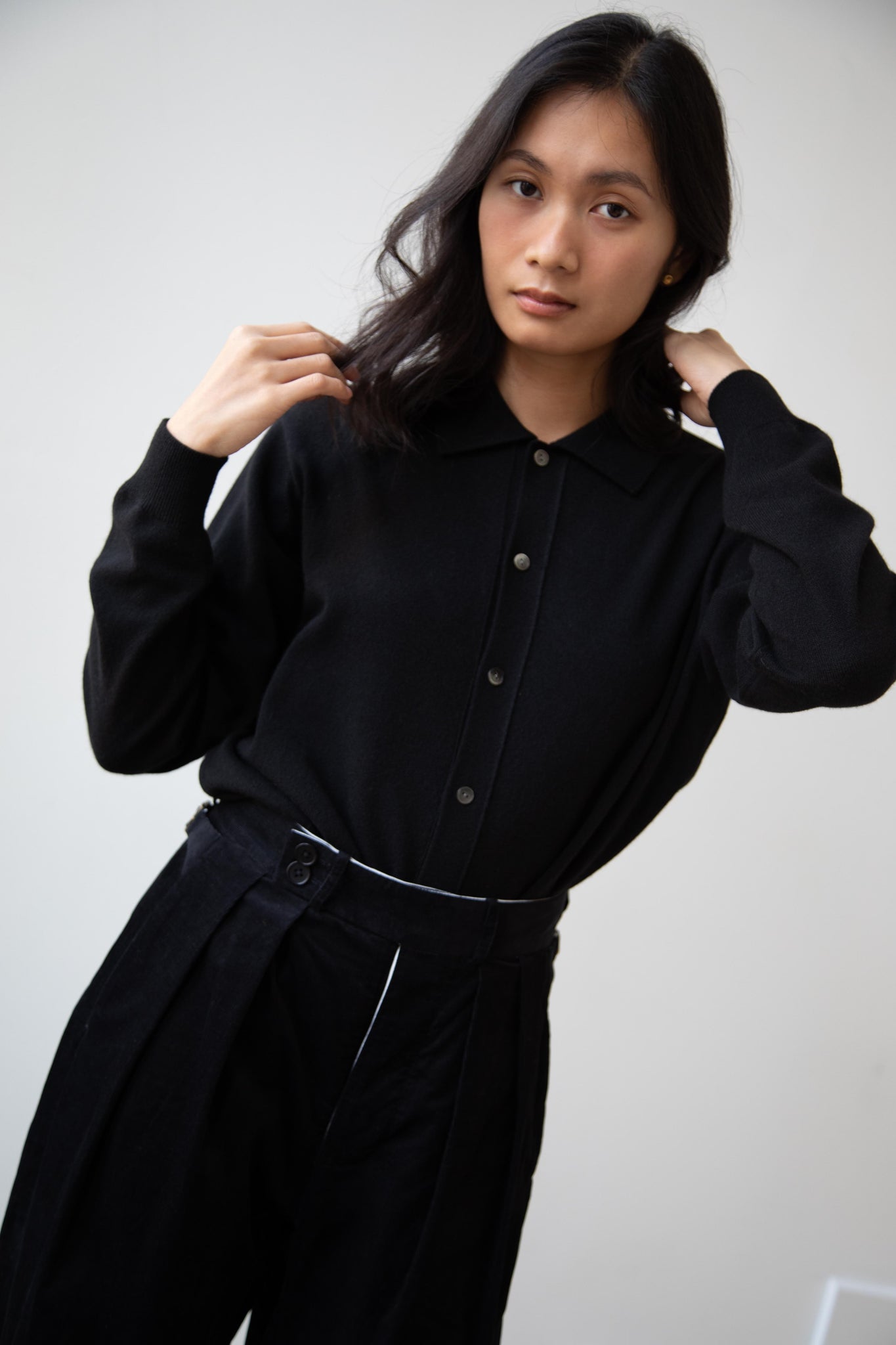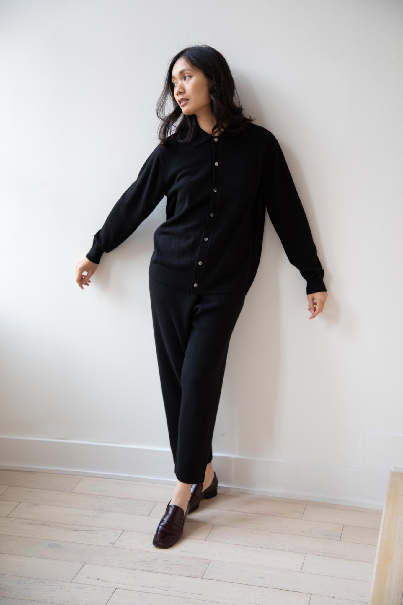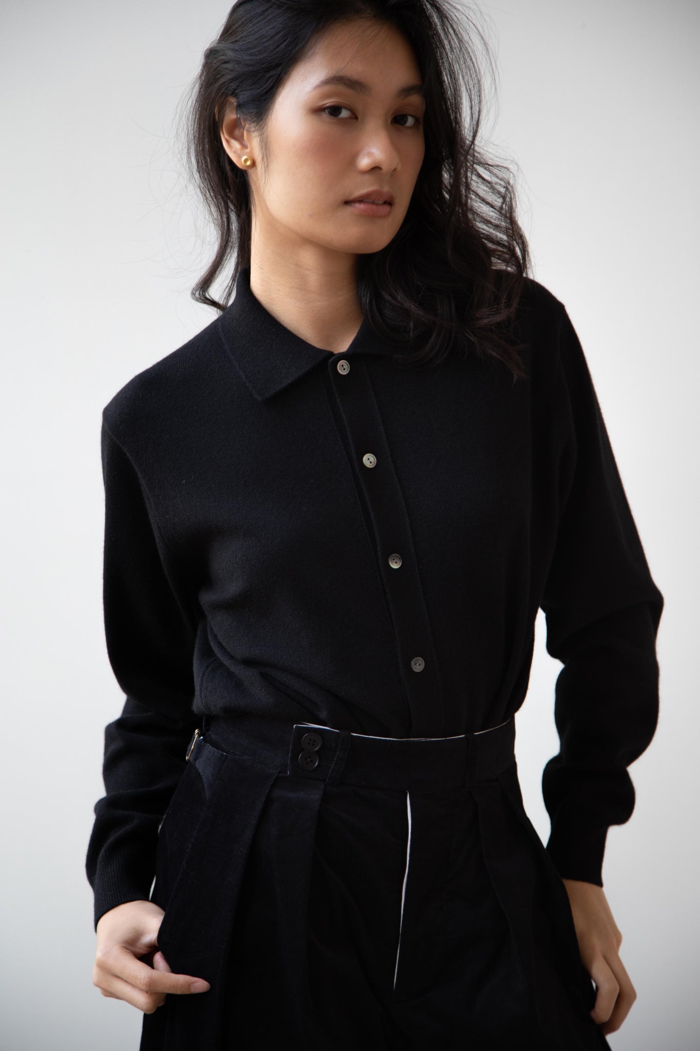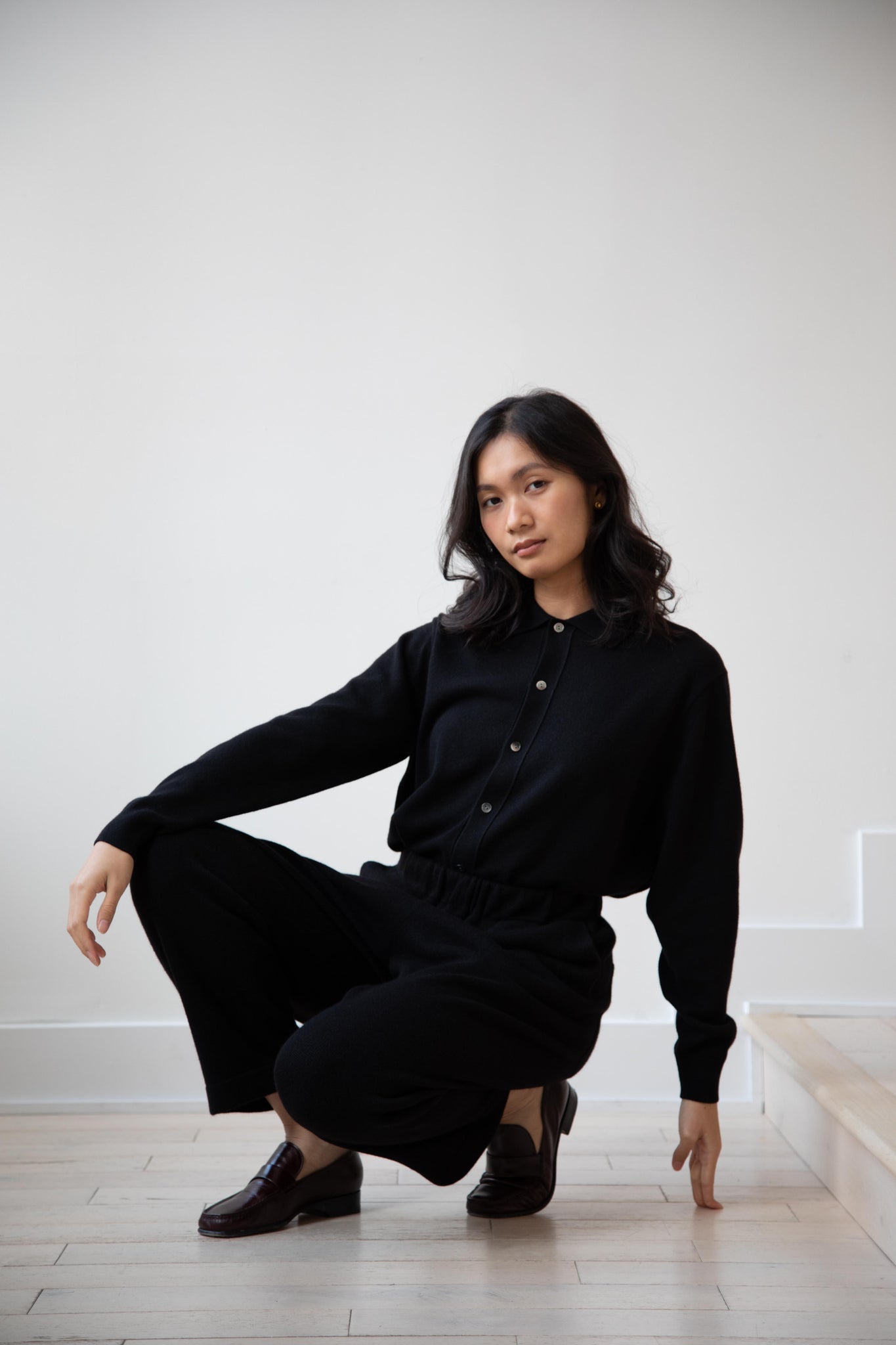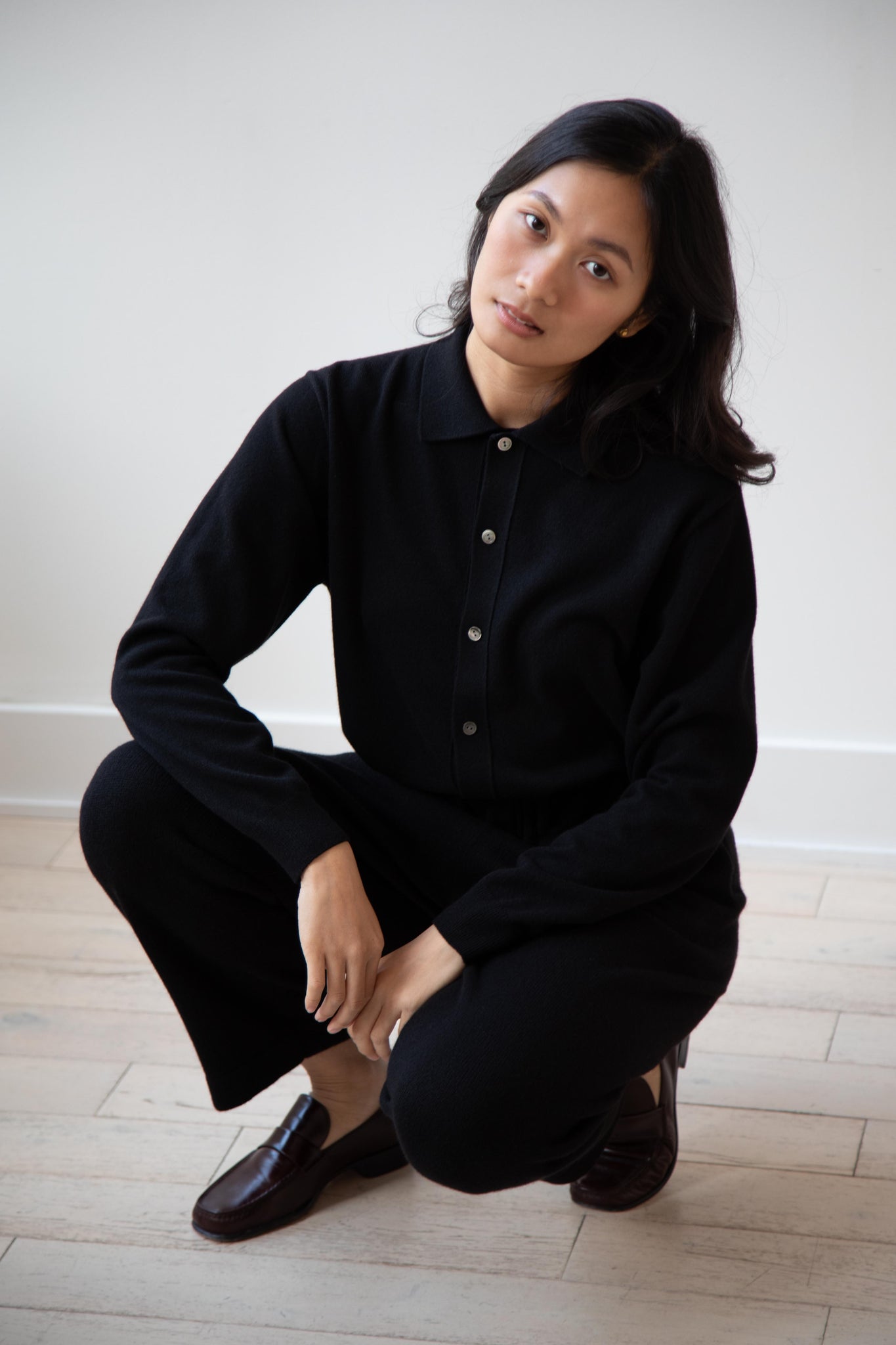 This polo sweater is simple and very special. Made from a soft cashmere, this style features a button up front so you can wear this as a shirt or a cardigan. This medium weight knit is also perfect for tucking into trousers or skirts, so it's a great layering piece.