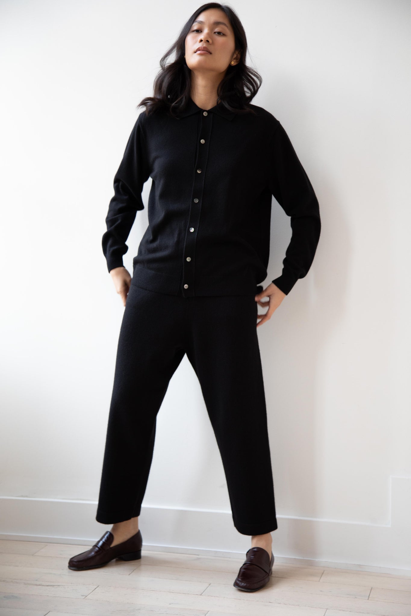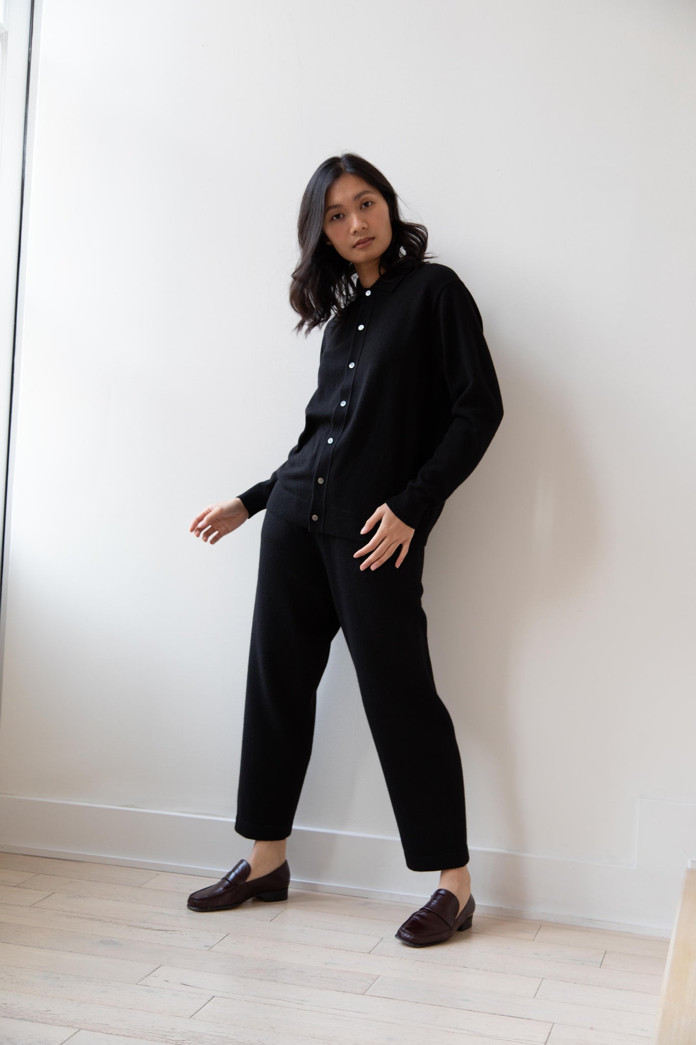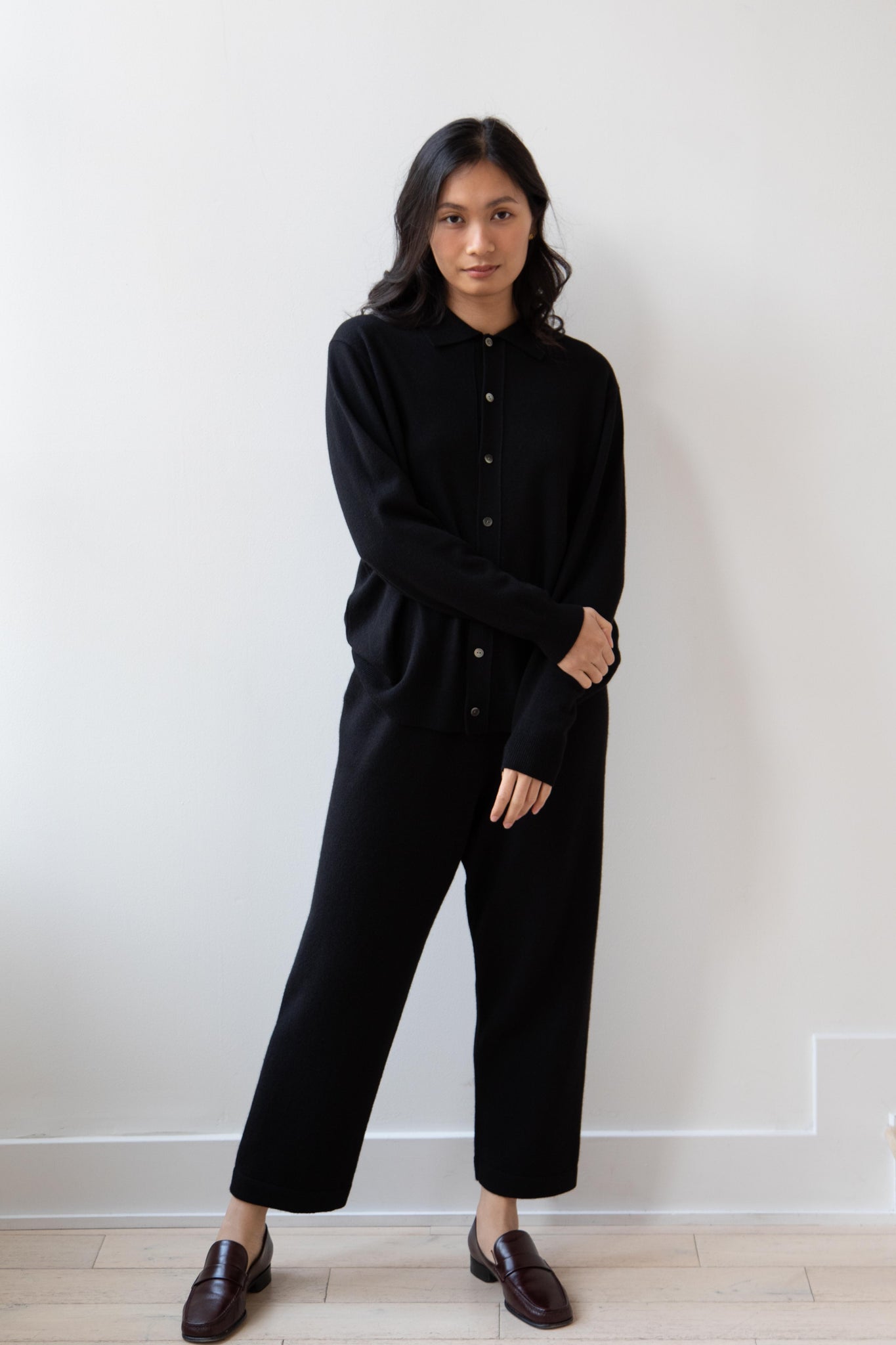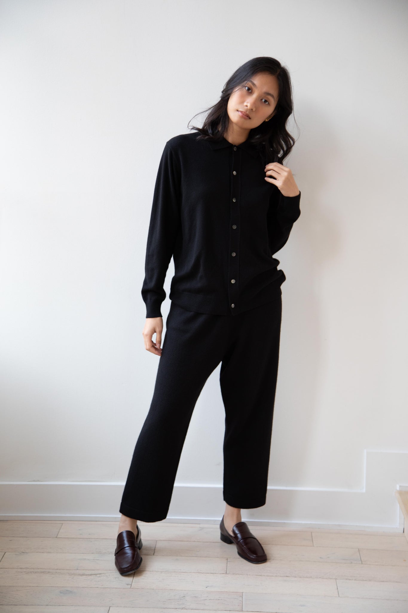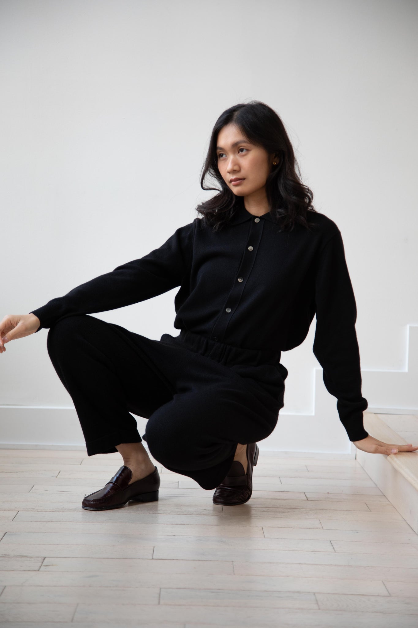 This polo sweater is simple and very special. Made from a soft cashmere, this style features a button up front so you can wear this as a shirt or a cardigan. This medium weight knit is also perfect for tucking into trousers or skirts, so it's a great layering piece.