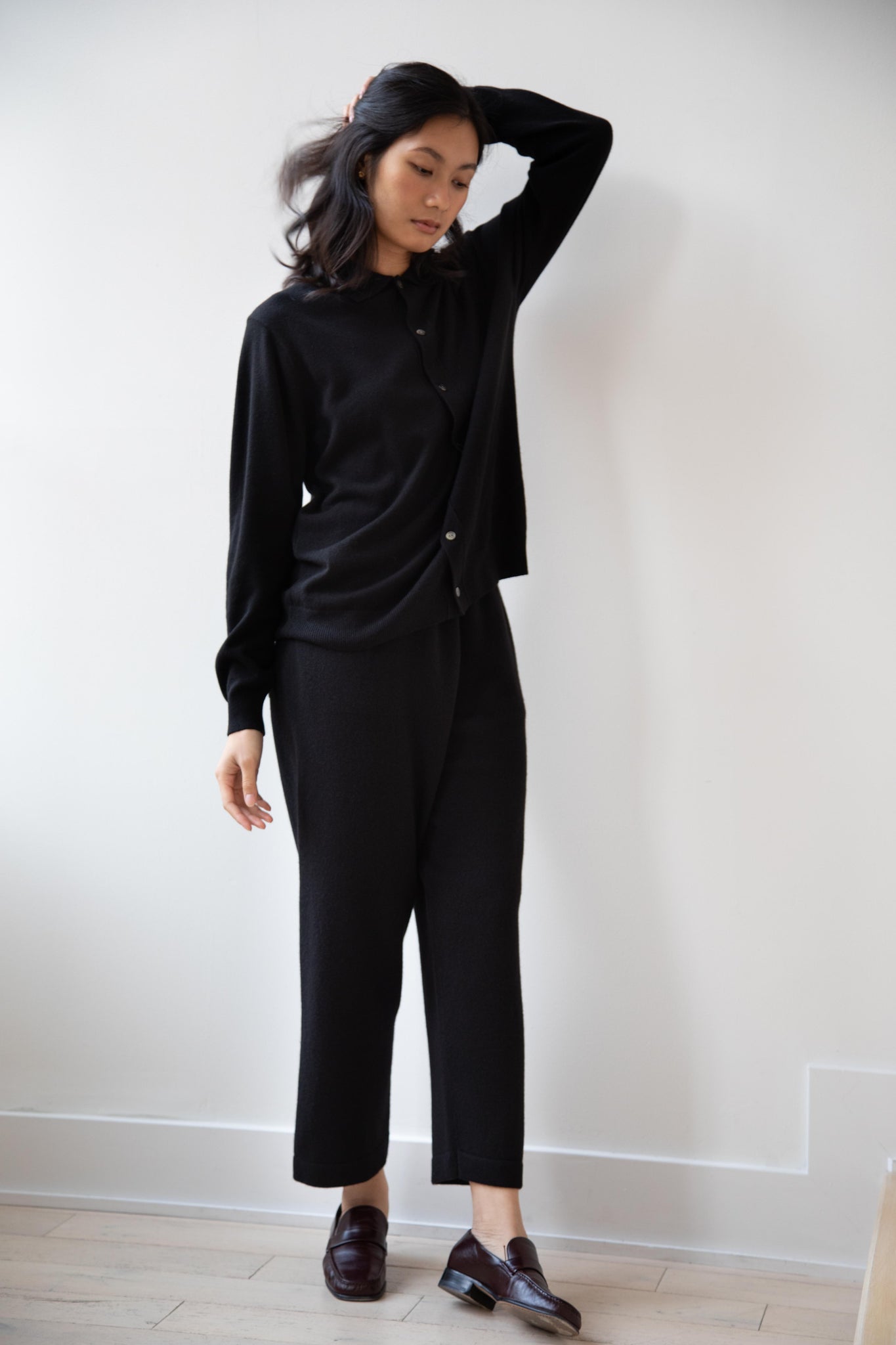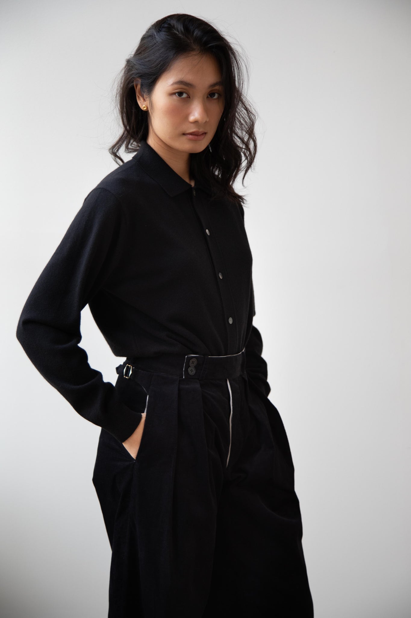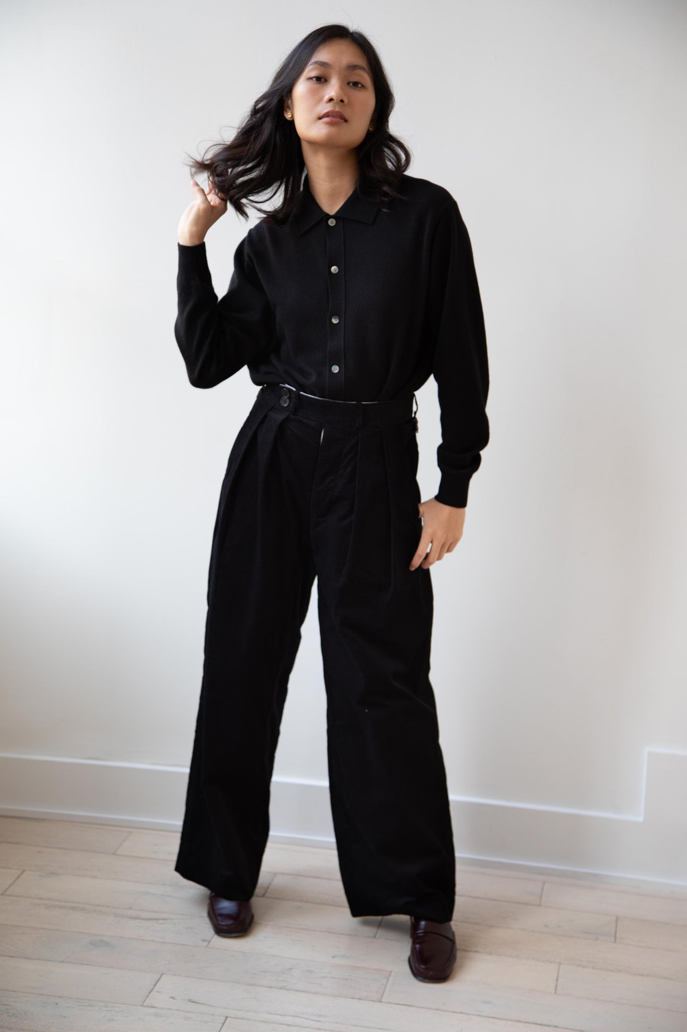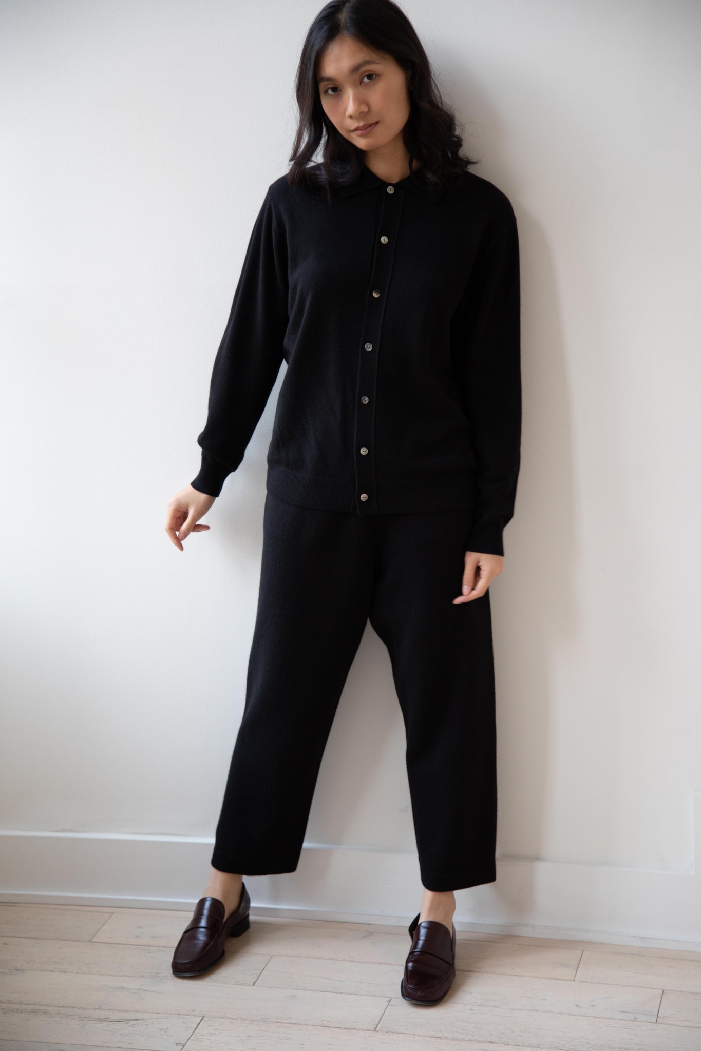 This polo sweater is simple and very special. Made from a soft cashmere, this style features a button up front so you can wear this as a shirt or a cardigan. This medium weight knit is also perfect for tucking into trousers or skirts, so it's a great layering piece.