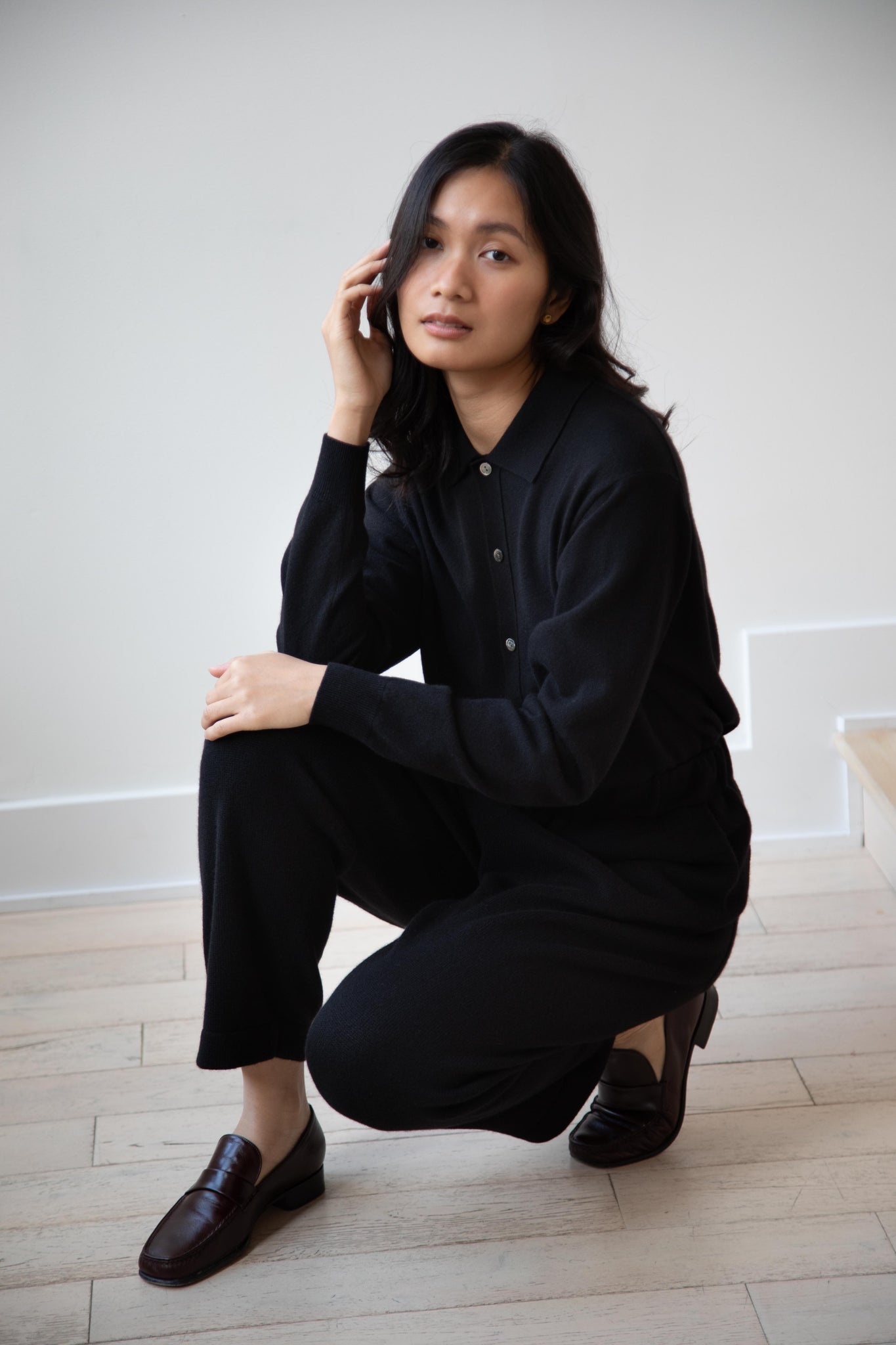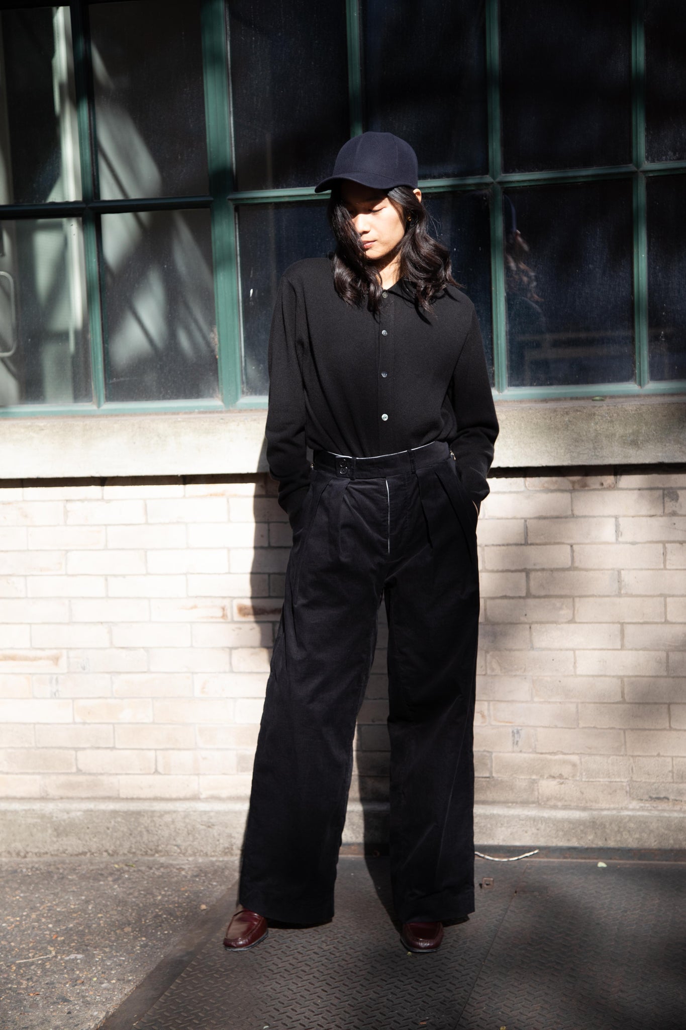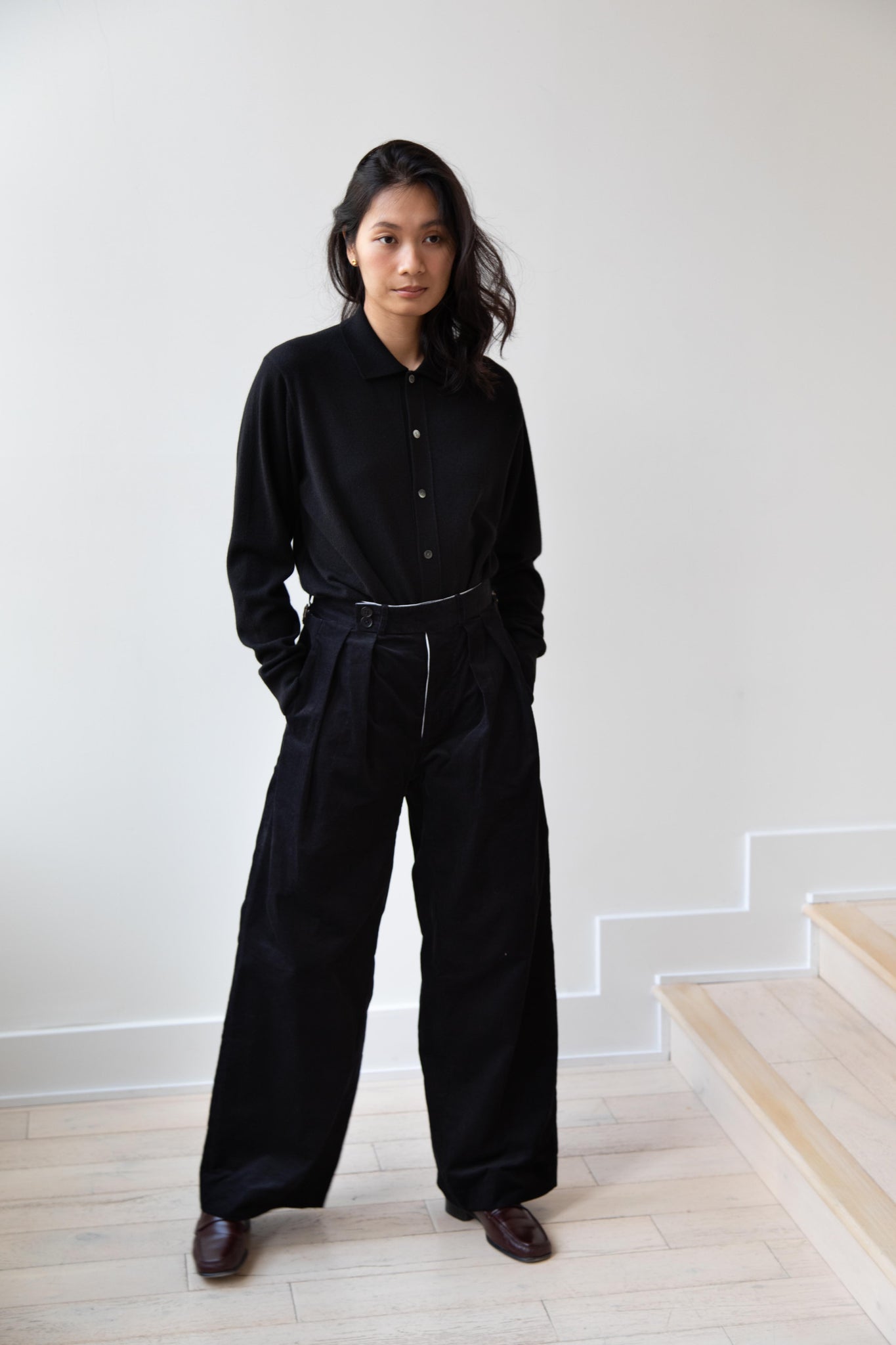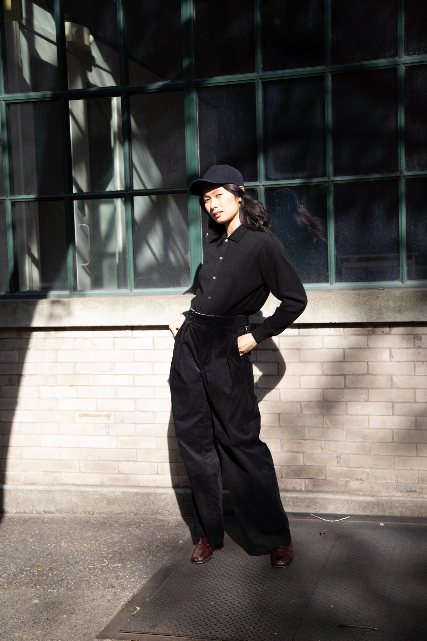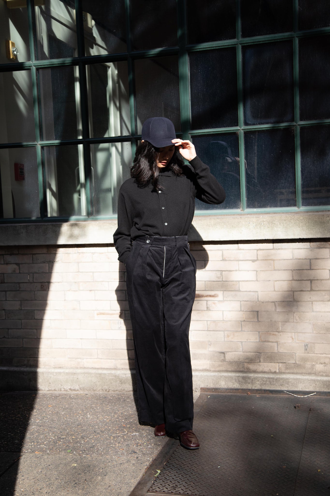 This polo sweater is simple and very special. Made from a soft cashmere, this style features a button up front so you can wear this as a shirt or a cardigan. This medium weight knit is also perfect for tucking into trousers or skirts, so it's a great layering piece.