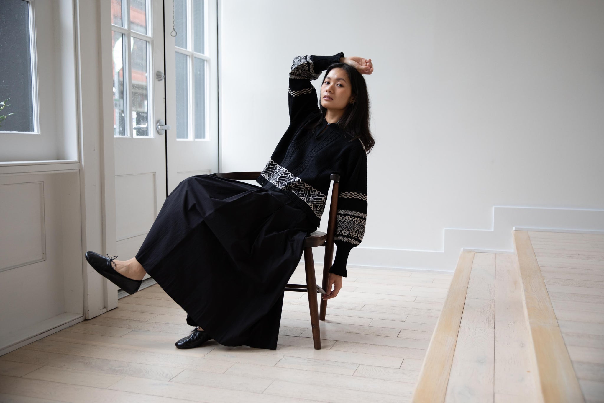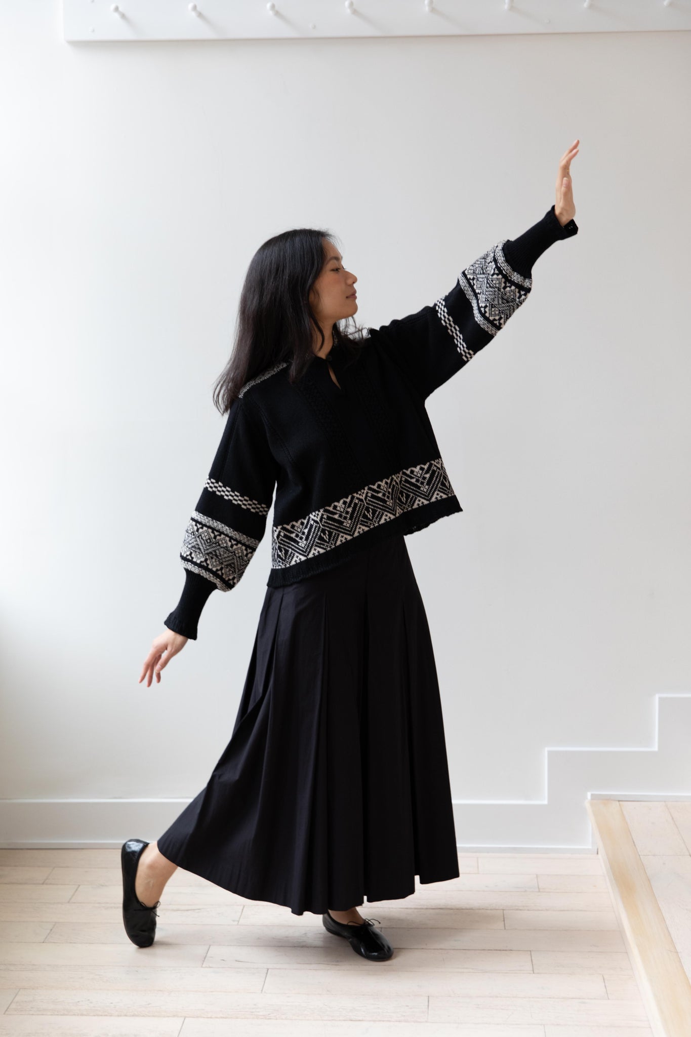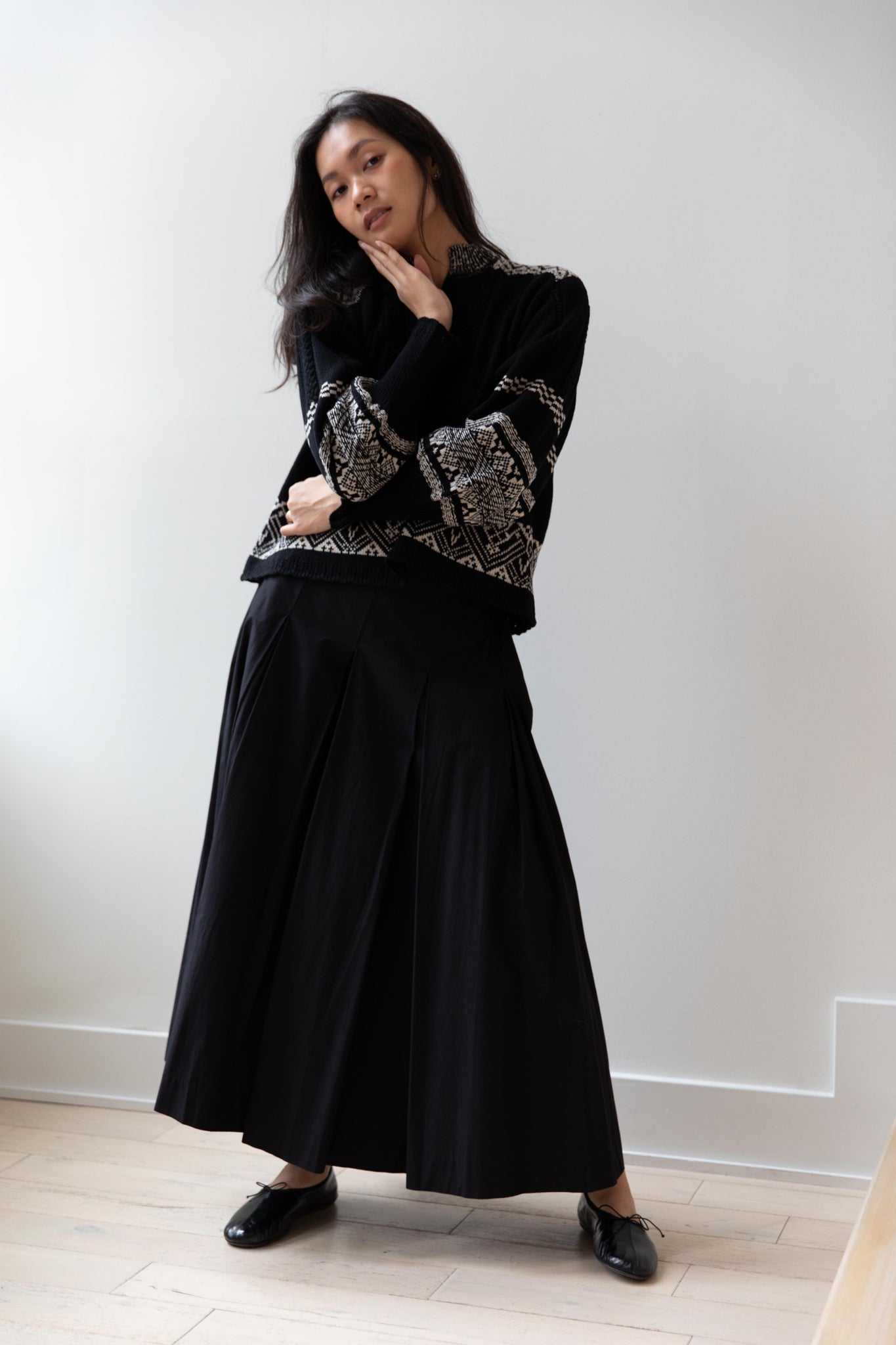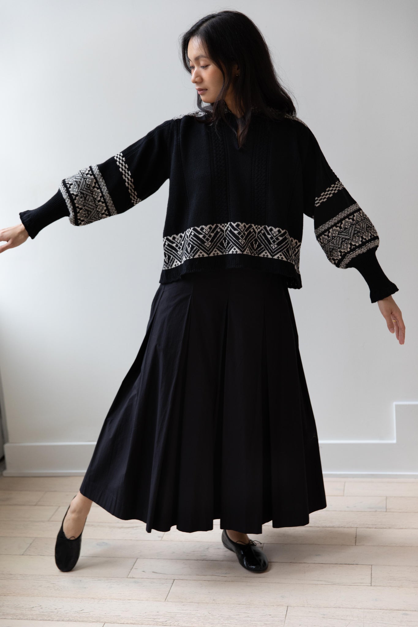 Aseedonclöud | Seiyakou Jacquard Sweater Blouse in Black
