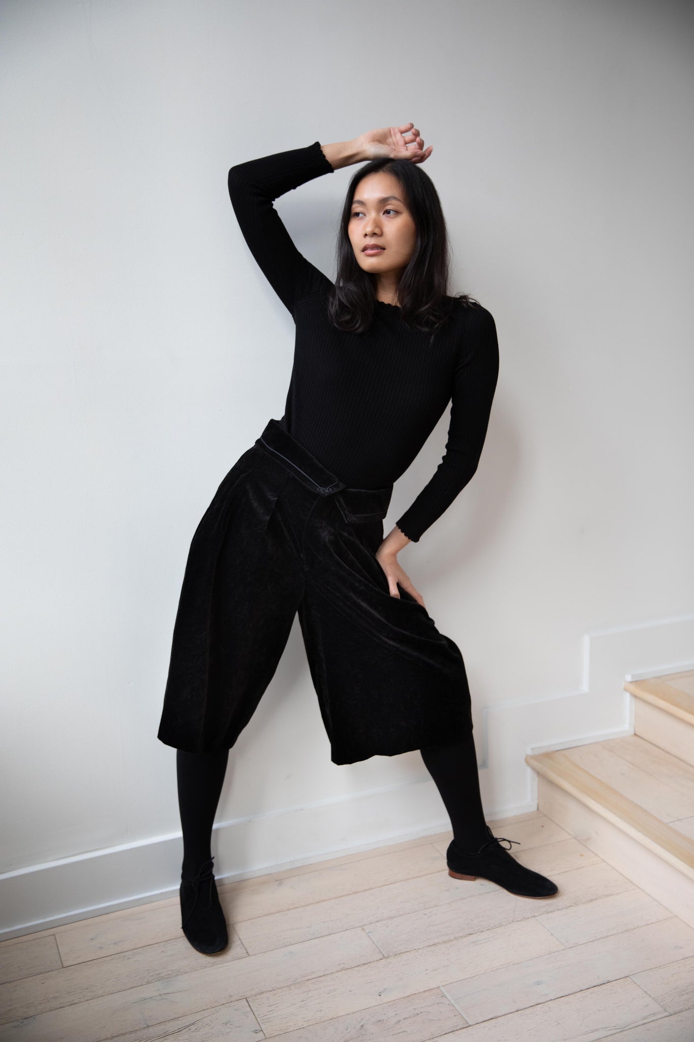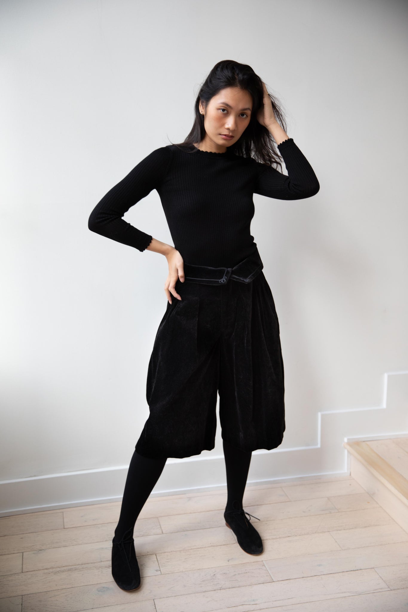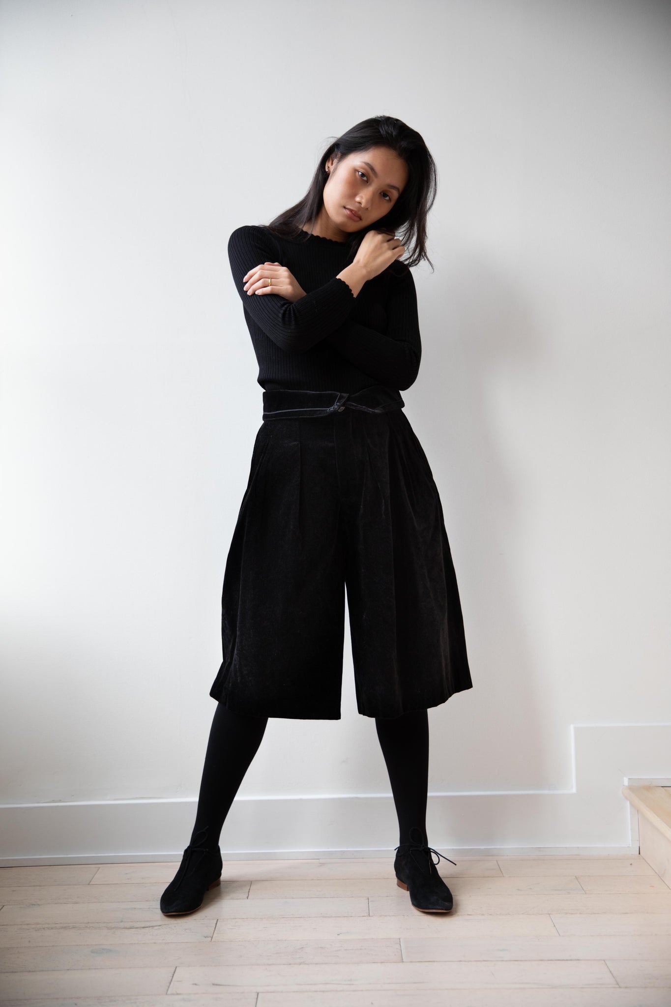 Aseedonclöud | Seiyakou Uniform Short Trousers in Black Velvet