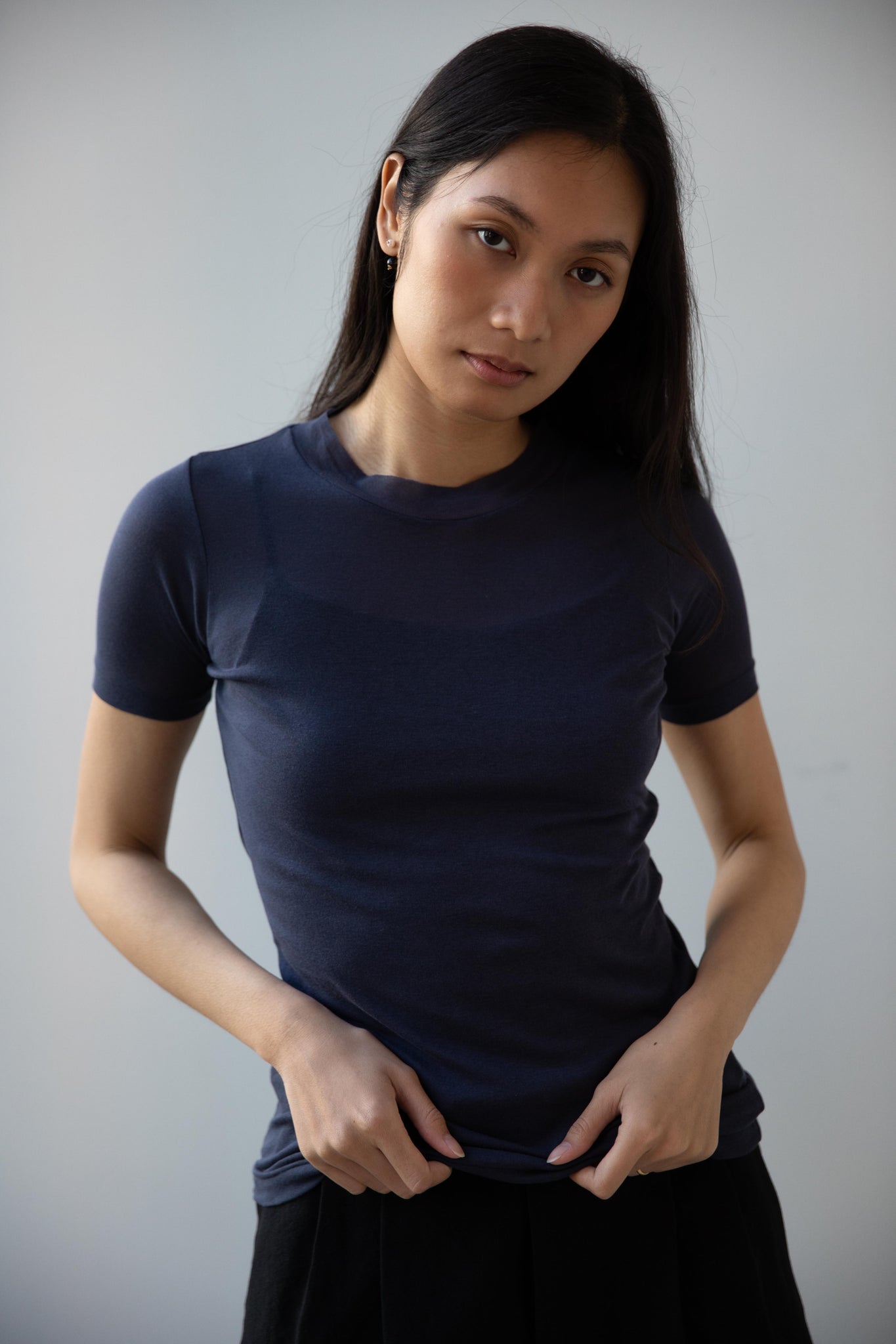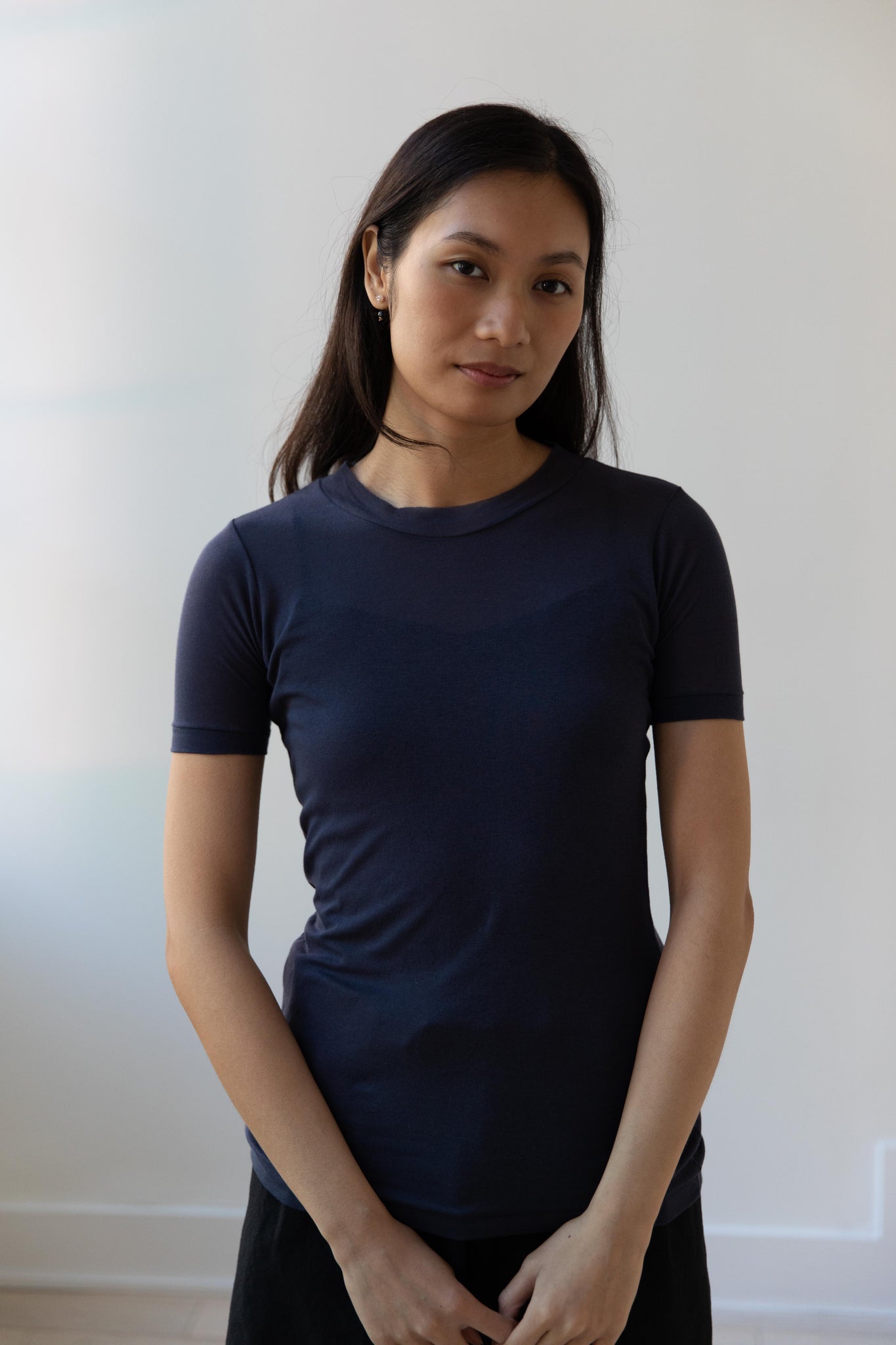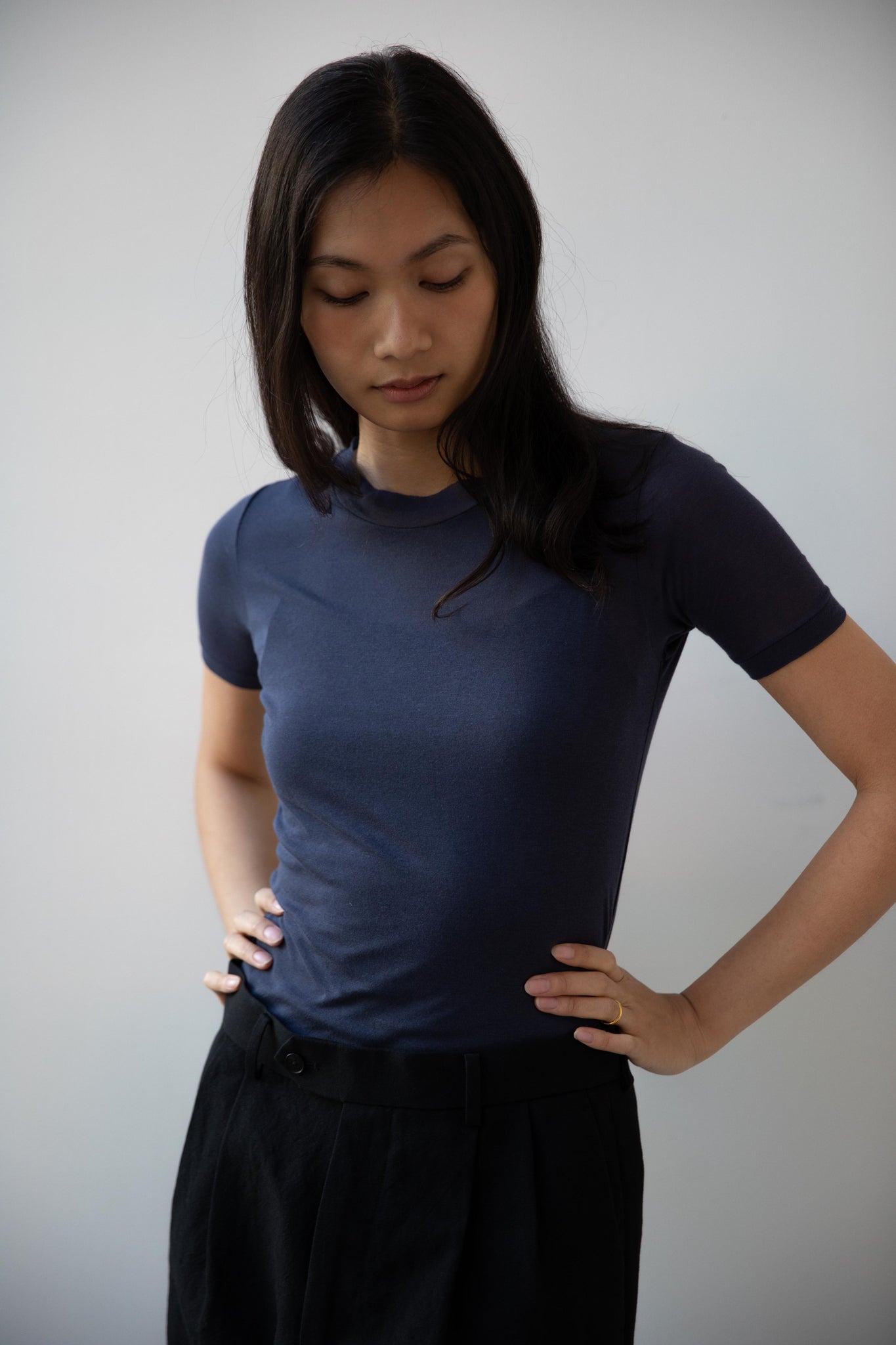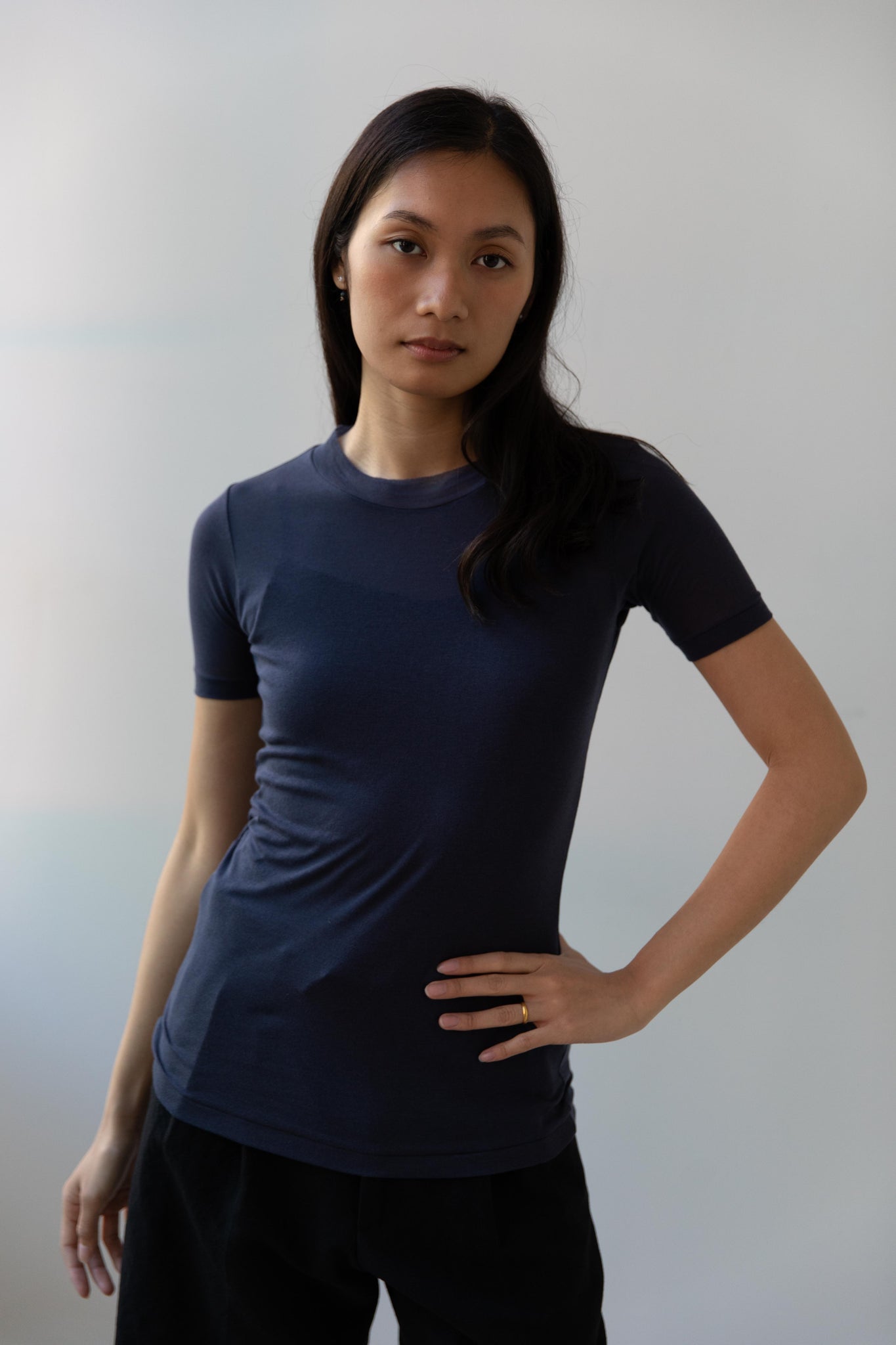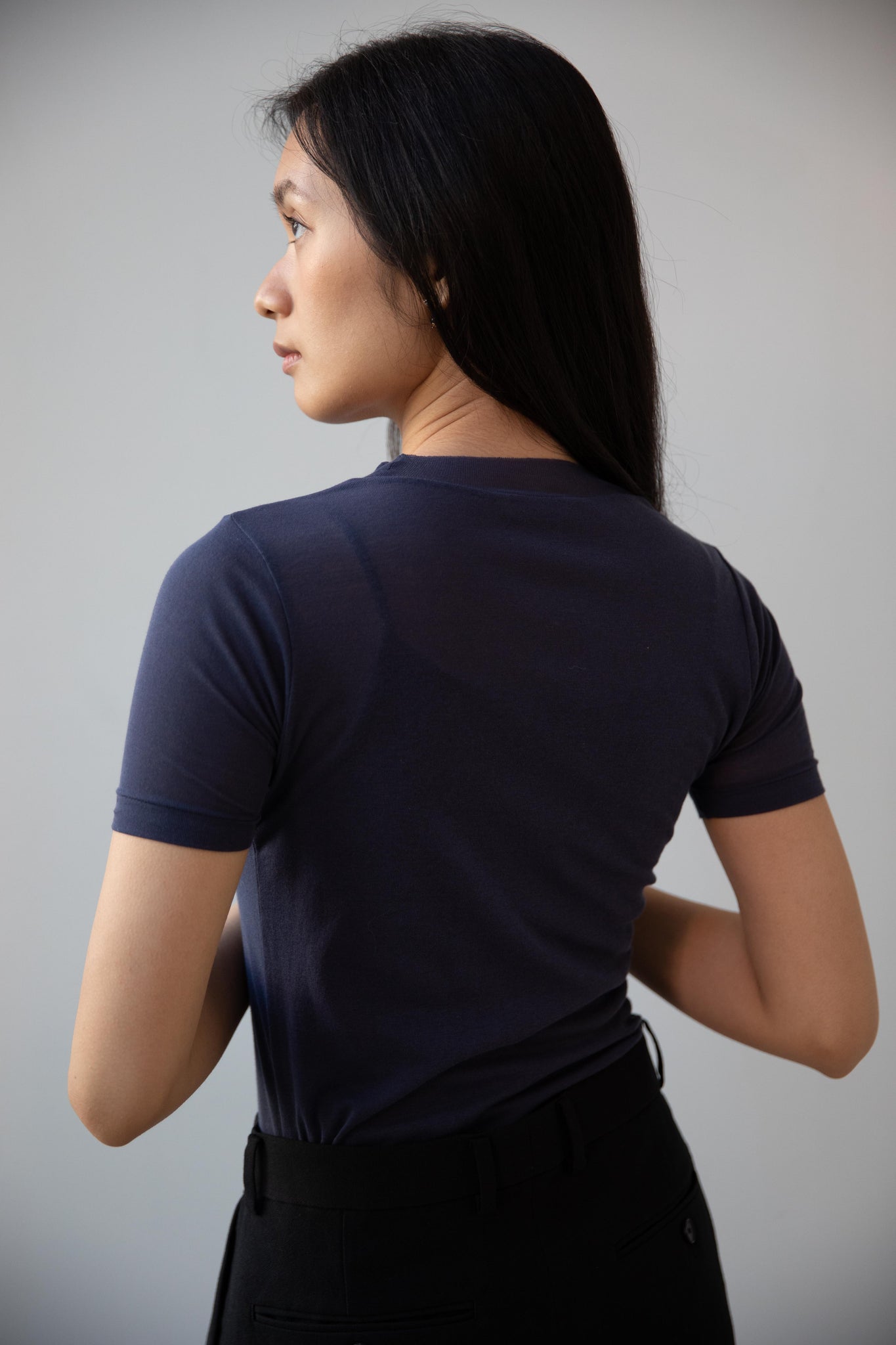 Auralee | Super High Gauge Sheer Rib Tee in Navy