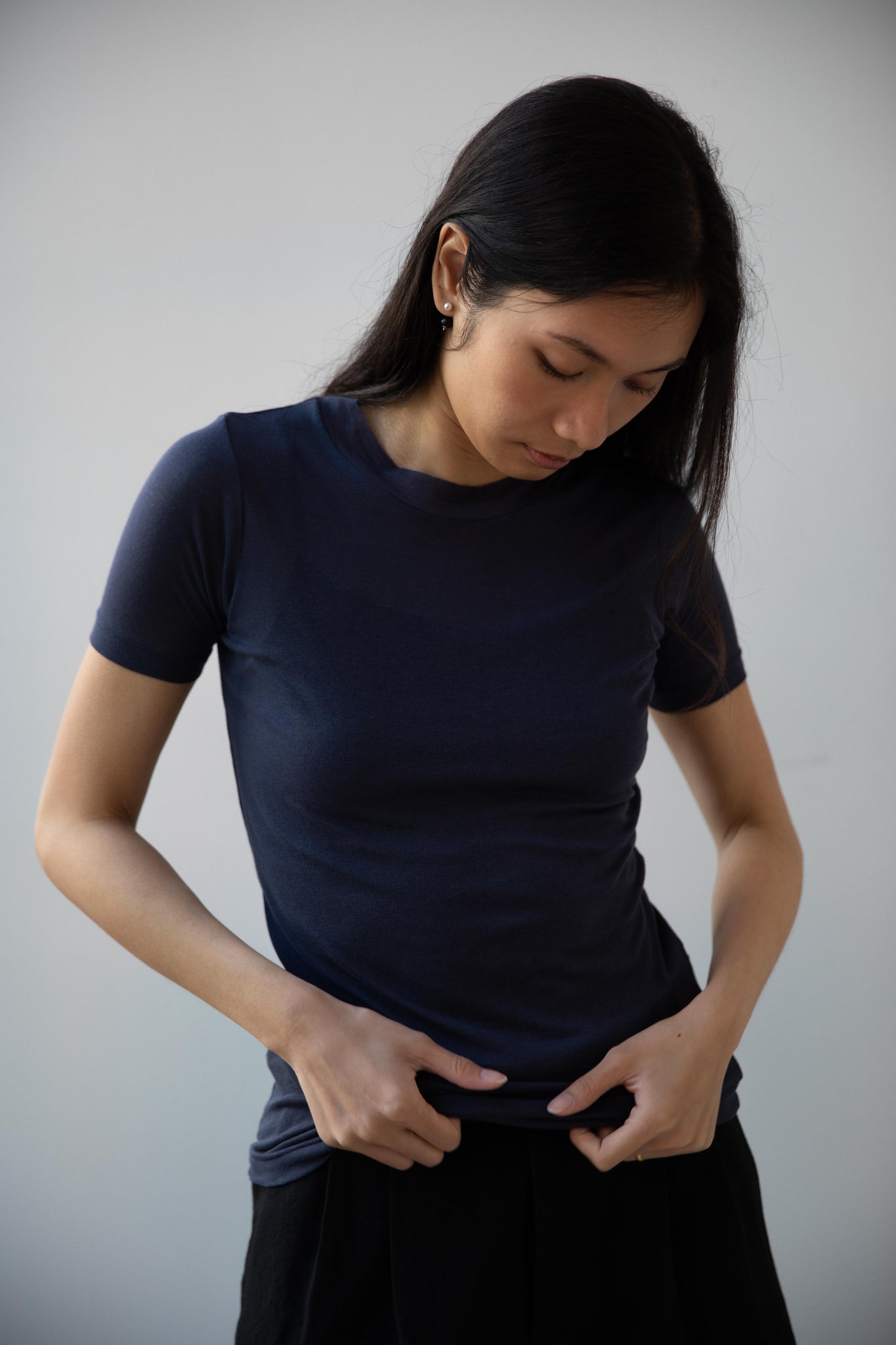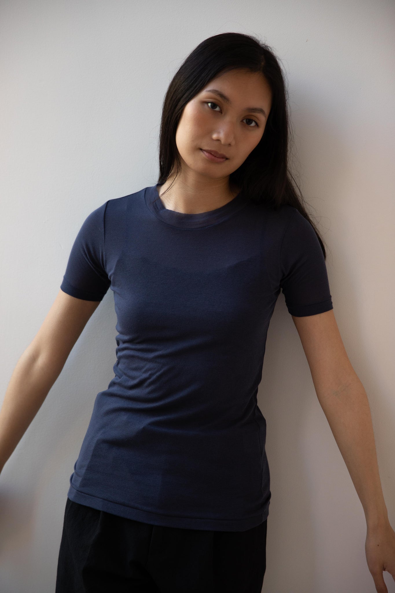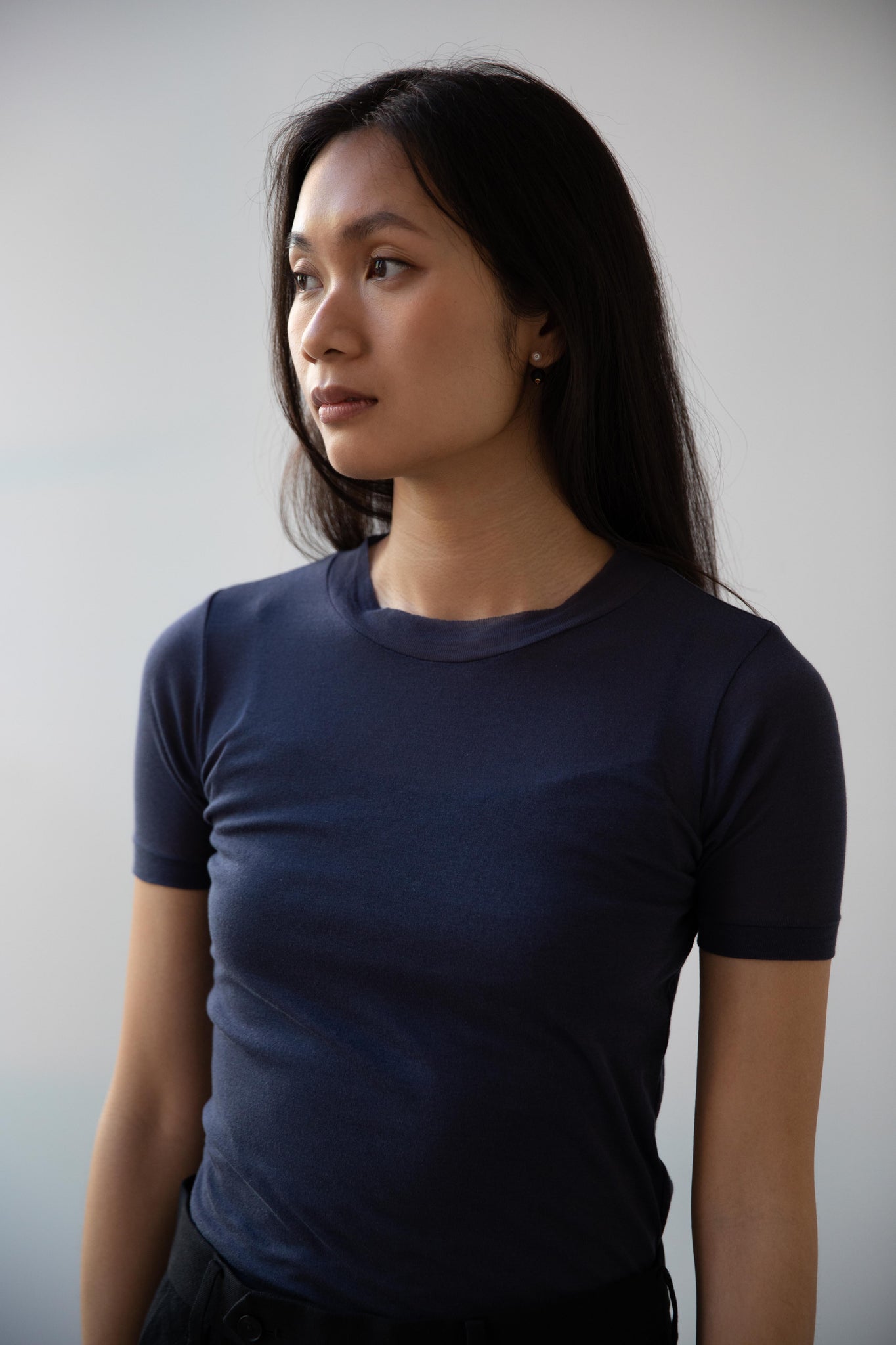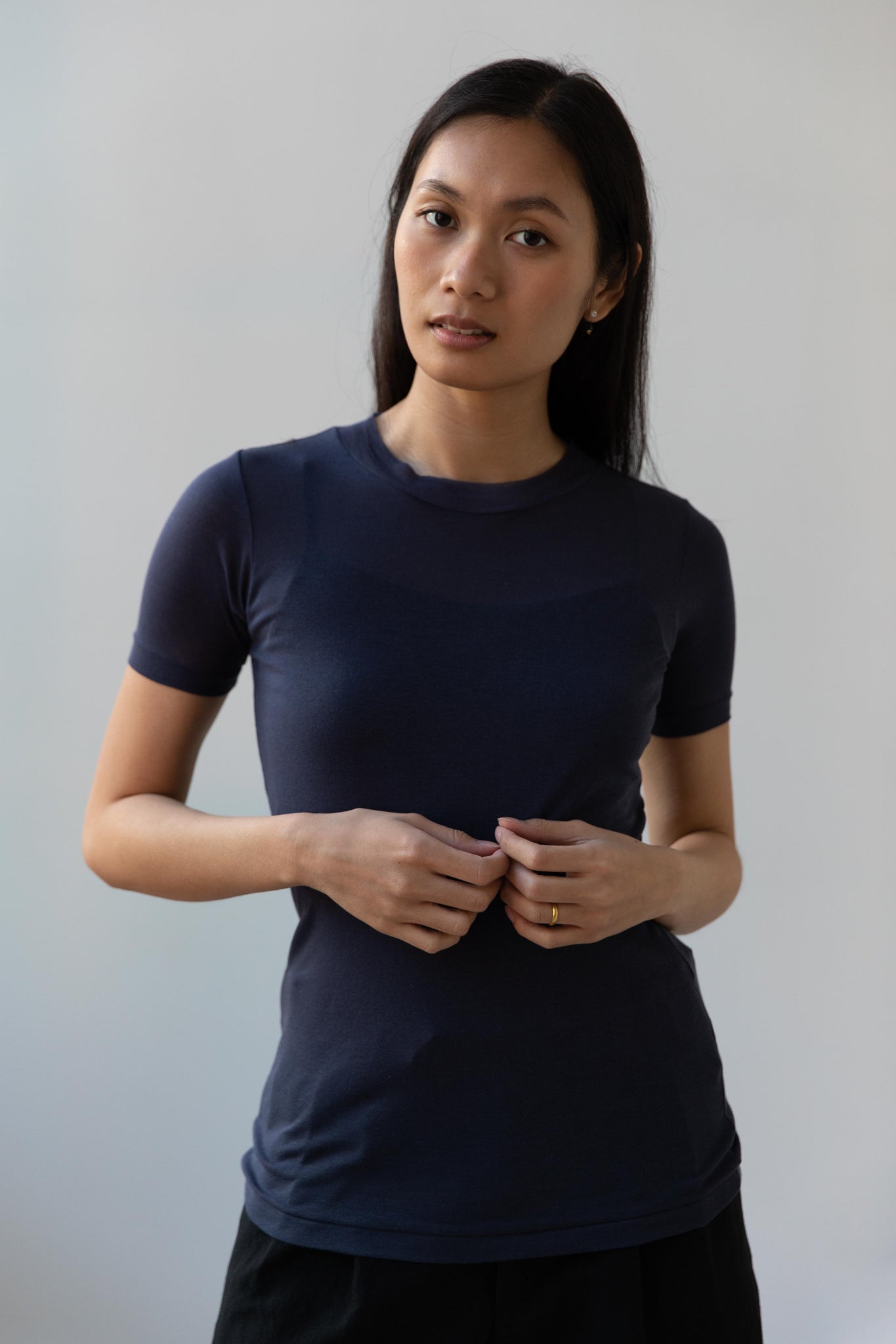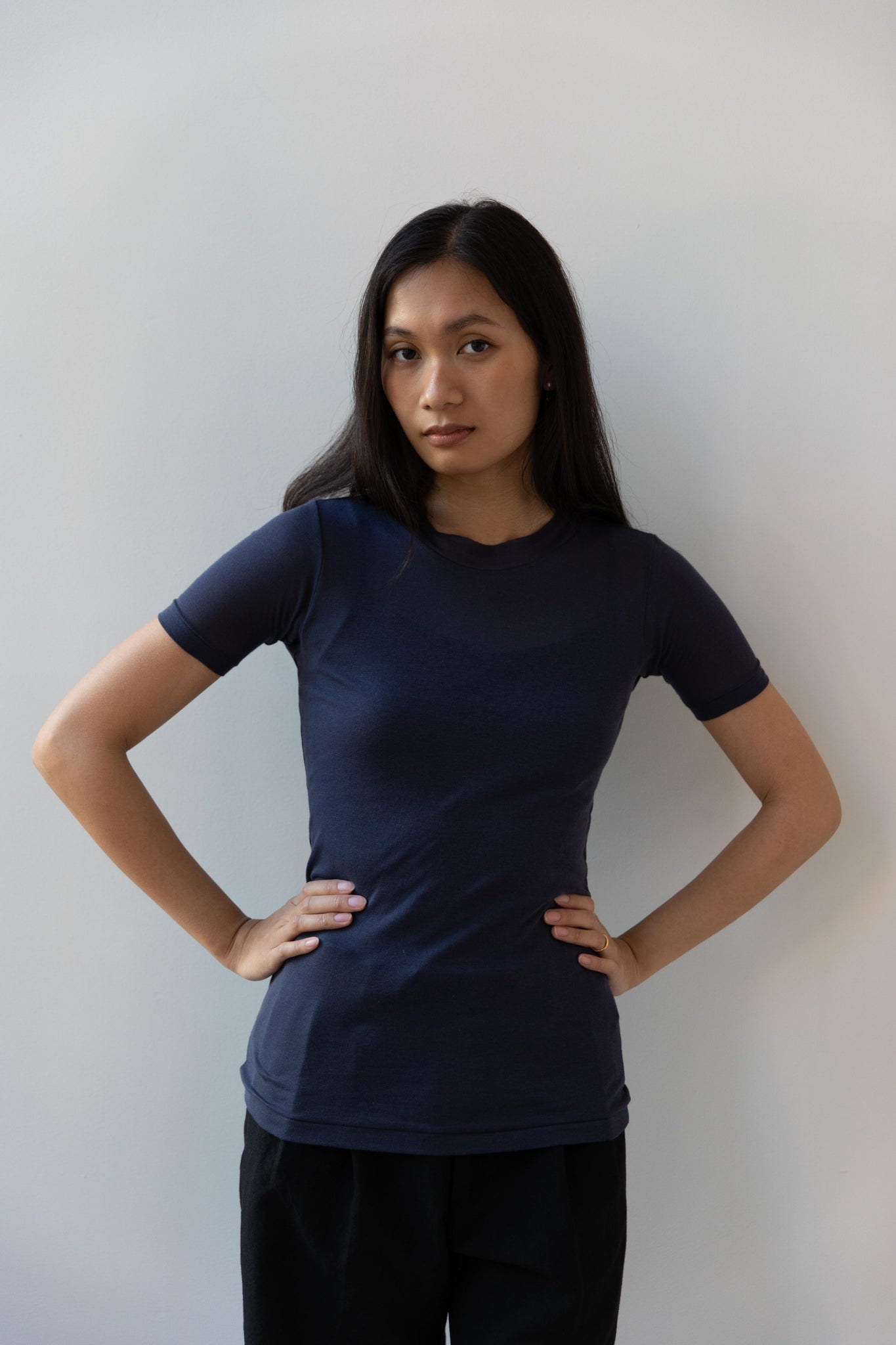 Auralee | Super High Gauge Sheer Rib Tee in Navy