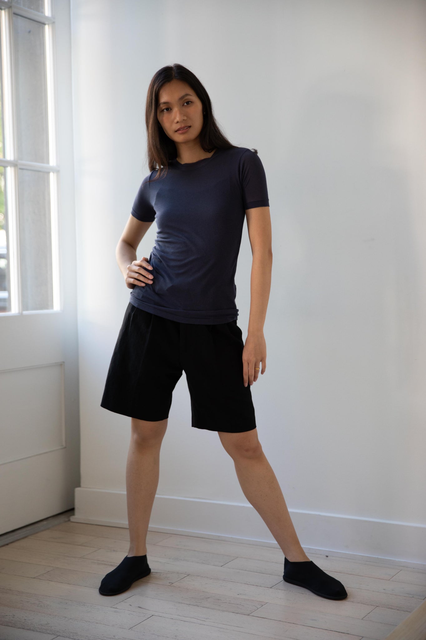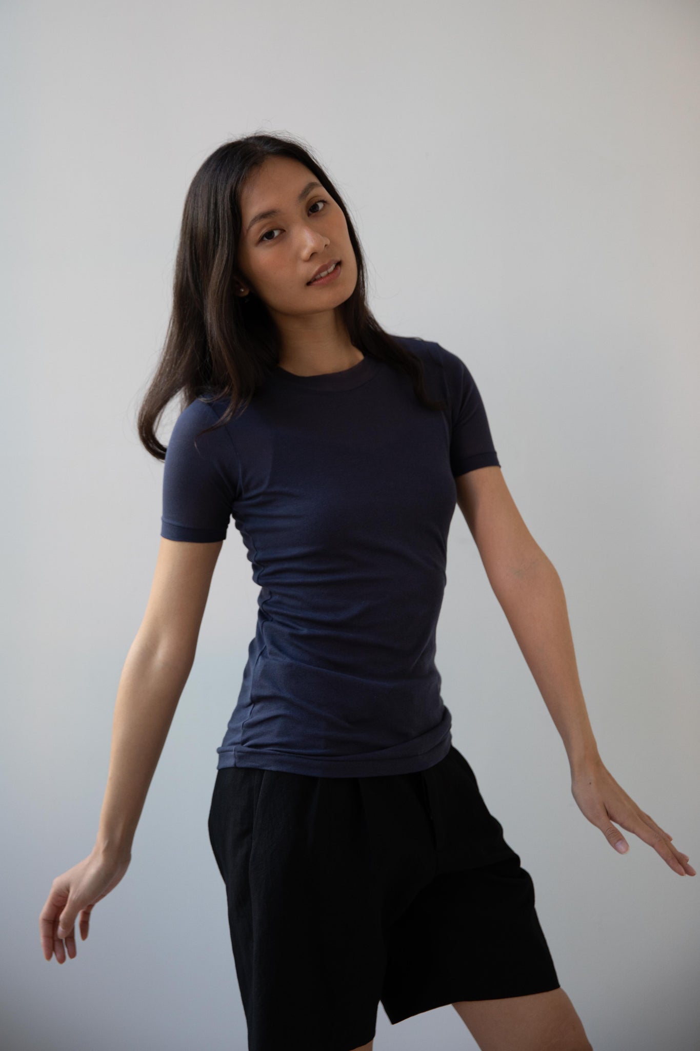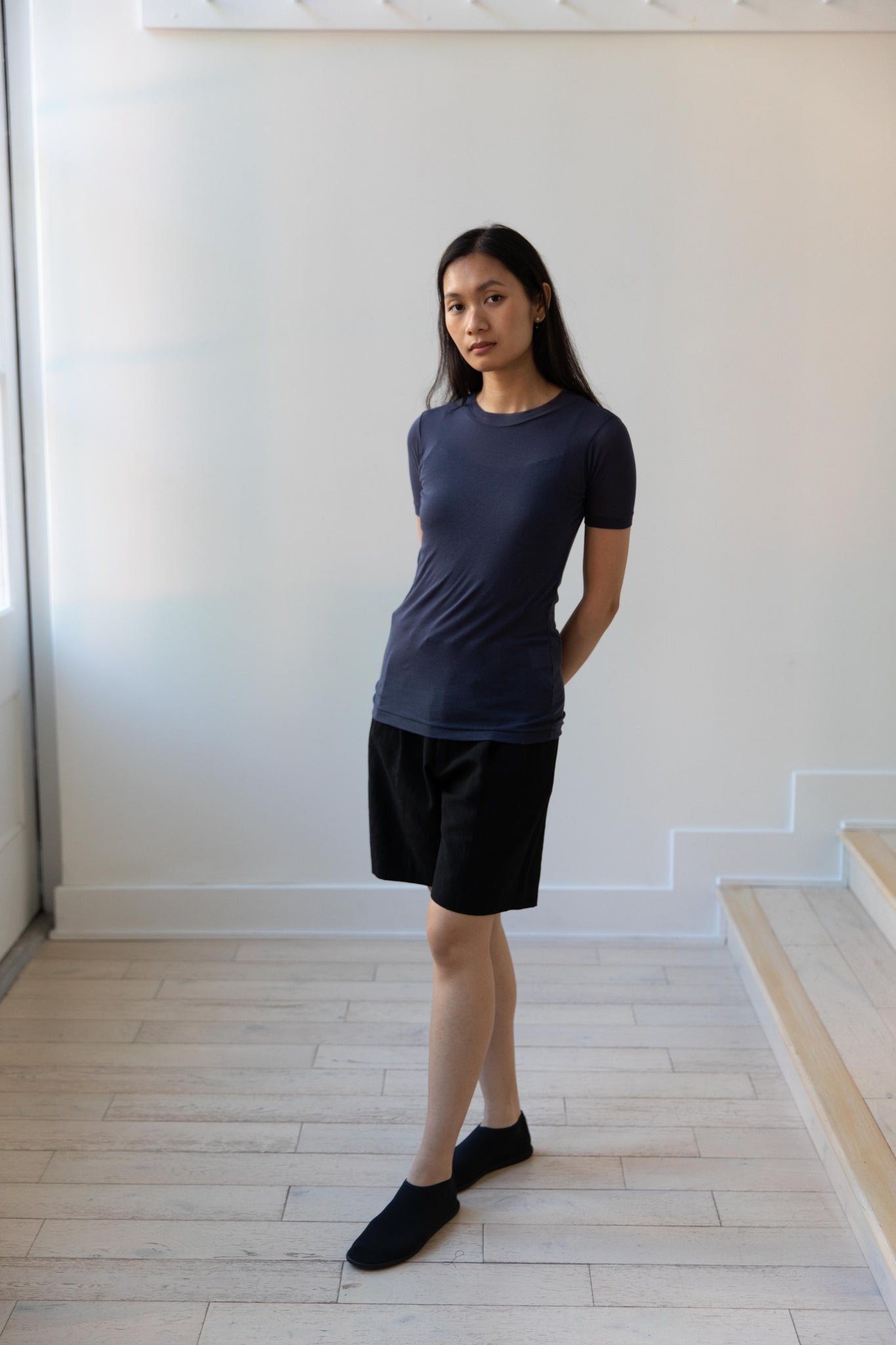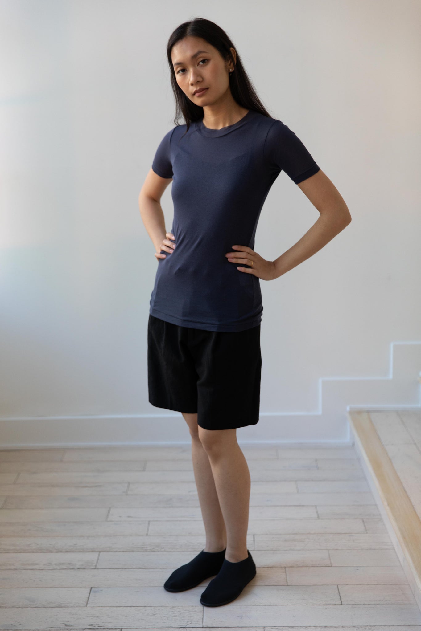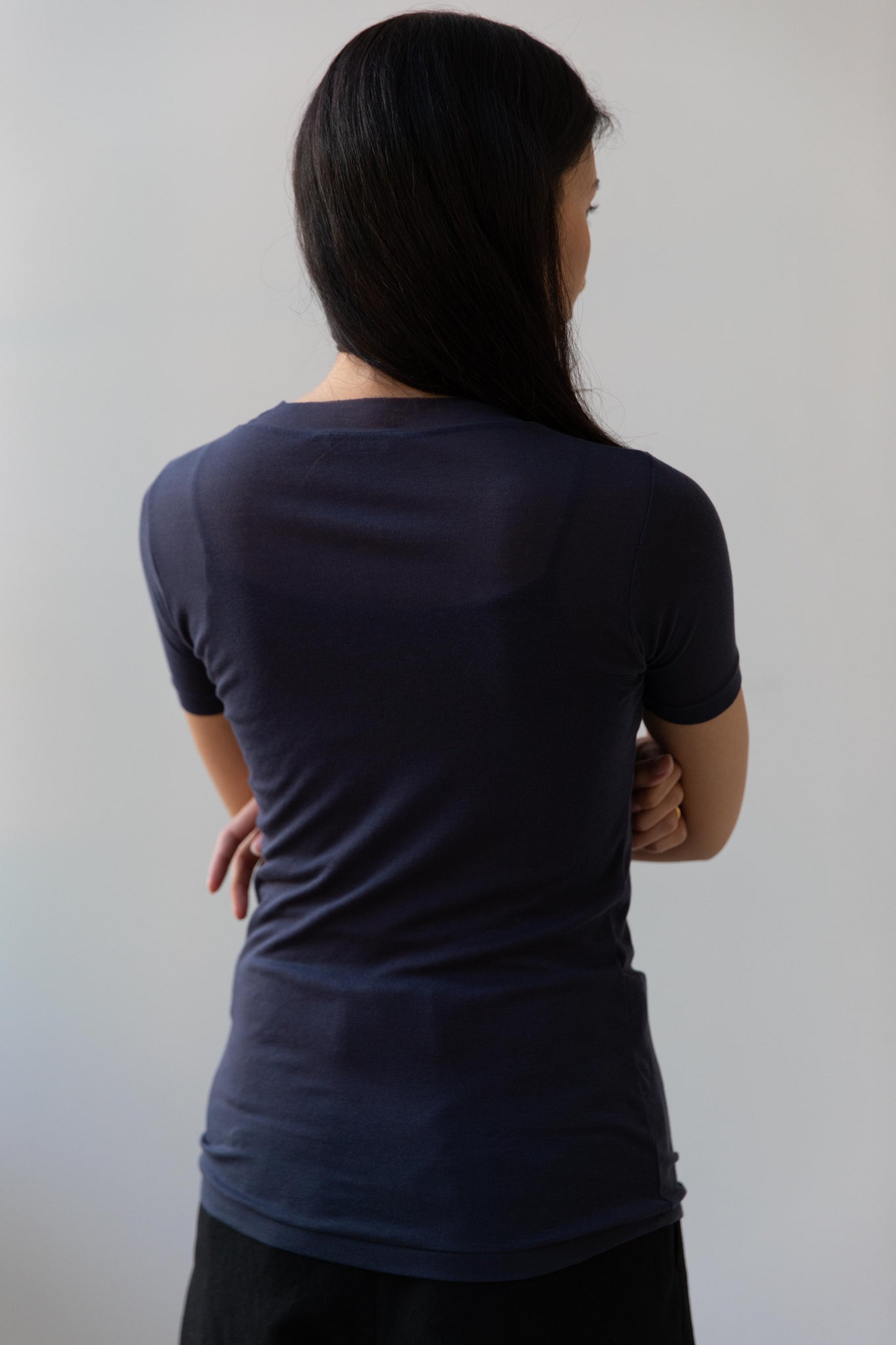 Auralee | Super High Gauge Sheer Rib Tee in Navy