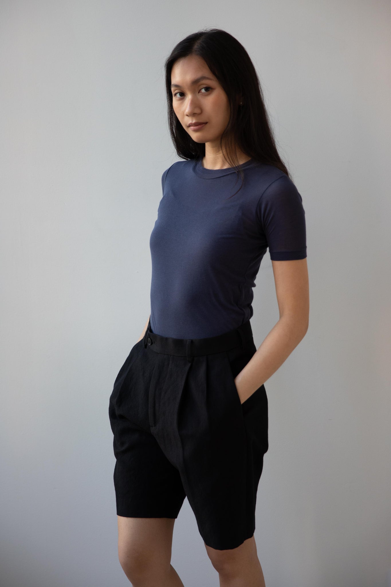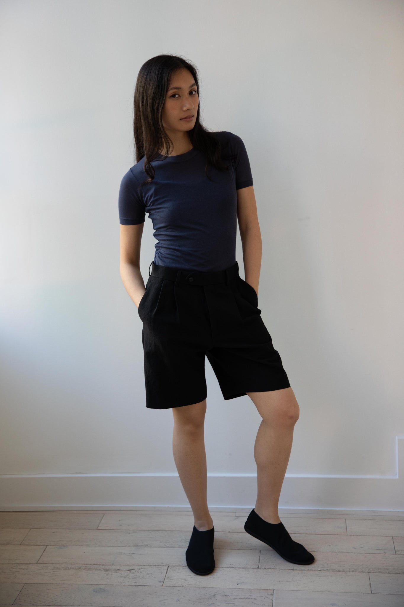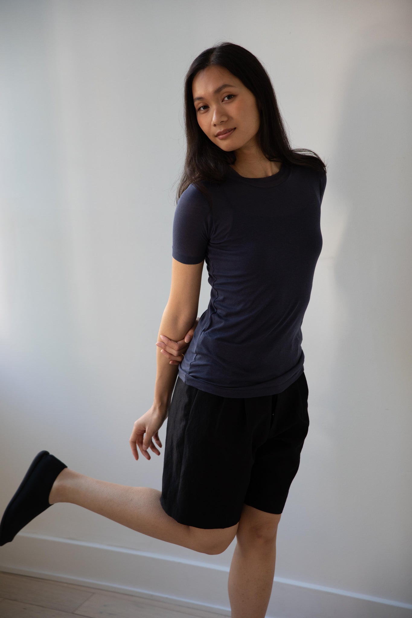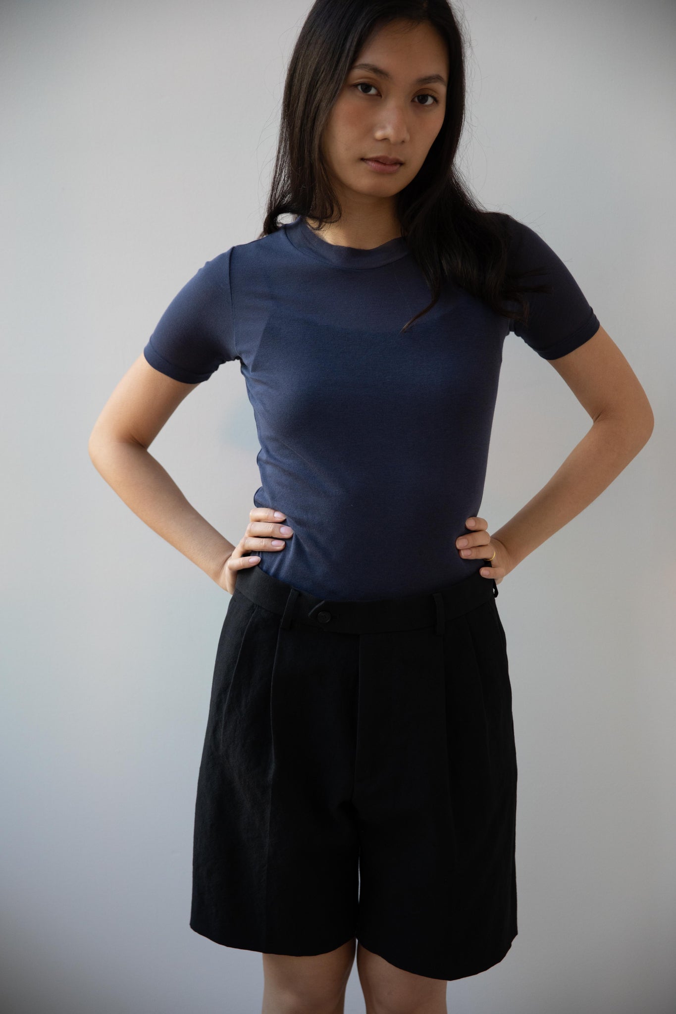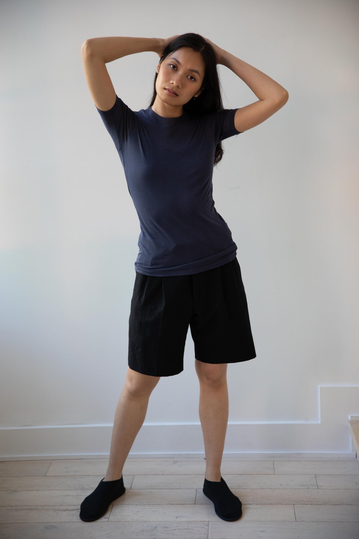 Auralee | Super High Gauge Sheer Rib Tee in Navy