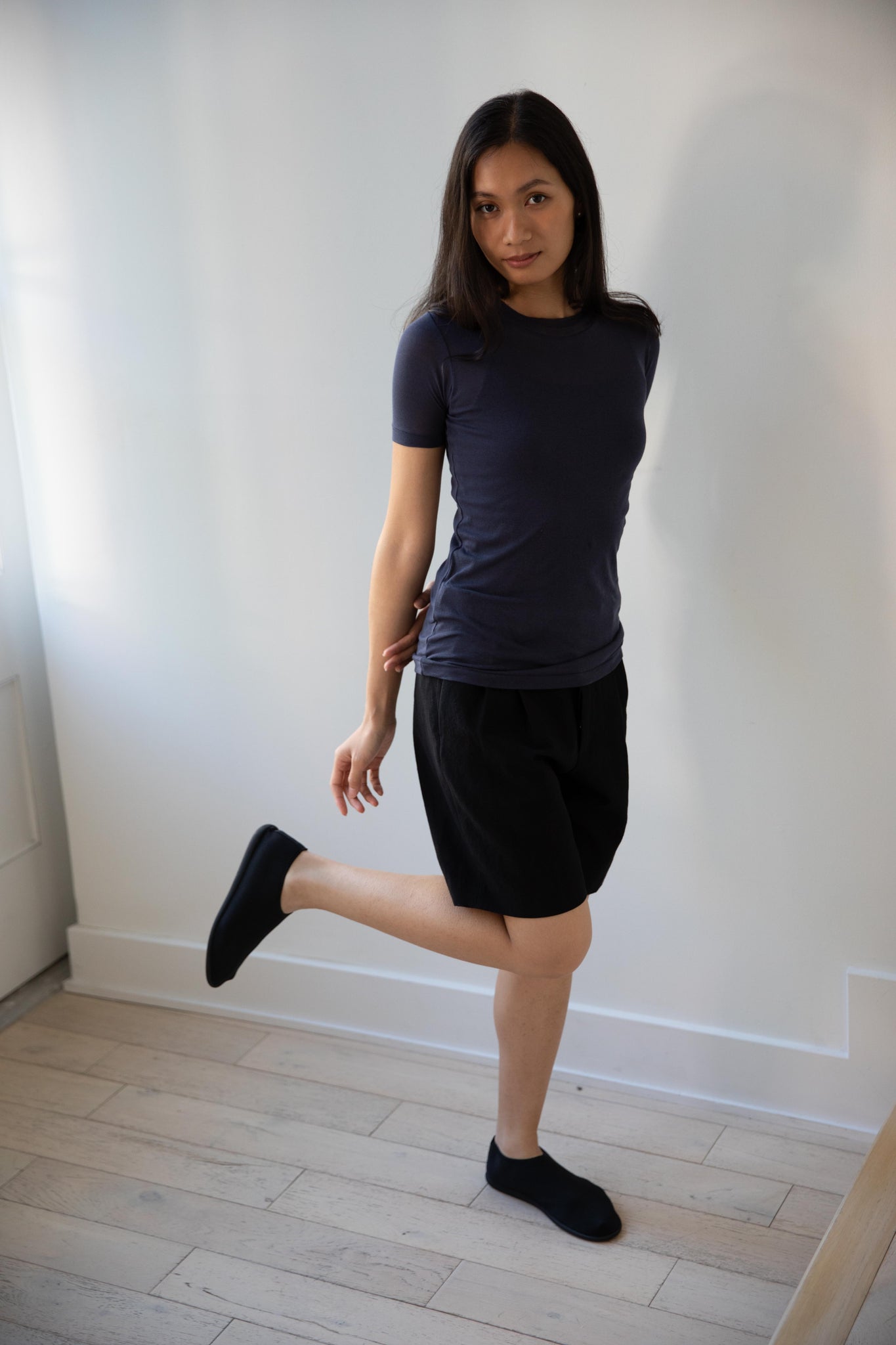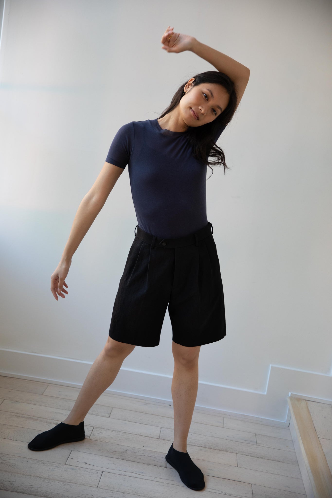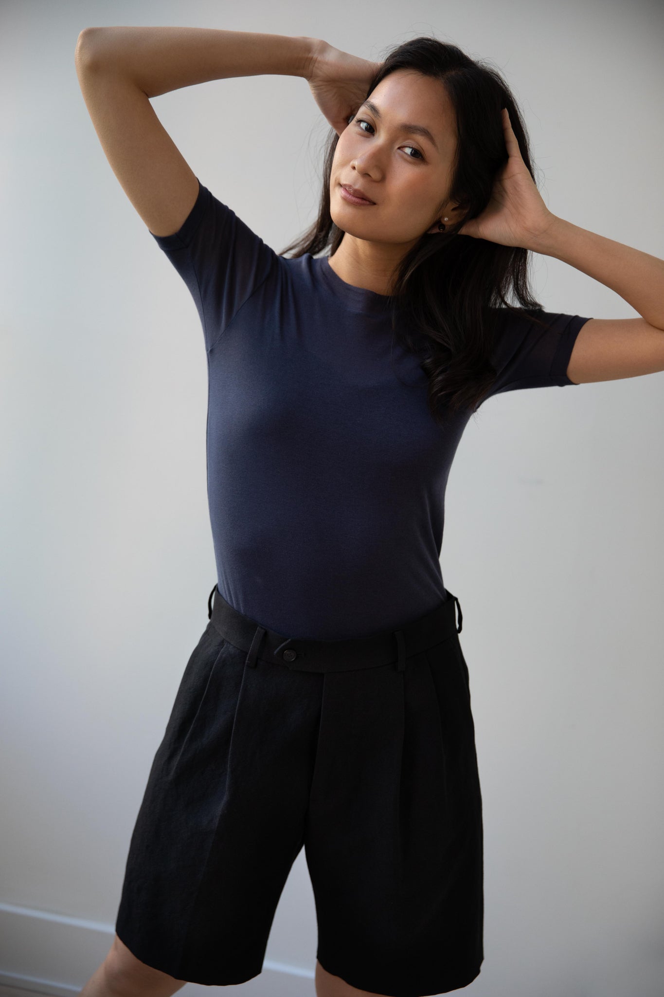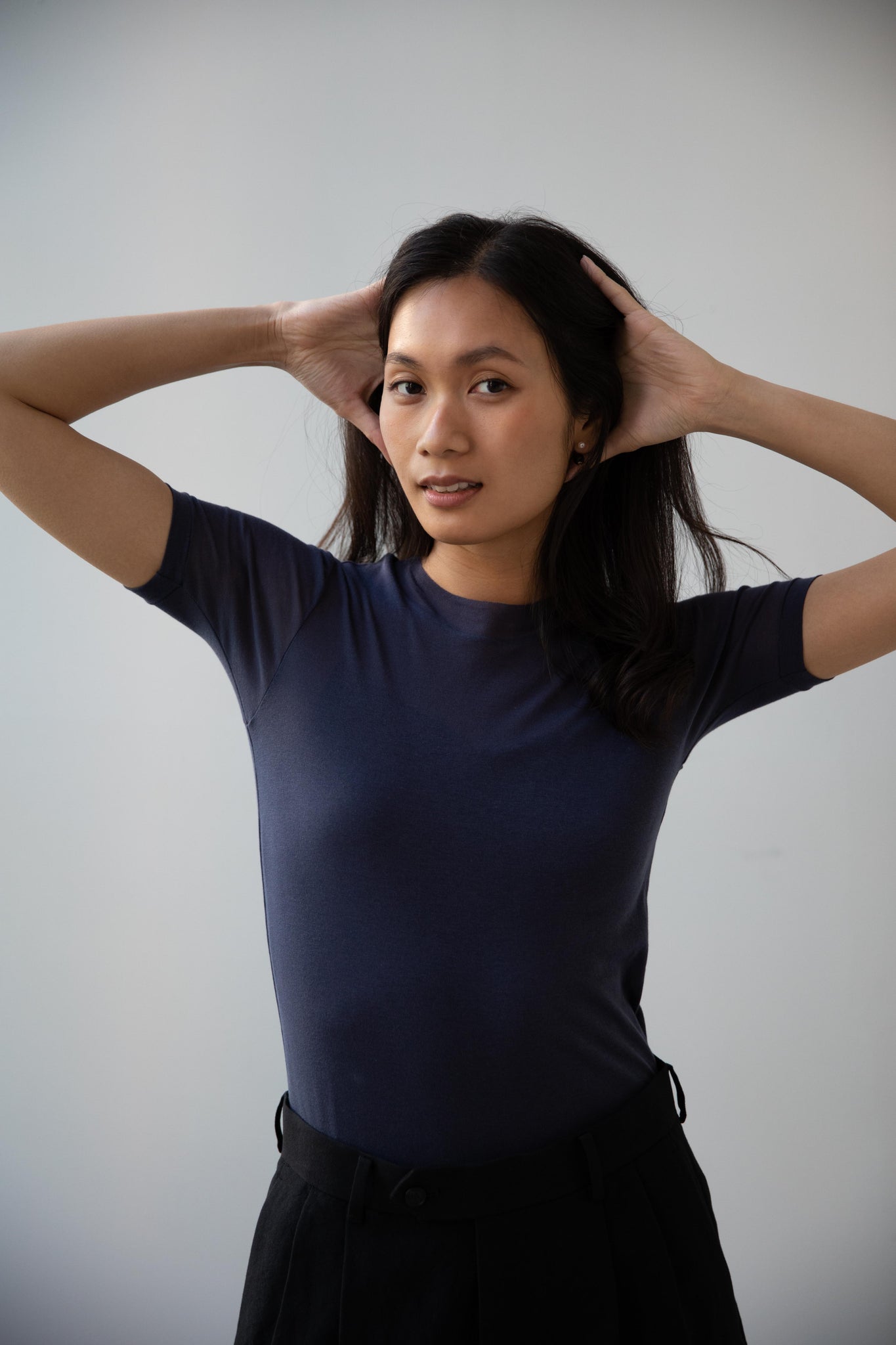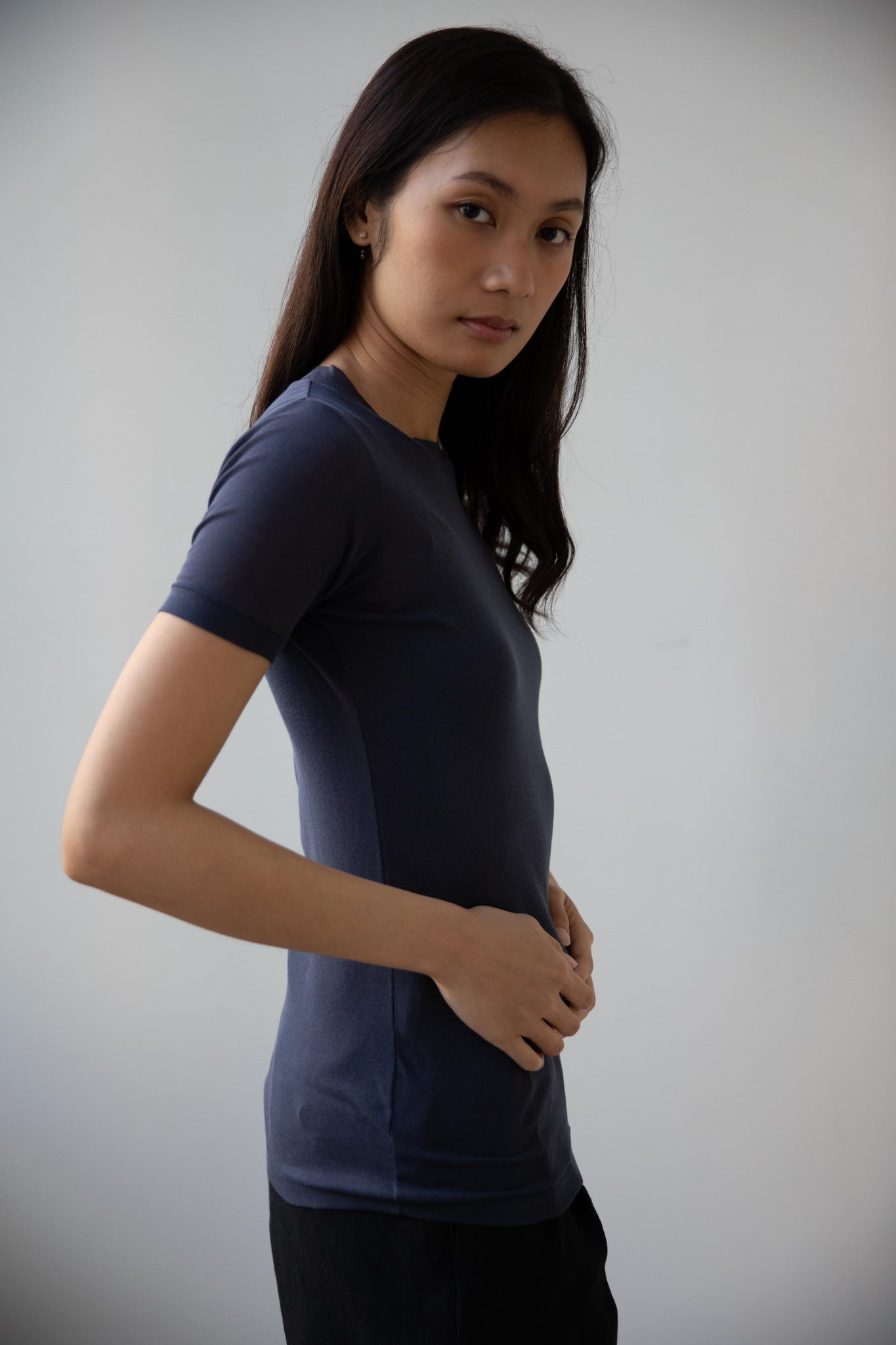 Auralee | Super High Gauge Sheer Rib Tee in Navy