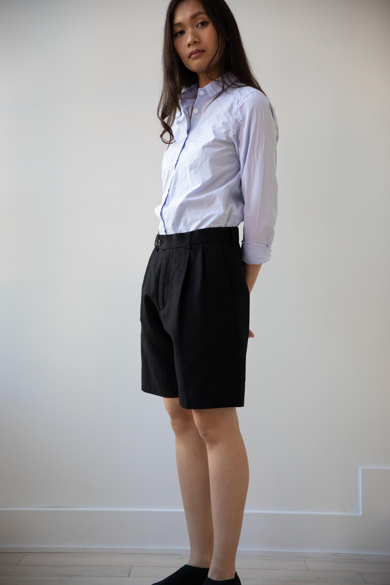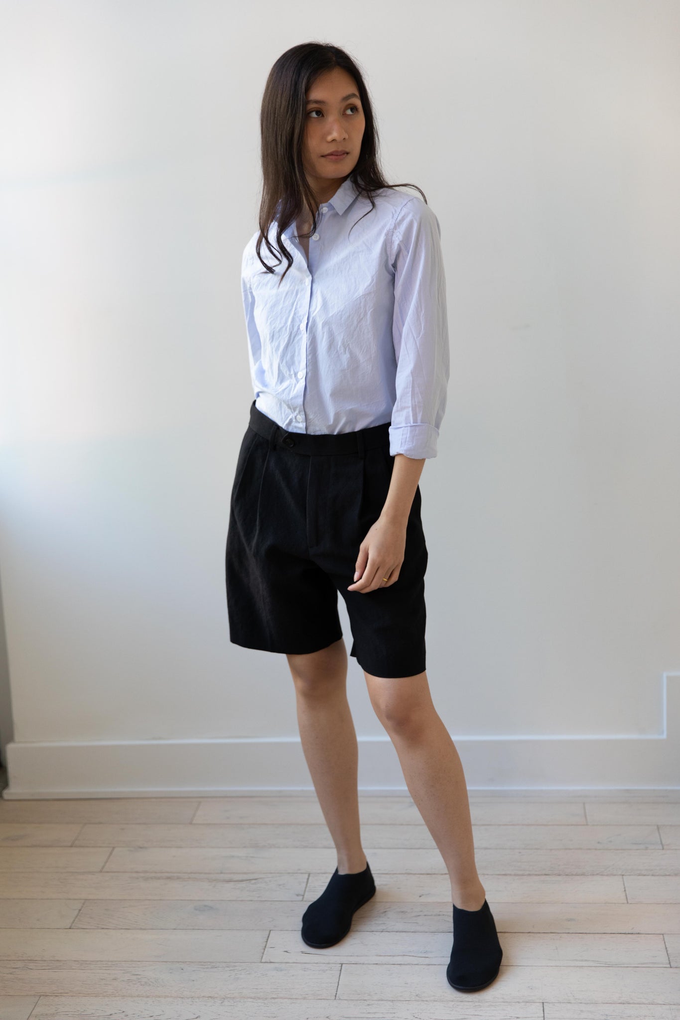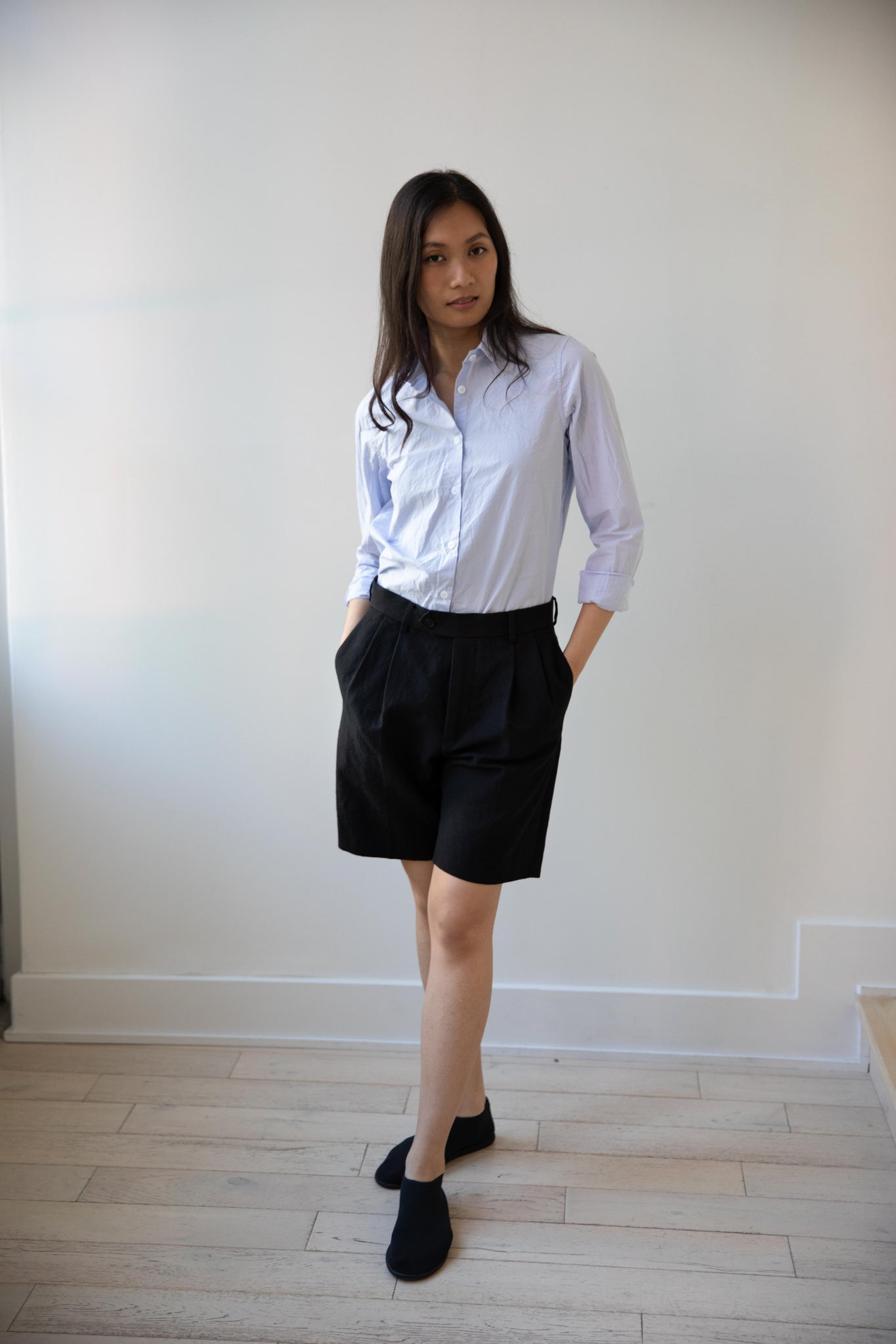 Auralee | Wool Cotton Linen OX Shorts in Black