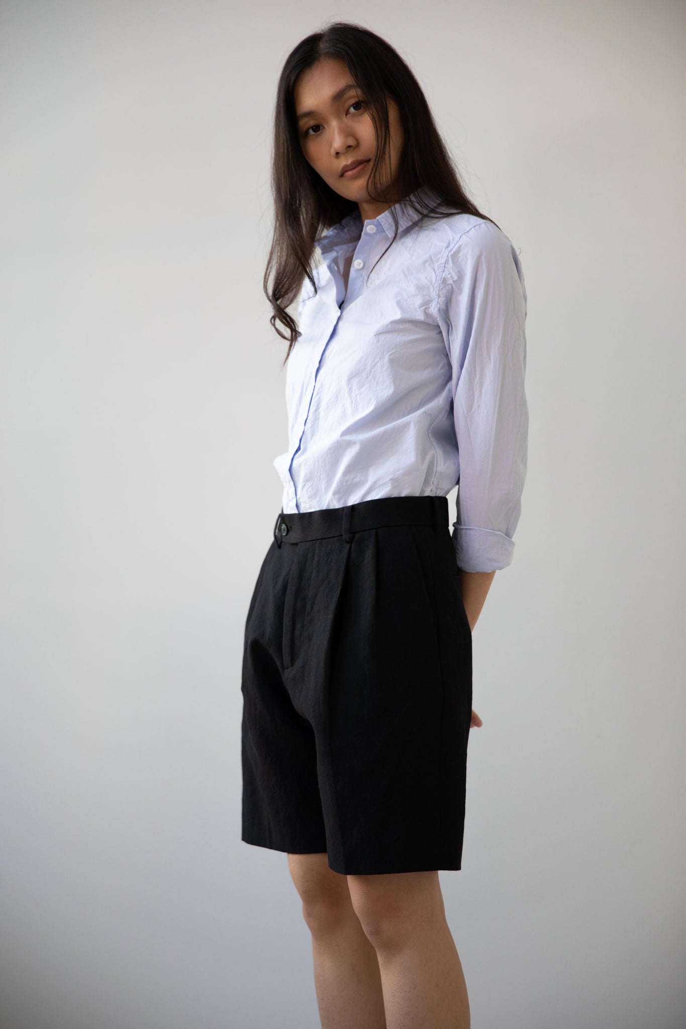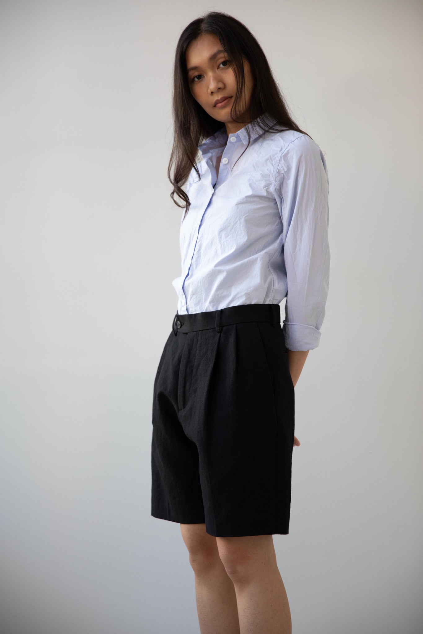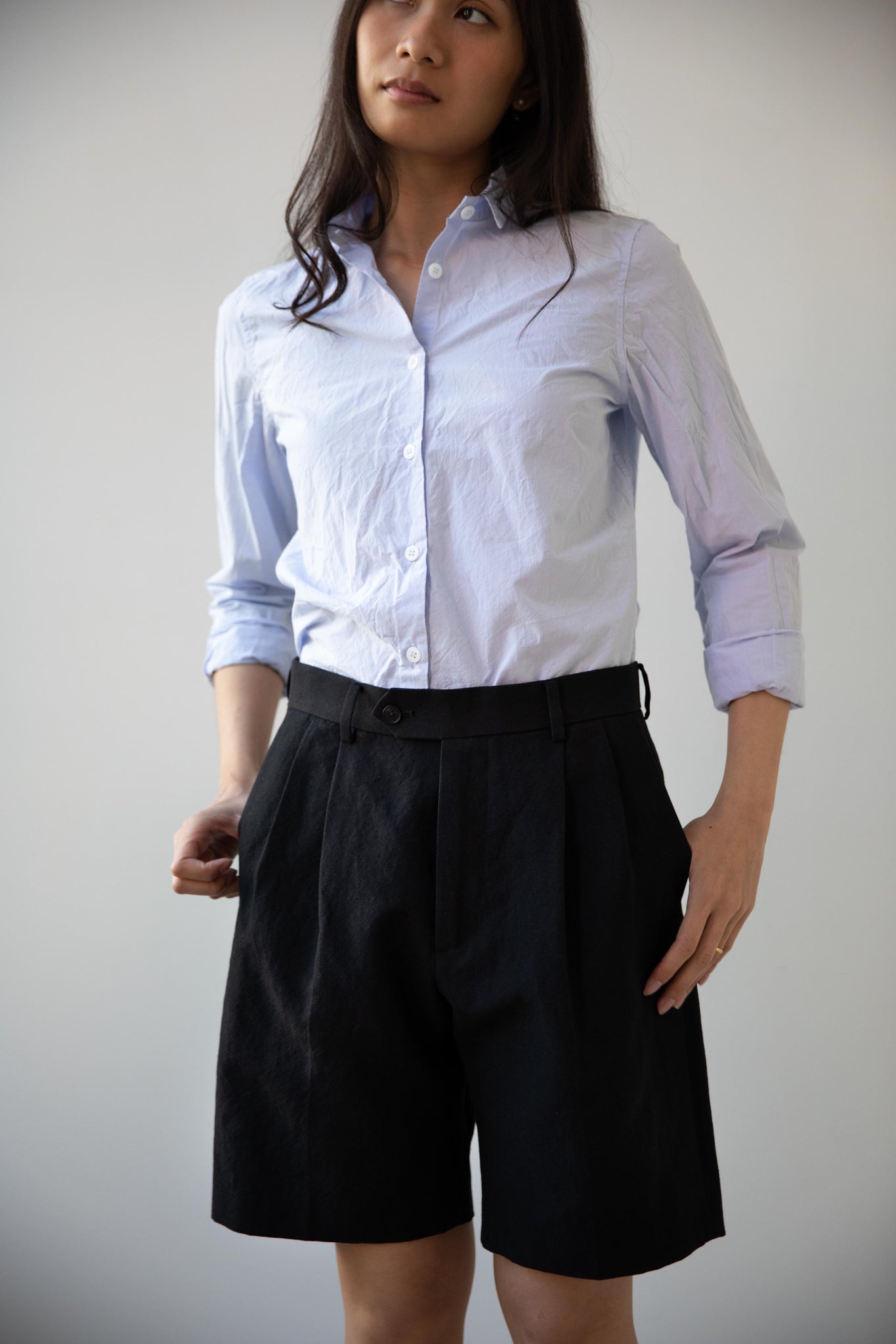 Auralee | Wool Cotton Linen OX Shorts in Black