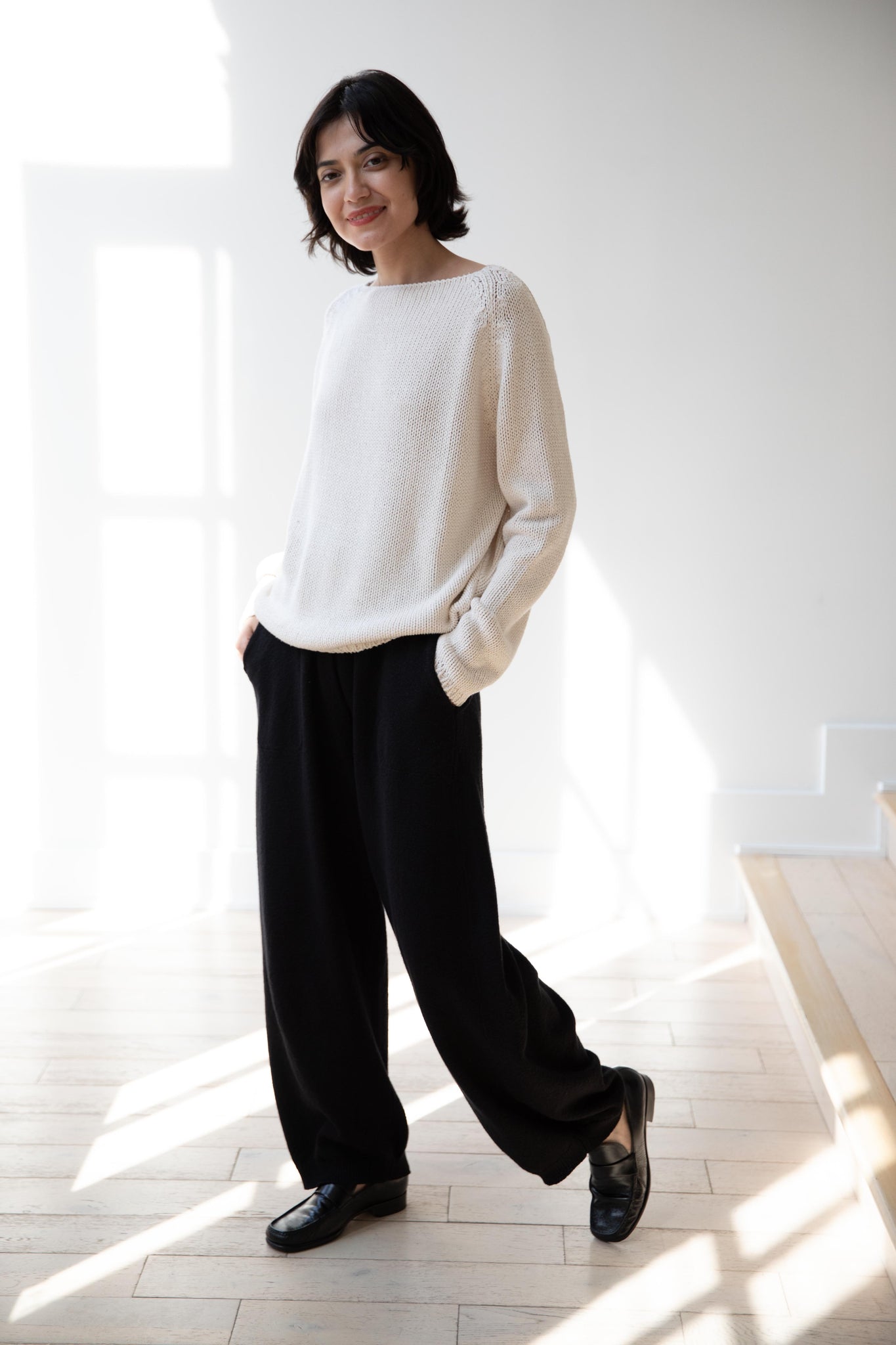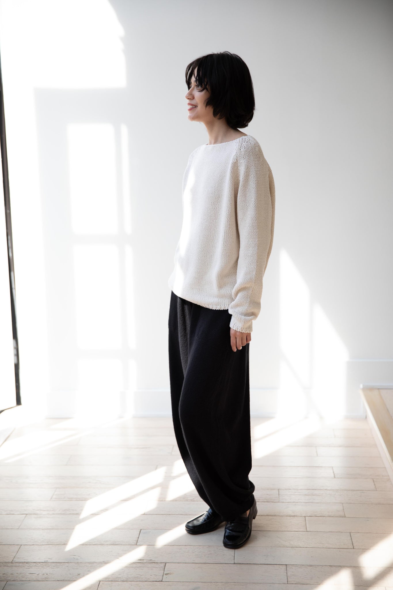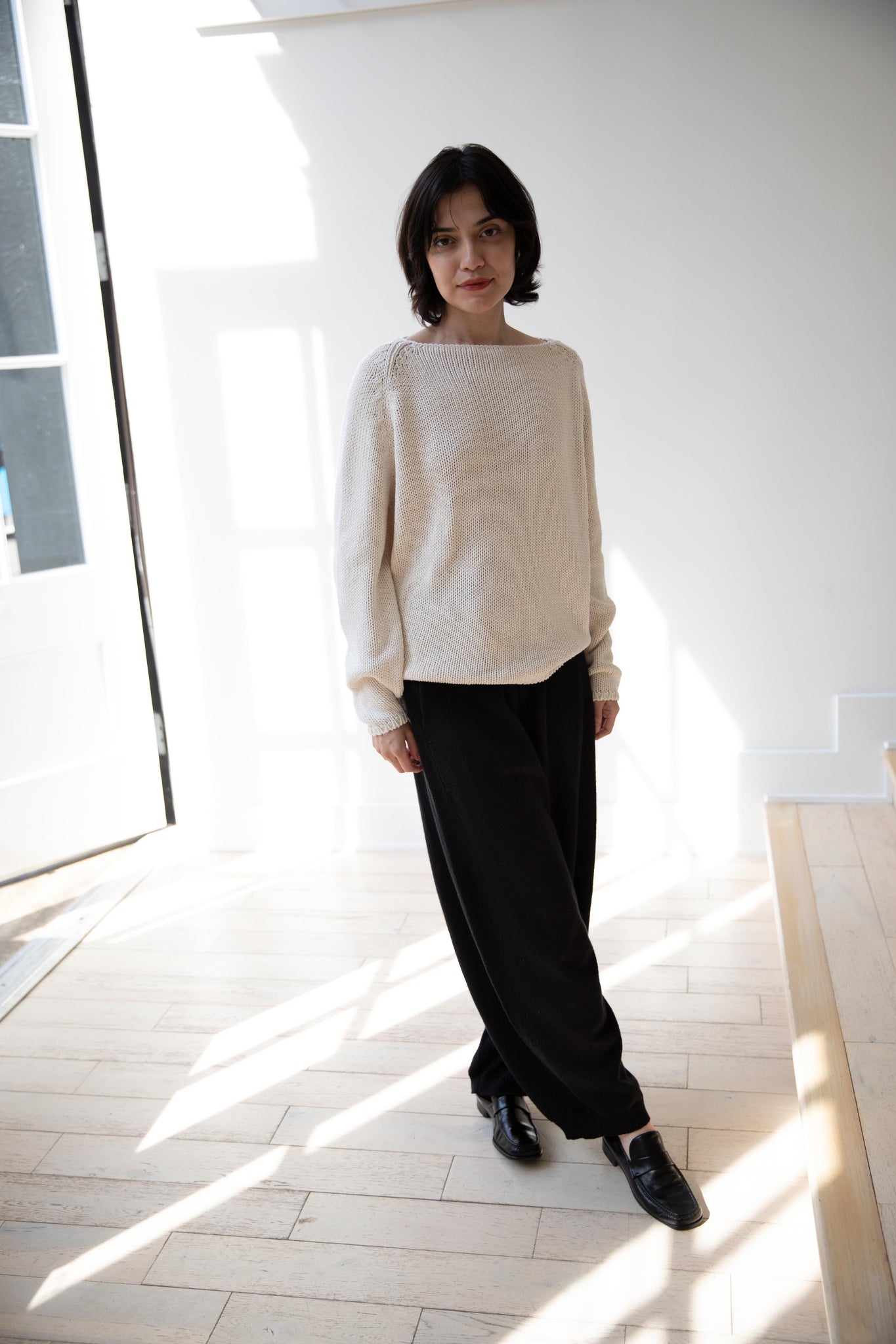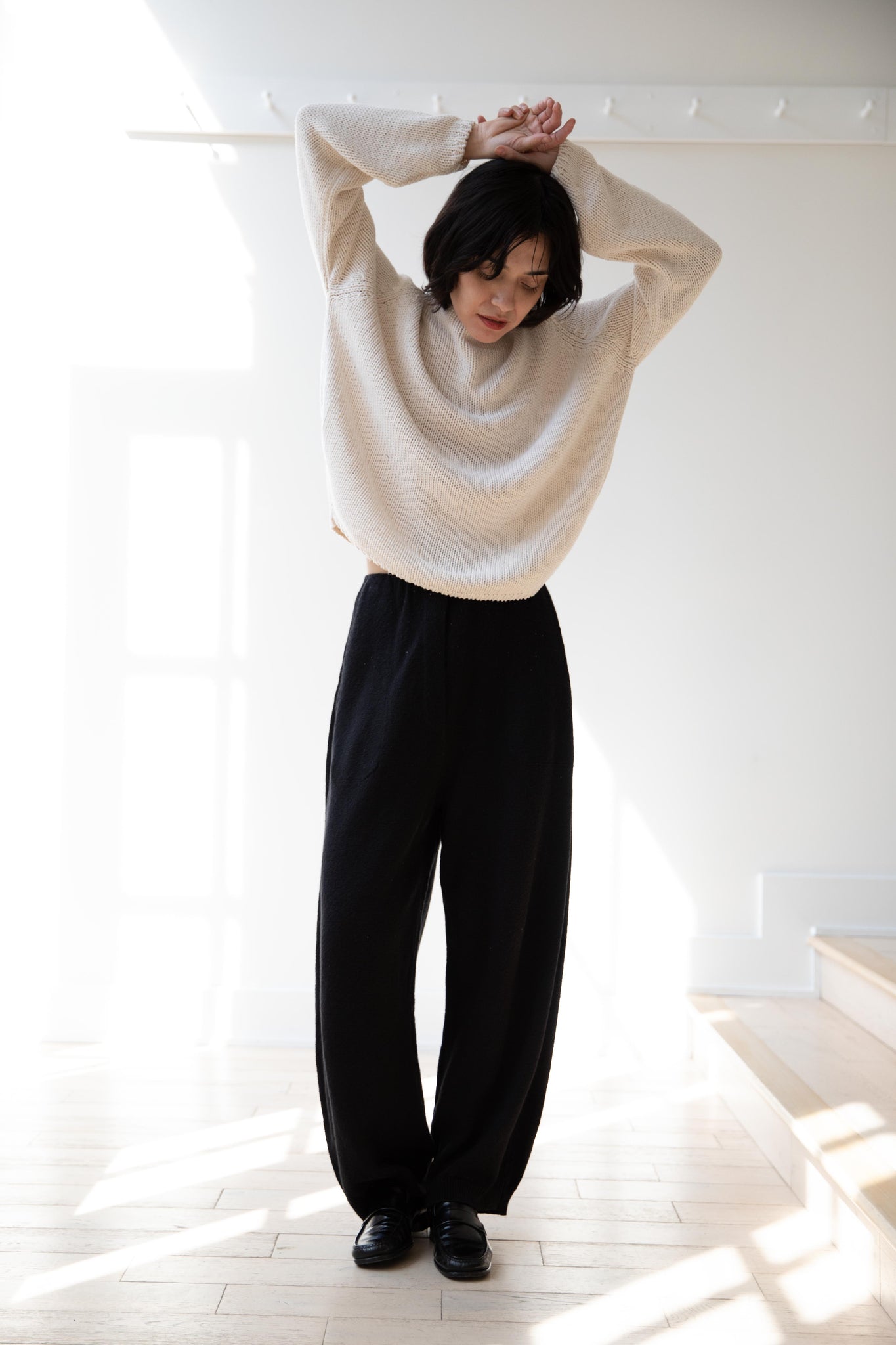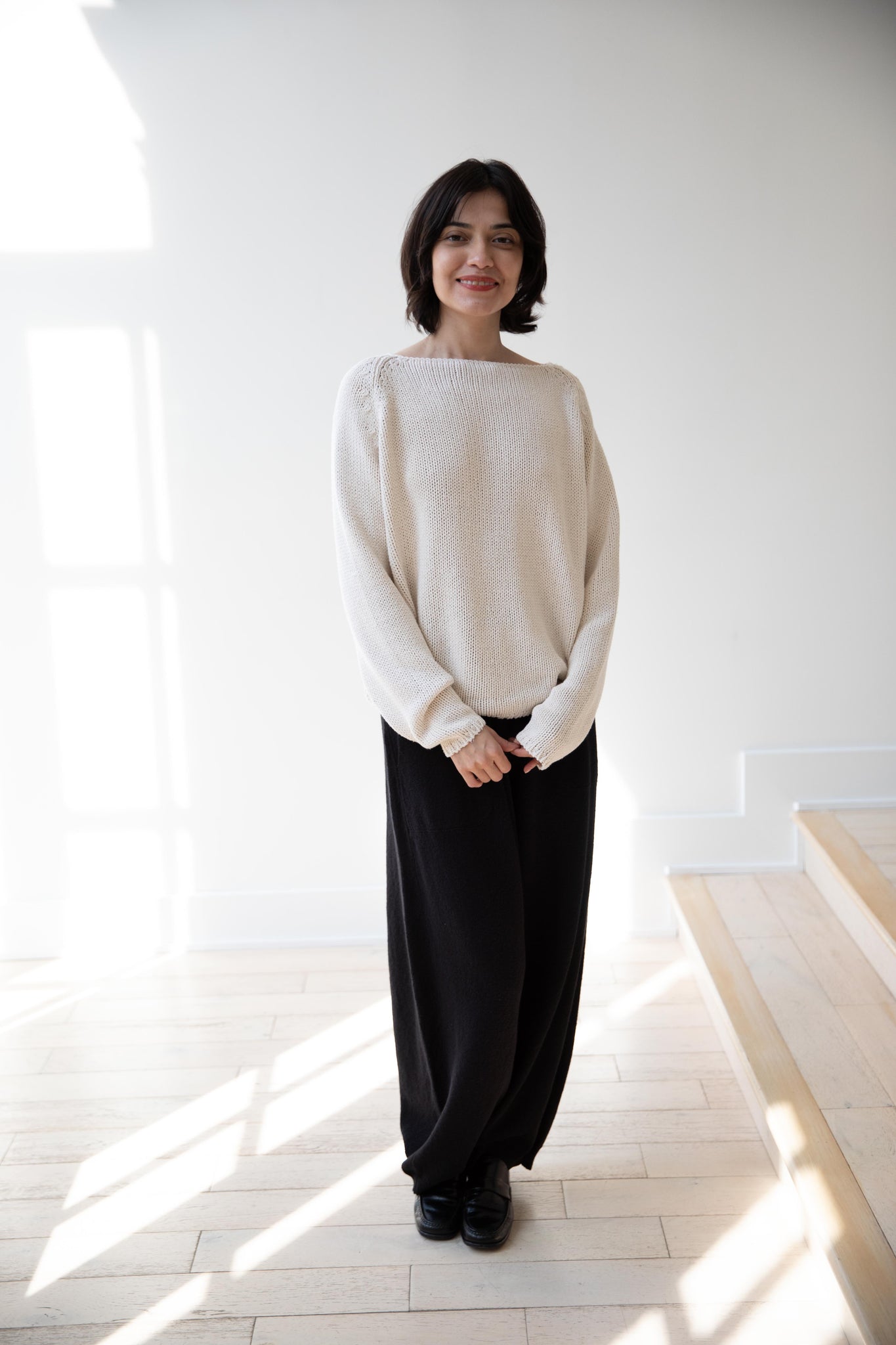 A unique line of knitwear designed and made in Italy.  Using wonderful fiber blends in their yarns, each piece feels amazing.  Adding sculptural elements through CNC knitting machines, Boboutic is able to achieve volume and interesting knit stitches to achieve their vision.