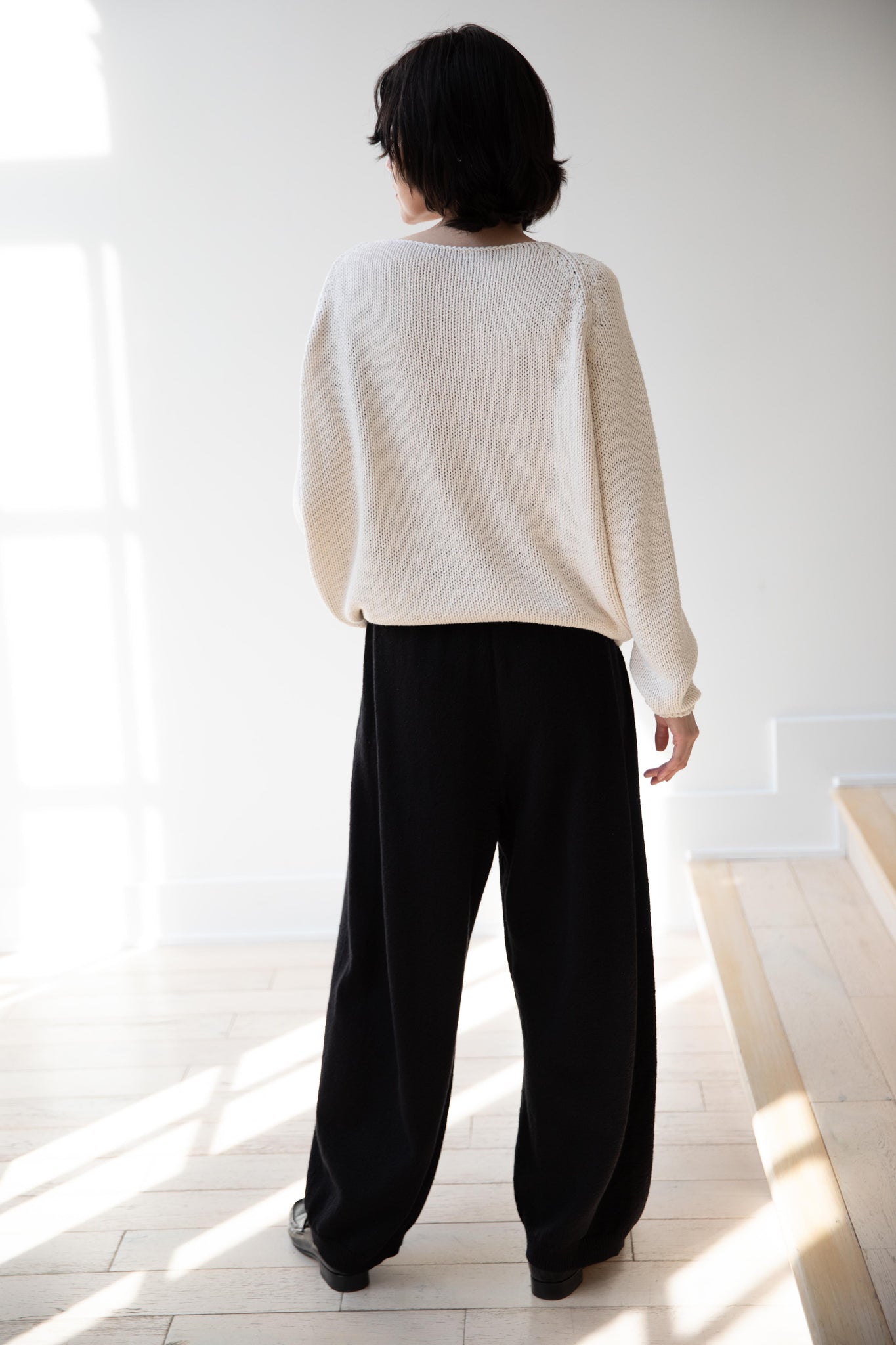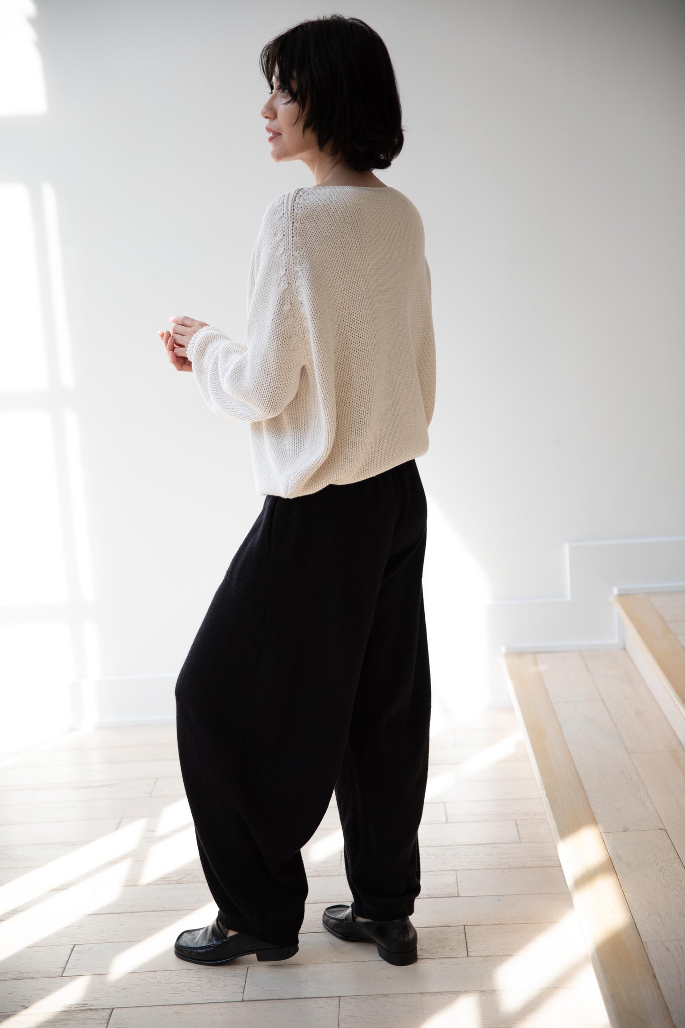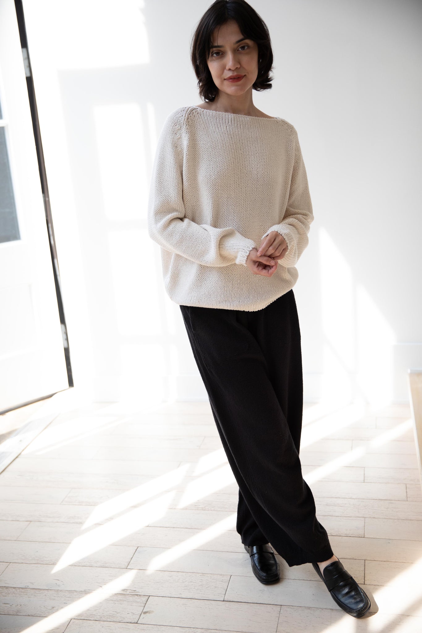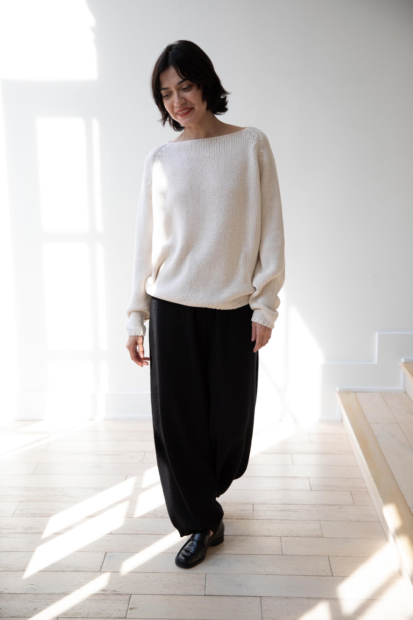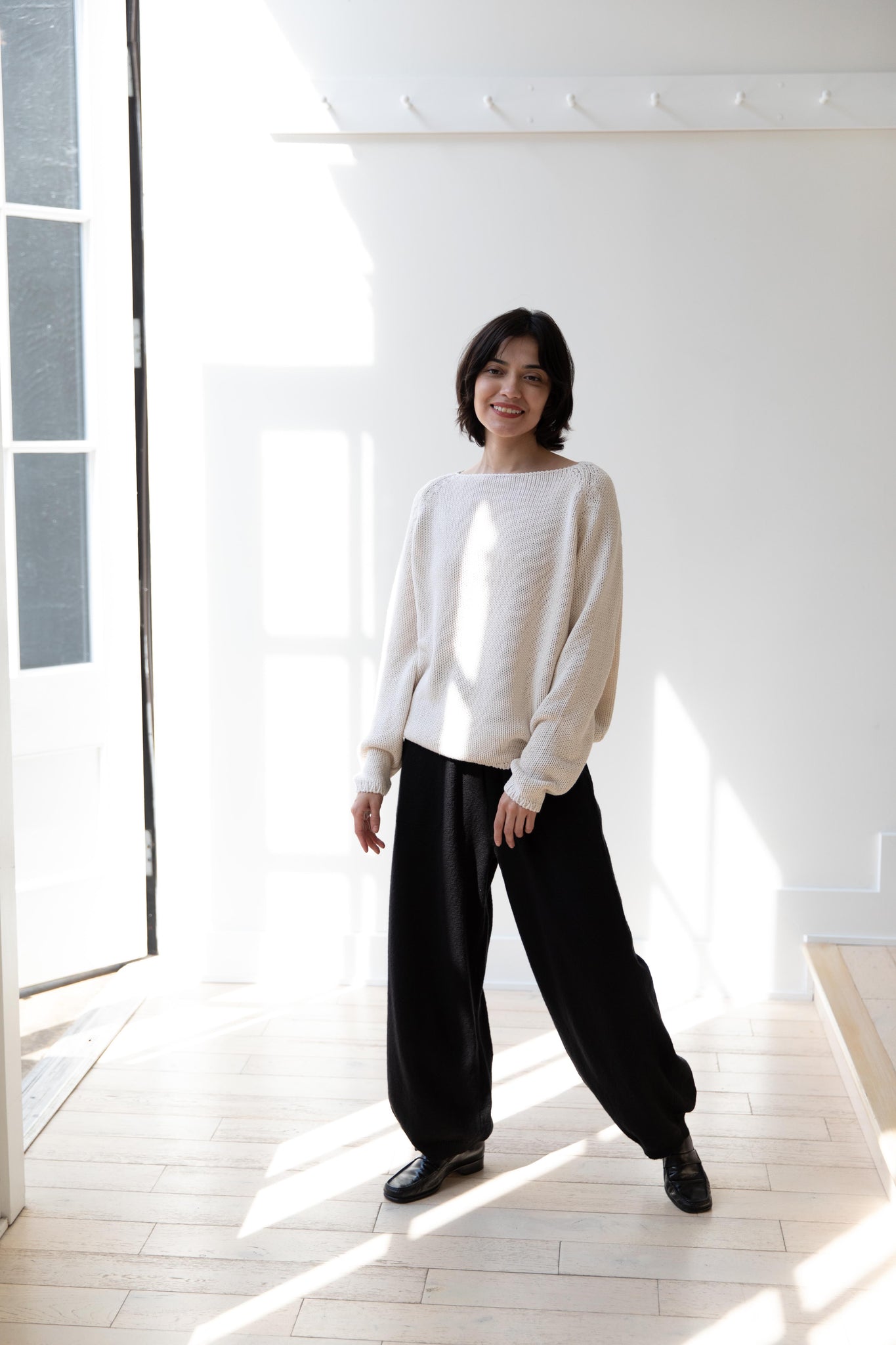 A unique line of knitwear designed and made in Italy.  Using wonderful fiber blends in their yarns, each piece feels amazing.  Adding sculptural elements through CNC knitting machines, Boboutic is able to achieve volume and interesting knit stitches to achieve their vision.