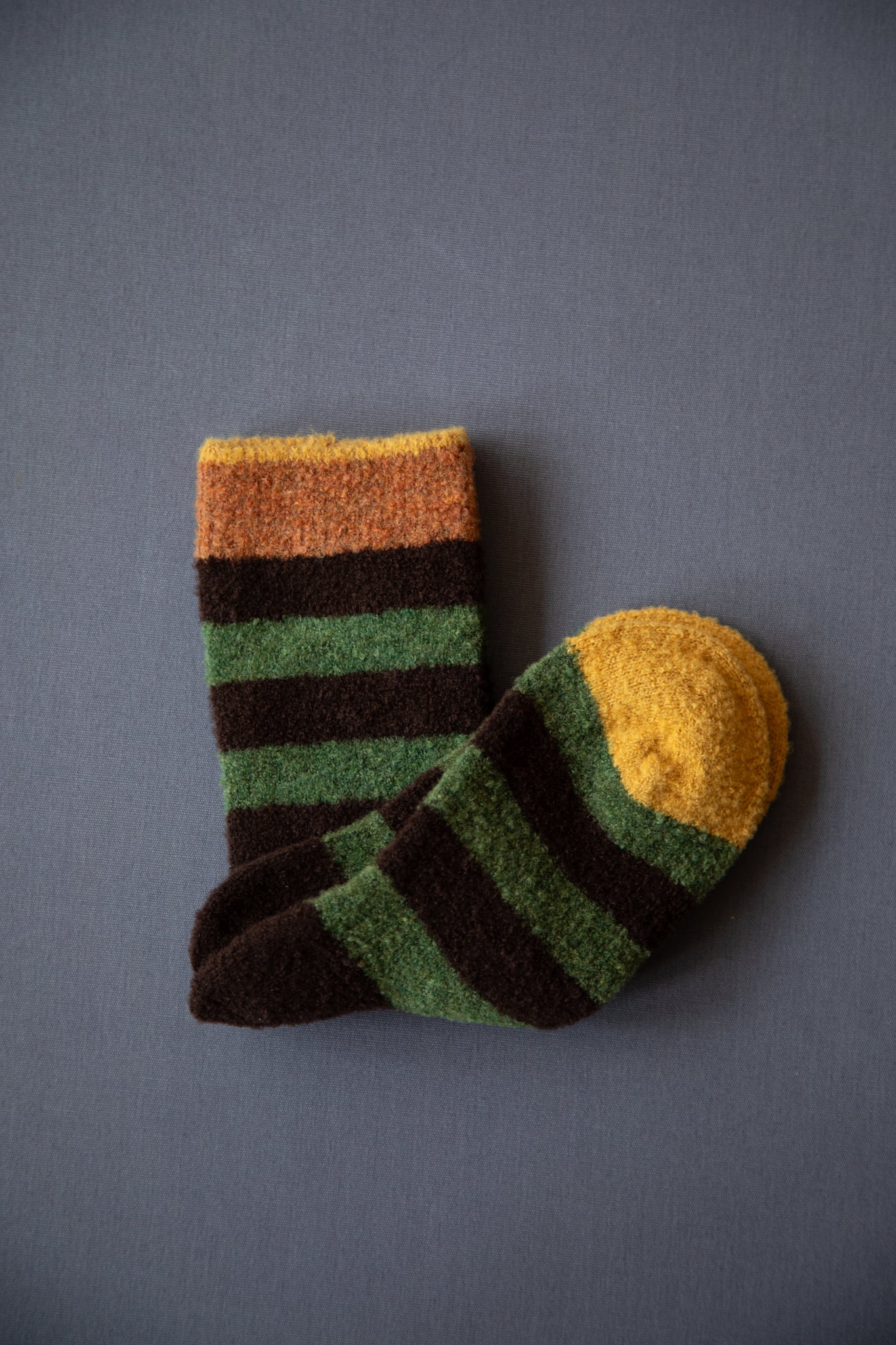 Bonne Maison | Brown & Green Striped Wool Bouclé Socks