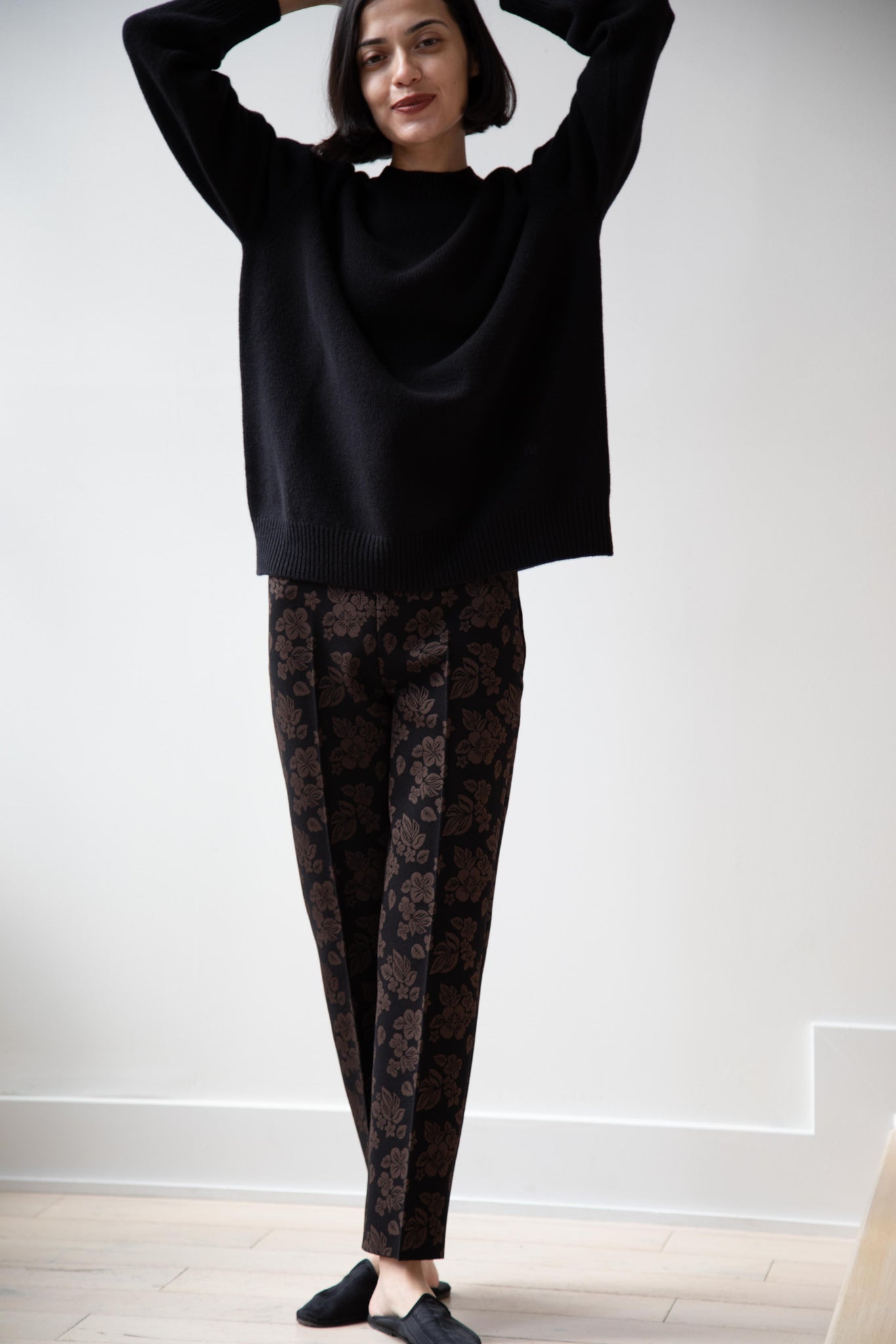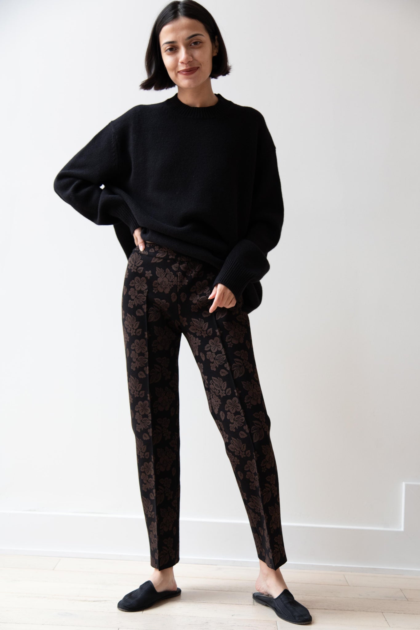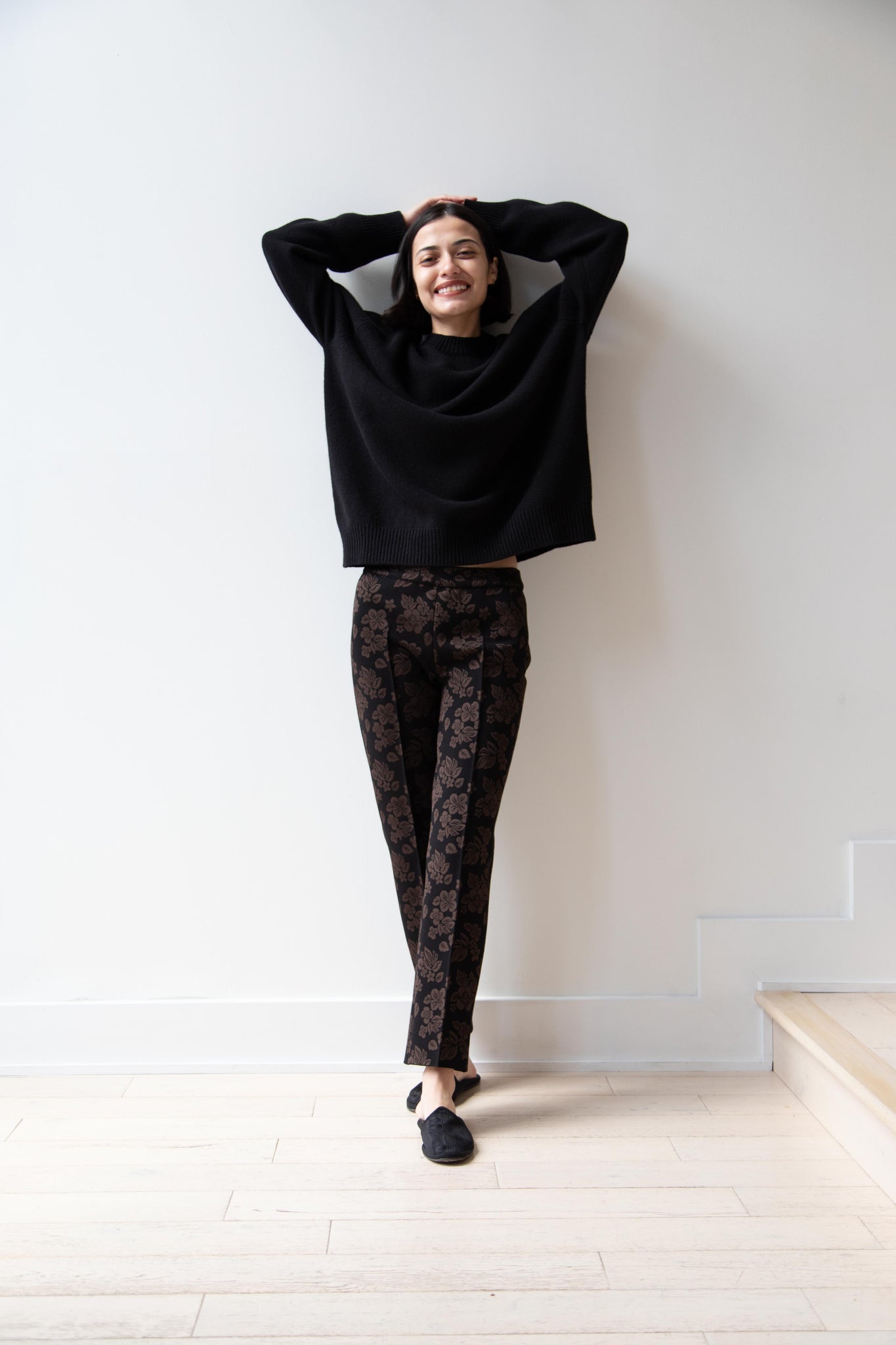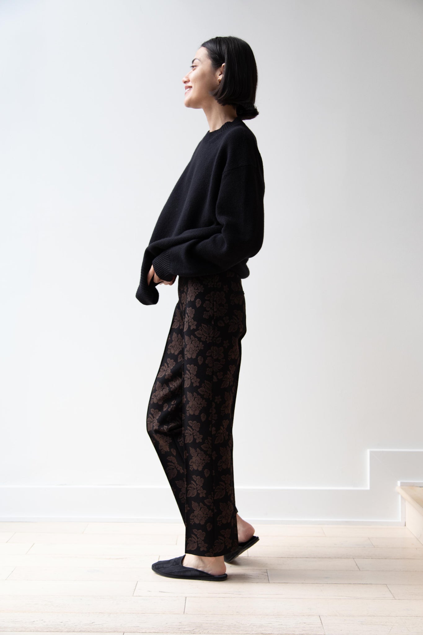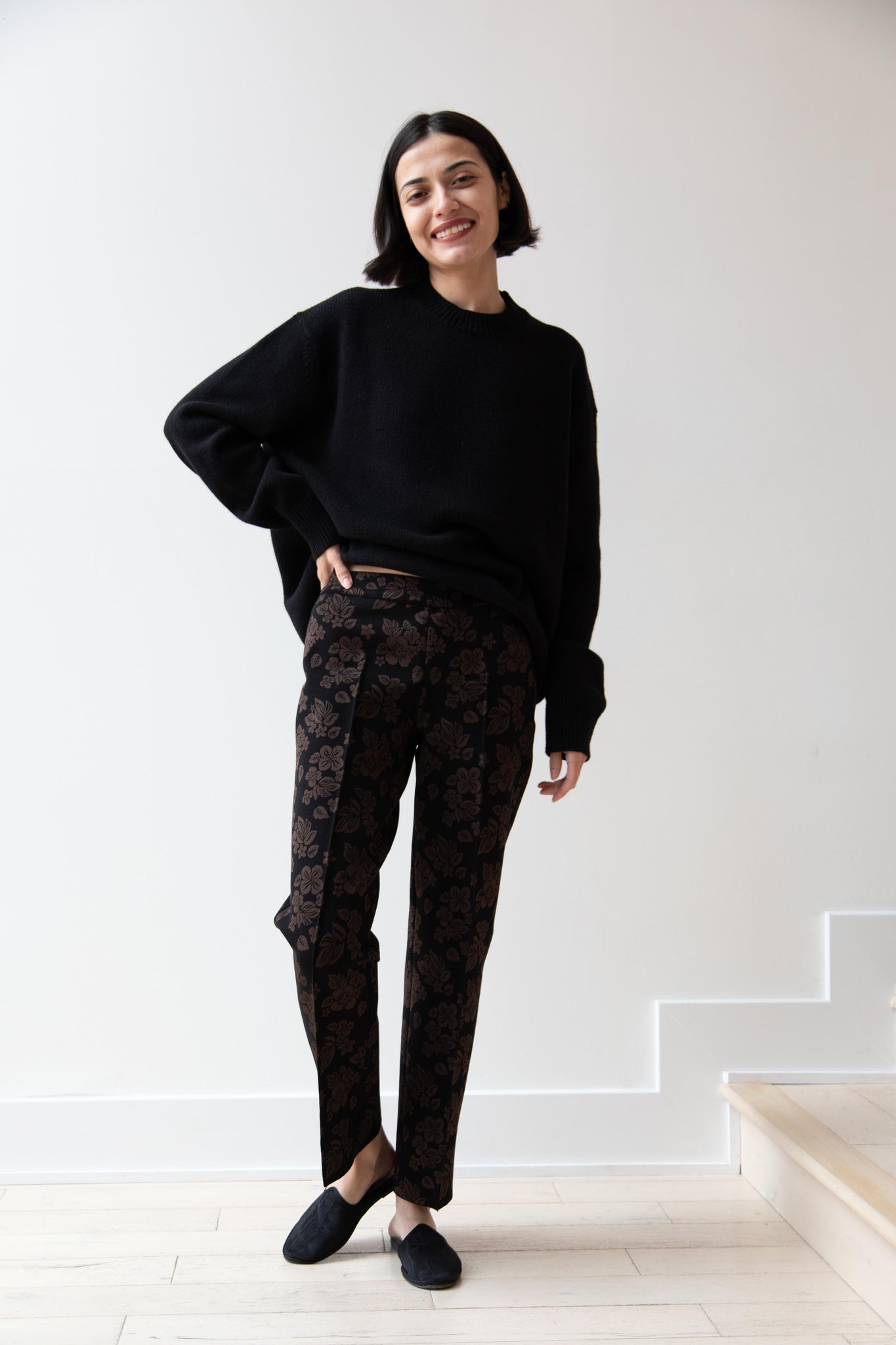 This classic crew neck is just the right amount of oversized. The knit is nice and substantial and the perfect length too. There is a small embroidered tonal logo near the hem of the sweater.