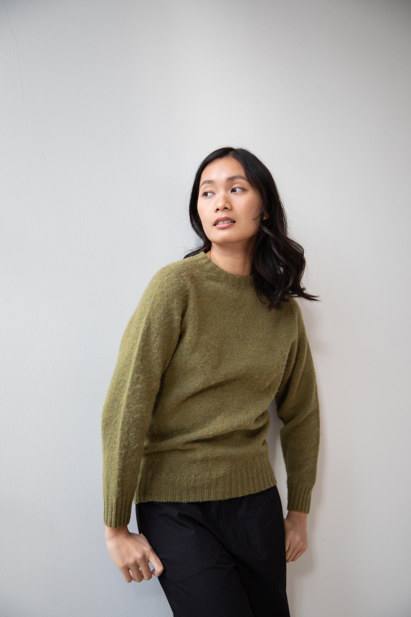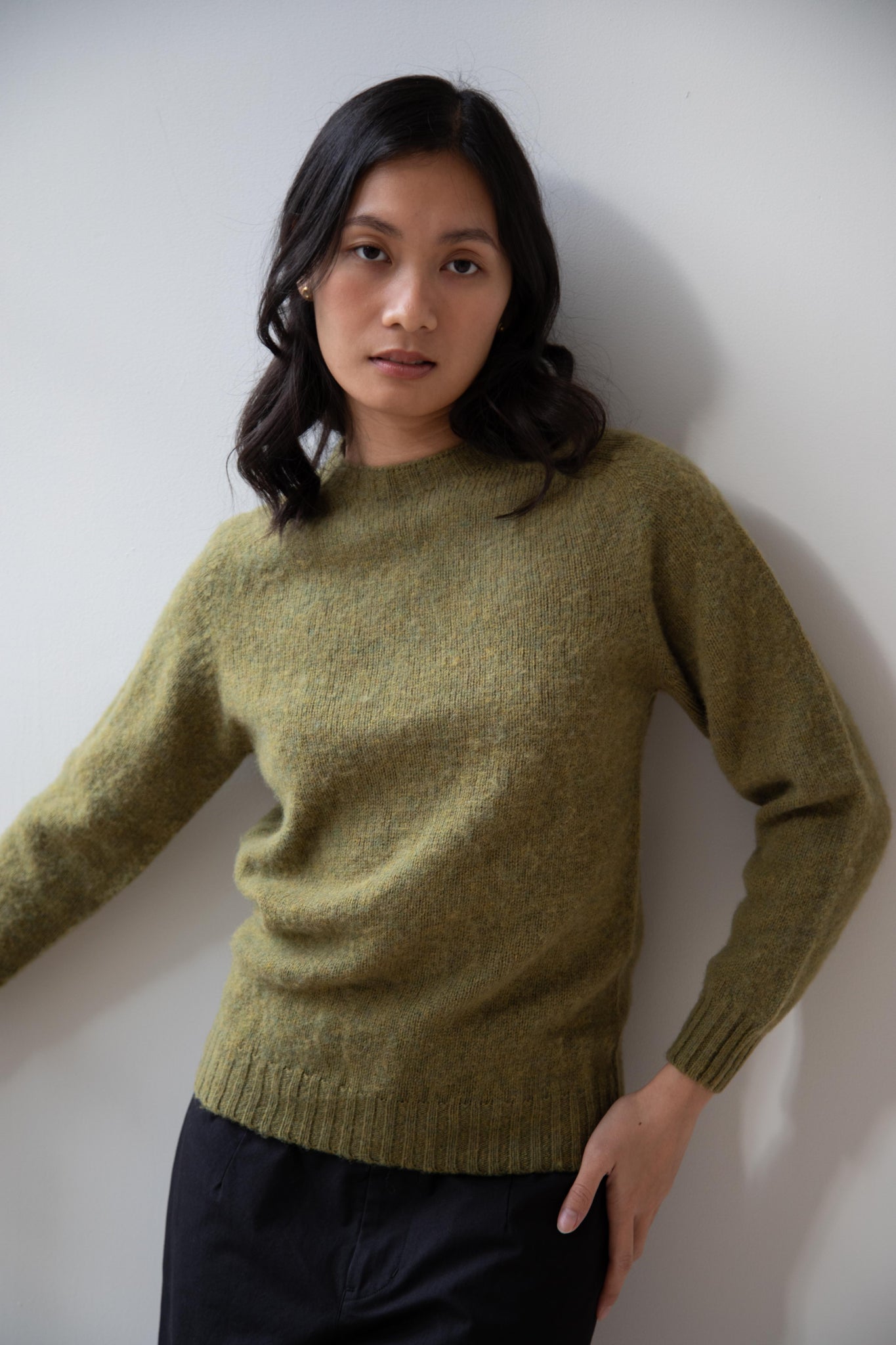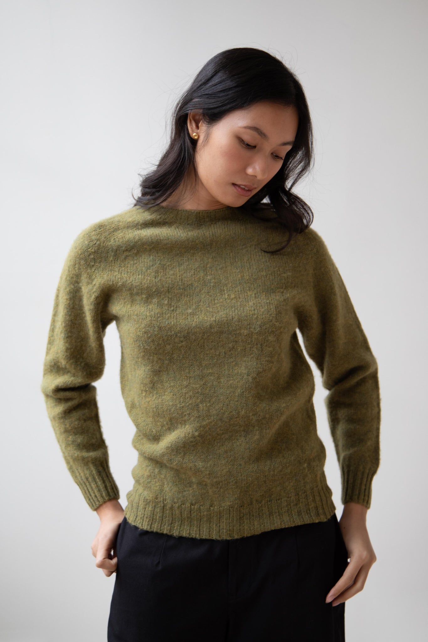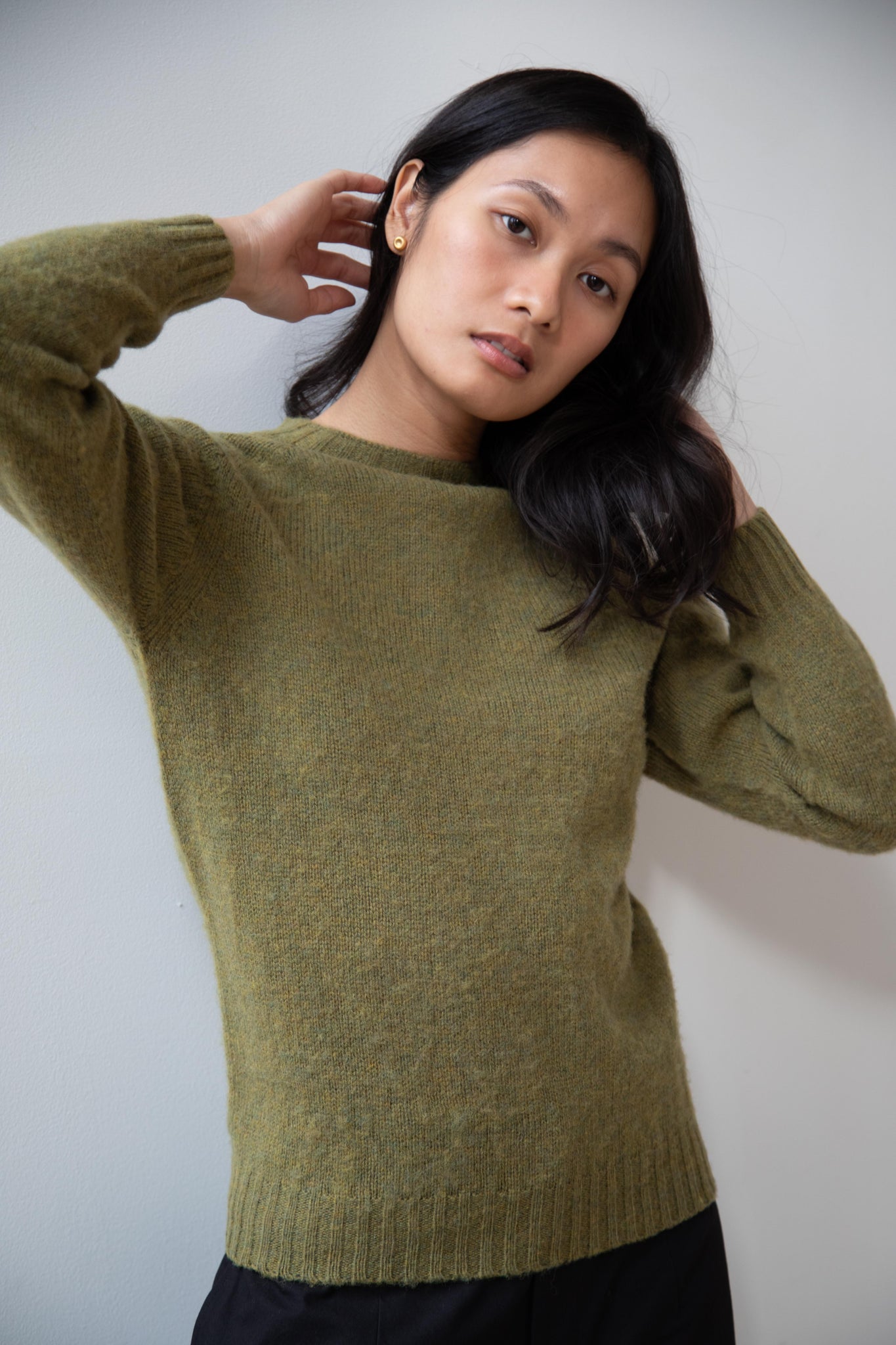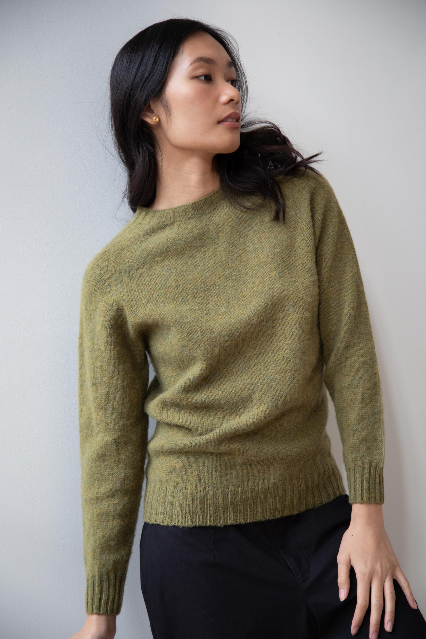 This sweater is so fun! Made of a wonderful soft and almost foamy wool this sweater has the best texture and color. It is a classic crewneck fit and perfect for layering and mixing and matching!