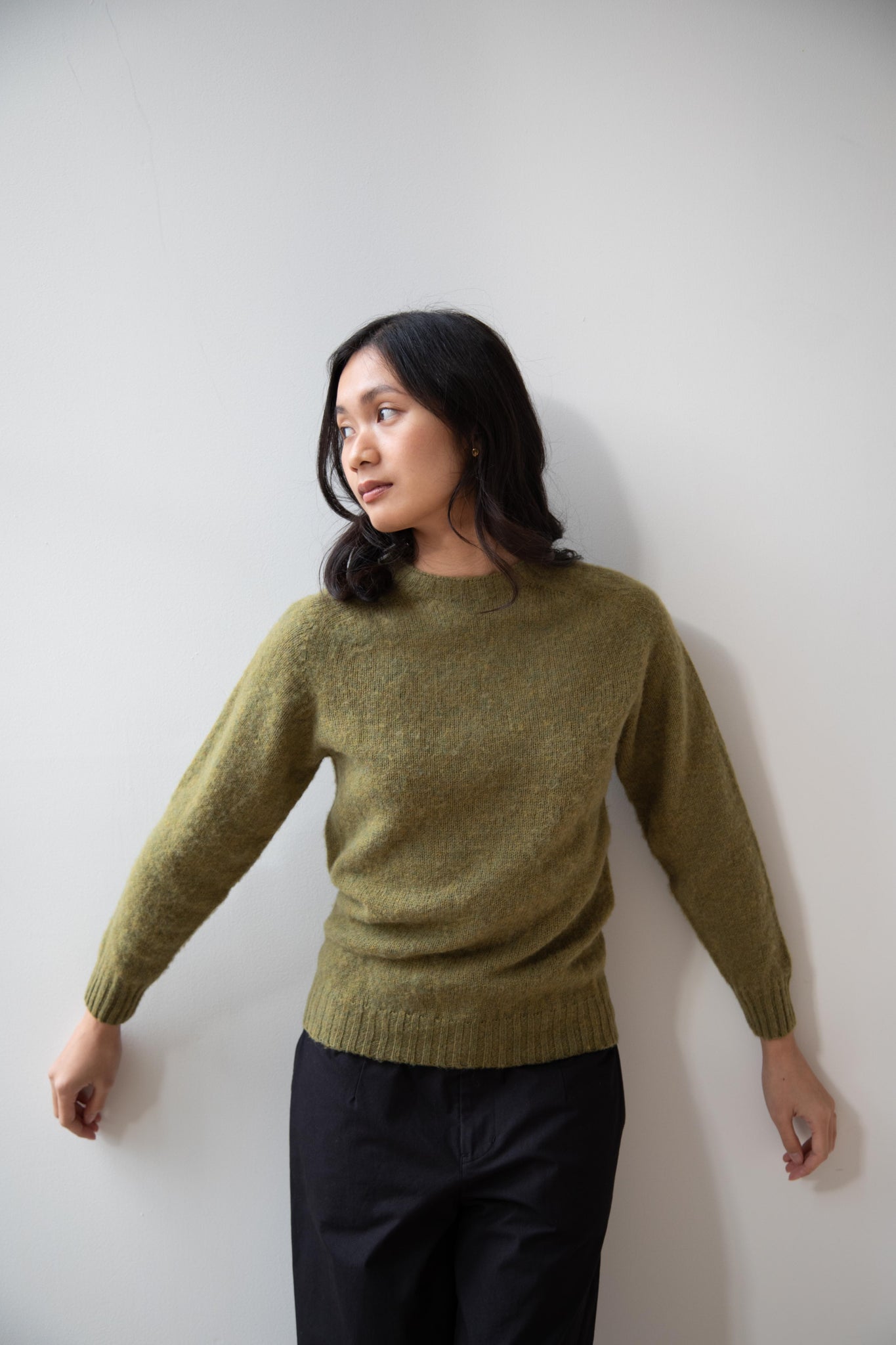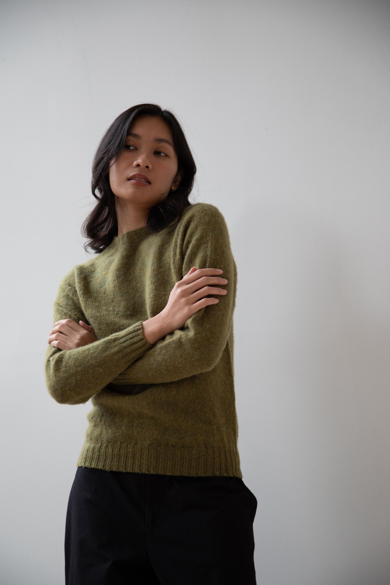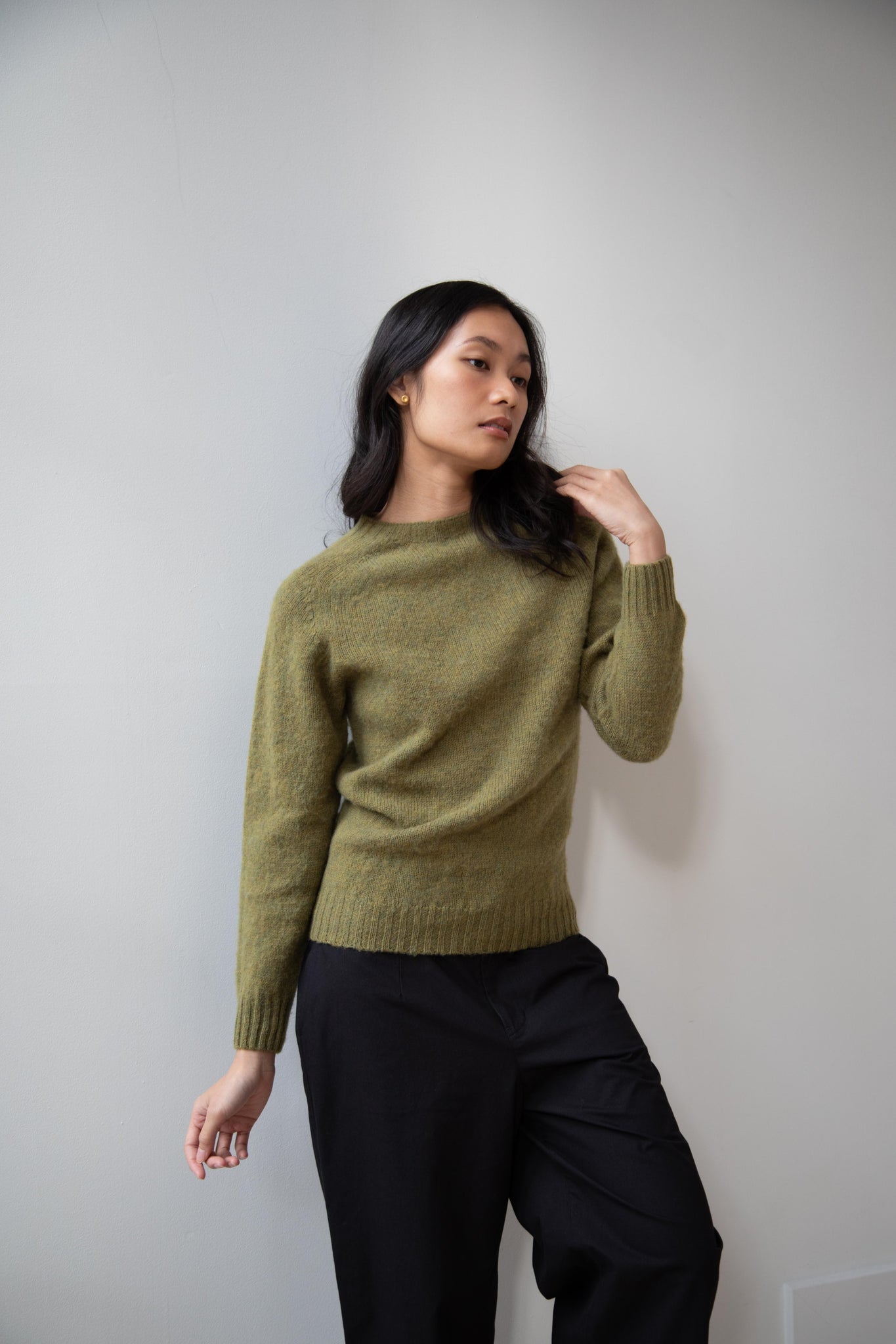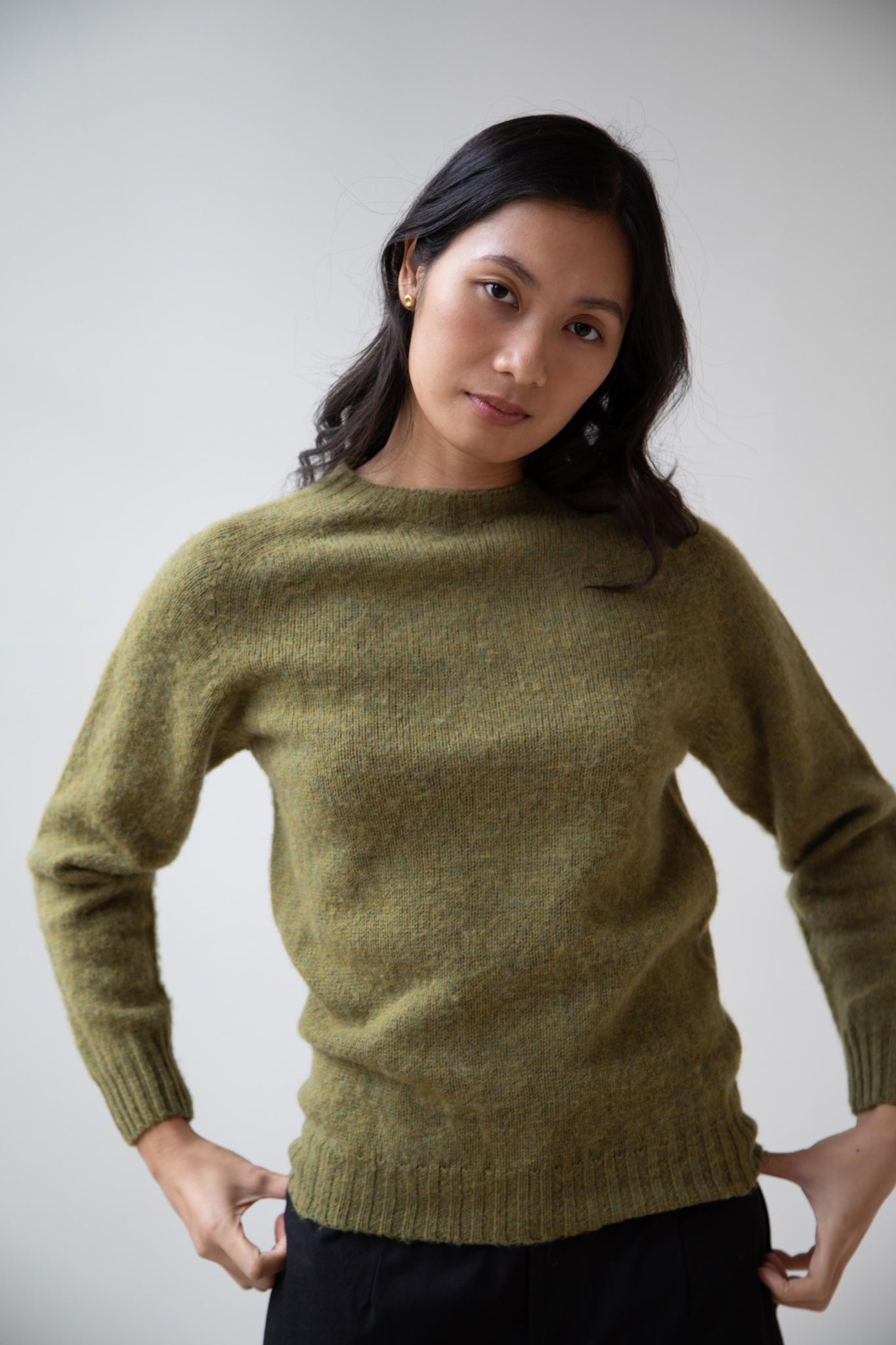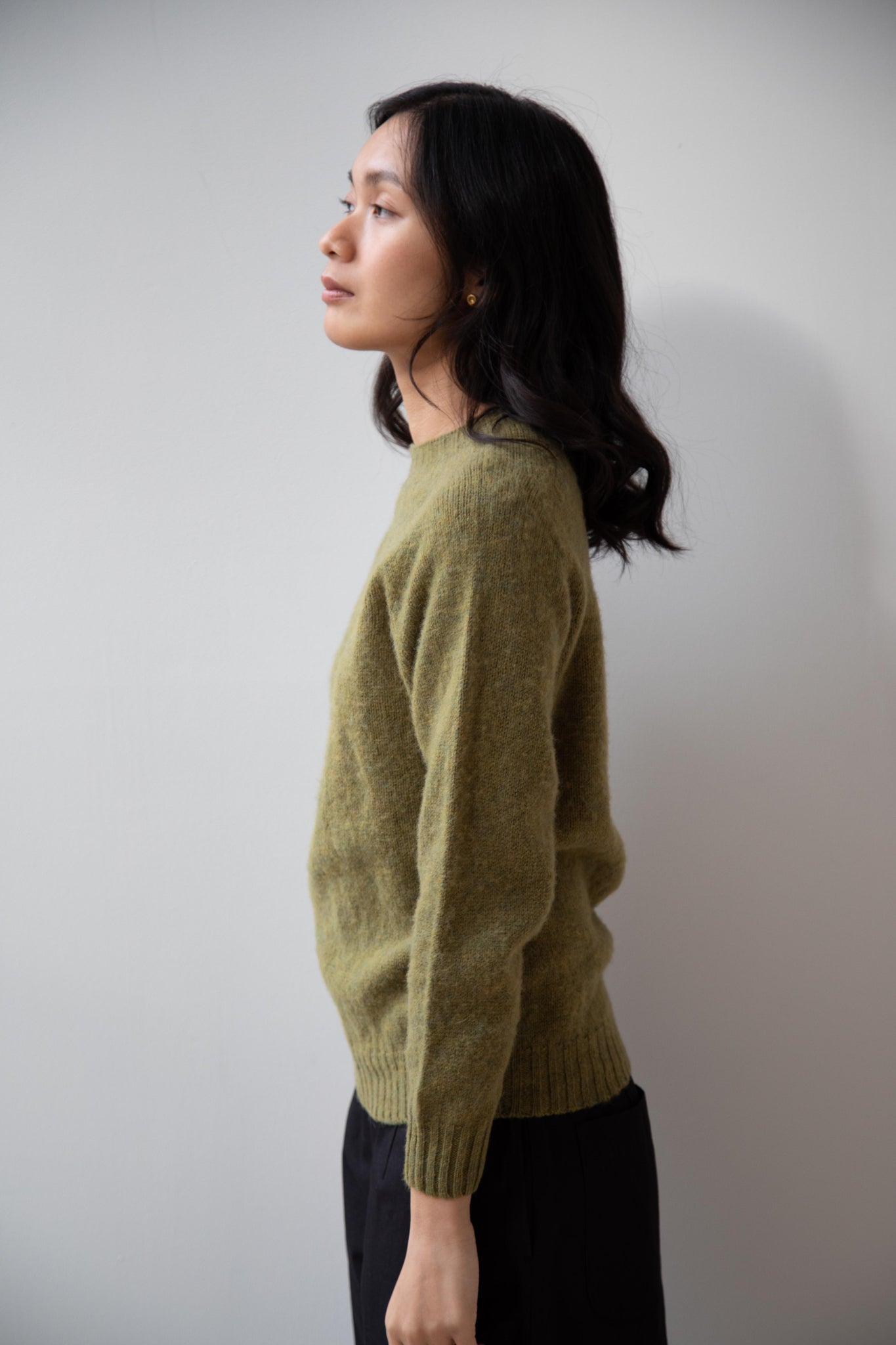 This sweater is so fun! Made of a wonderful soft and almost foamy wool this sweater has the best texture and color. It is a classic crewneck fit and perfect for layering and mixing and matching!