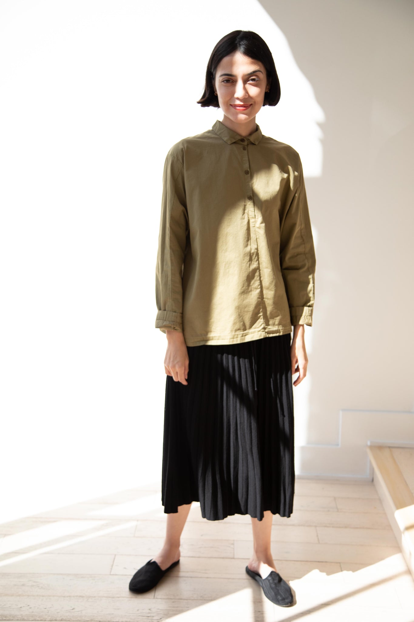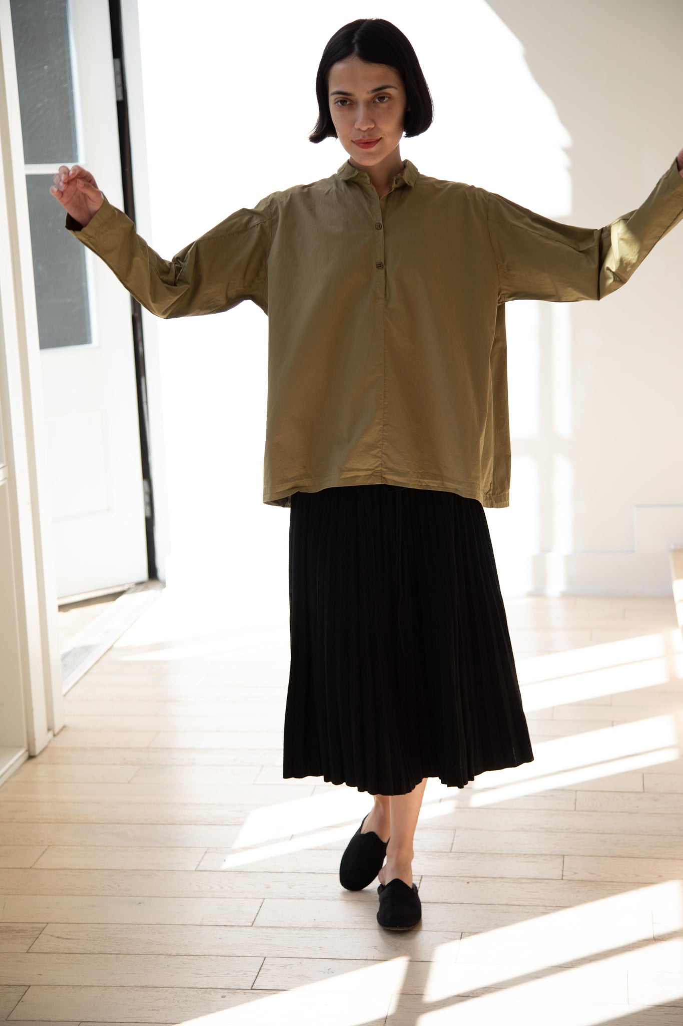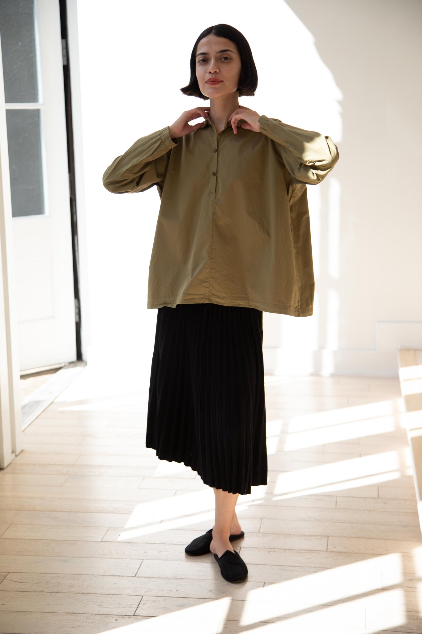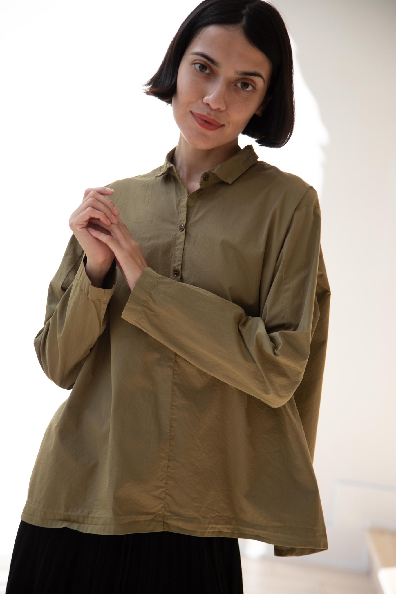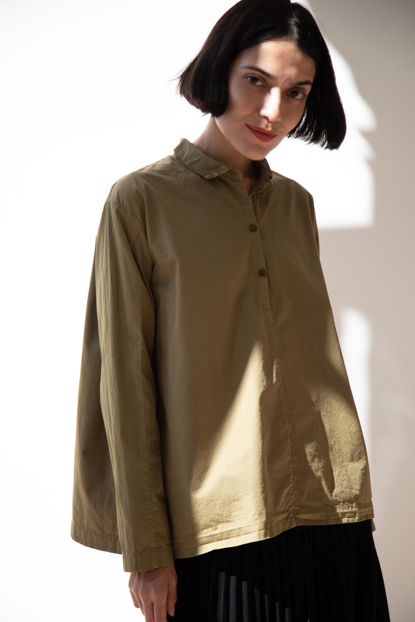 This classic popover henley shirt is a great year round piece. It's made of a lovely cotton poplin and is in a great olive color.