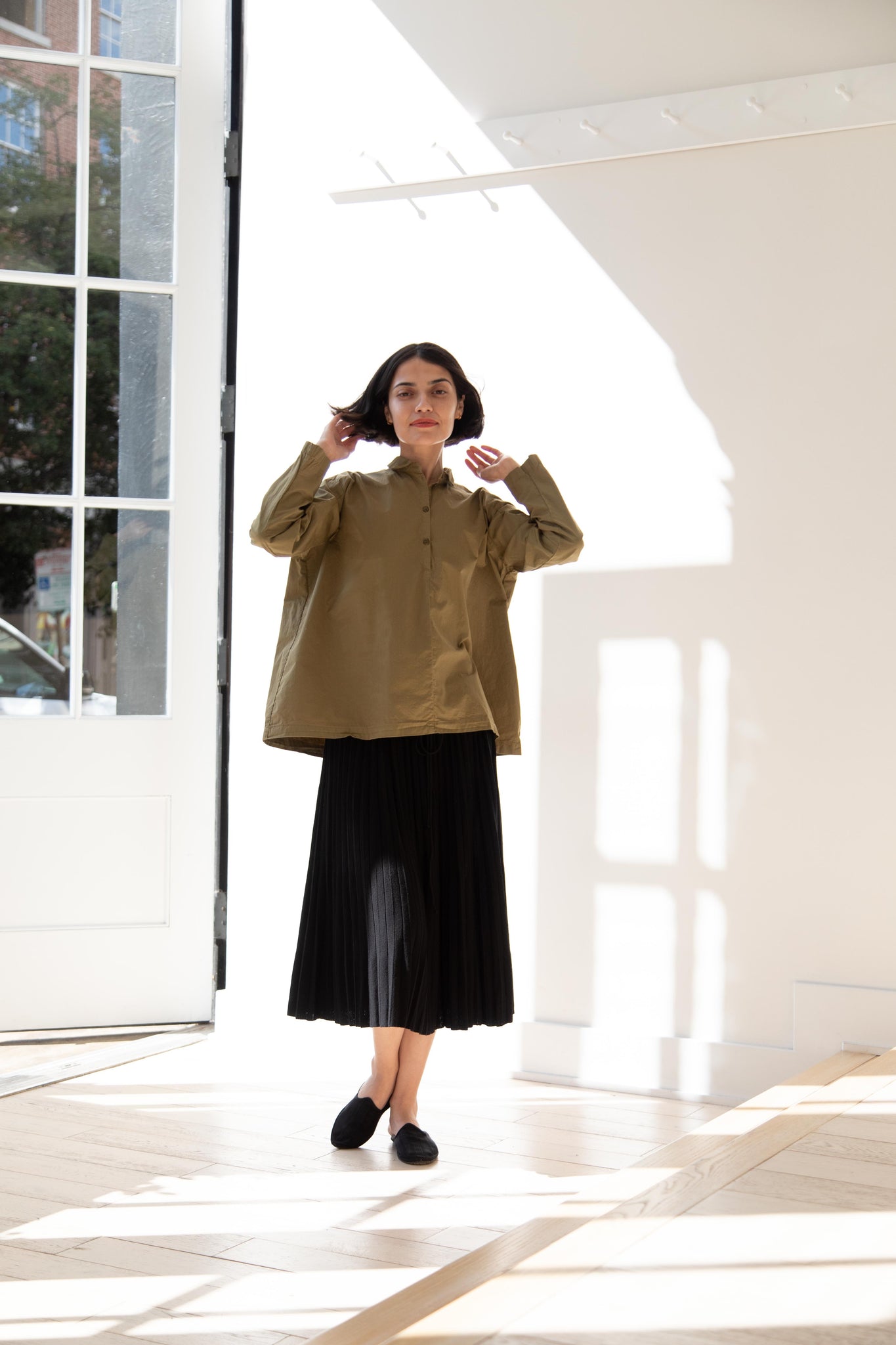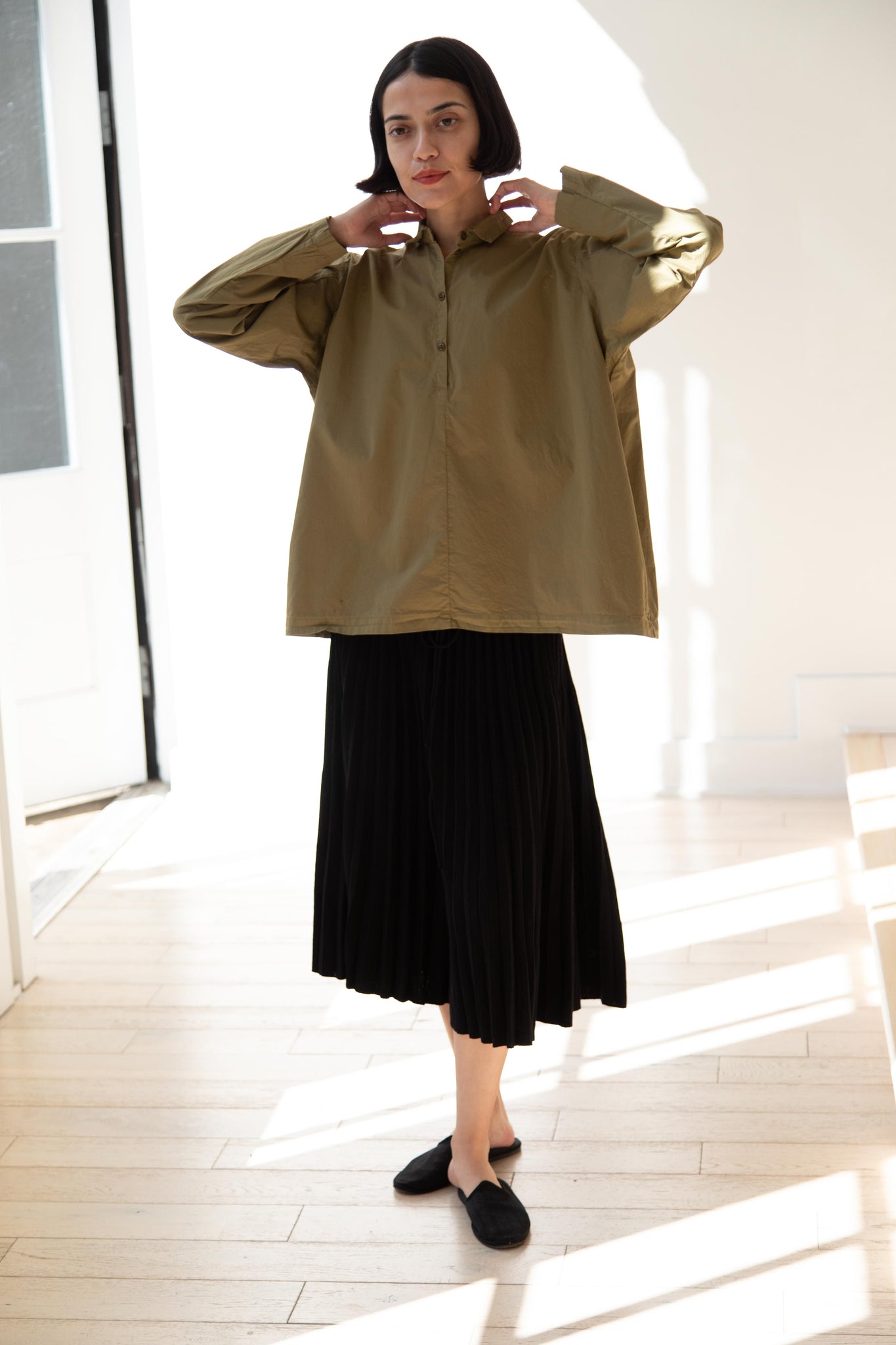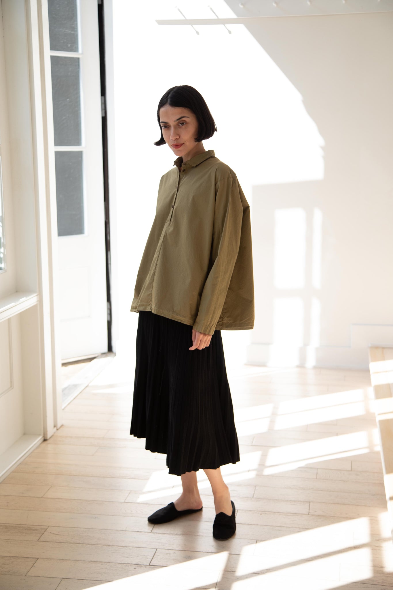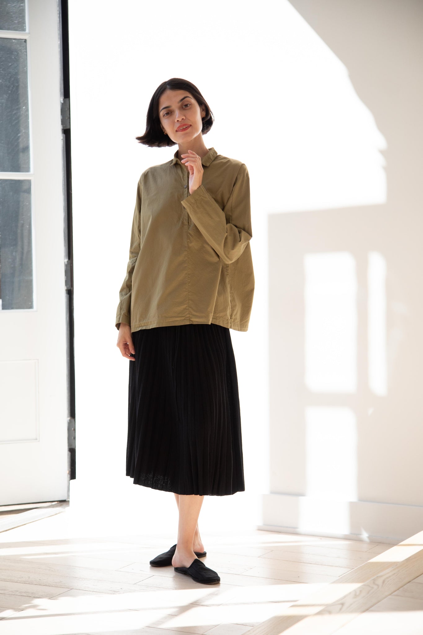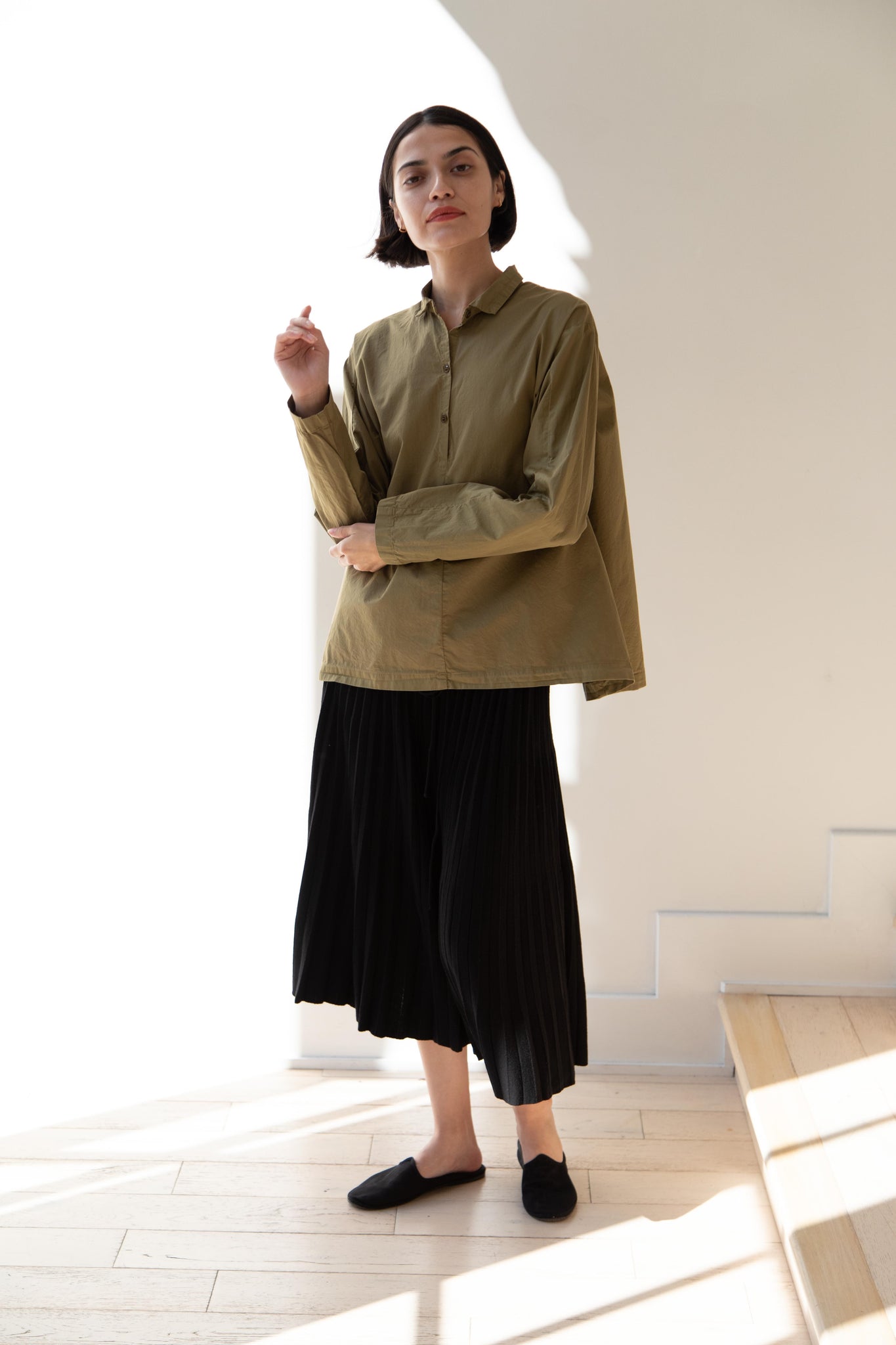 This classic popover henley shirt is a great year round piece. It's made of a lovely cotton poplin and is in a great olive color.