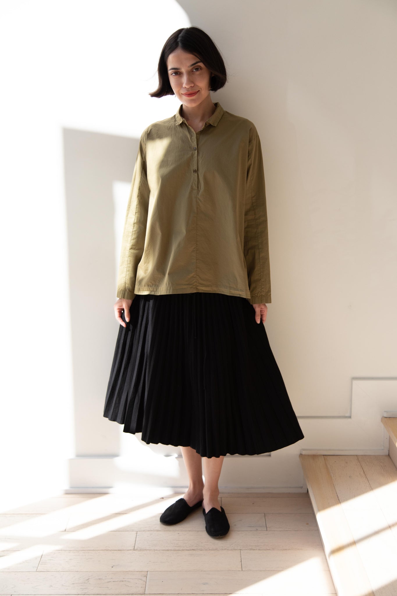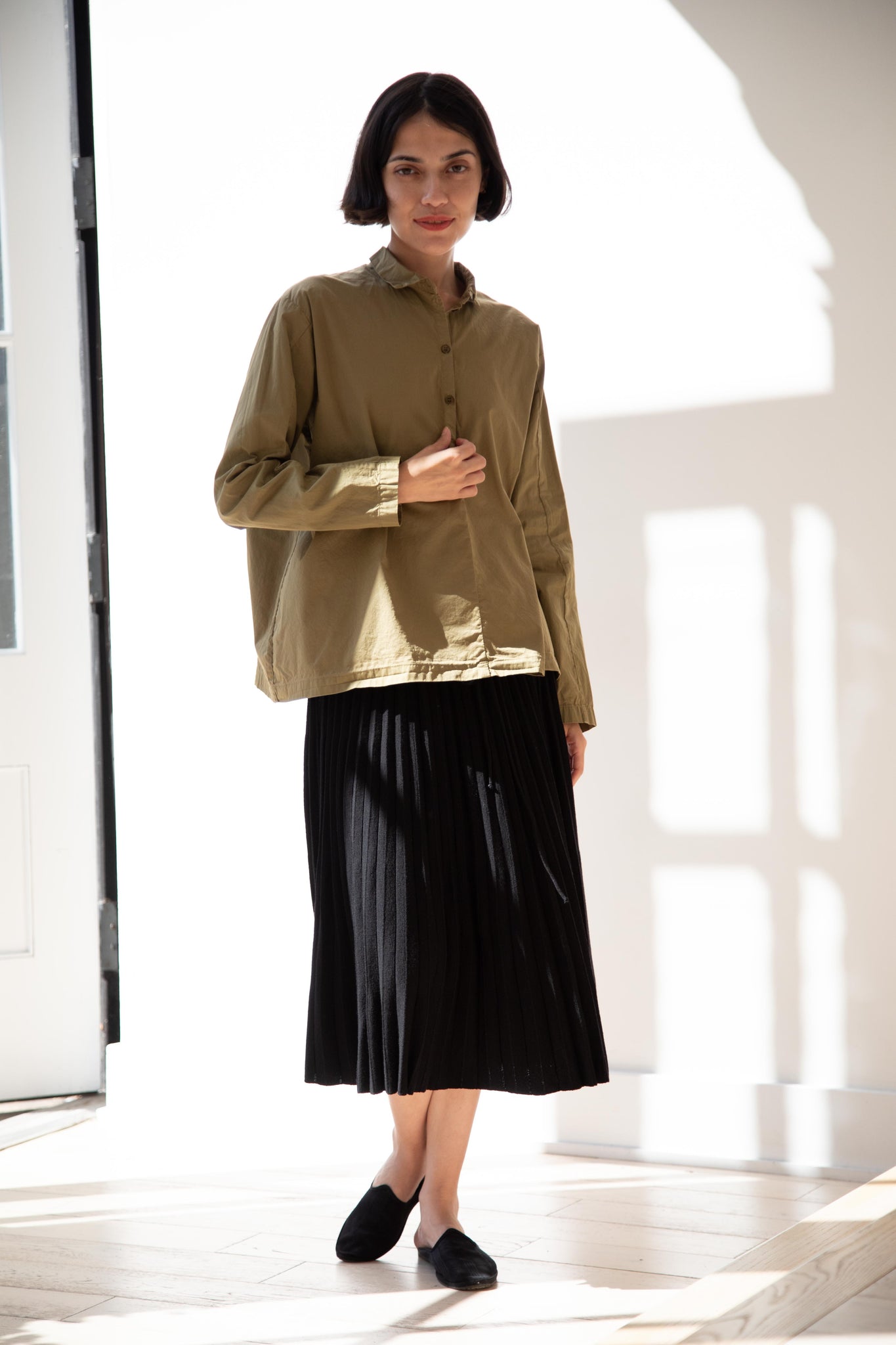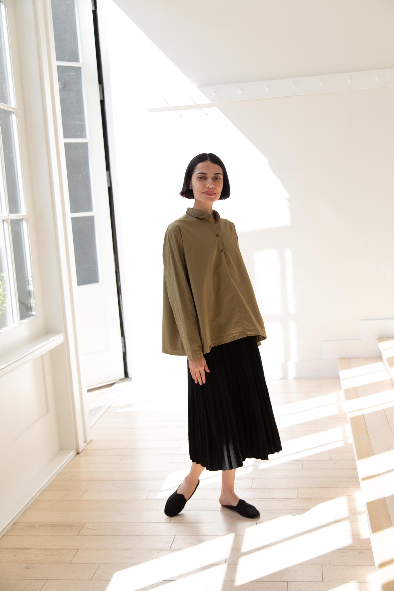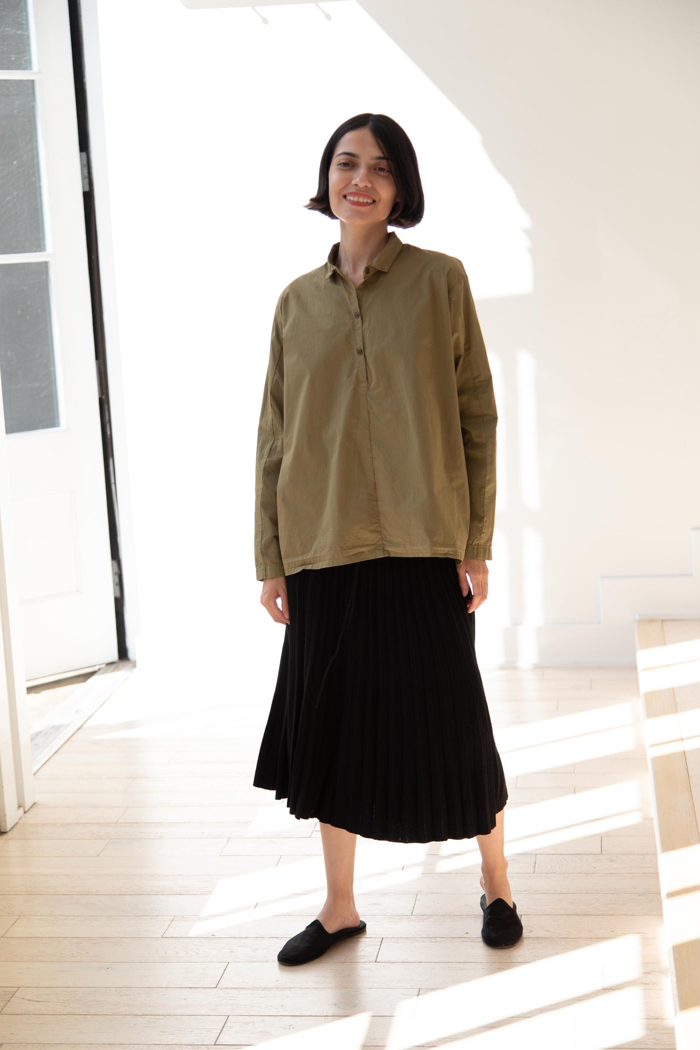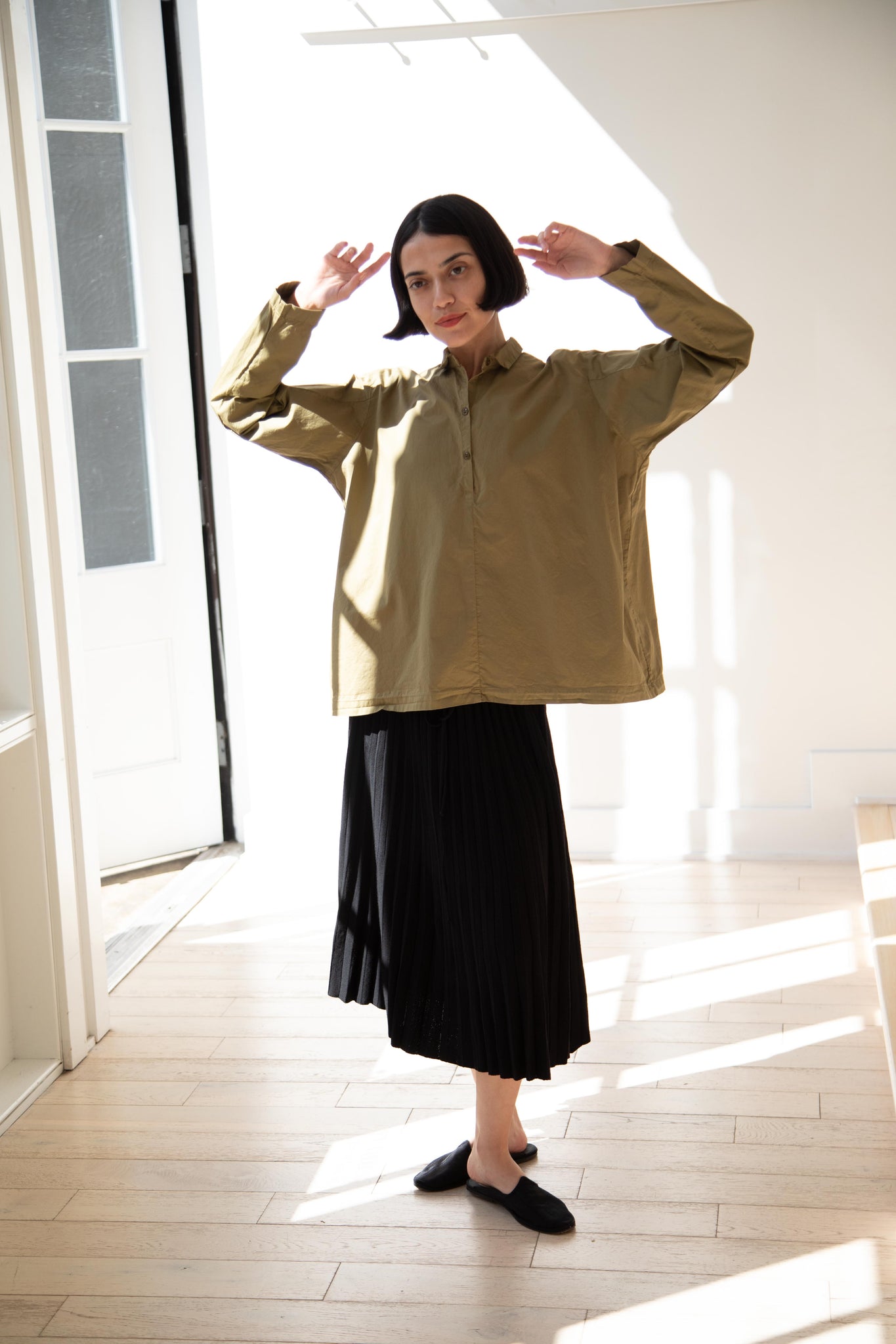 This classic popover henley shirt is a great year round piece. It's made of a lovely cotton poplin and is in a great olive color.