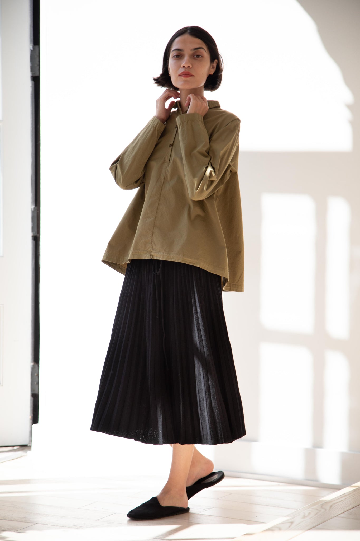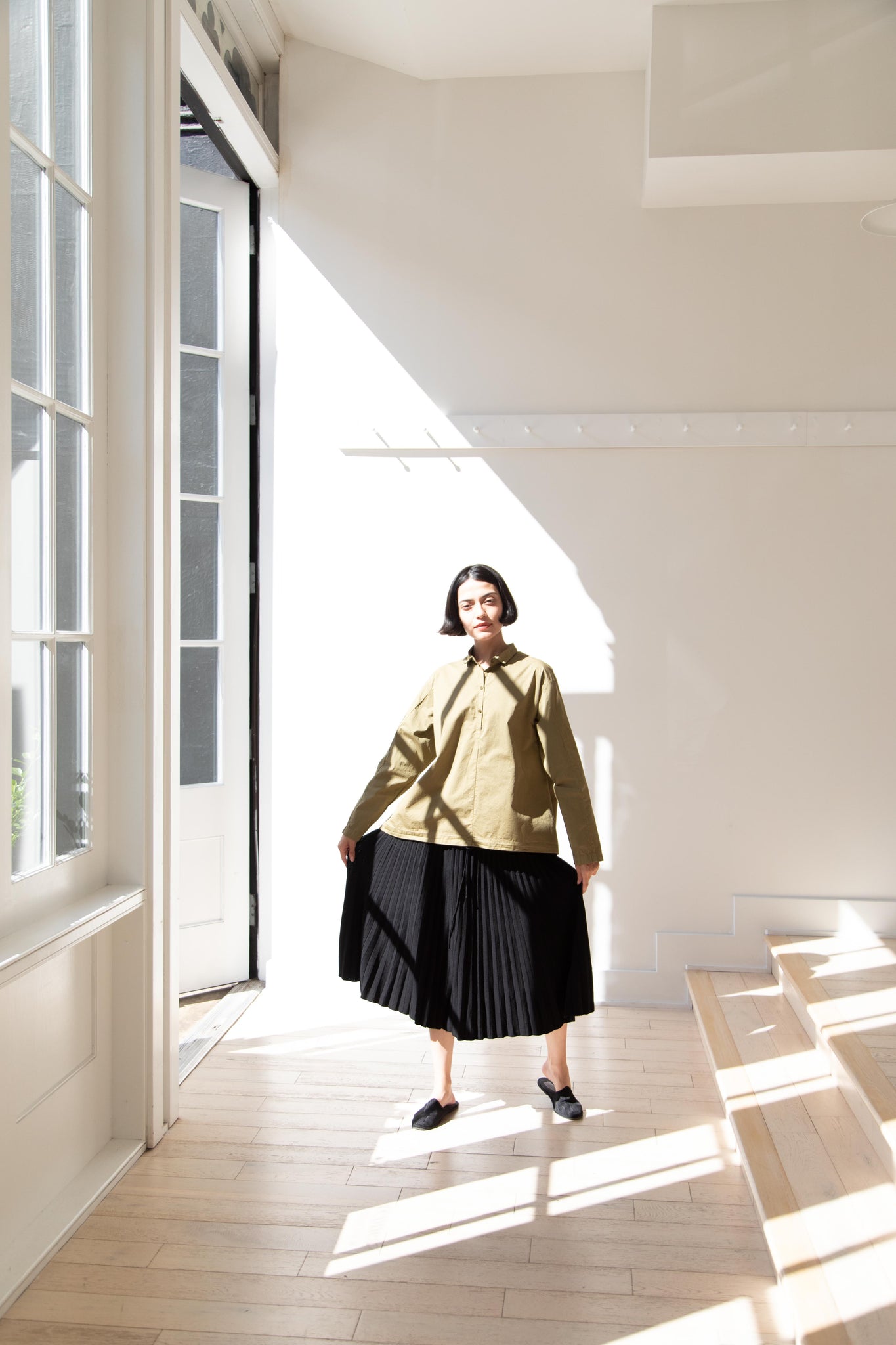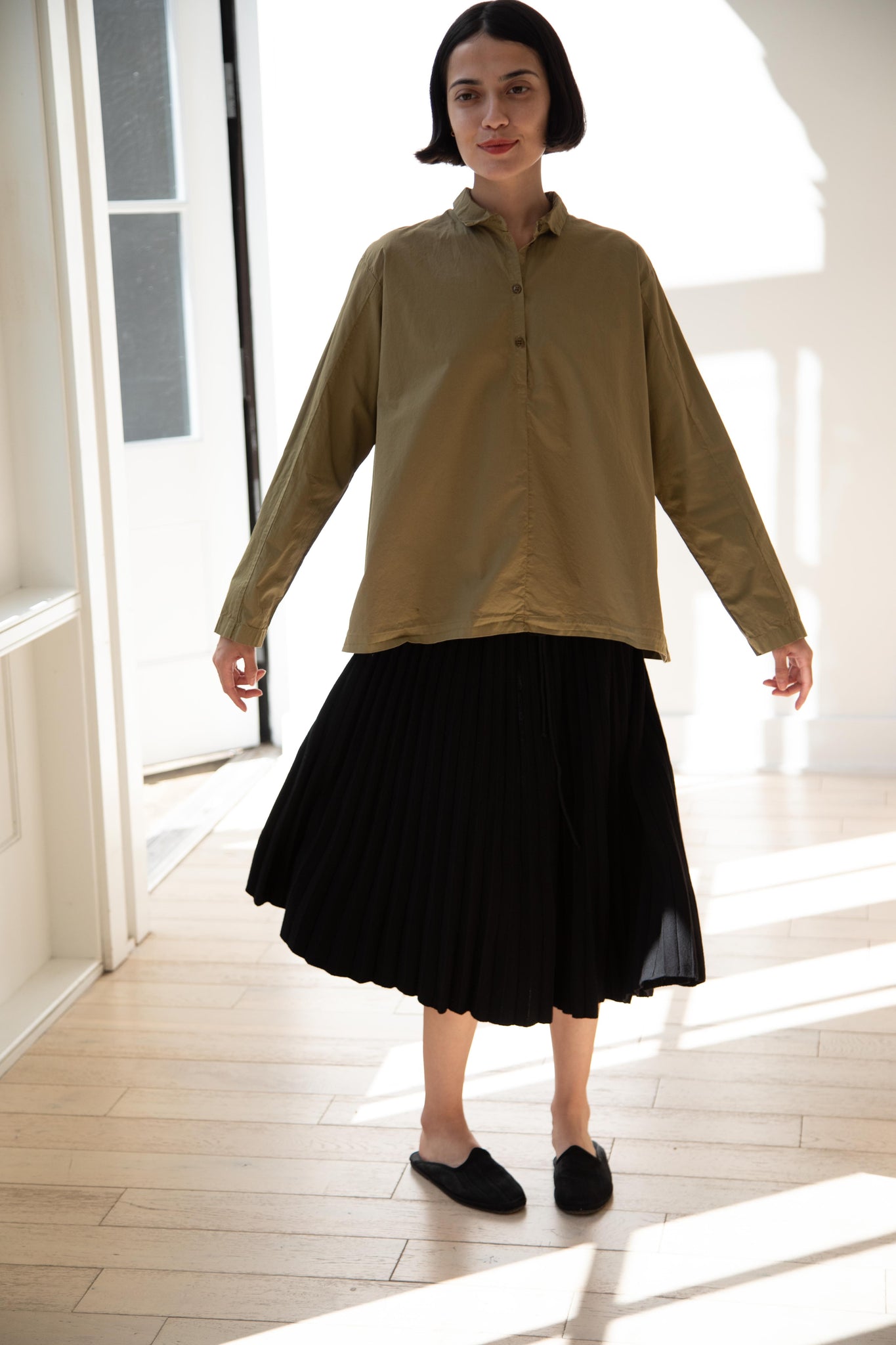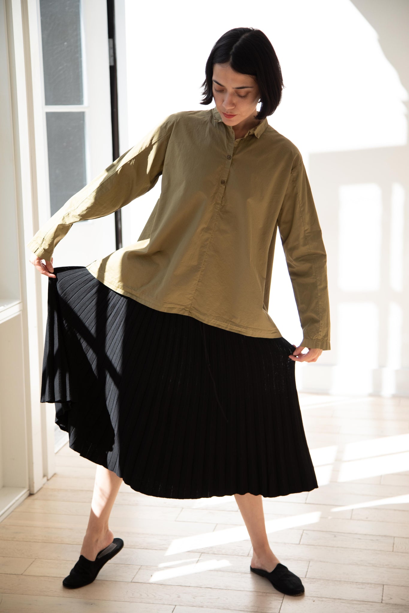 This classic popover henley shirt is a great year round piece. It's made of a lovely cotton poplin and is in a great olive color.