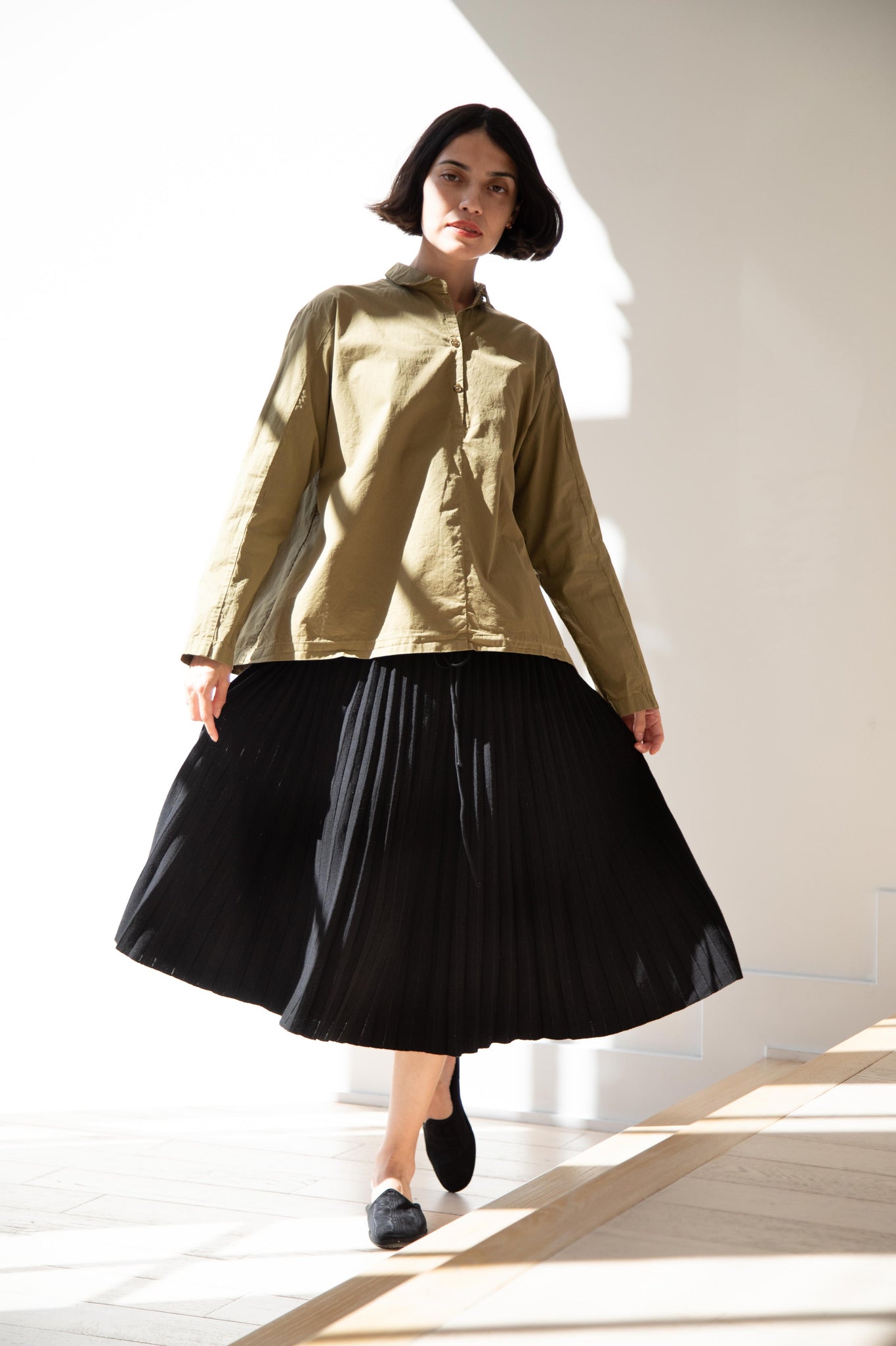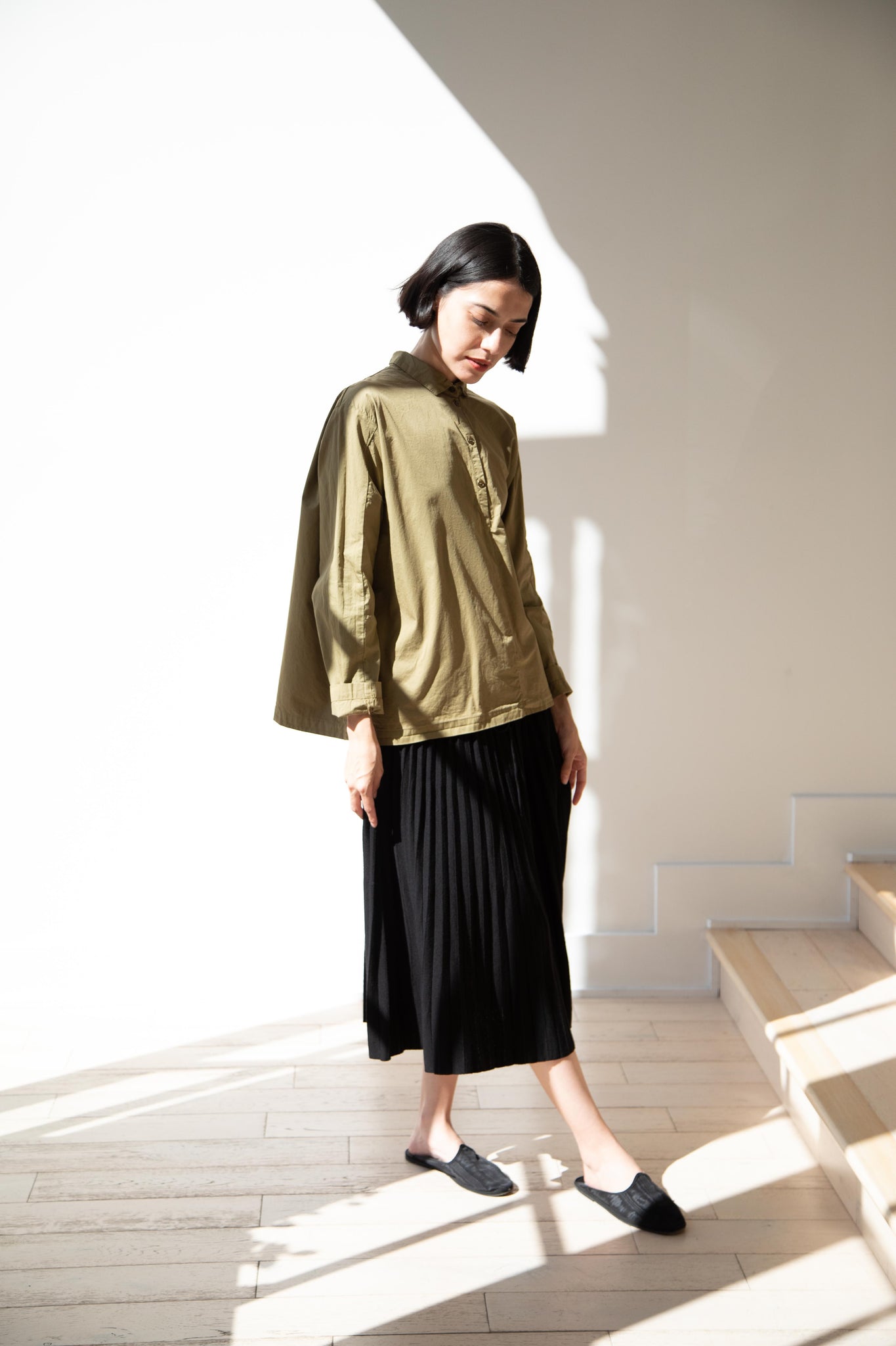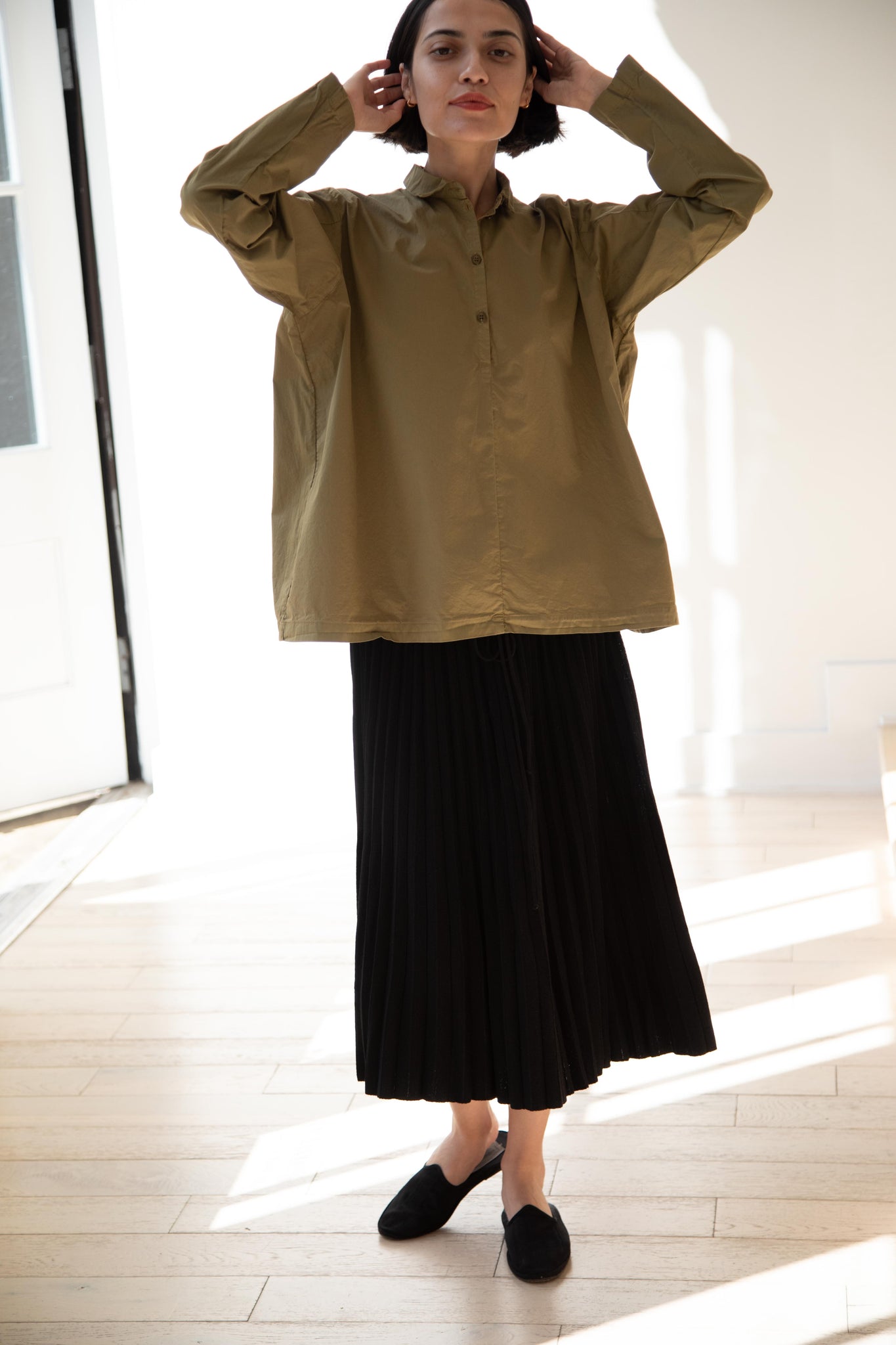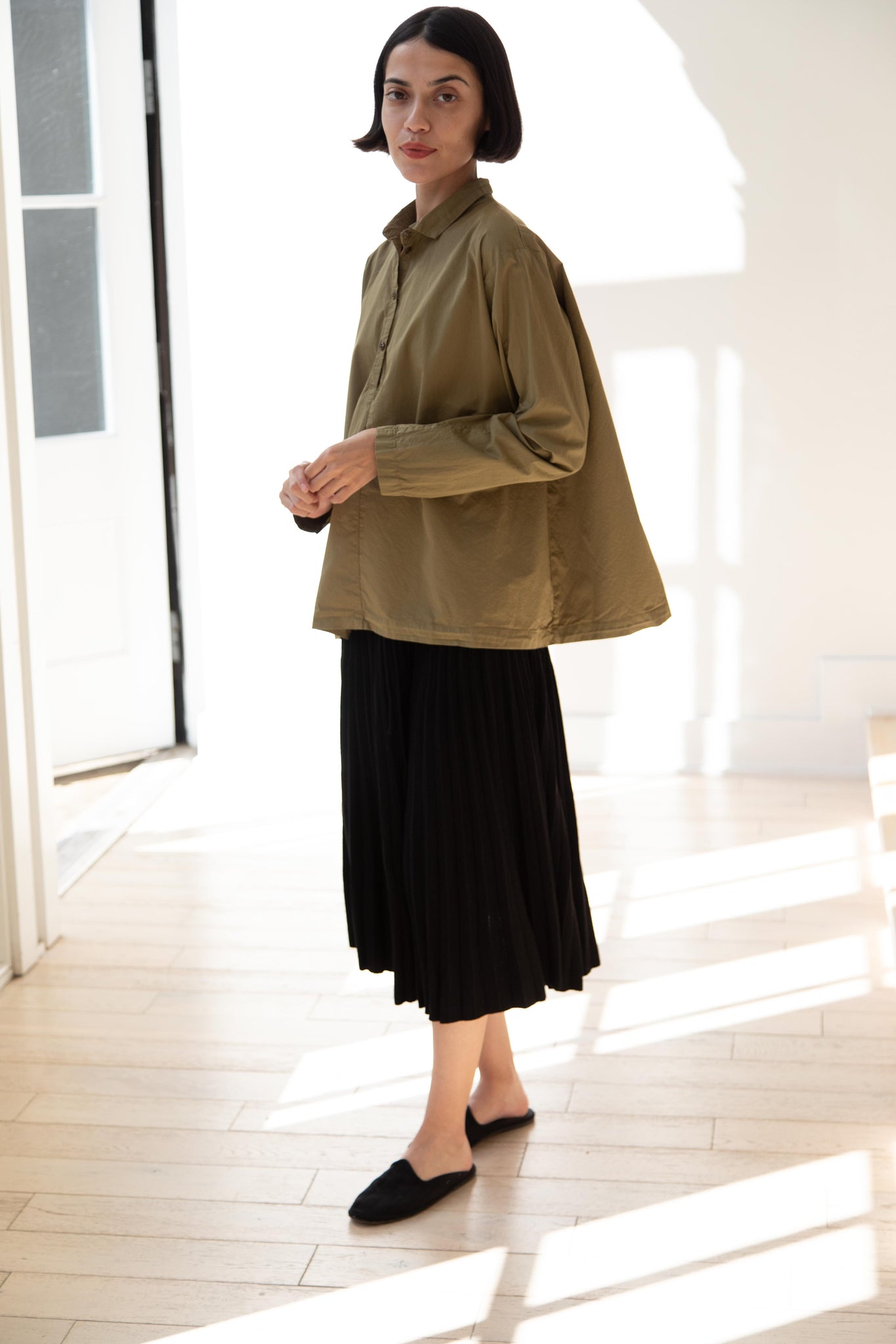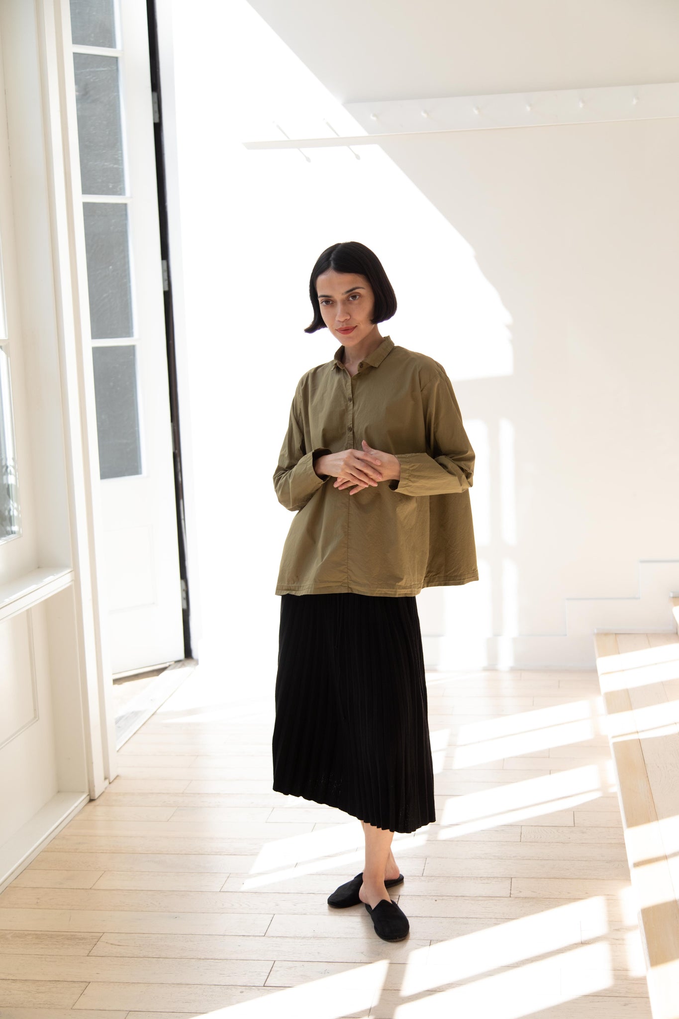 This classic popover henley shirt is a great year round piece. It's made of a lovely cotton poplin and is in a great olive color.