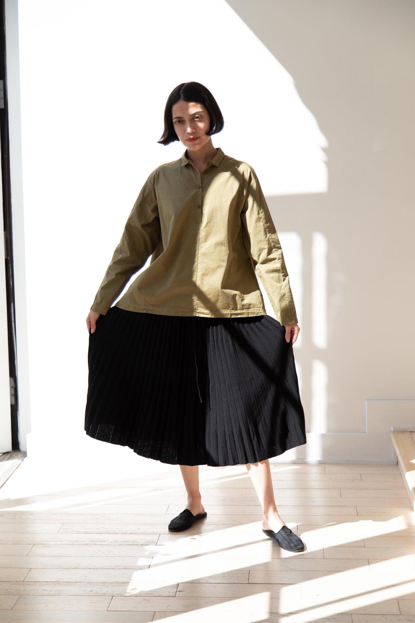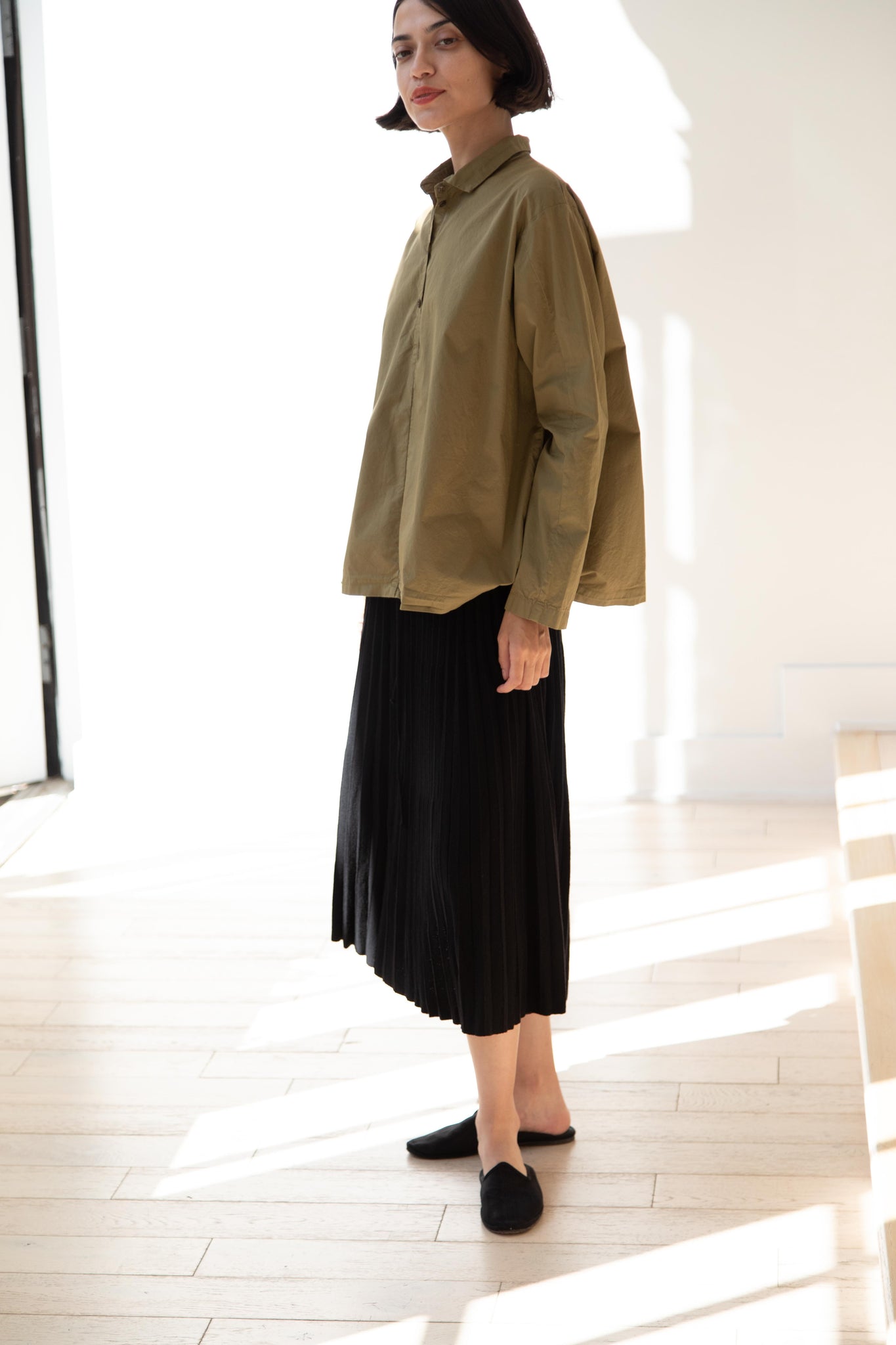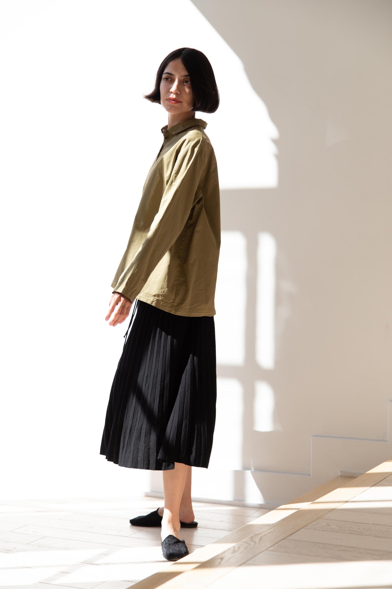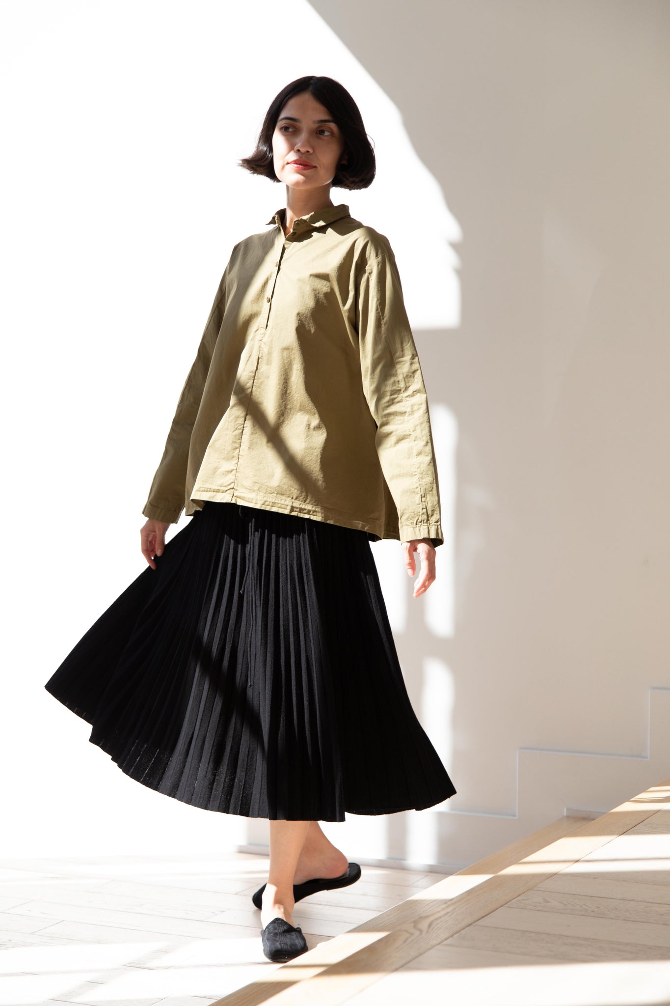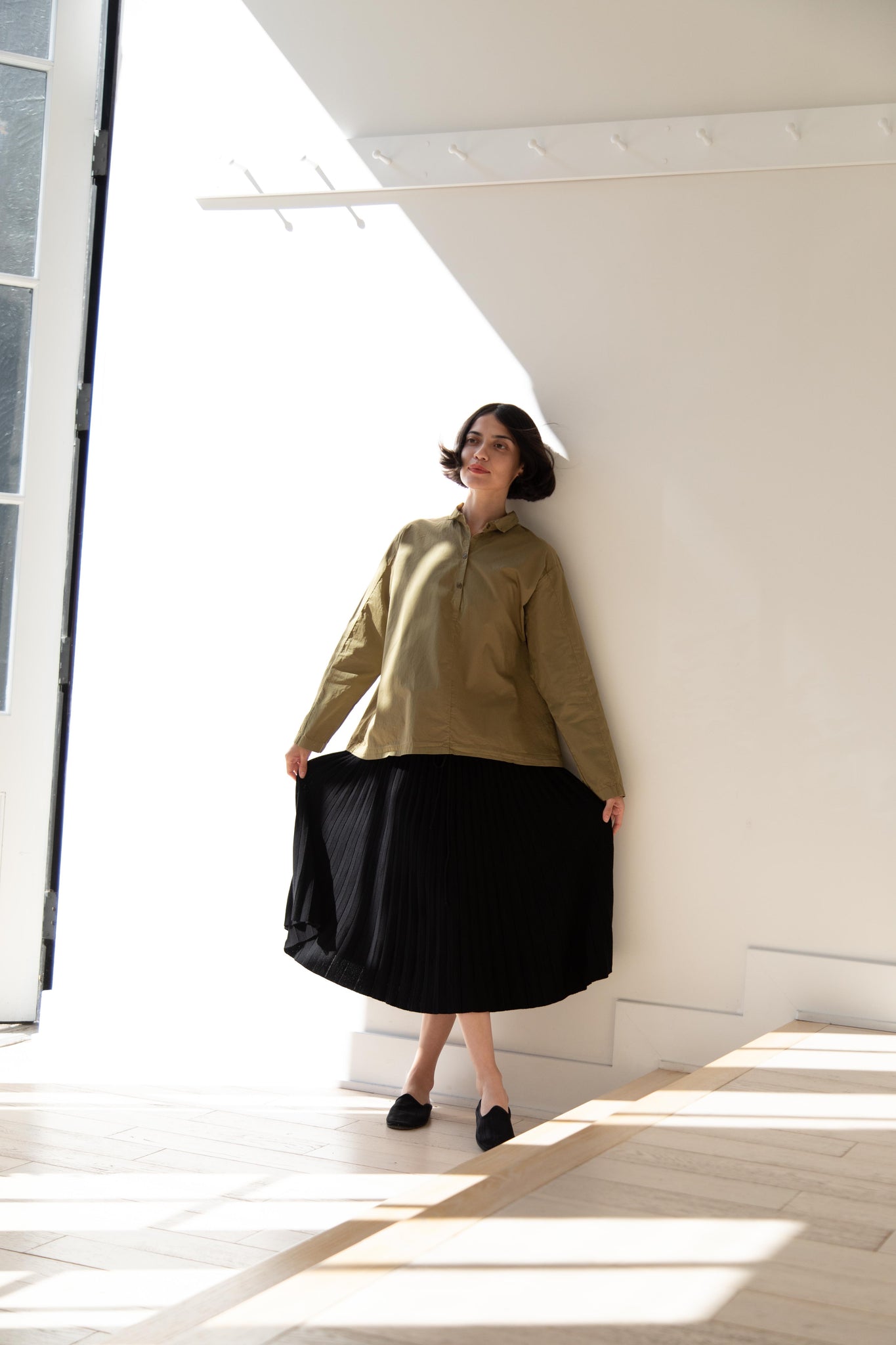This classic popover henley shirt is a great year round piece. It's made of a lovely cotton poplin and is in a great olive color.
