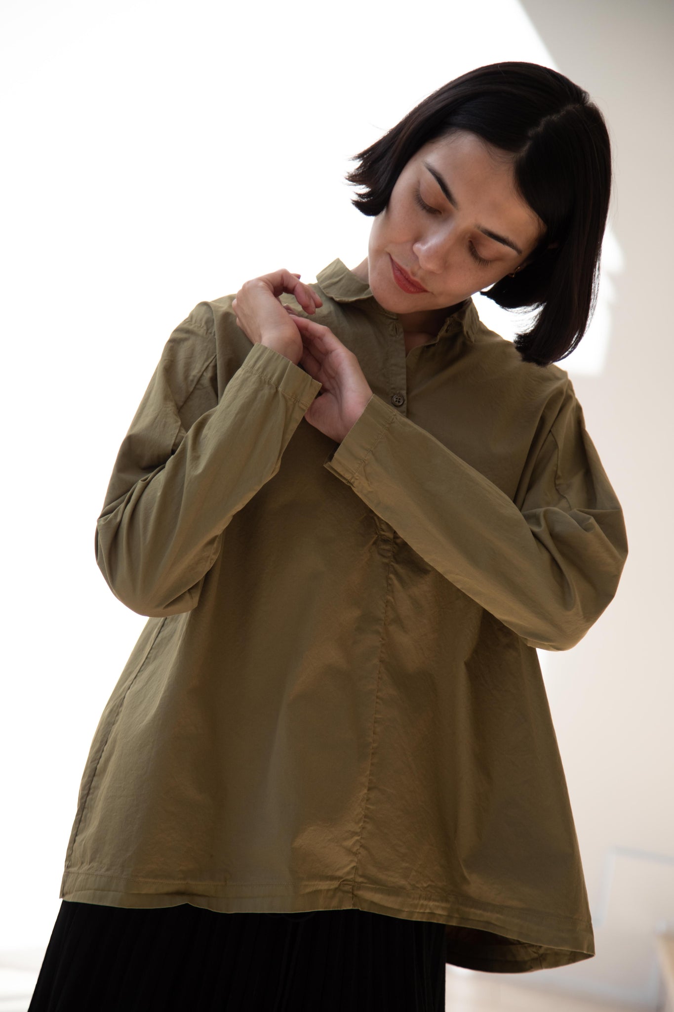 Manuelle Guibal | Cotton Sata Shirt in Olive