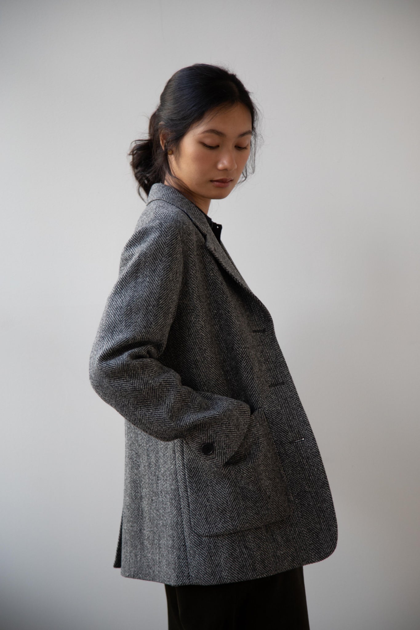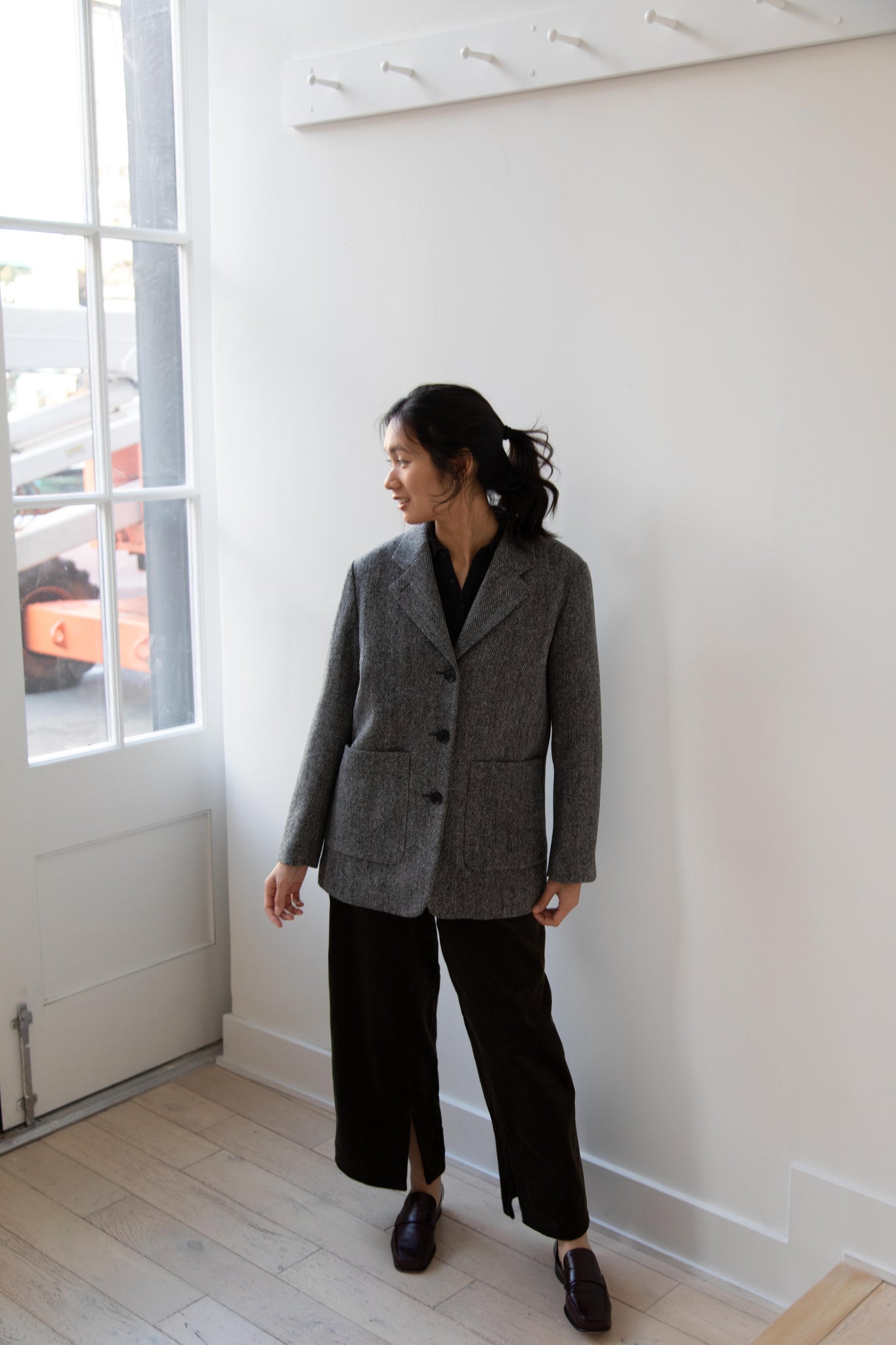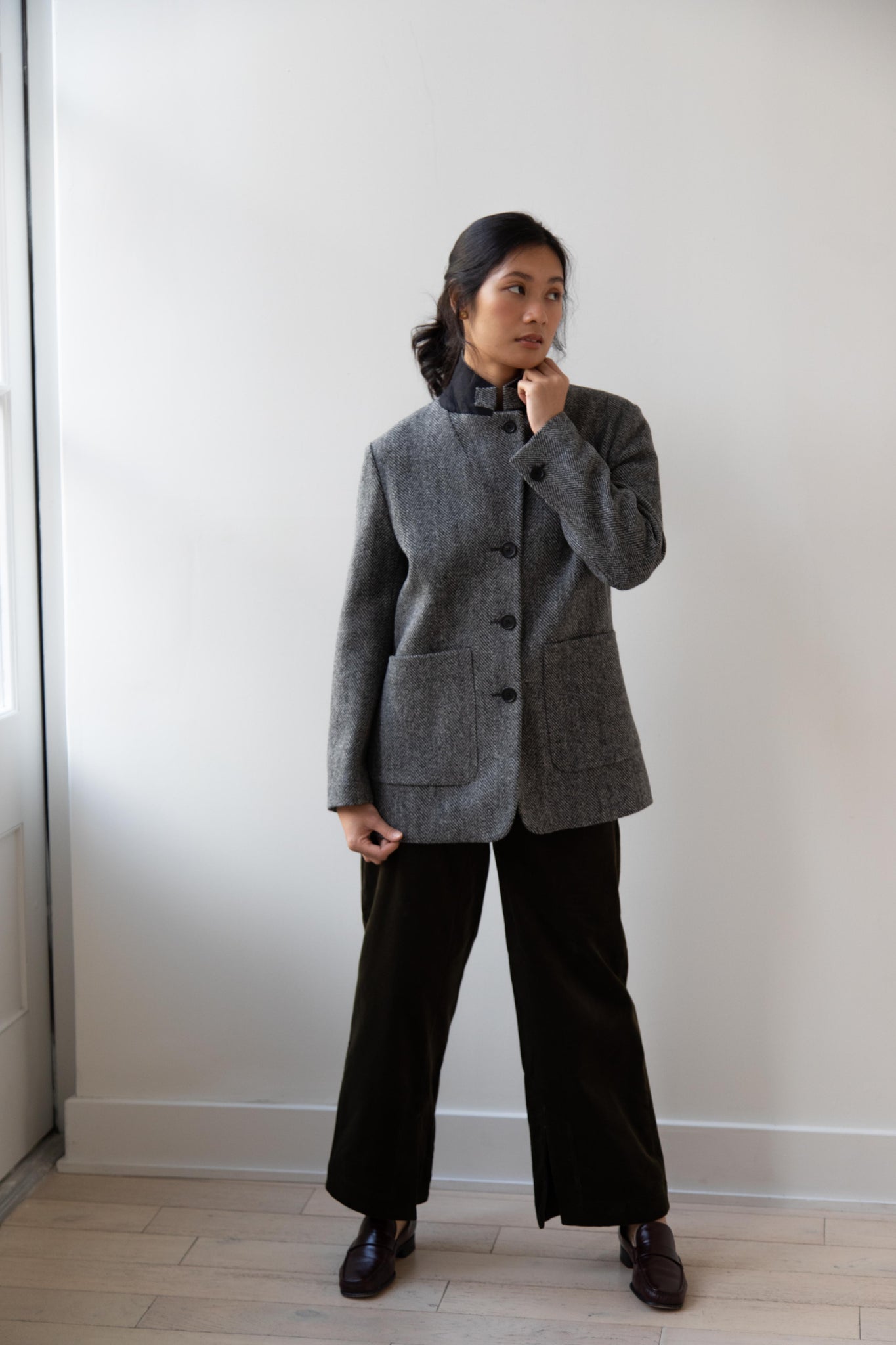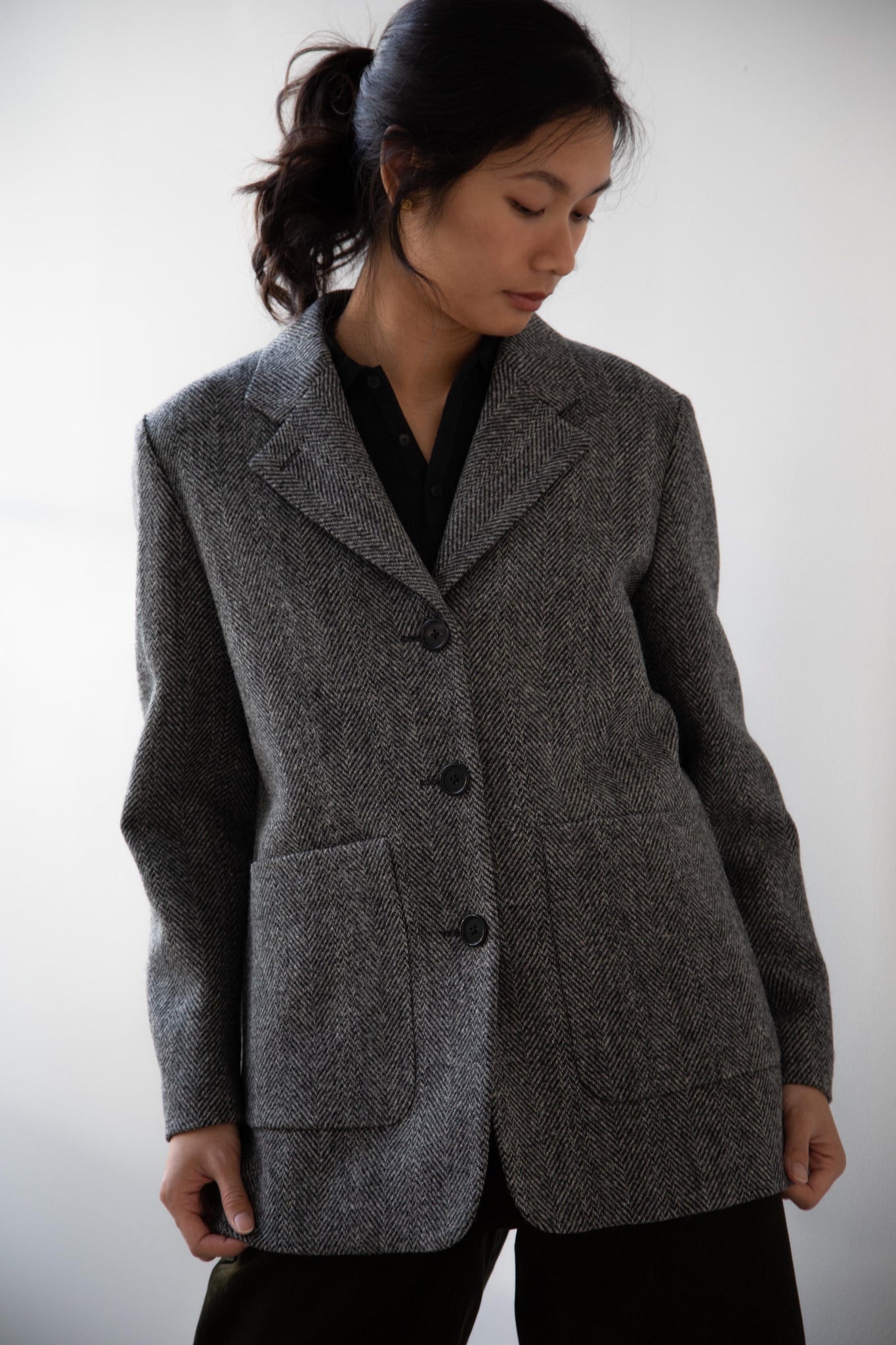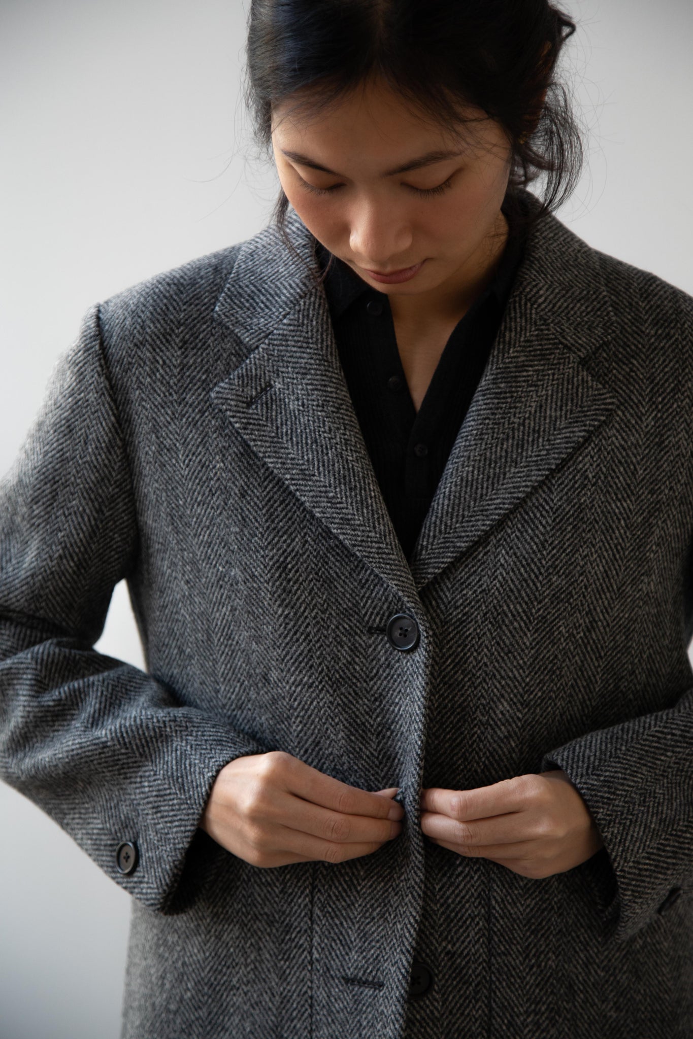 Nothing quite says fall like wool herringbone, it makes us excited for autumn jaunts across a misty field or a quick run to the coffee shop.  This classic blazer has a three button front and two patch pockets.  There is an optional button at the top lapel when there is a bit of chill in the air too!