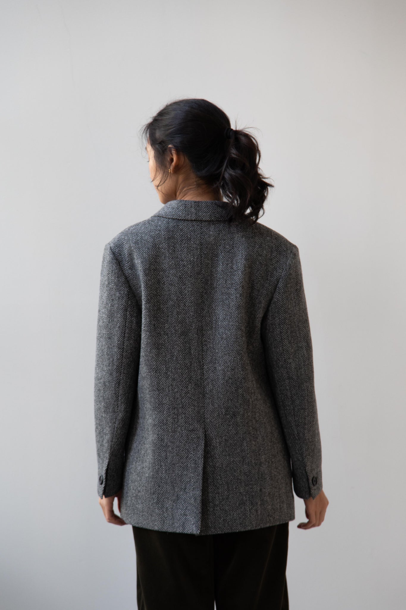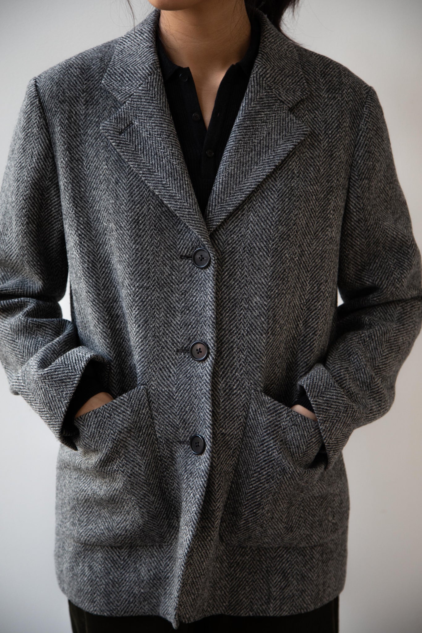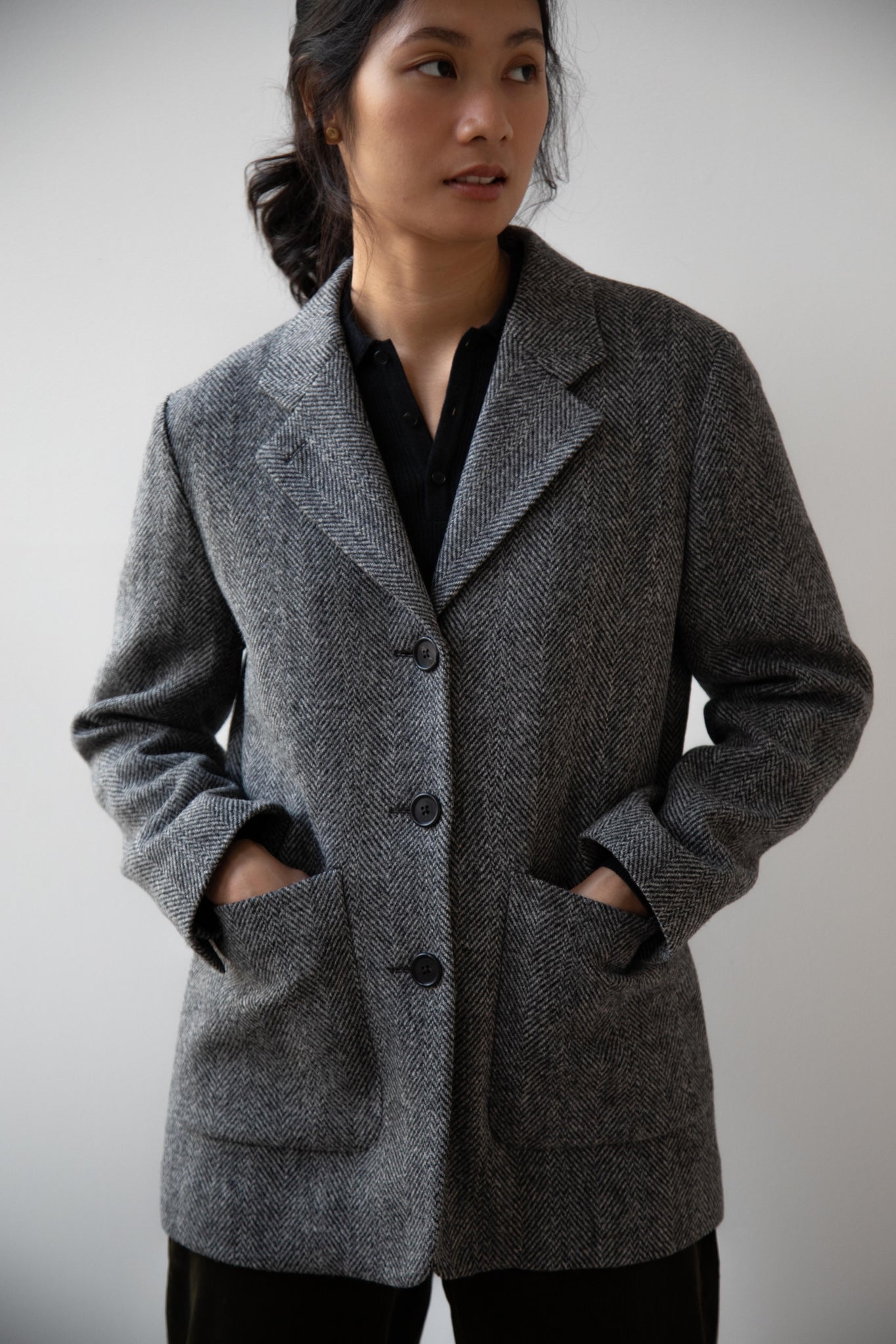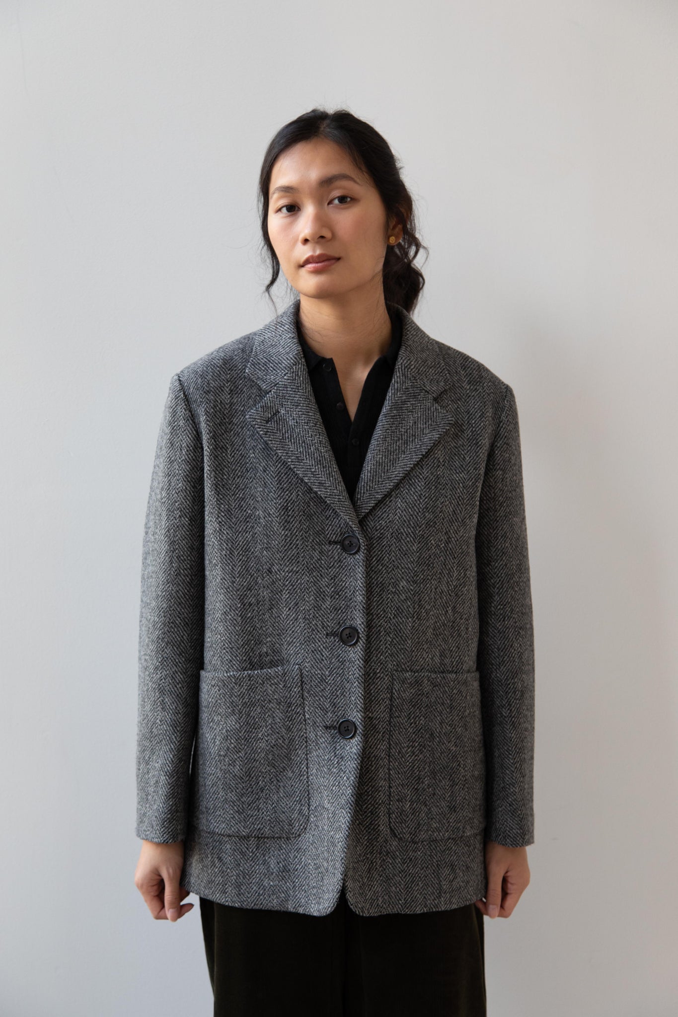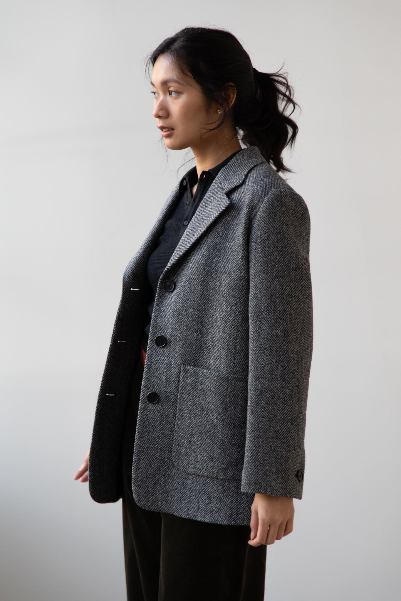 Nothing quite says fall like wool herringbone, it makes us excited for autumn jaunts across a misty field or a quick run to the coffee shop.  This classic blazer has a three button front and two patch pockets.  There is an optional button at the top lapel when there is a bit of chill in the air too!