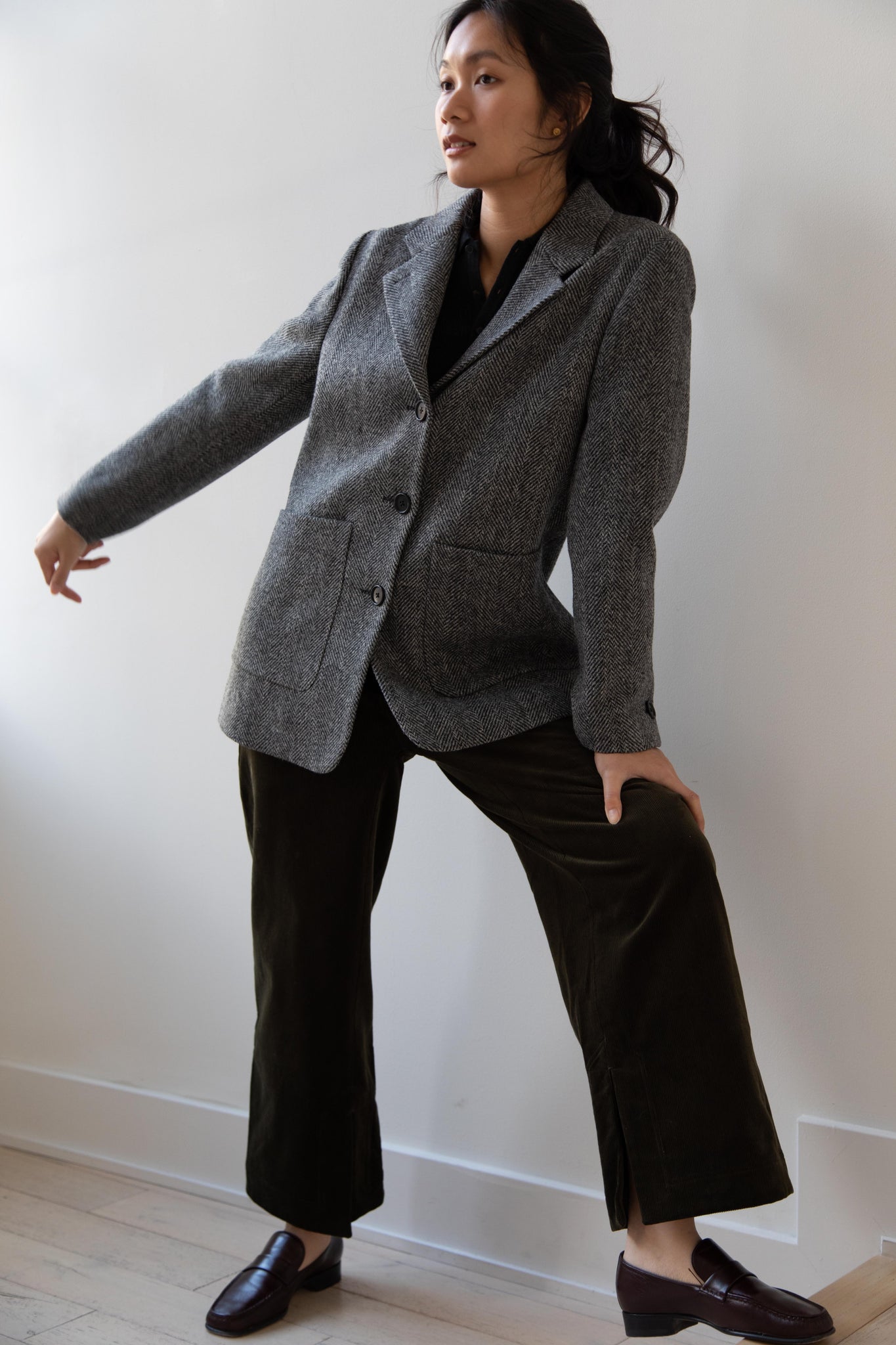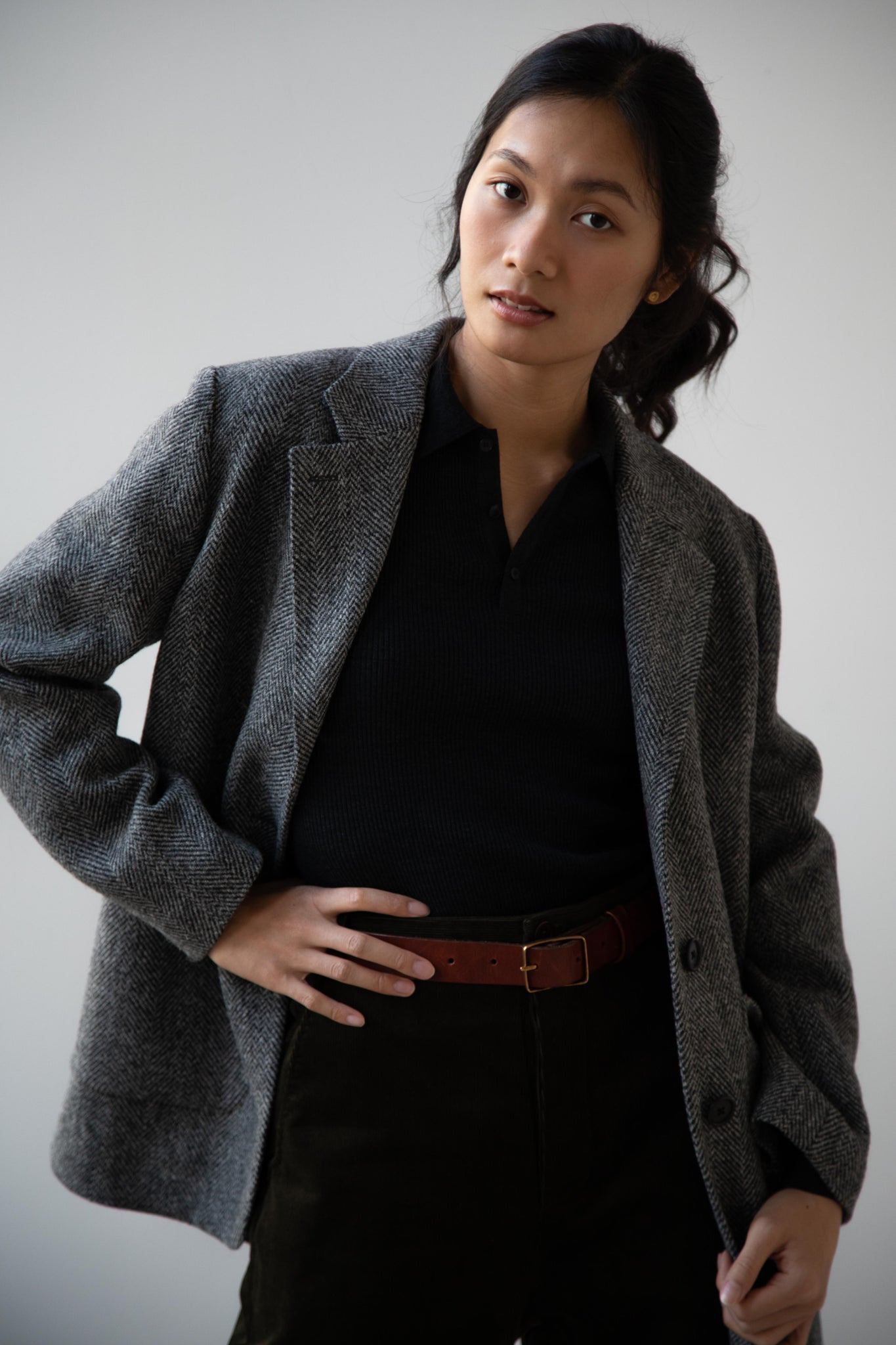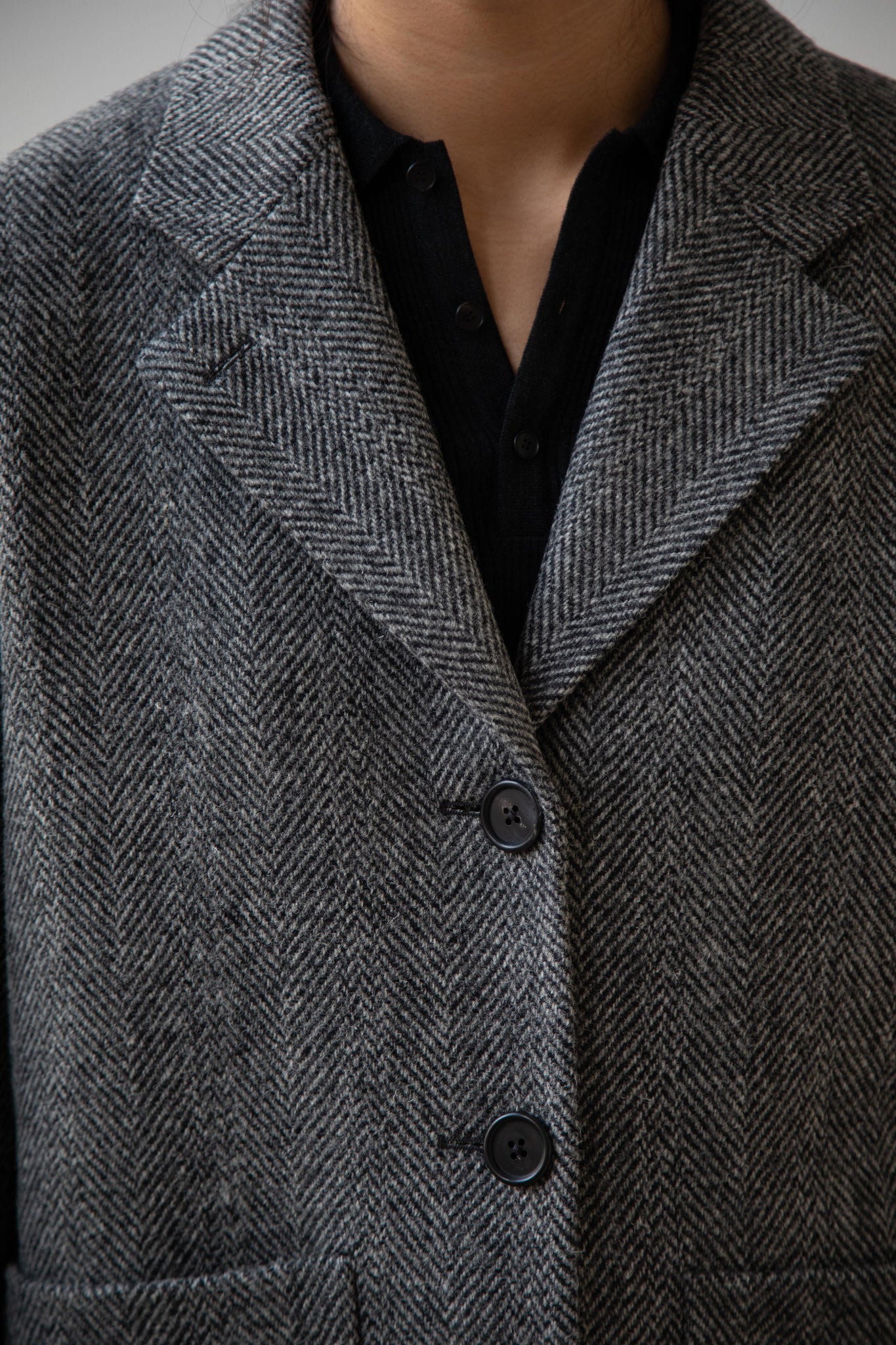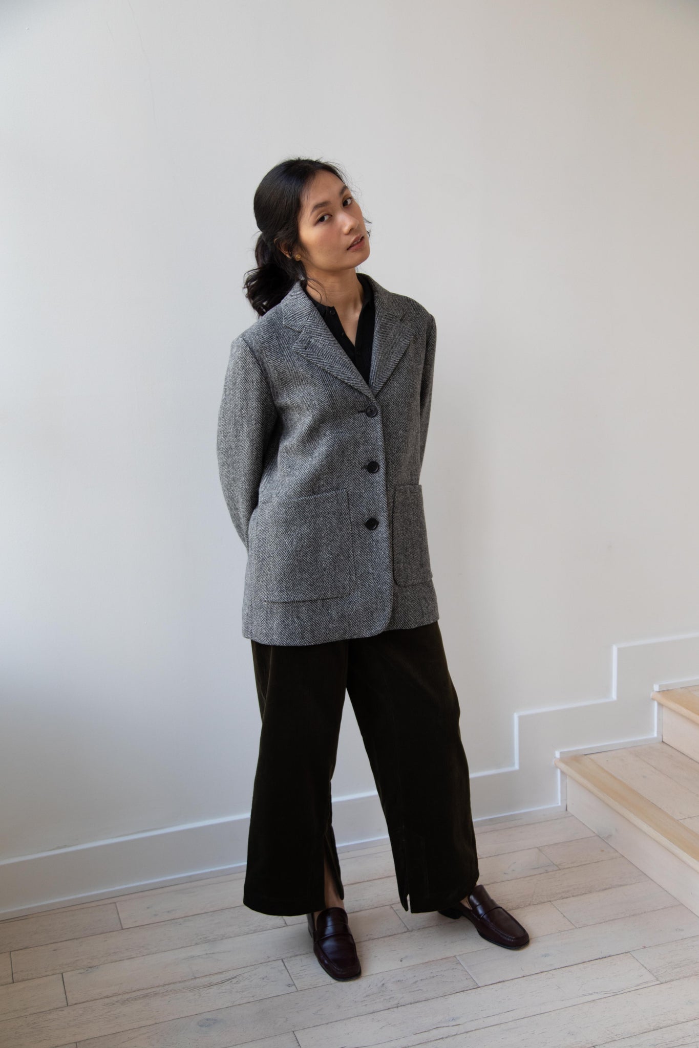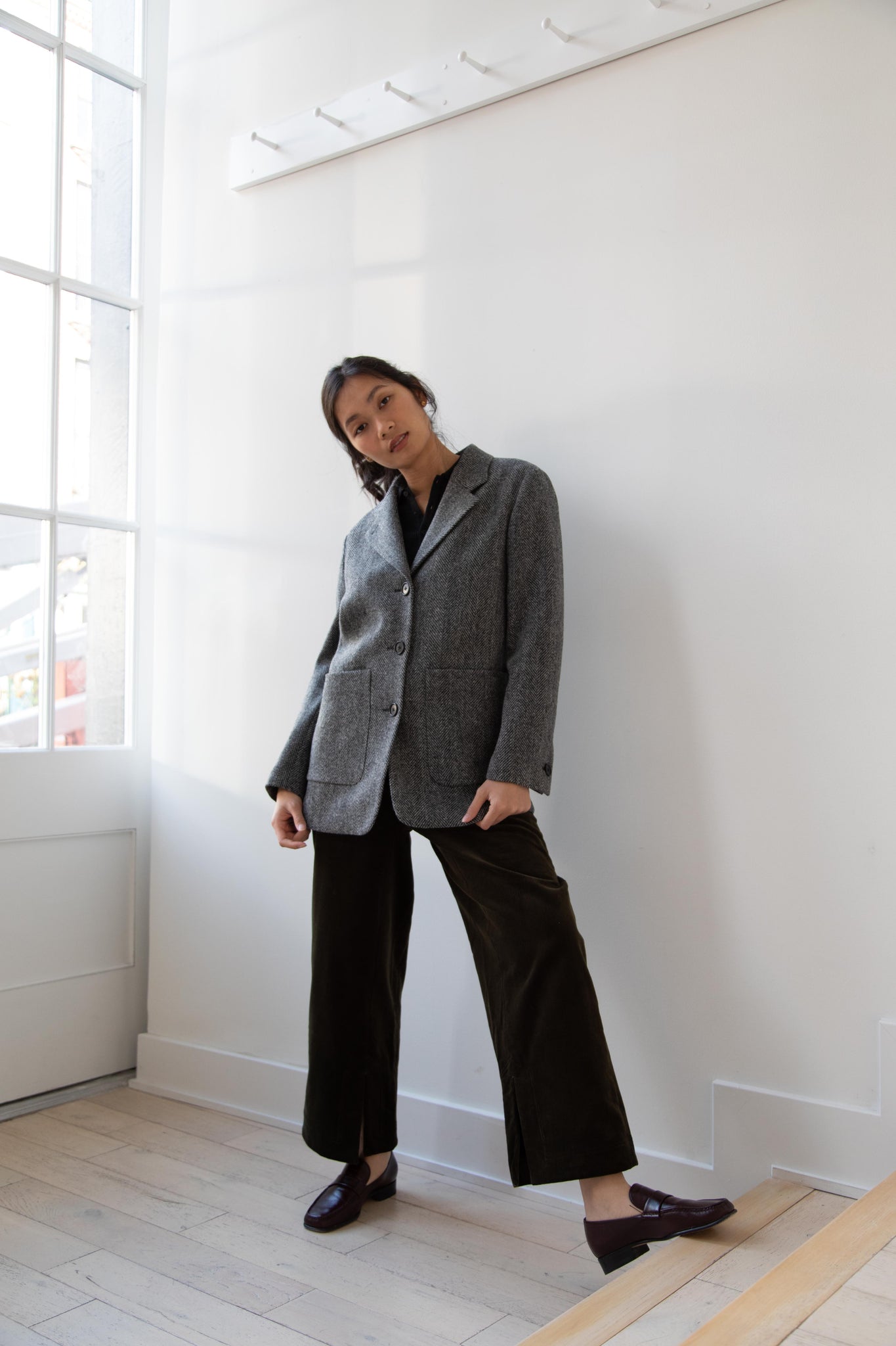 Nothing quite says fall like wool herringbone, it makes us excited for autumn jaunts across a misty field or a quick run to the coffee shop.  This classic blazer has a three button front and two patch pockets.  There is an optional button at the top lapel when there is a bit of chill in the air too!